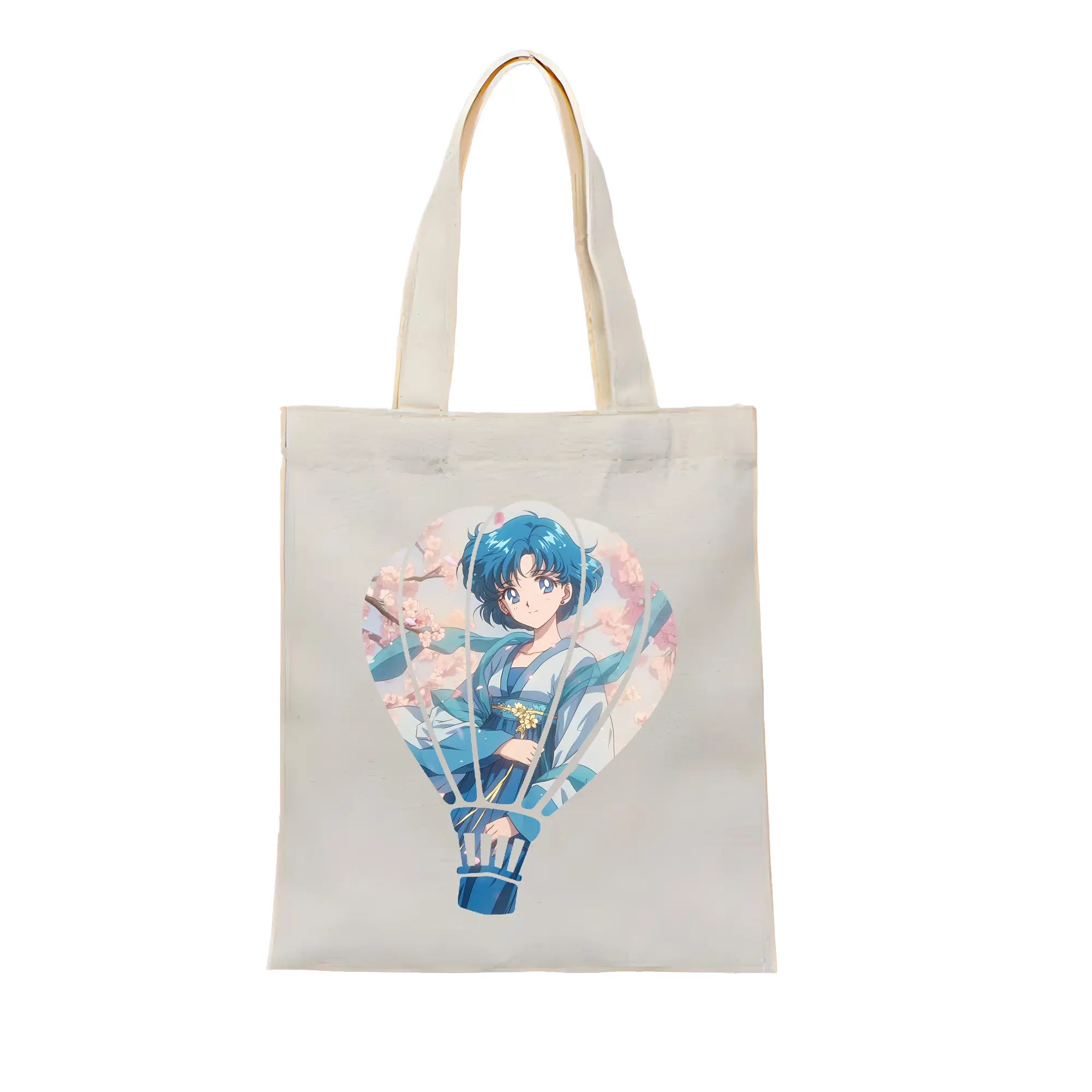 美少女戦士セーラームーン グッズ 水野 亜美 - 縦型キャンバス手提げバッグ(トートバッグ) ・ キャンバス素材 ・ ショッピング用 ・ 軽量 丈夫 お手入れ簡単