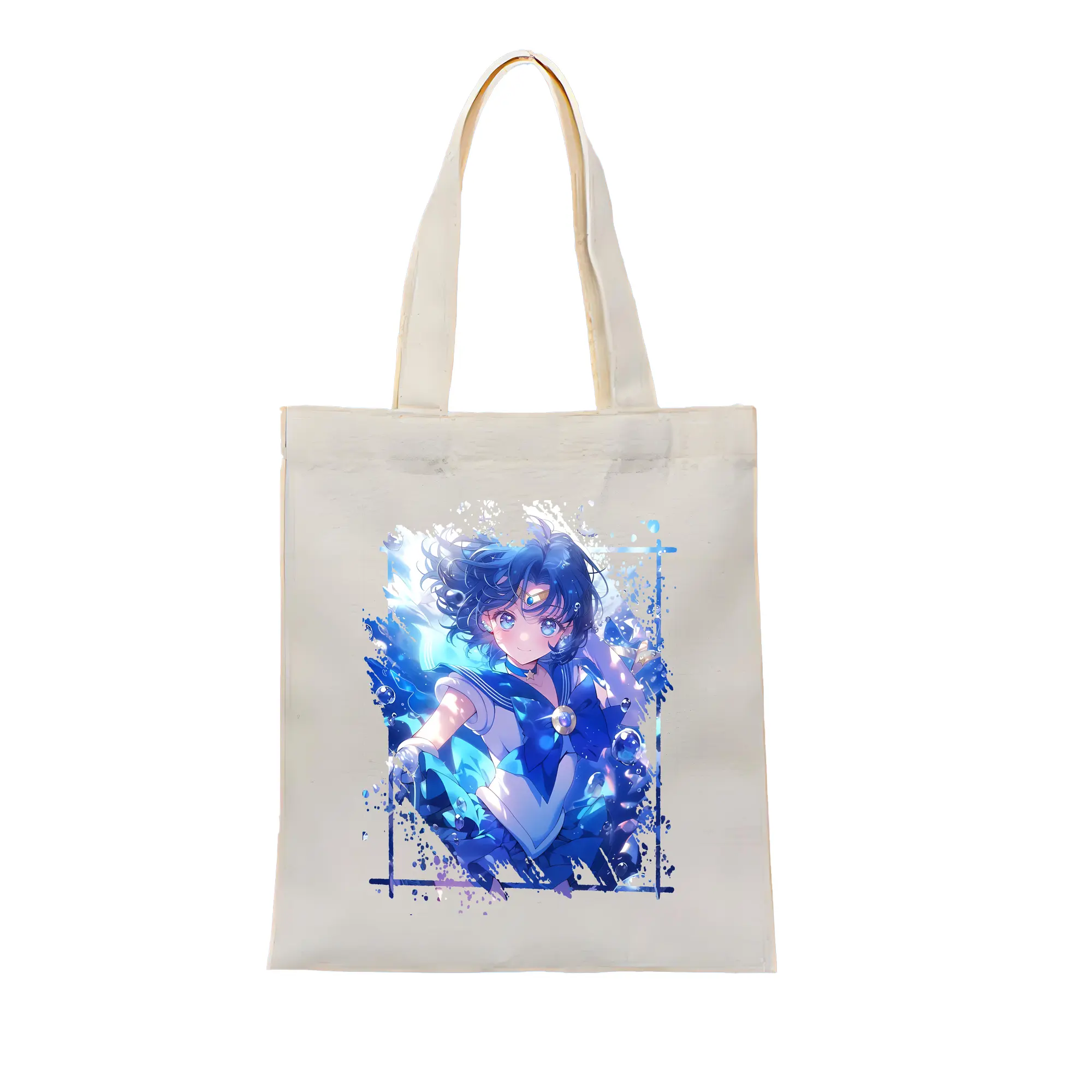 美少女戦士セーラームーン グッズ 水野 亜美 - 縦型キャンバス手提げバッグ(トートバッグ) ・ キャンバス素材 ・ ショッピング用 ・ 軽量 丈夫 お手入れ簡単