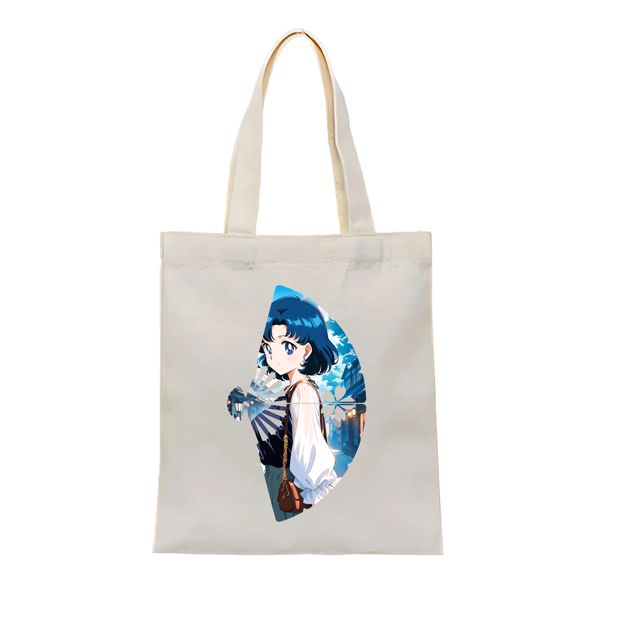 美少女戦士セーラームーン グッズ 水野 亜美 - 縦型キャンバス手提げバッグ(トートバッグ) ・ キャンバス素材 ・ ショッピング用 ・ 軽量 丈夫 お手入れ簡単