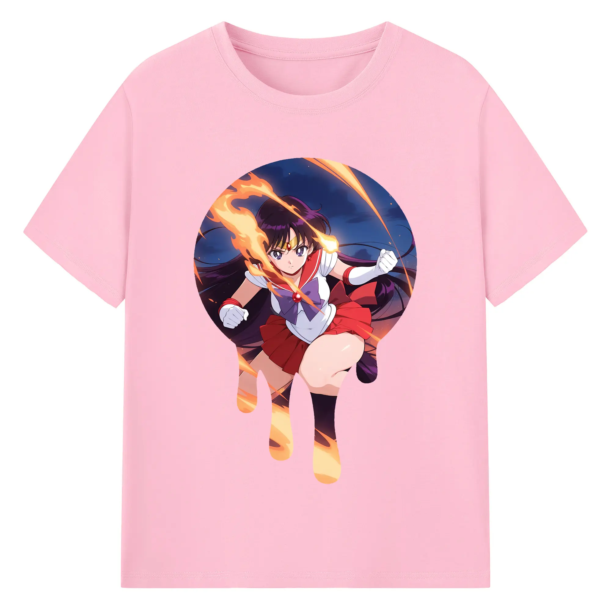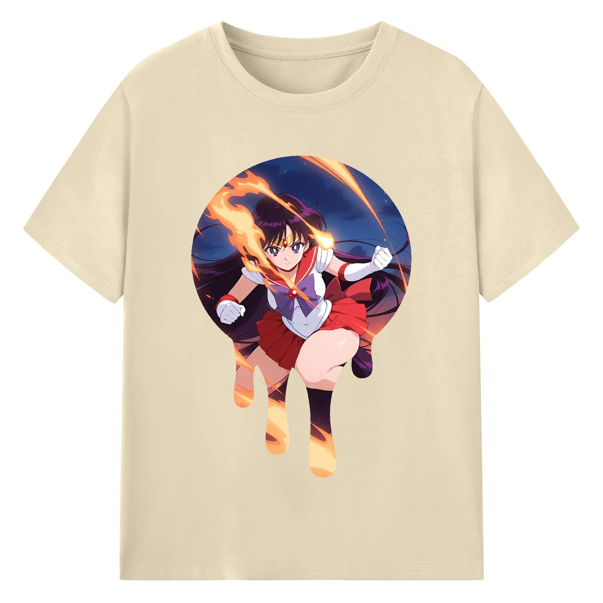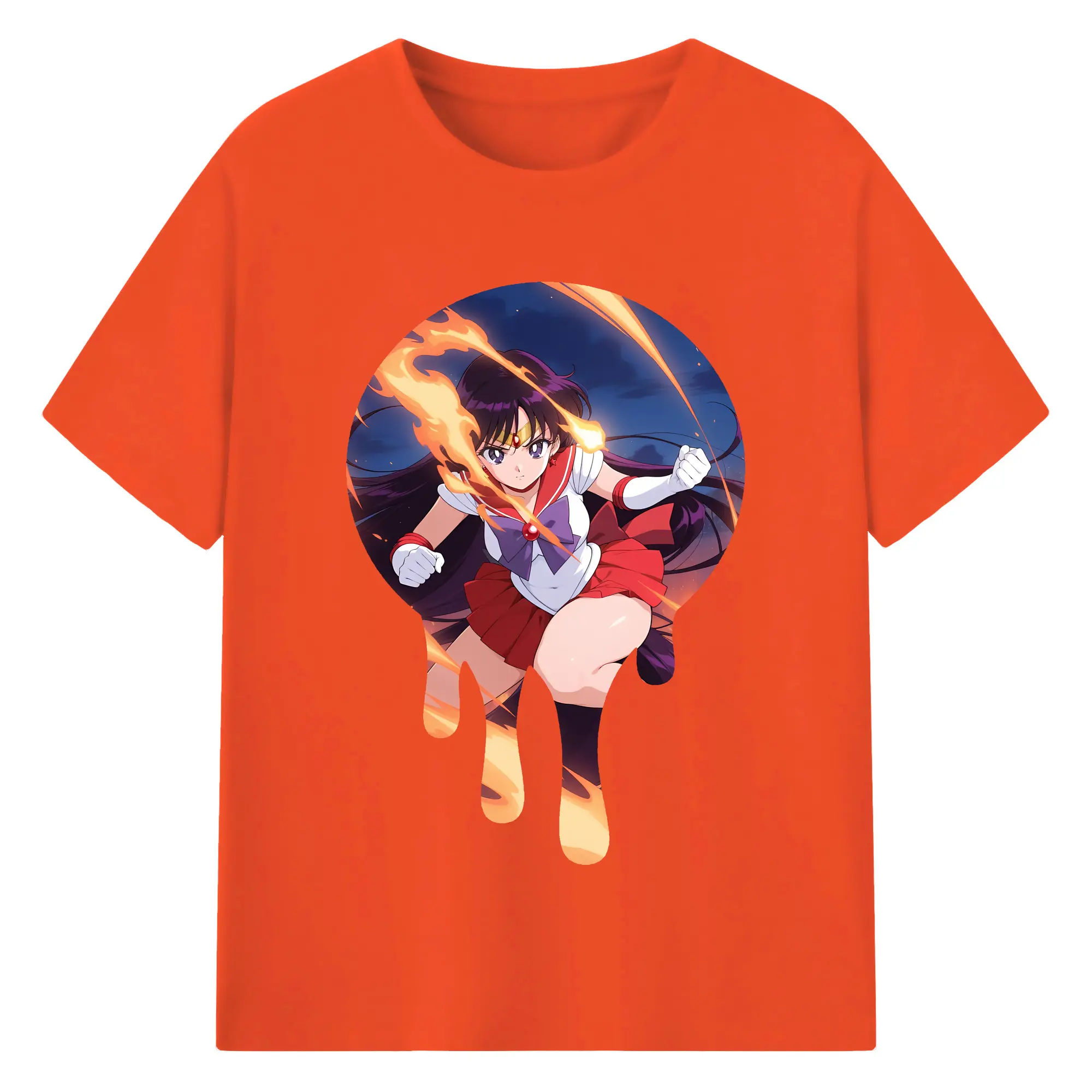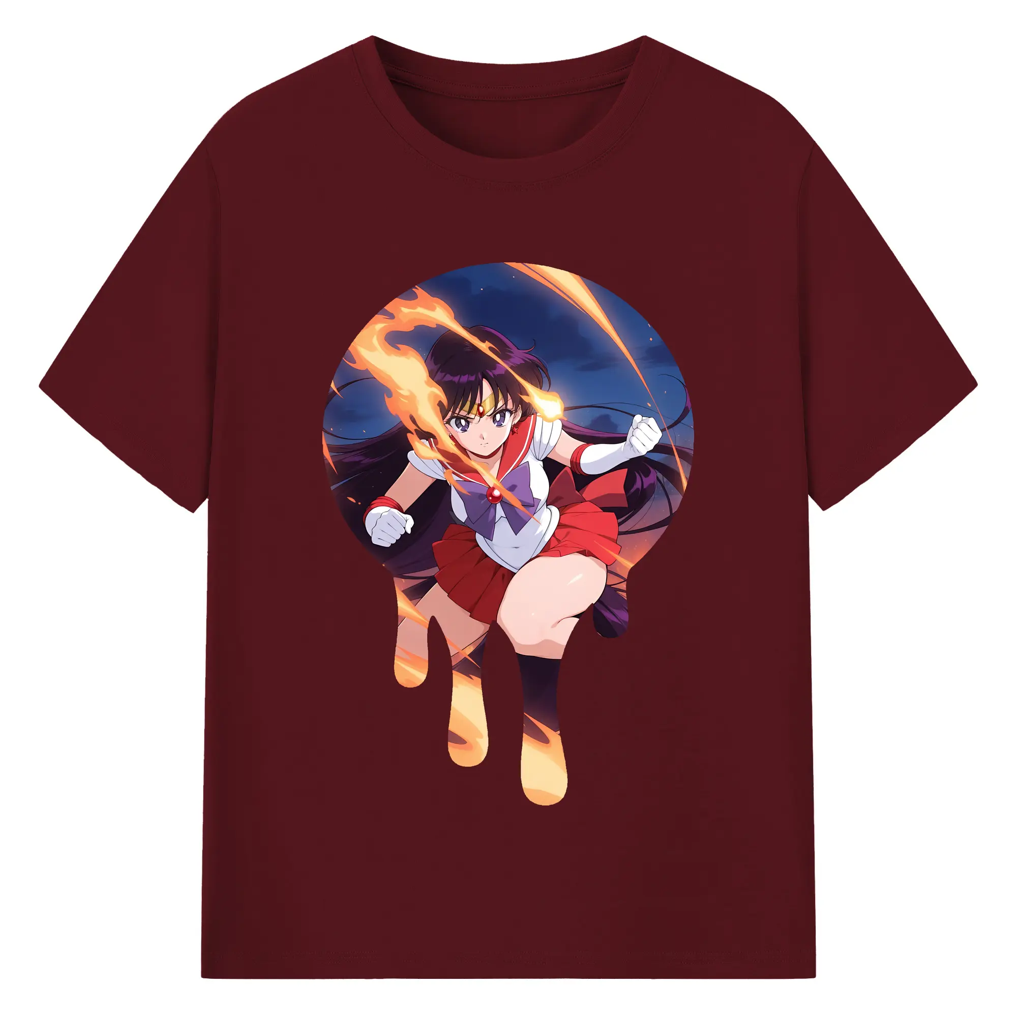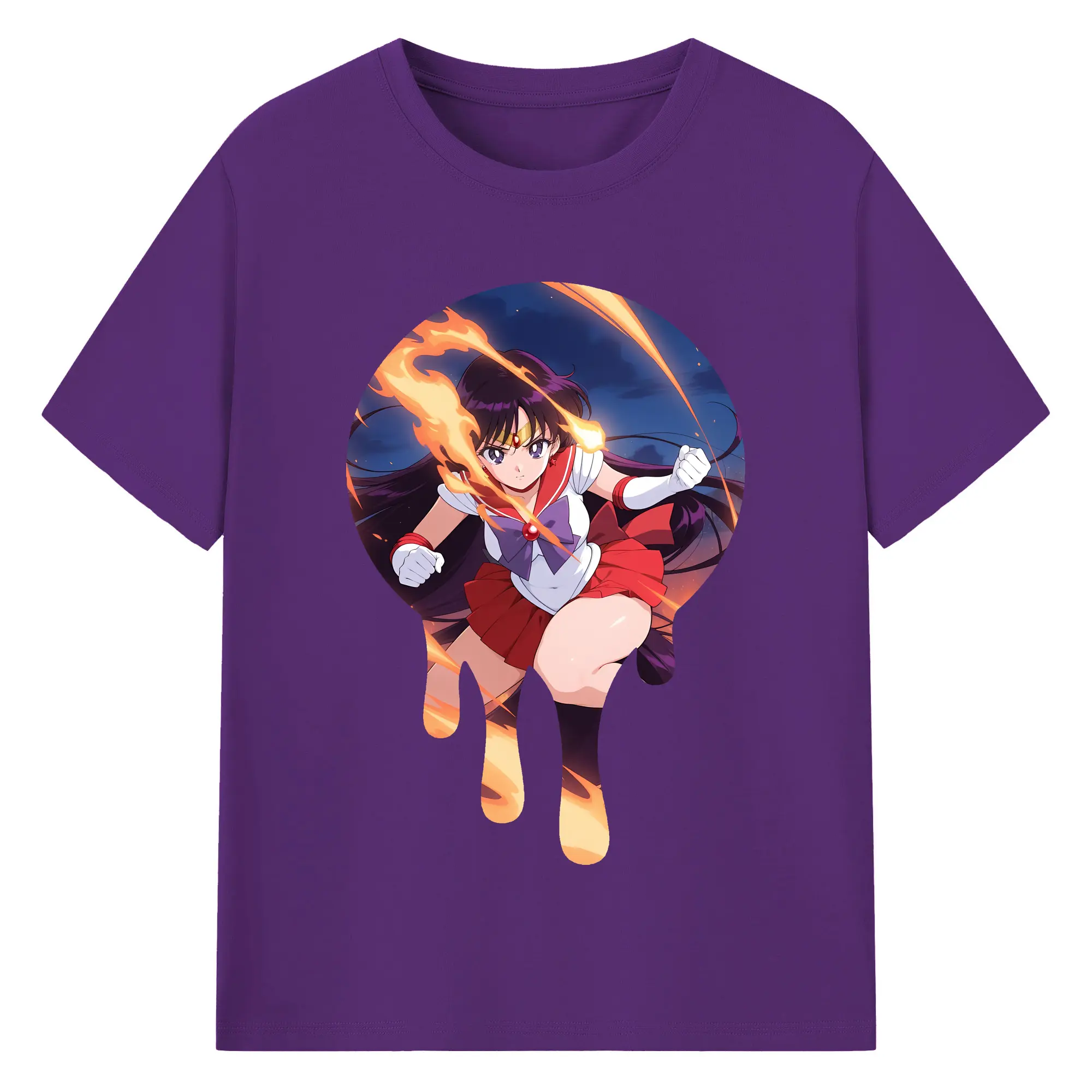 美少女戦士セーラームーン グッズ 火野 レイ - 綿100% 半袖Tシャツ ・ バックプリント ・ 快適 通気性 ・ 日常使い 散歩 スポーツ用