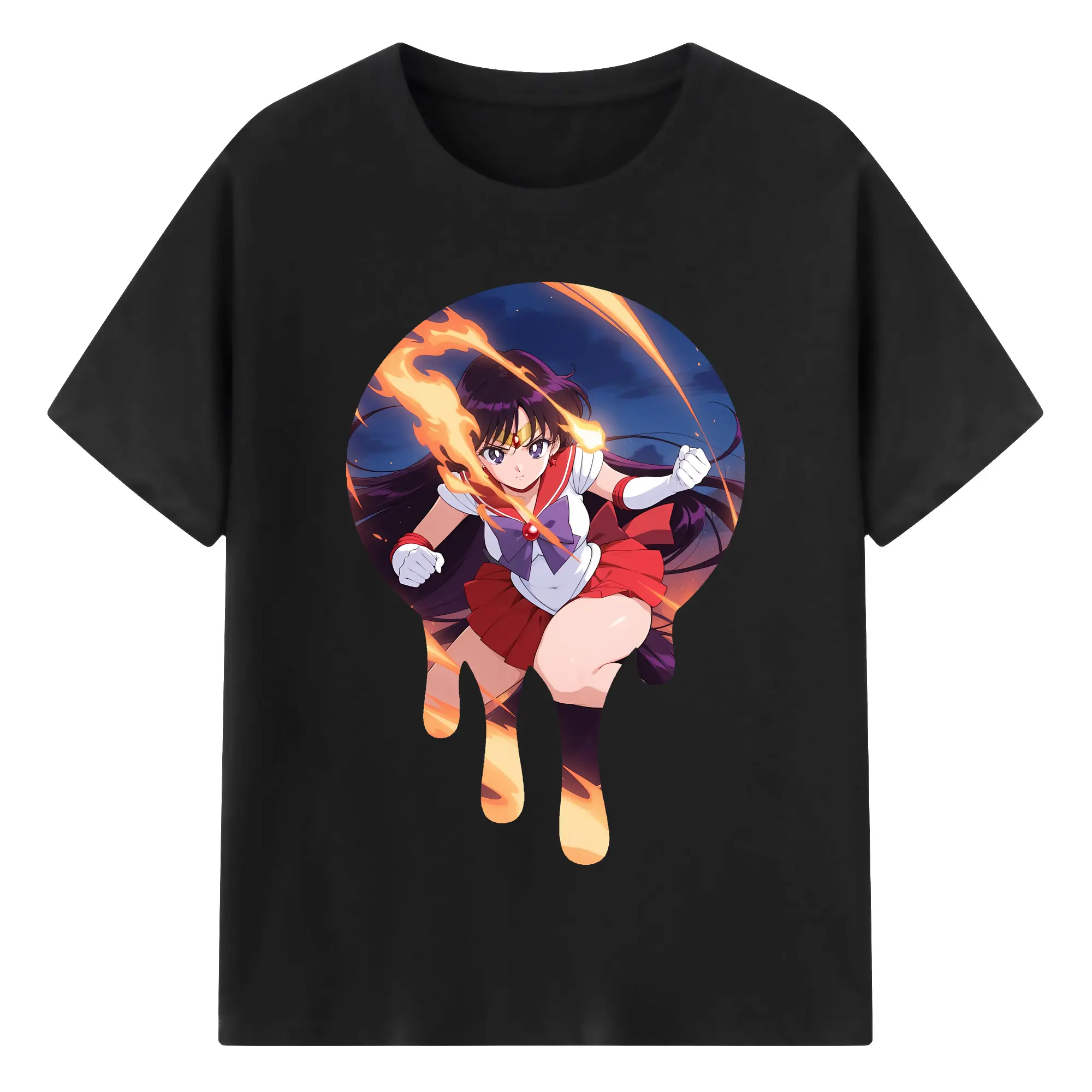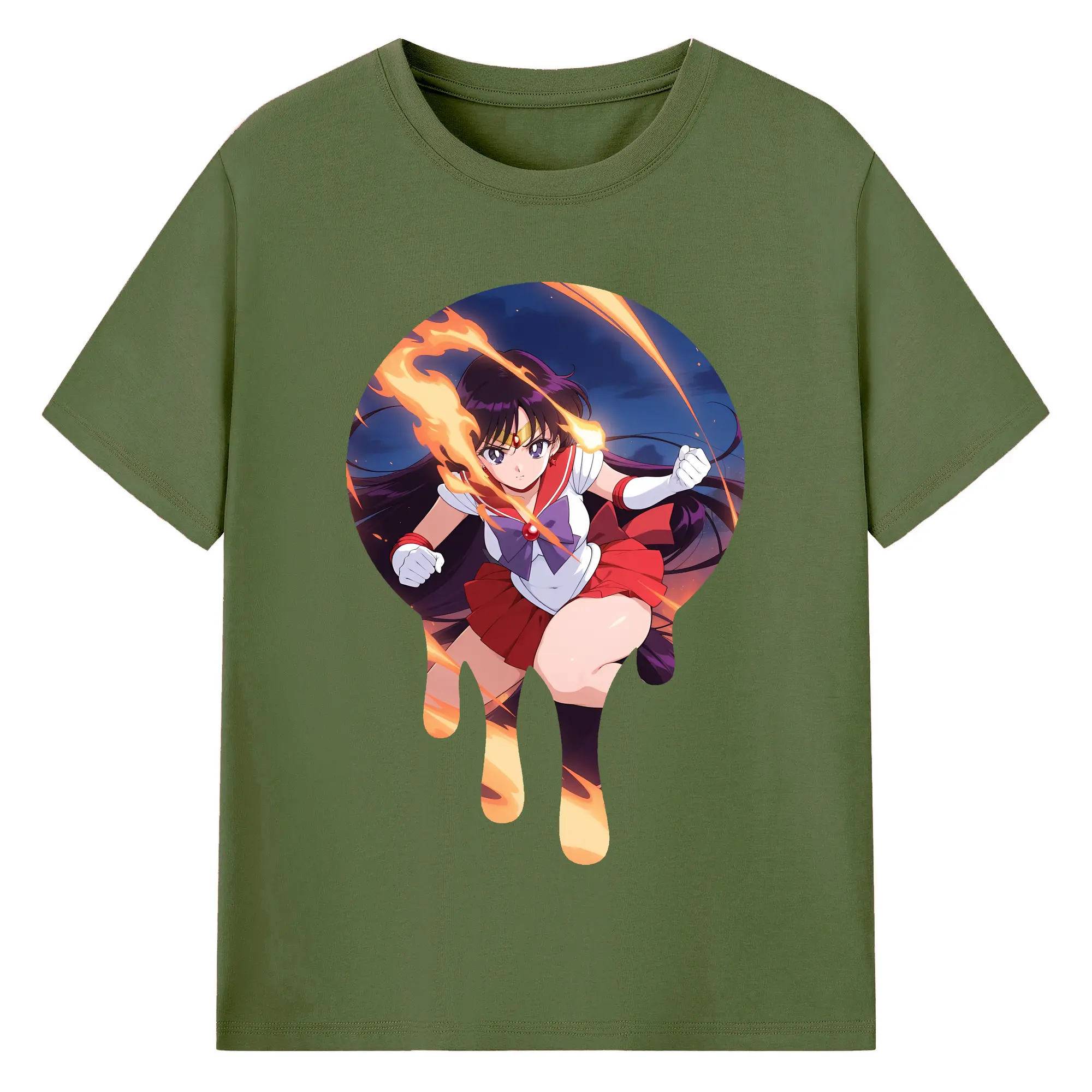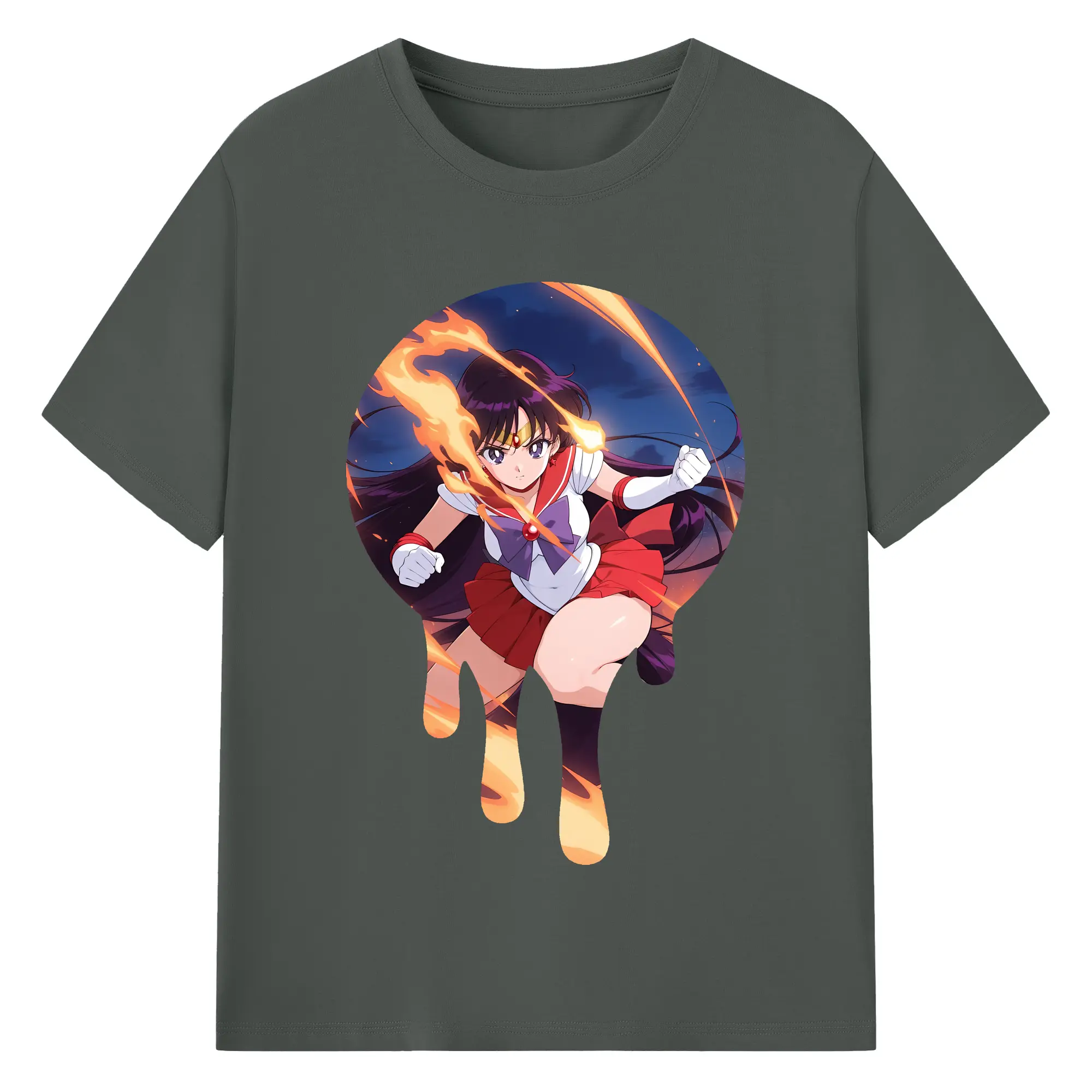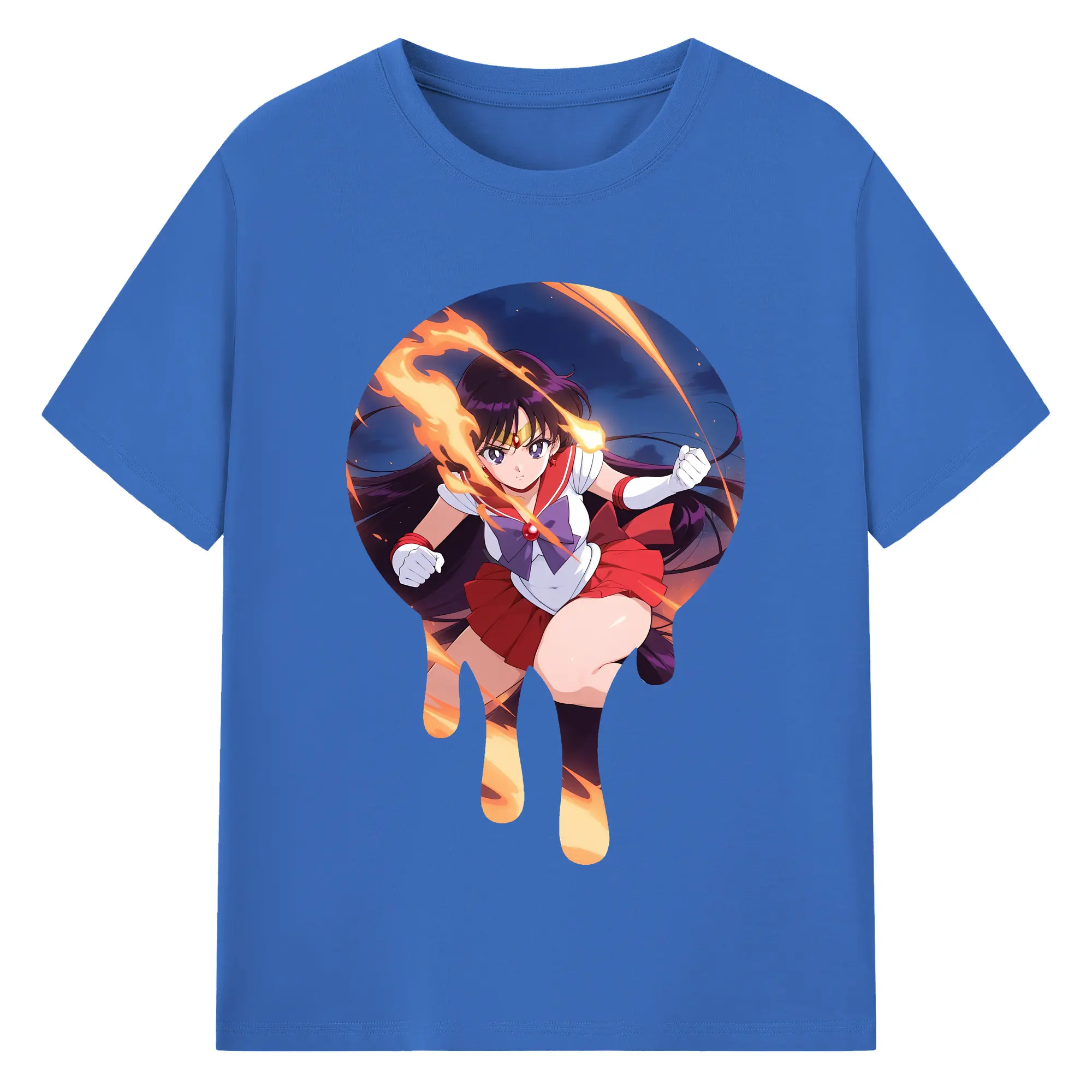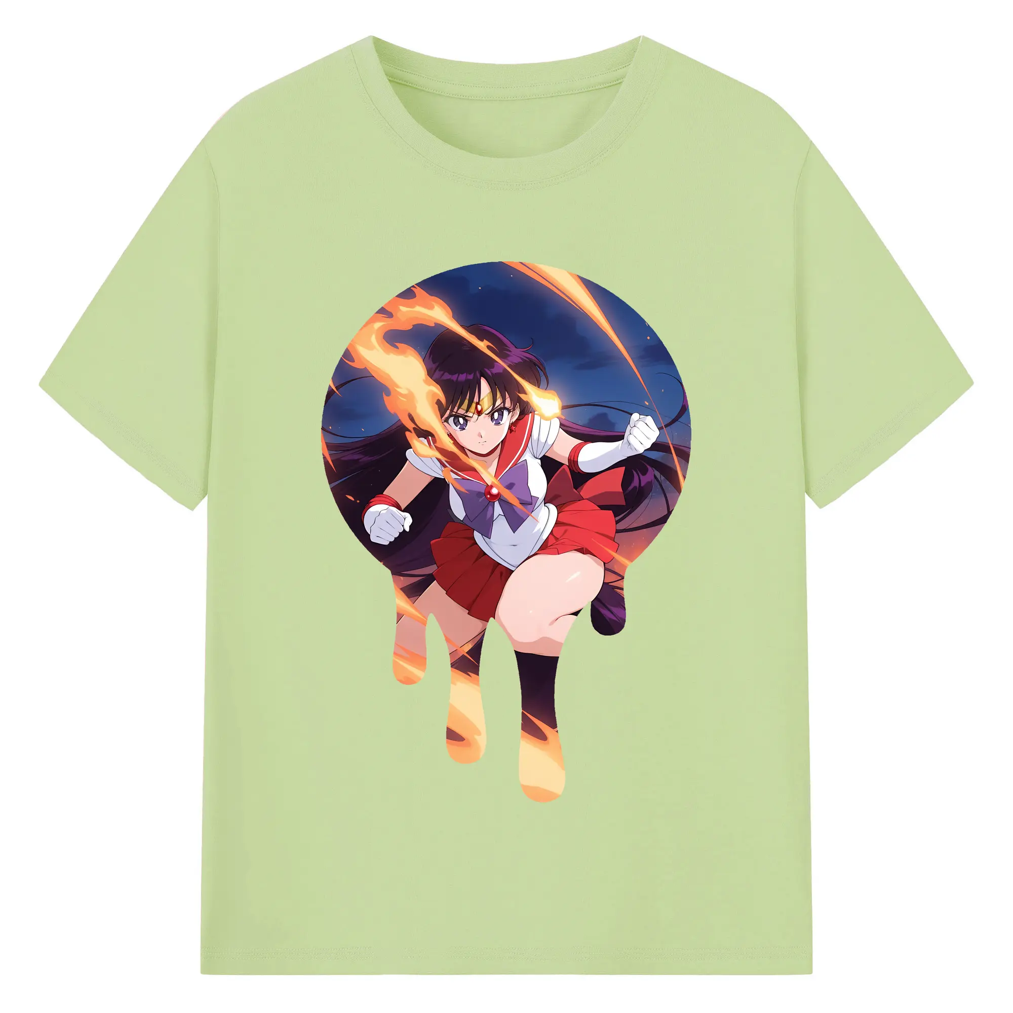 美少女戦士セーラームーン グッズ 火野 レイ - 綿100% 半袖Tシャツ ・ バックプリント ・ 快適 通気性 ・ 日常使い 散歩 スポーツ用
