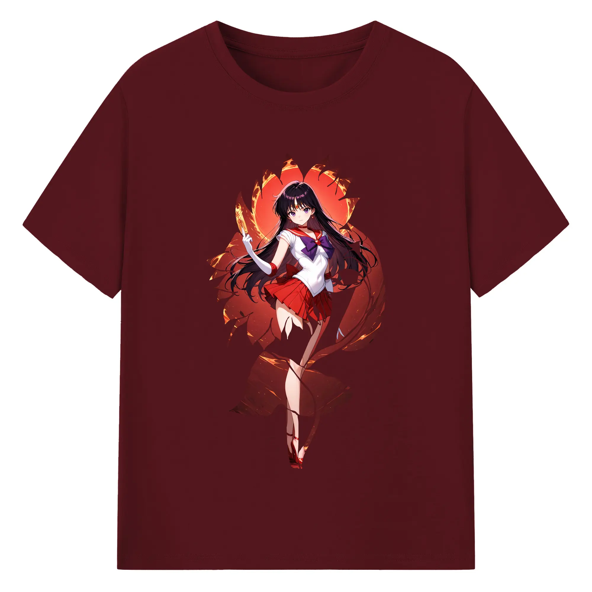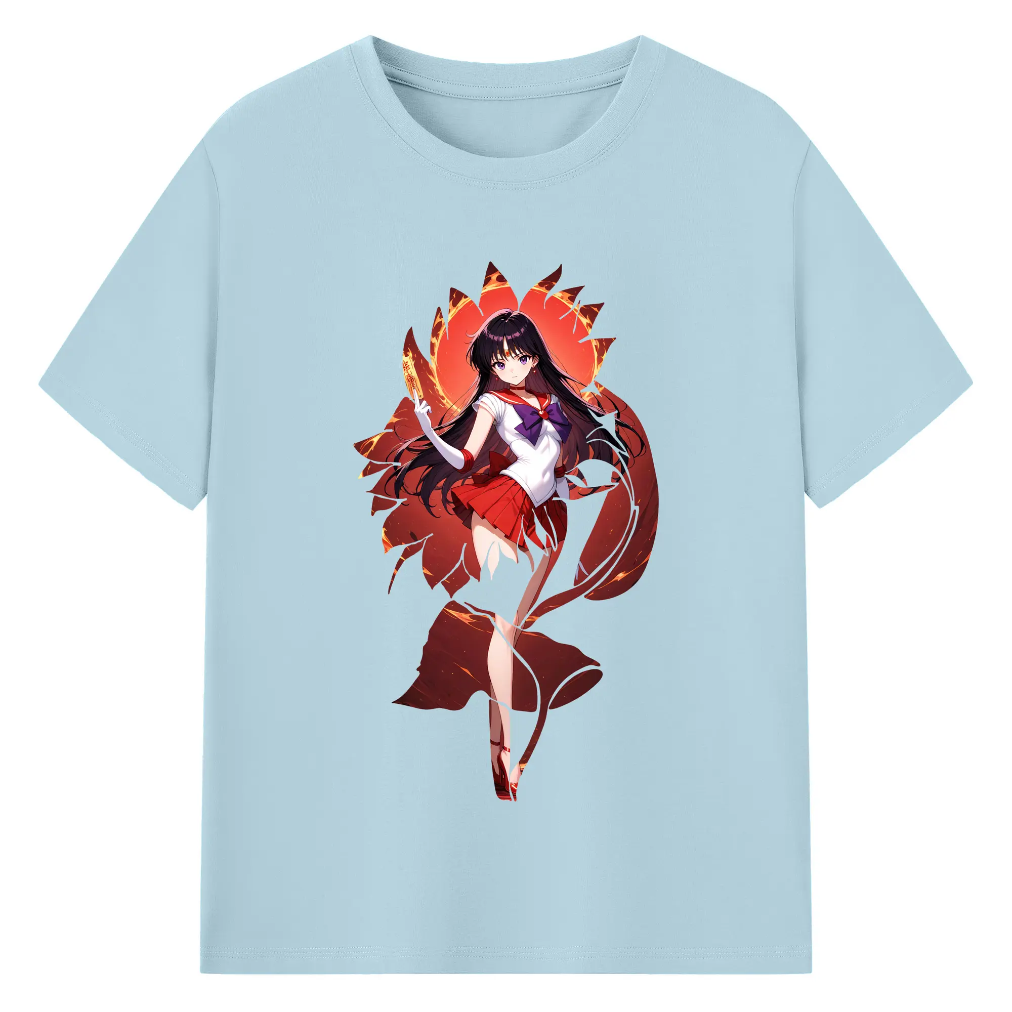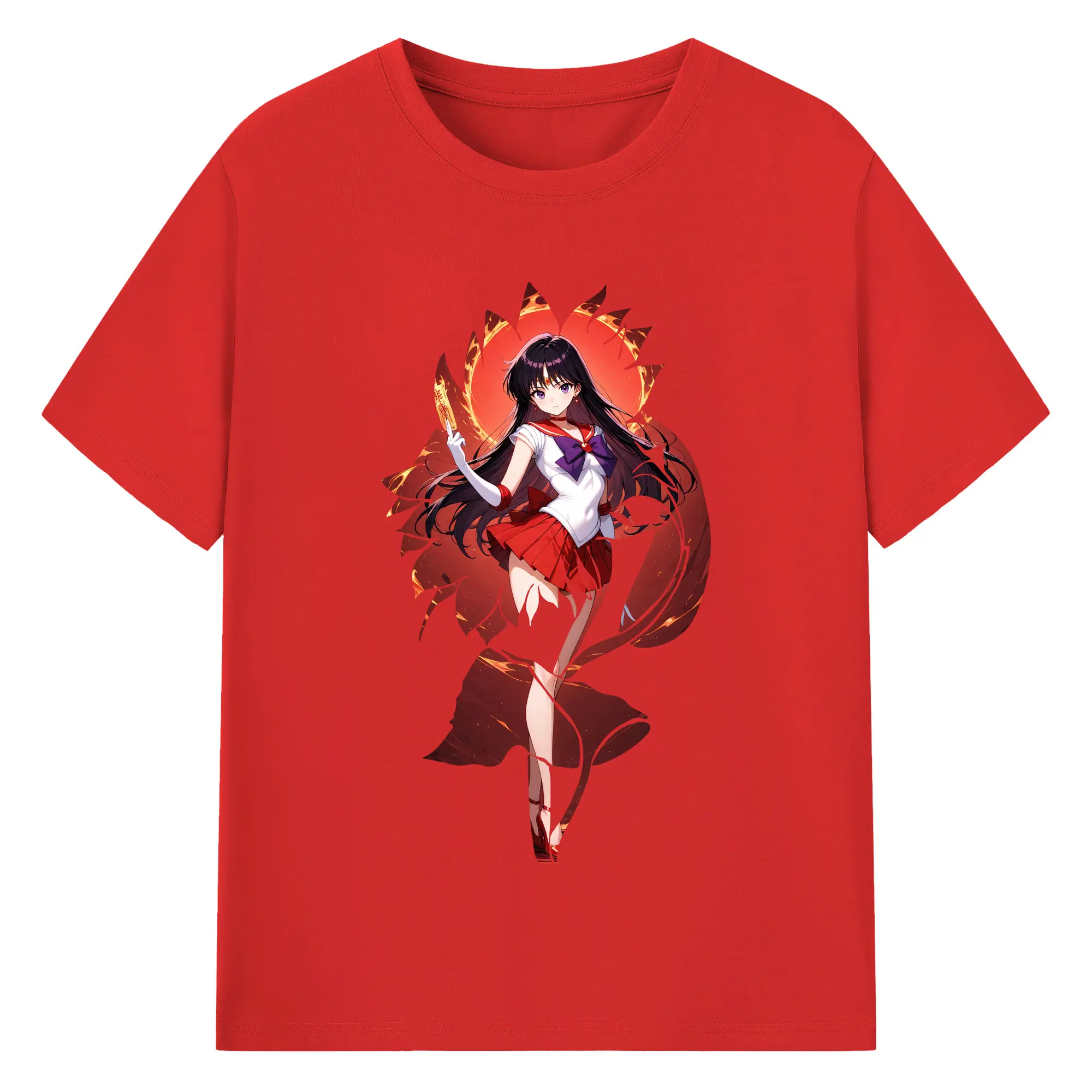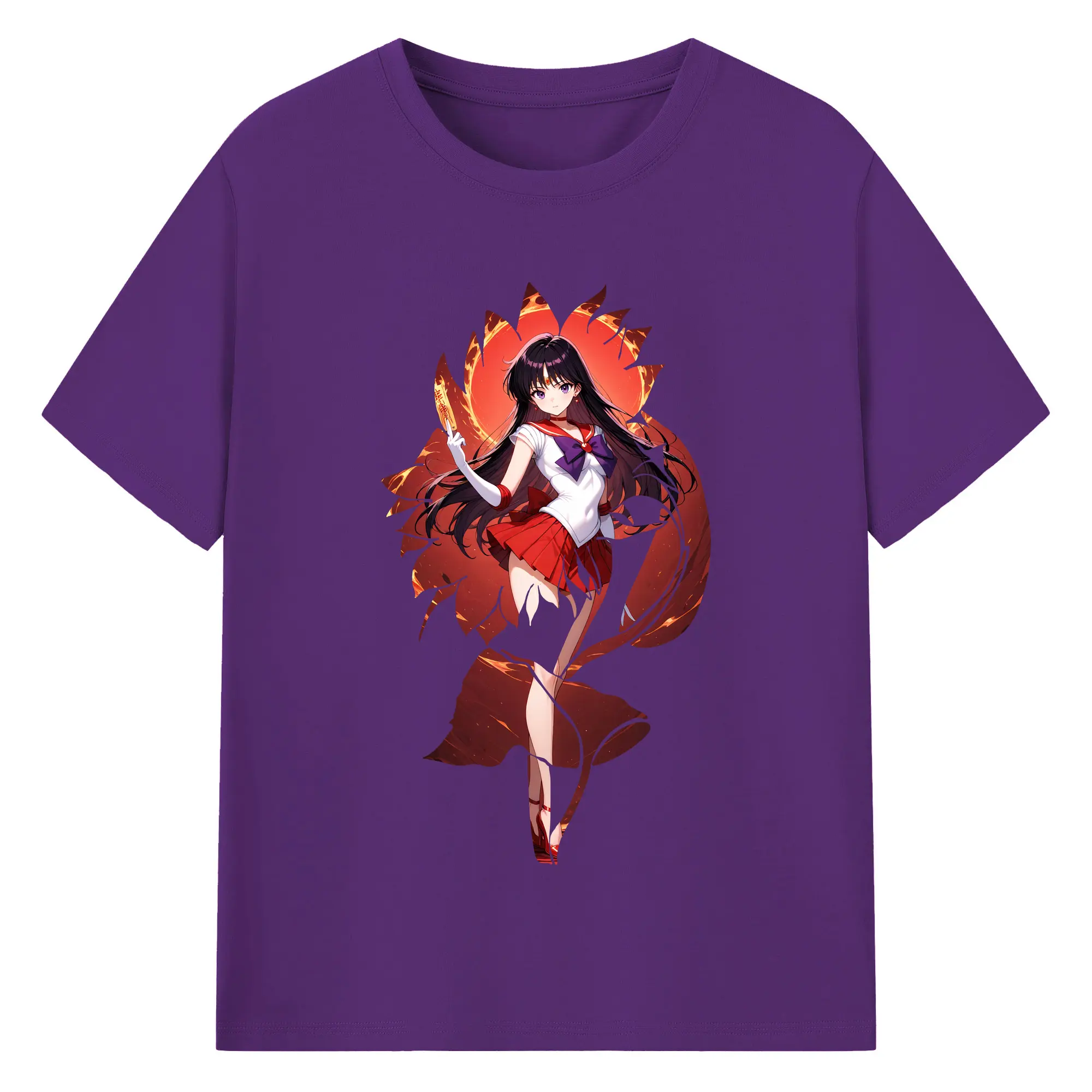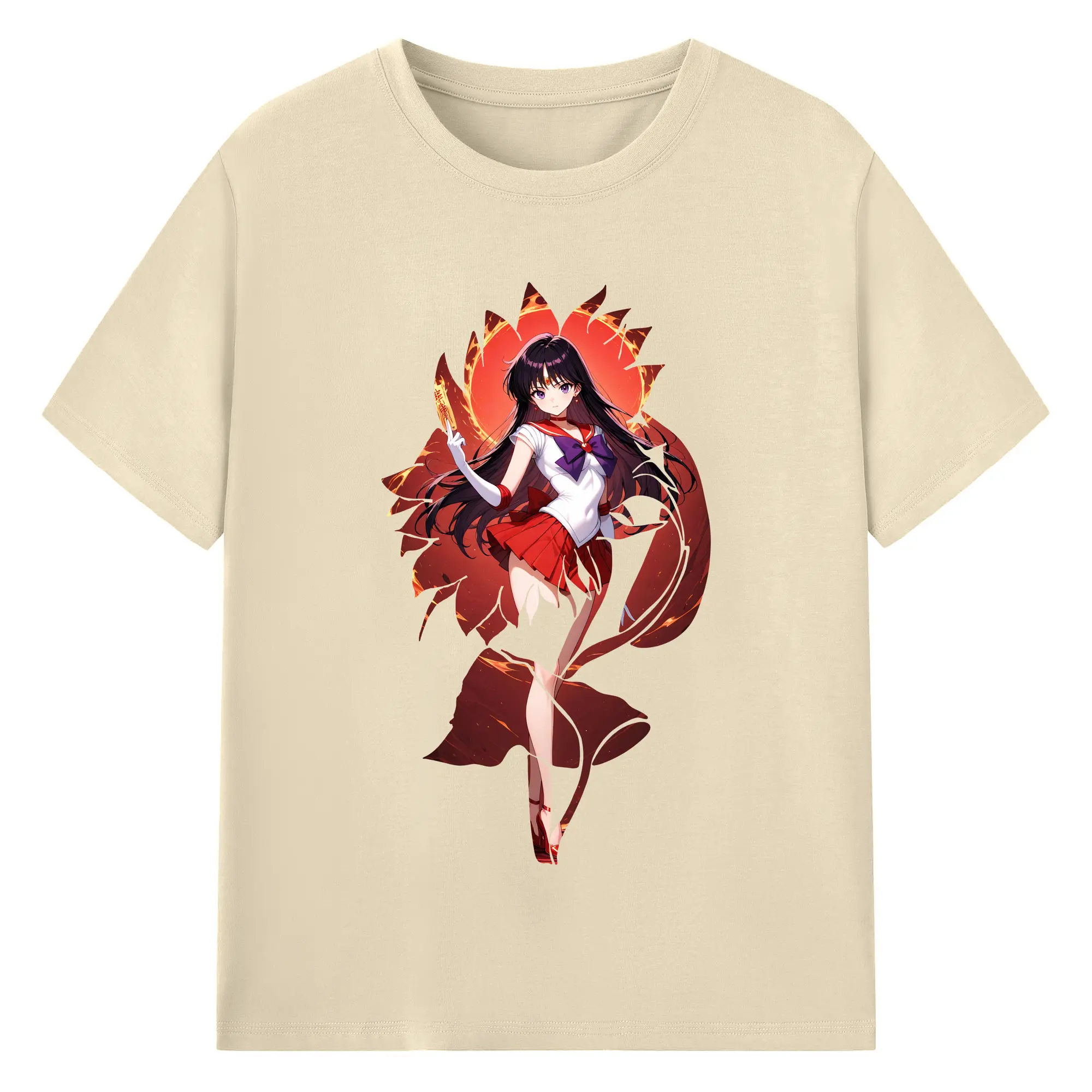 美少女戦士セーラームーン グッズ 火野 レイ - 綿100% 半袖Tシャツ ・ バックプリント ・ 快適 通気性 ・ 日常使い 散歩 スポーツ用