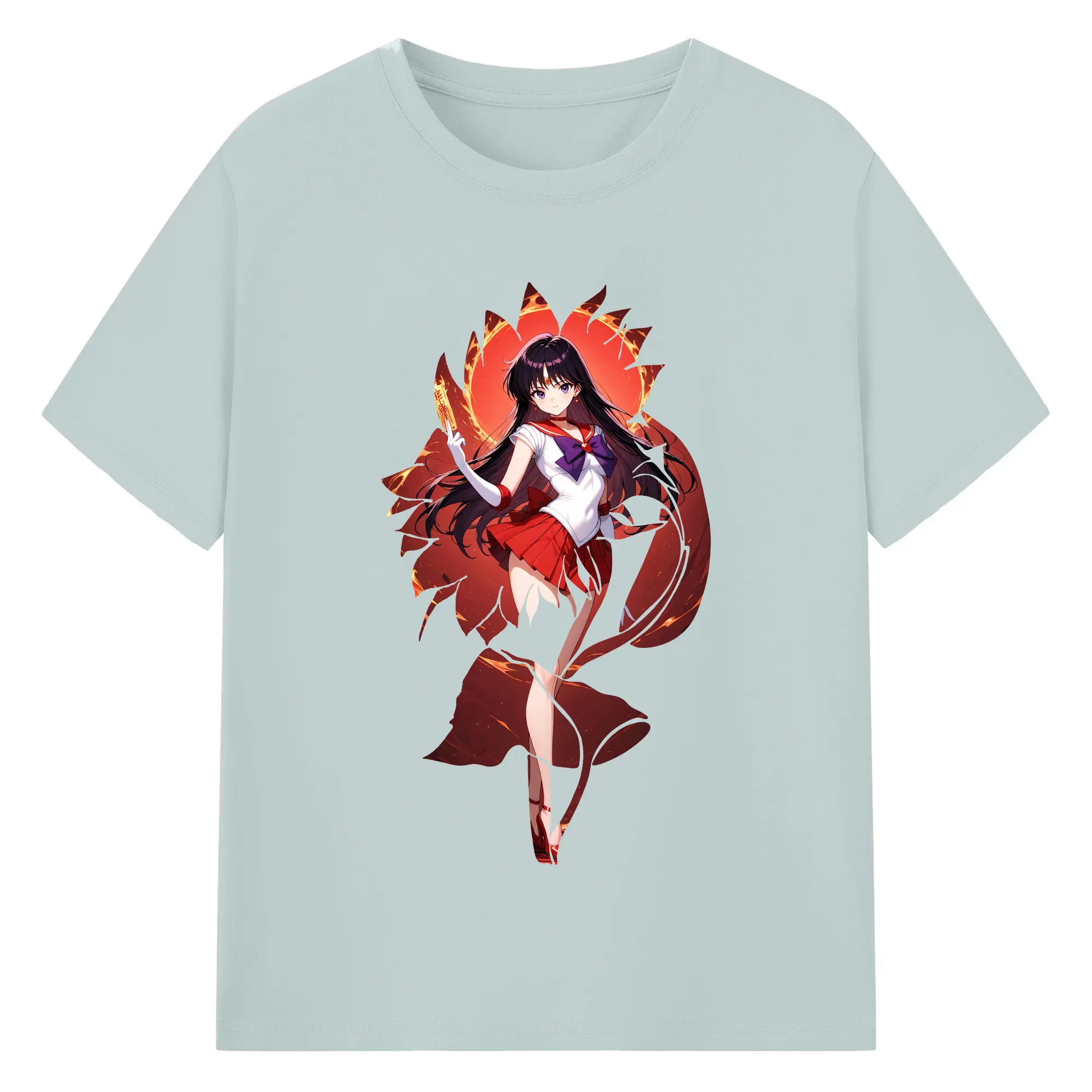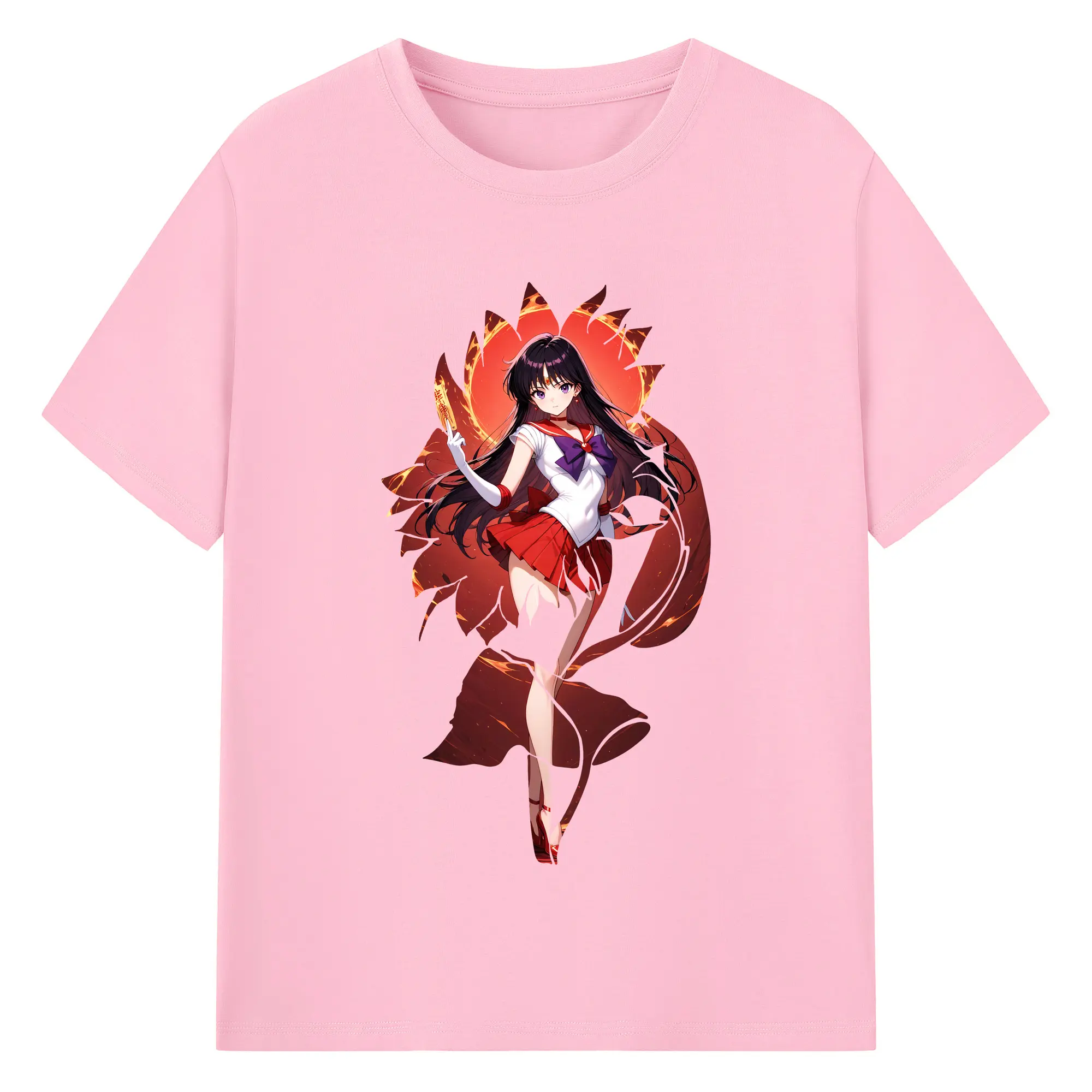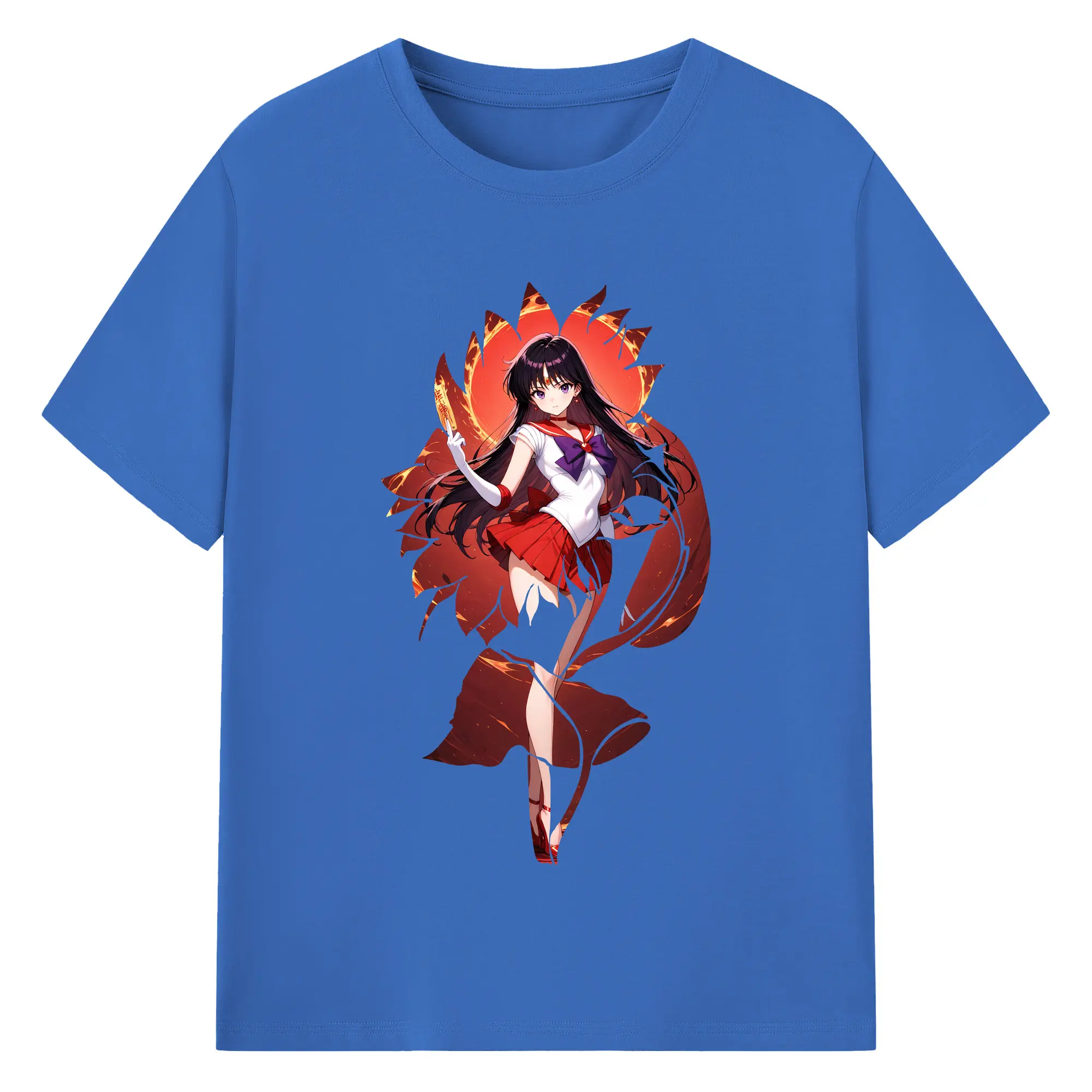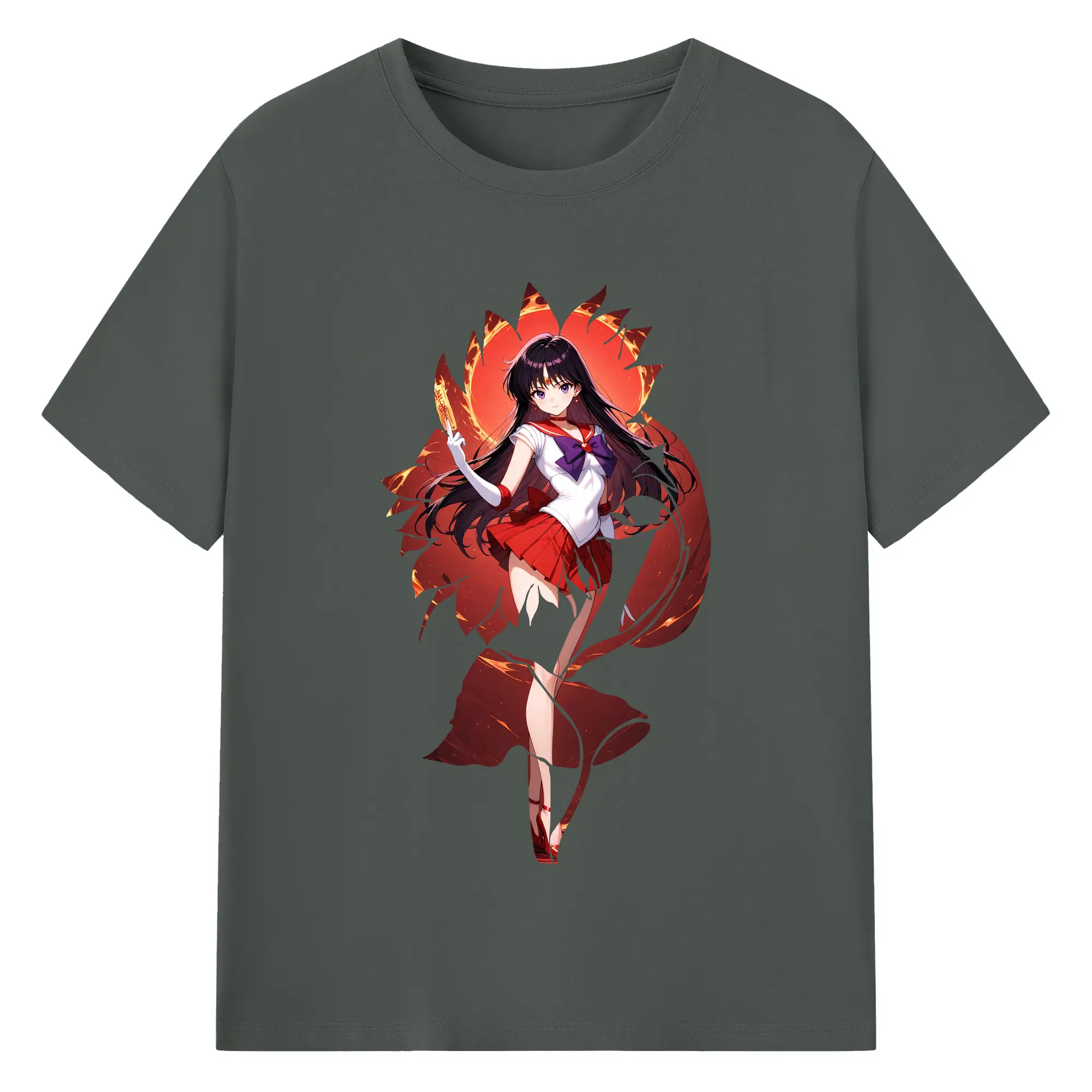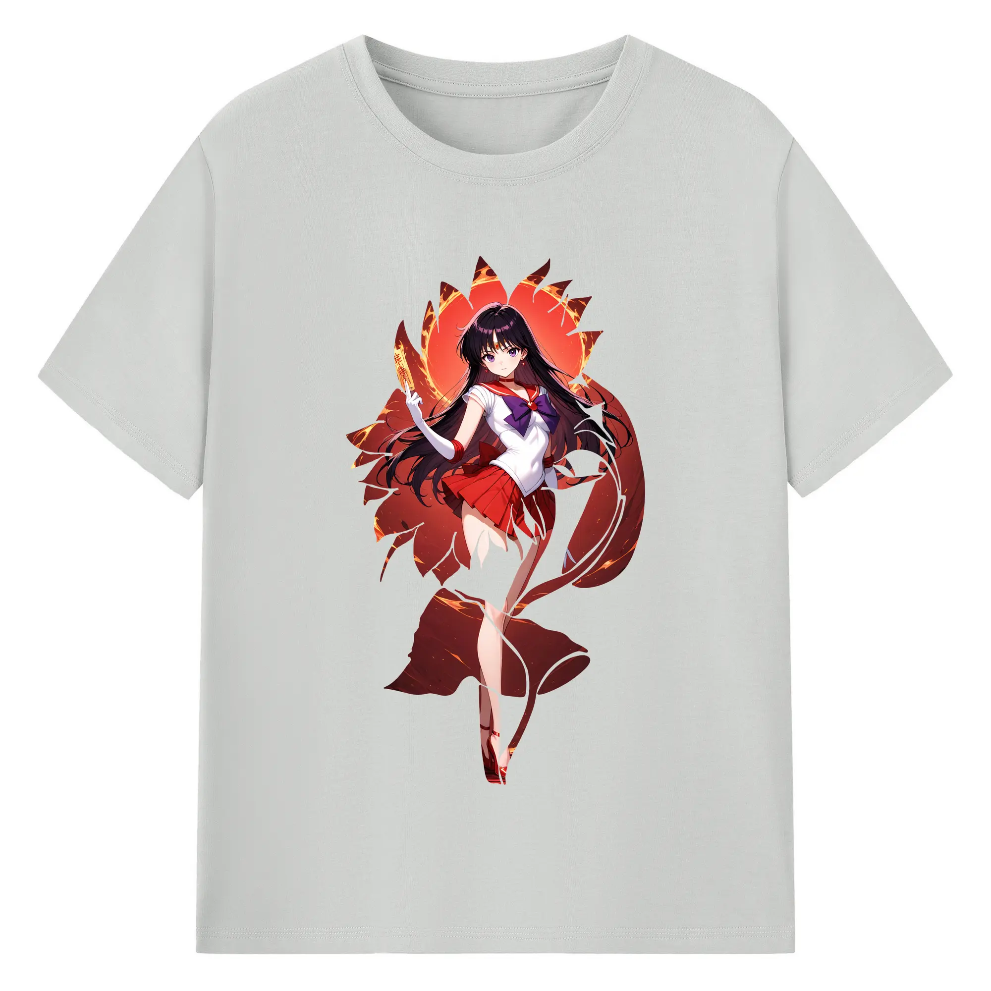 美少女戦士セーラームーン グッズ 火野 レイ - 綿100% 半袖Tシャツ ・ バックプリント ・ 快適 通気性 ・ 日常使い 散歩 スポーツ用