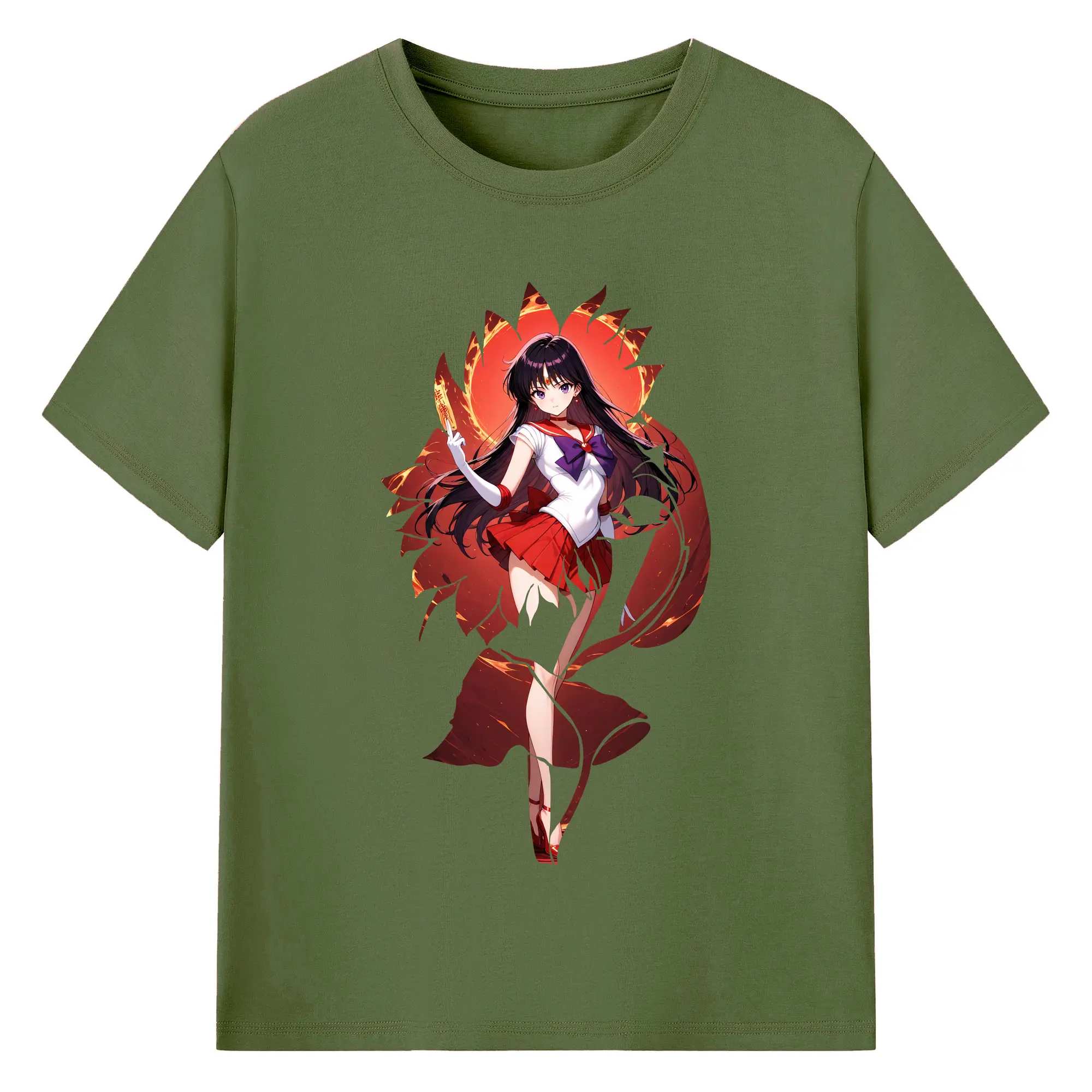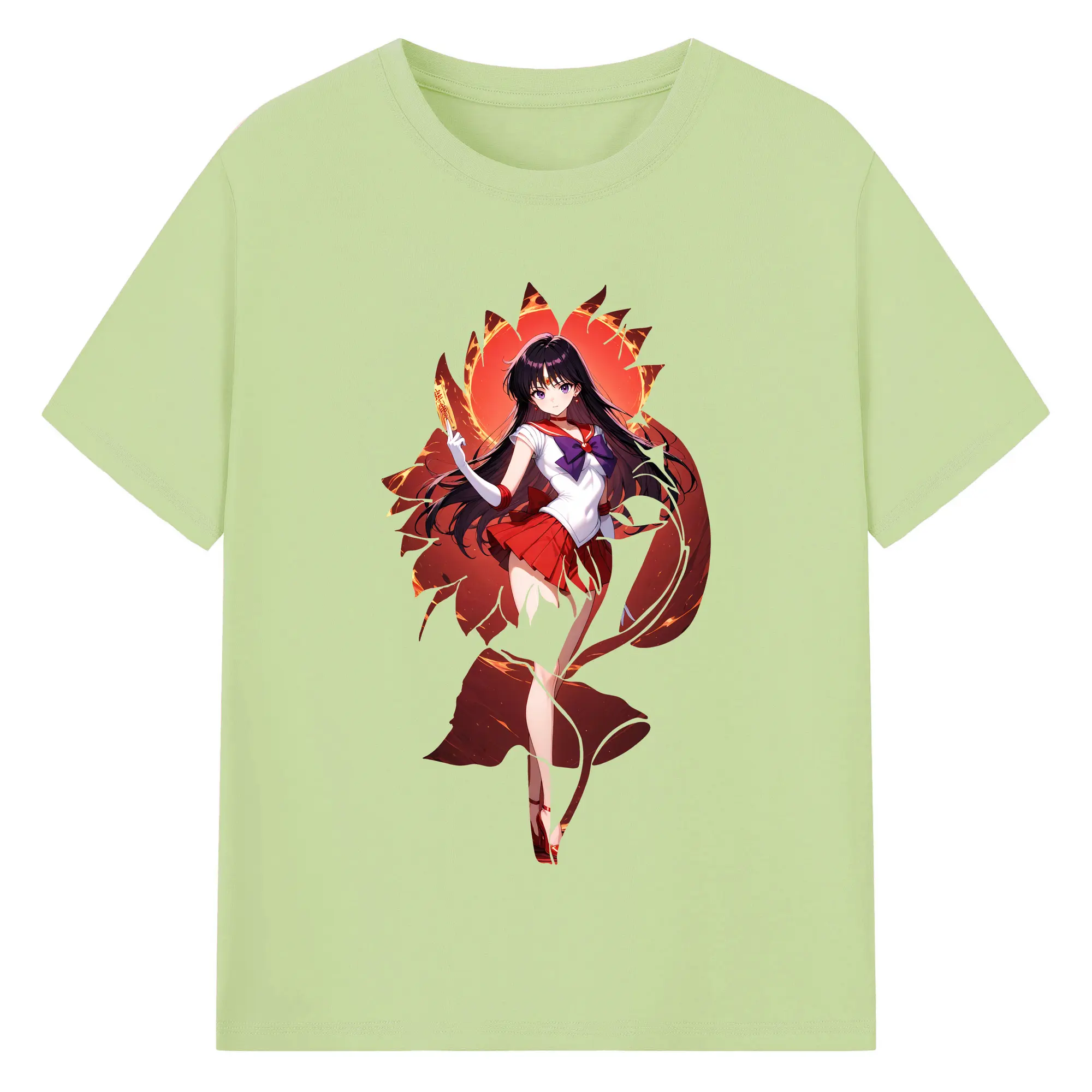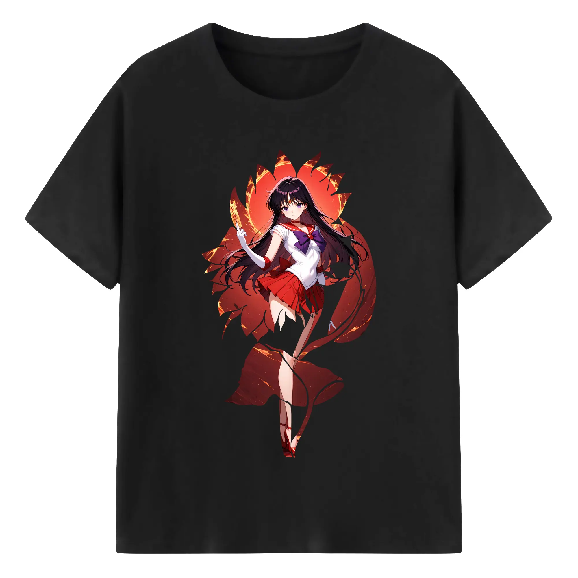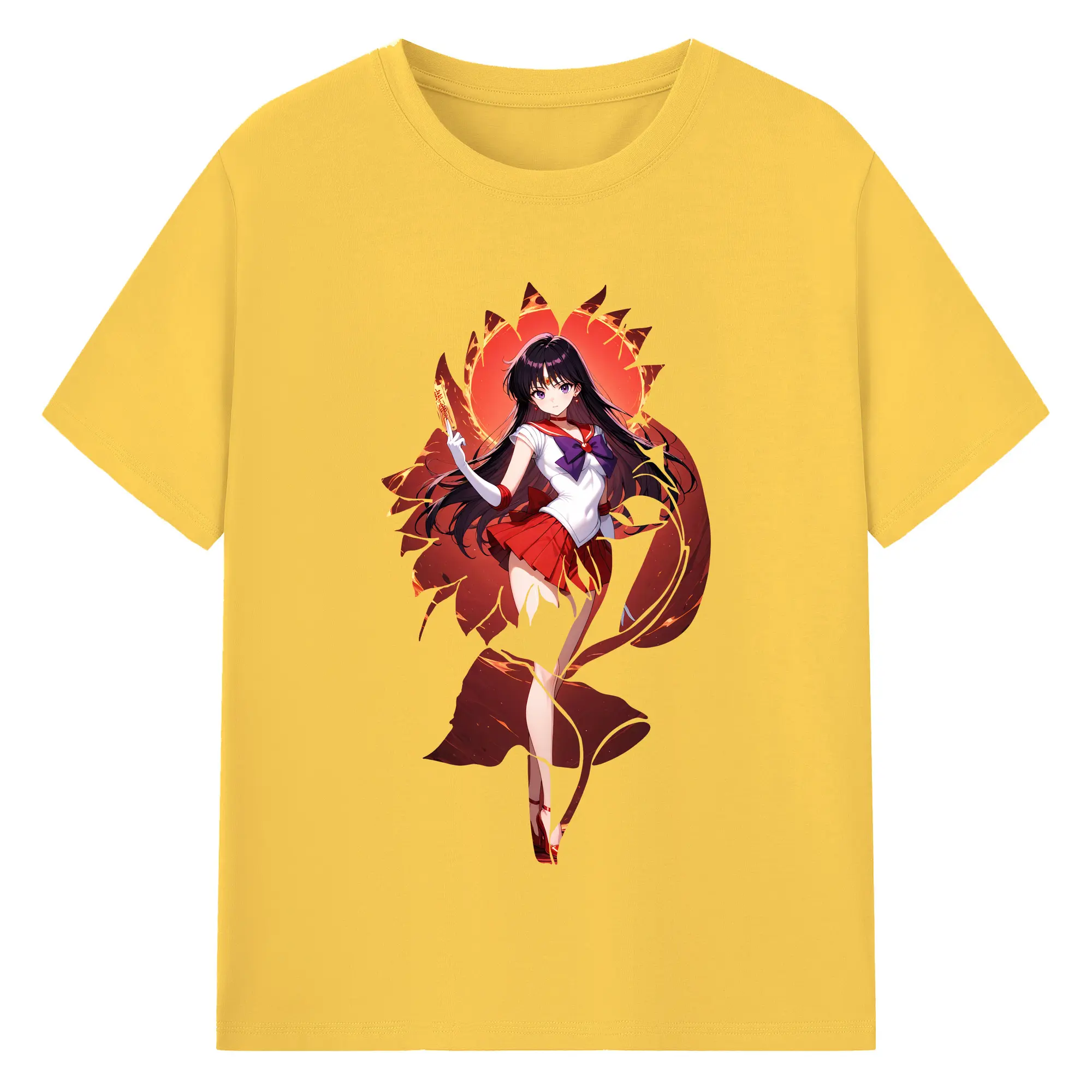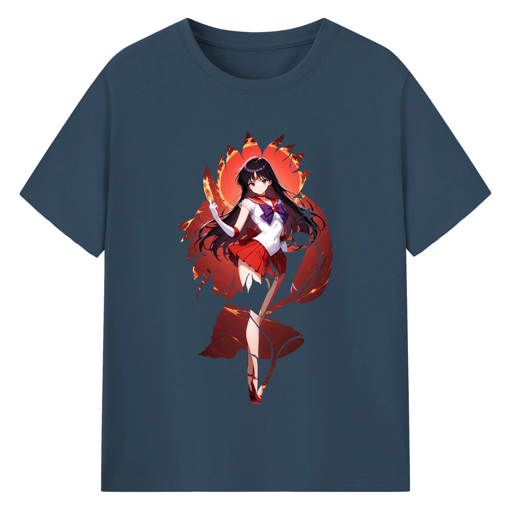 美少女戦士セーラームーン グッズ 火野 レイ - 綿100% 半袖Tシャツ ・ バックプリント ・ 快適 通気性 ・ 日常使い 散歩 スポーツ用