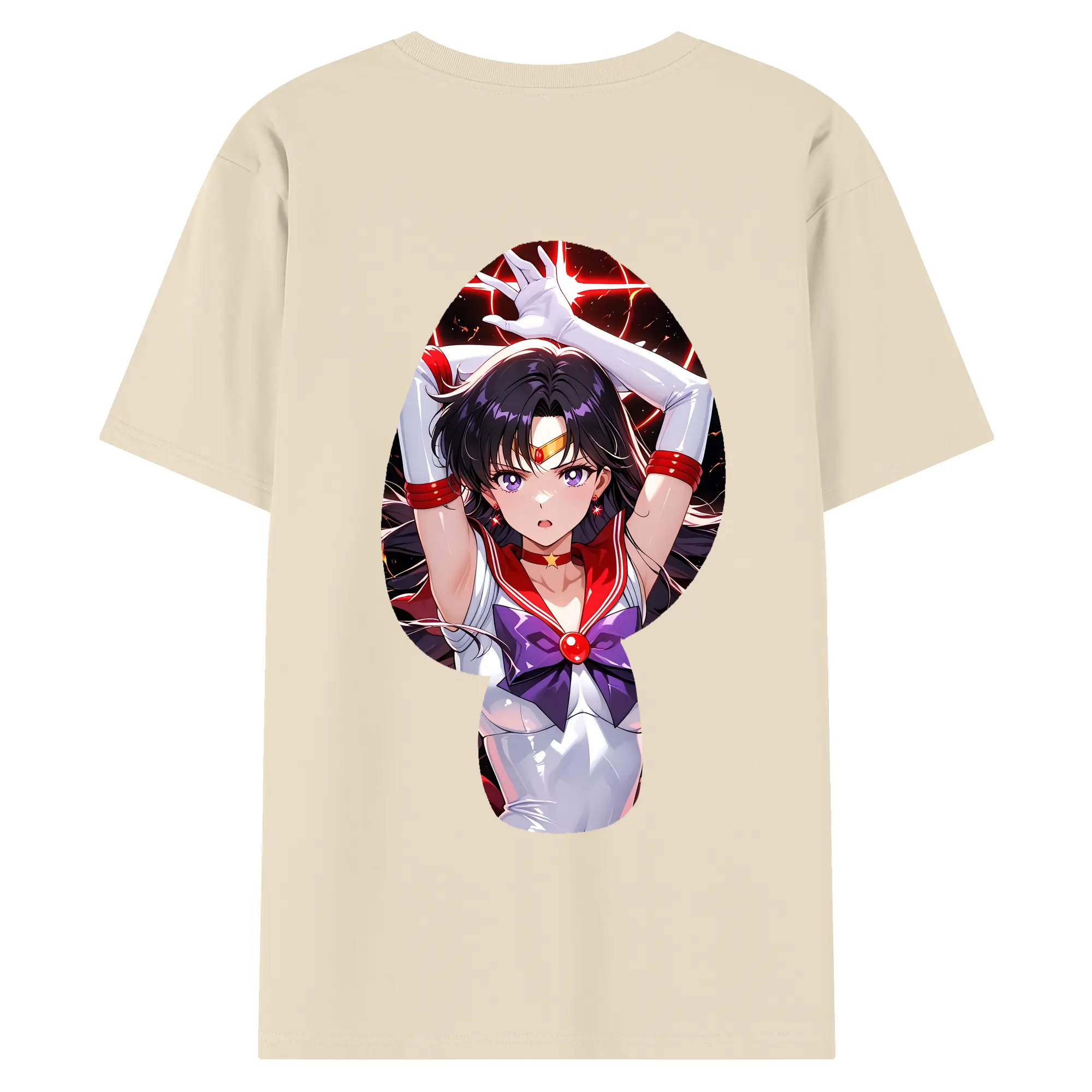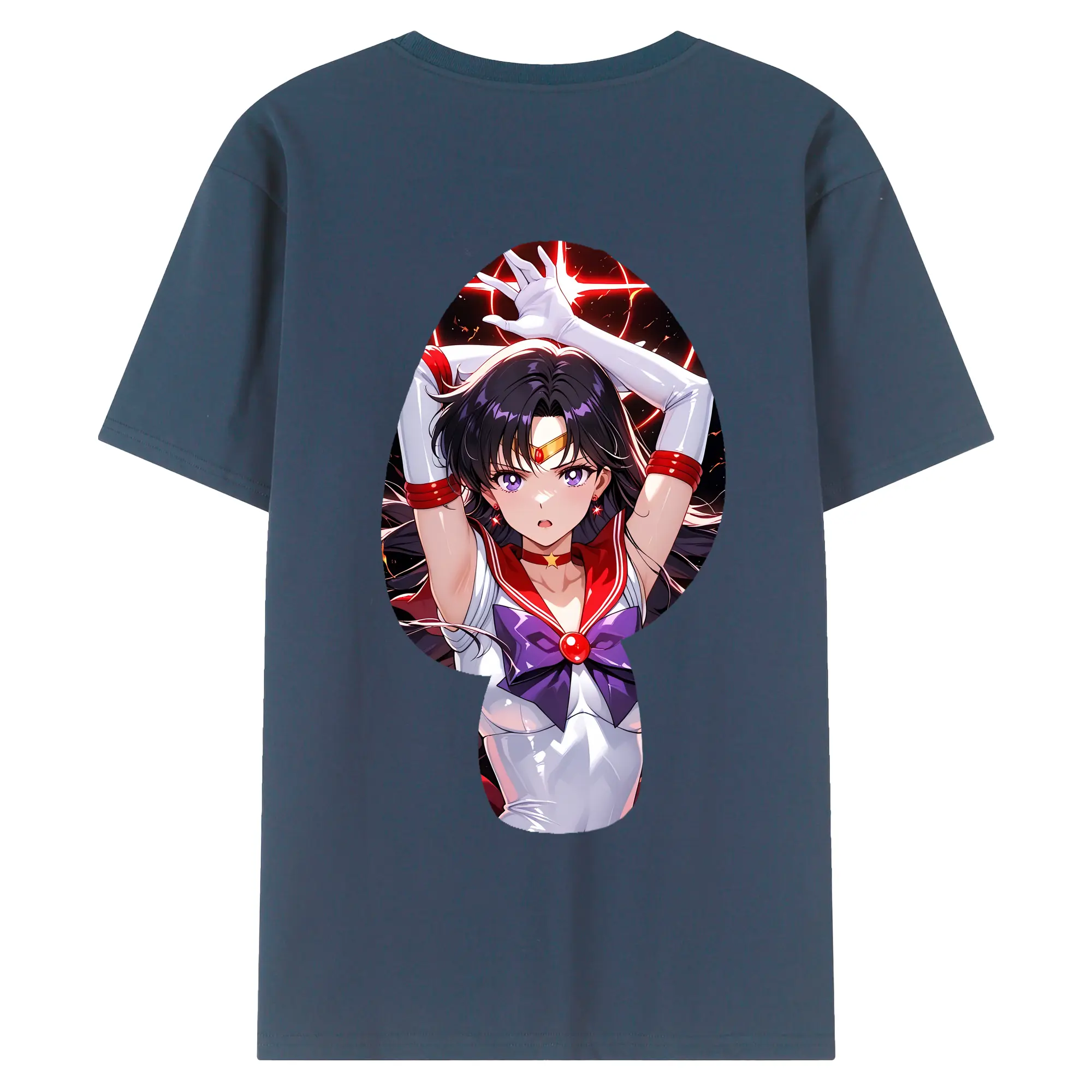 美少女戦士セーラームーン グッズ 火野 レイ - 綿100% ヴィンテージ風 半袖Tシャツ ・ 背面プリント ・ 柔らか肌触り ・ 通気性 快適 ・ スポーツ カジュアル 外出用