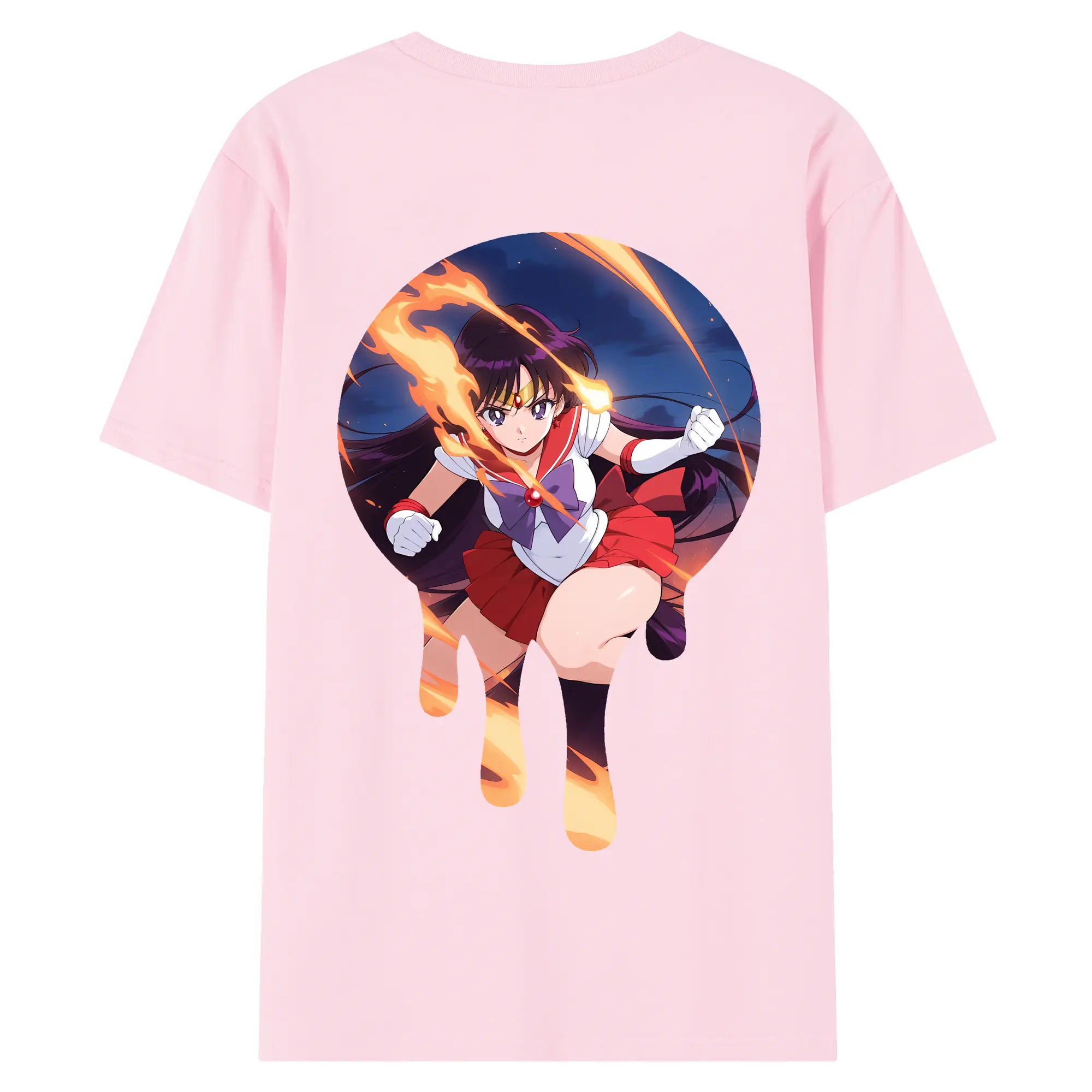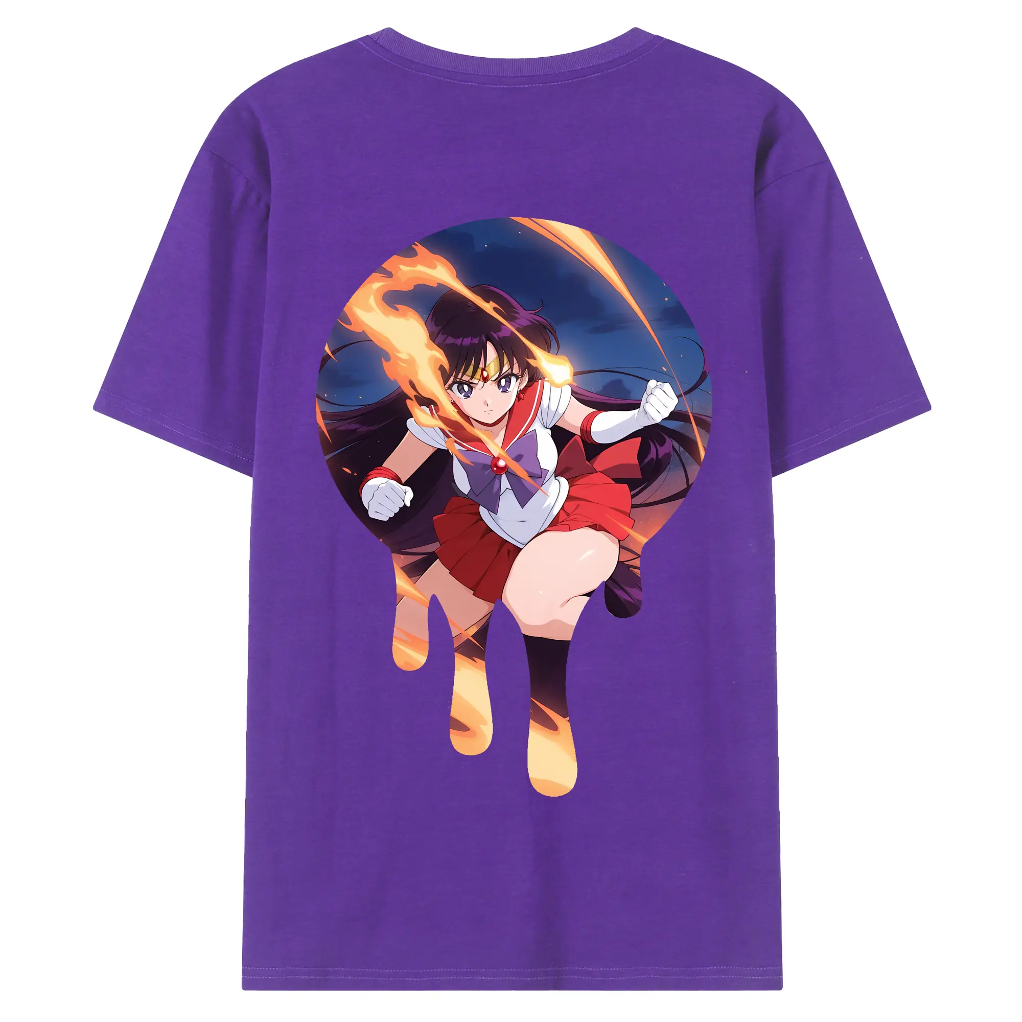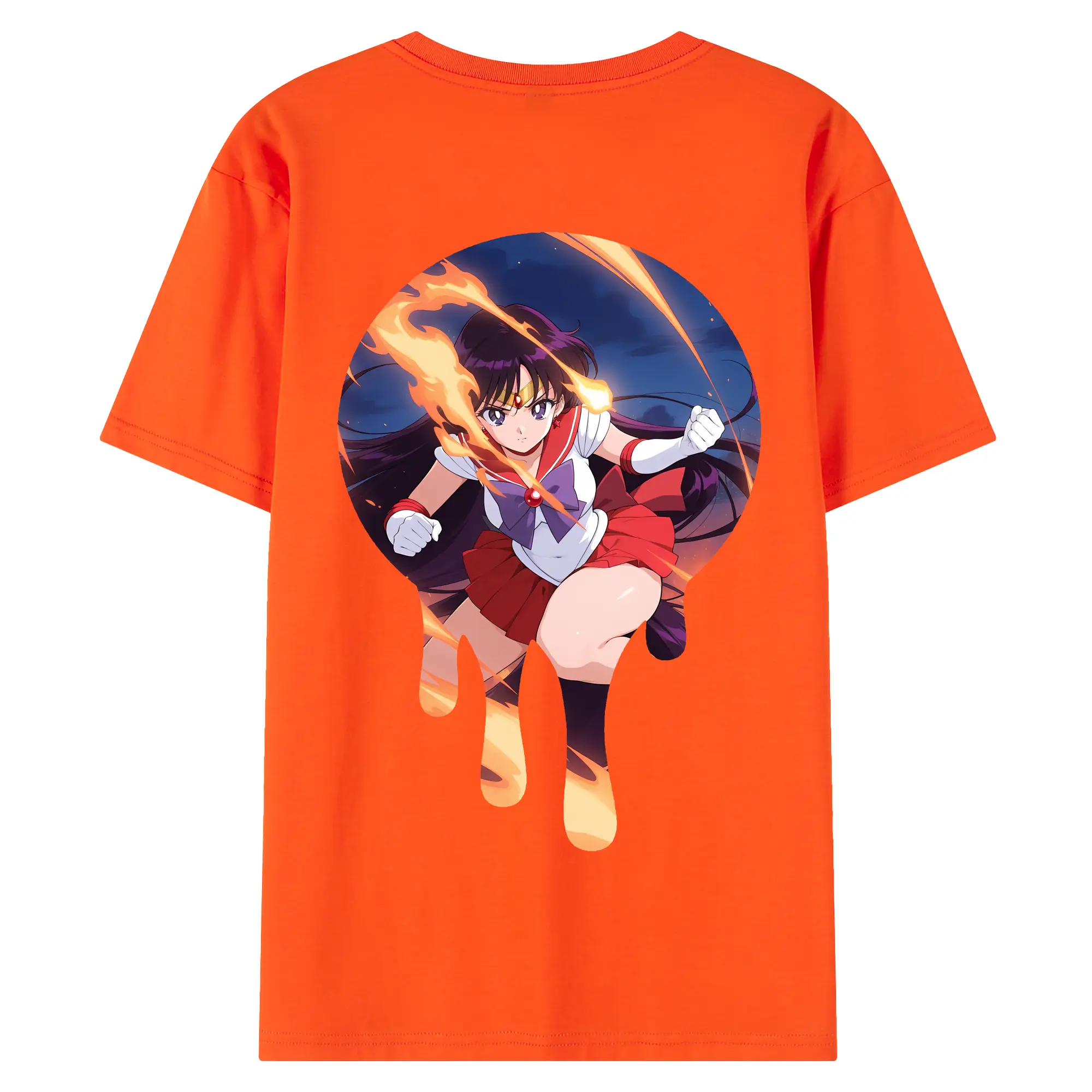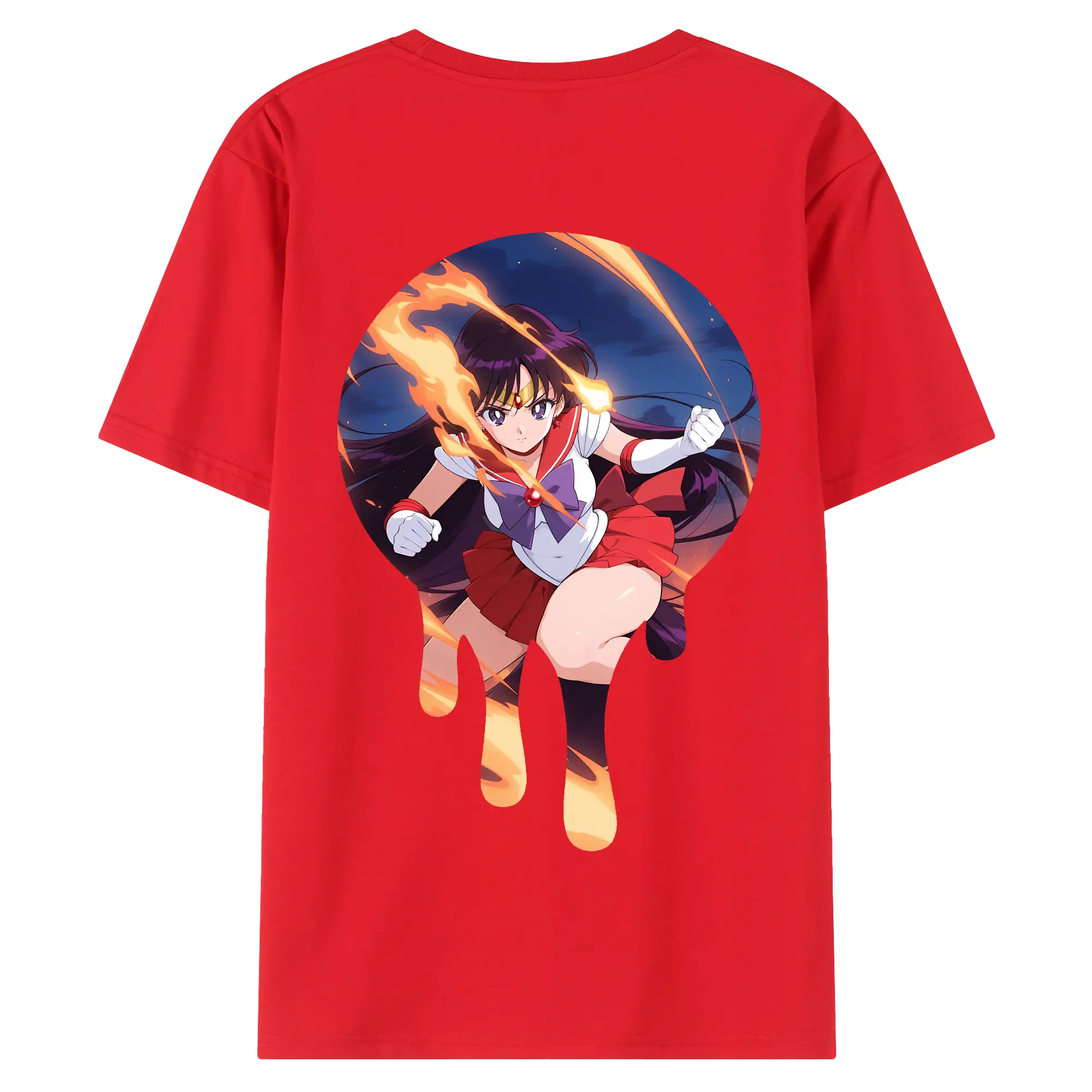 美少女戦士セーラームーン グッズ 火野 レイ - 綿100% ヴィンテージ風 半袖Tシャツ ・ 背面プリント ・ 柔らか肌触り ・ 通気性 快適 ・ スポーツ カジュアル 外出用