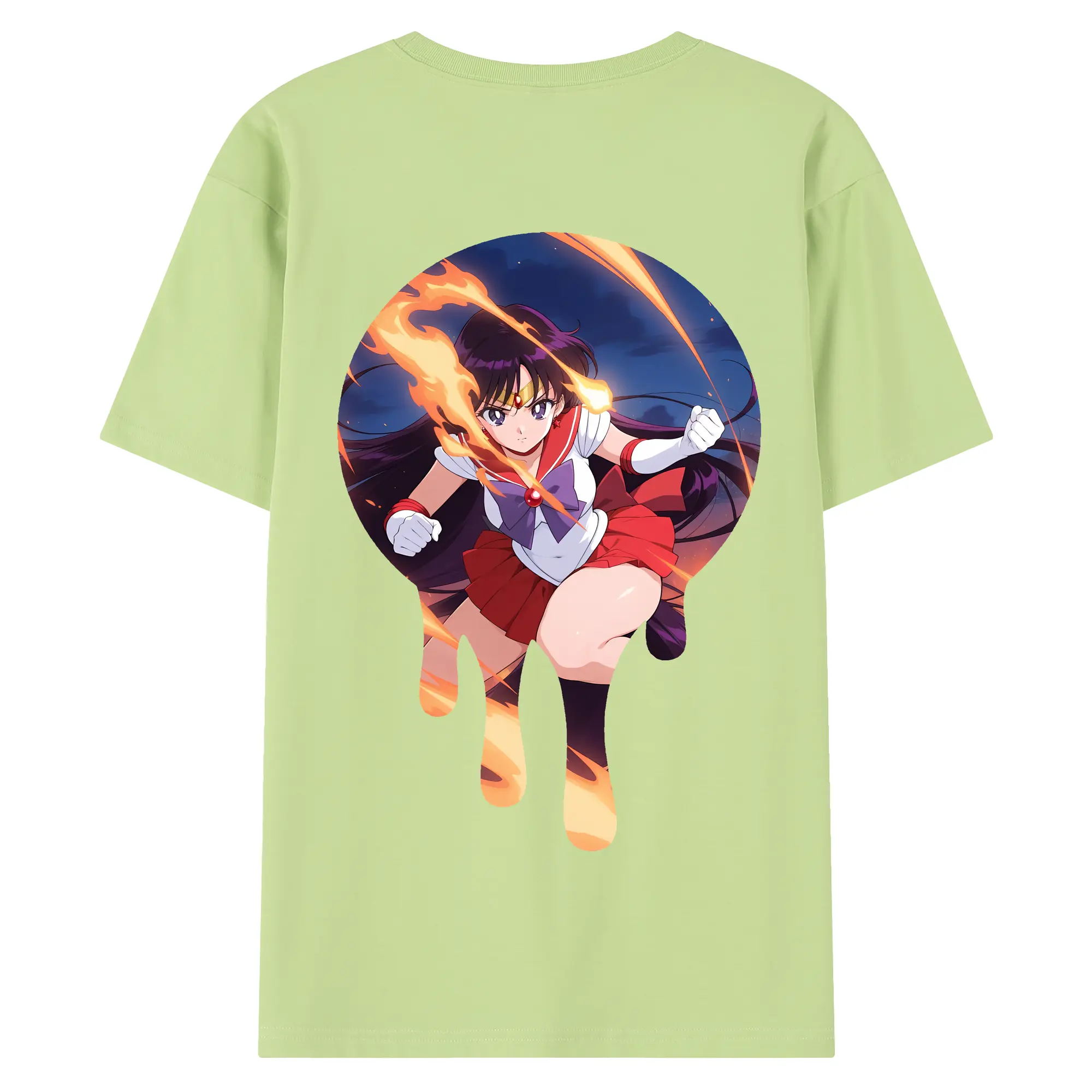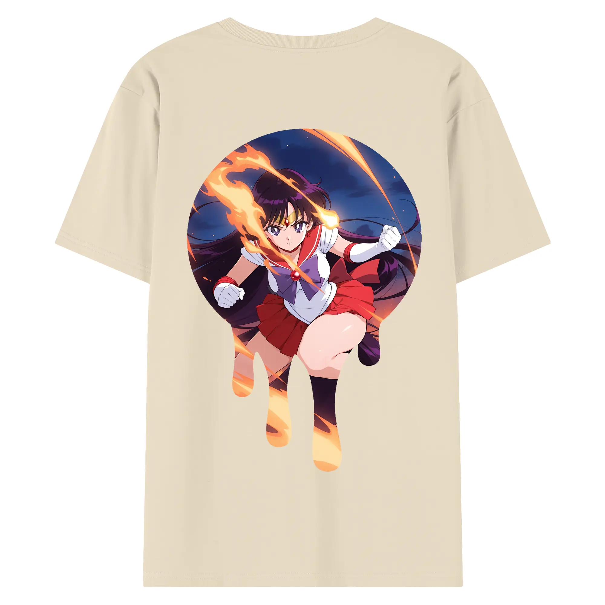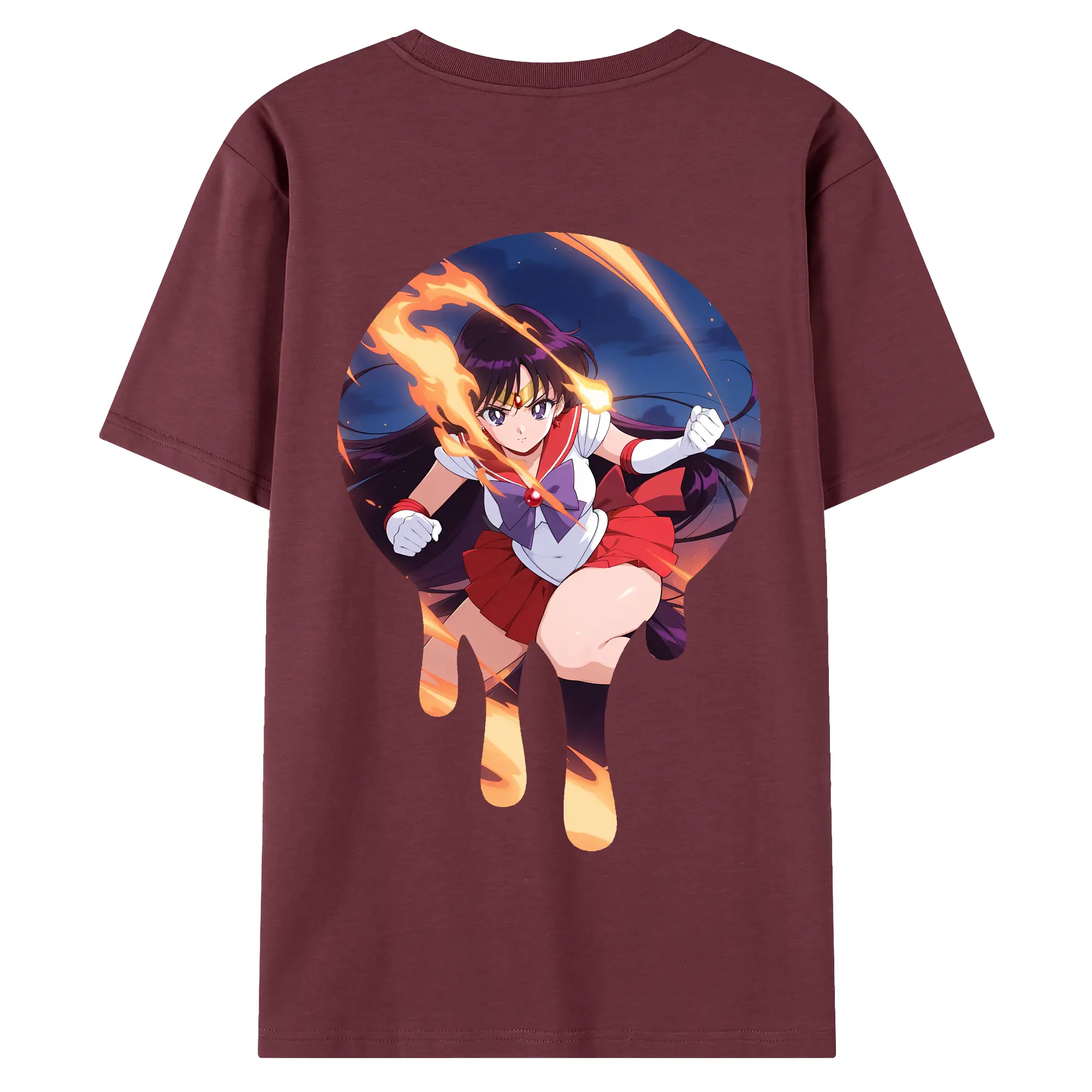 美少女戦士セーラームーン グッズ 火野 レイ - 綿100% ヴィンテージ風 半袖Tシャツ ・ 背面プリント ・ 柔らか肌触り ・ 通気性 快適 ・ スポーツ カジュアル 外出用
