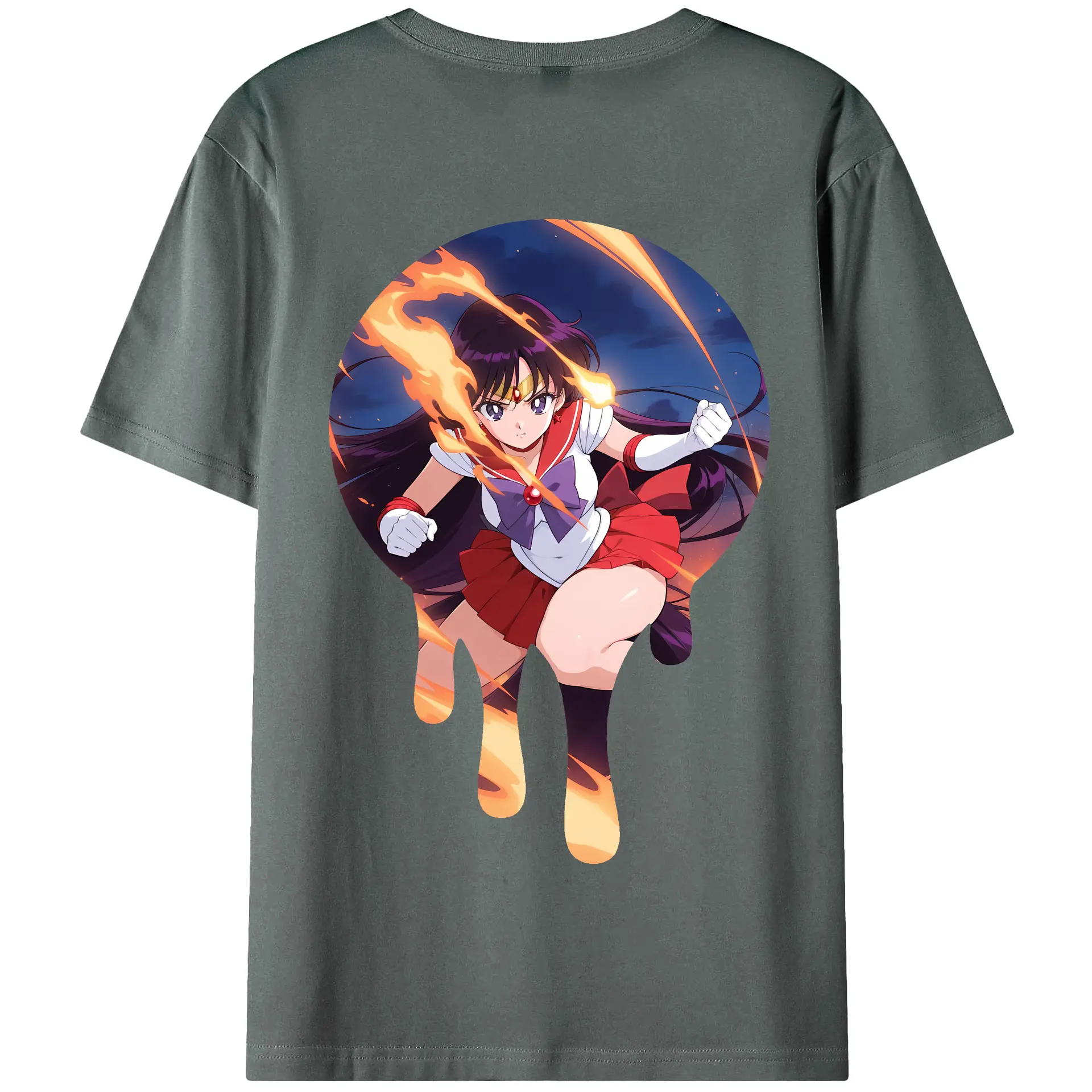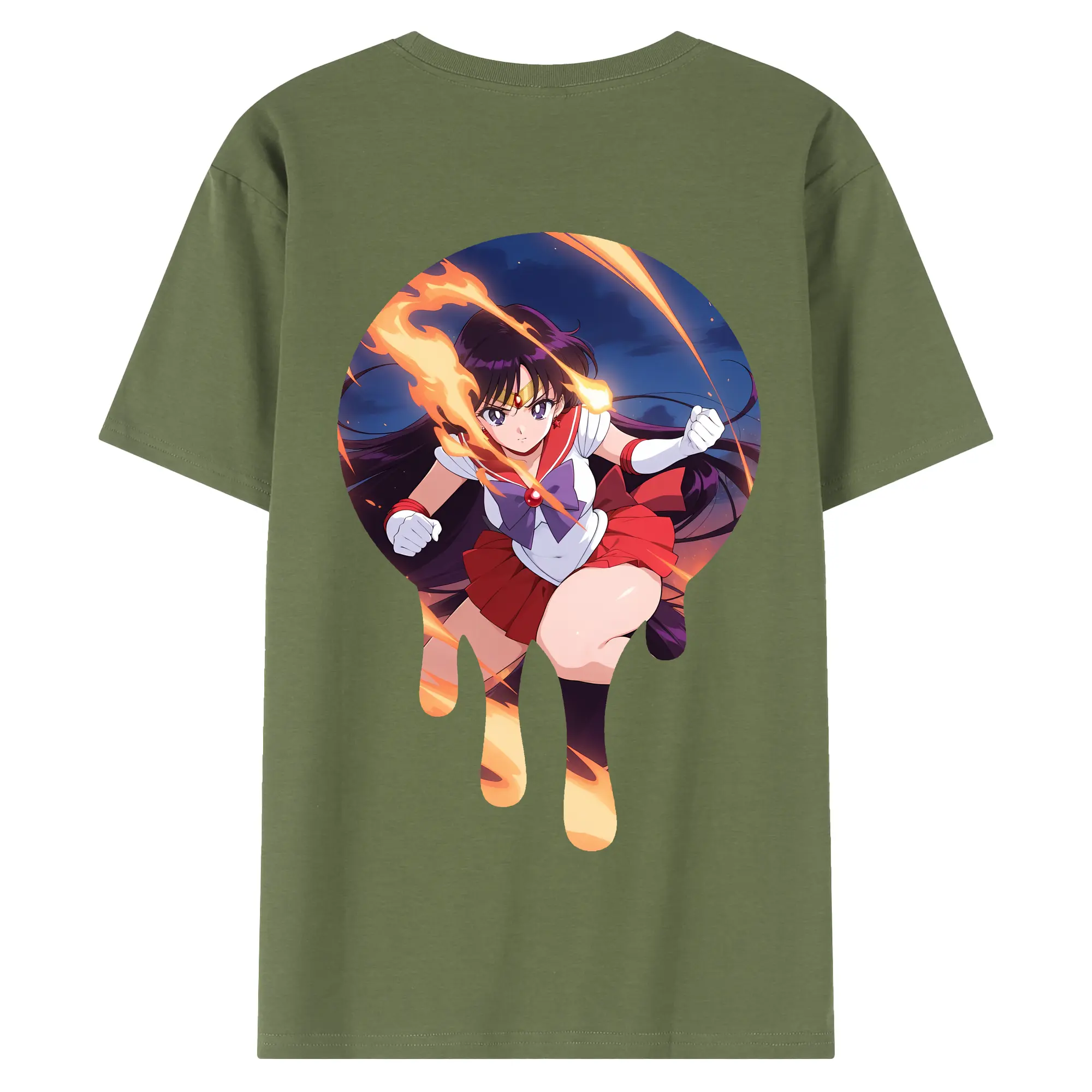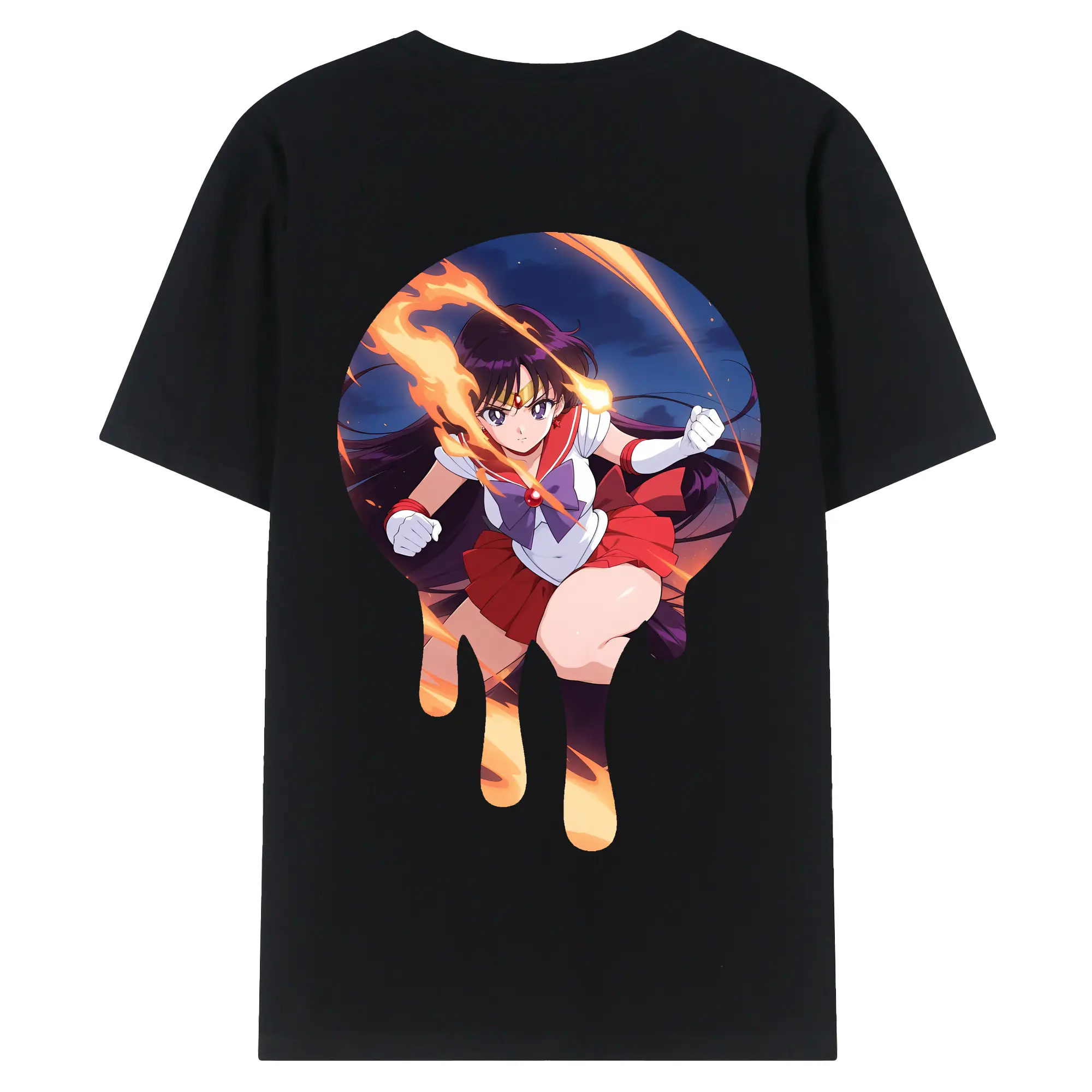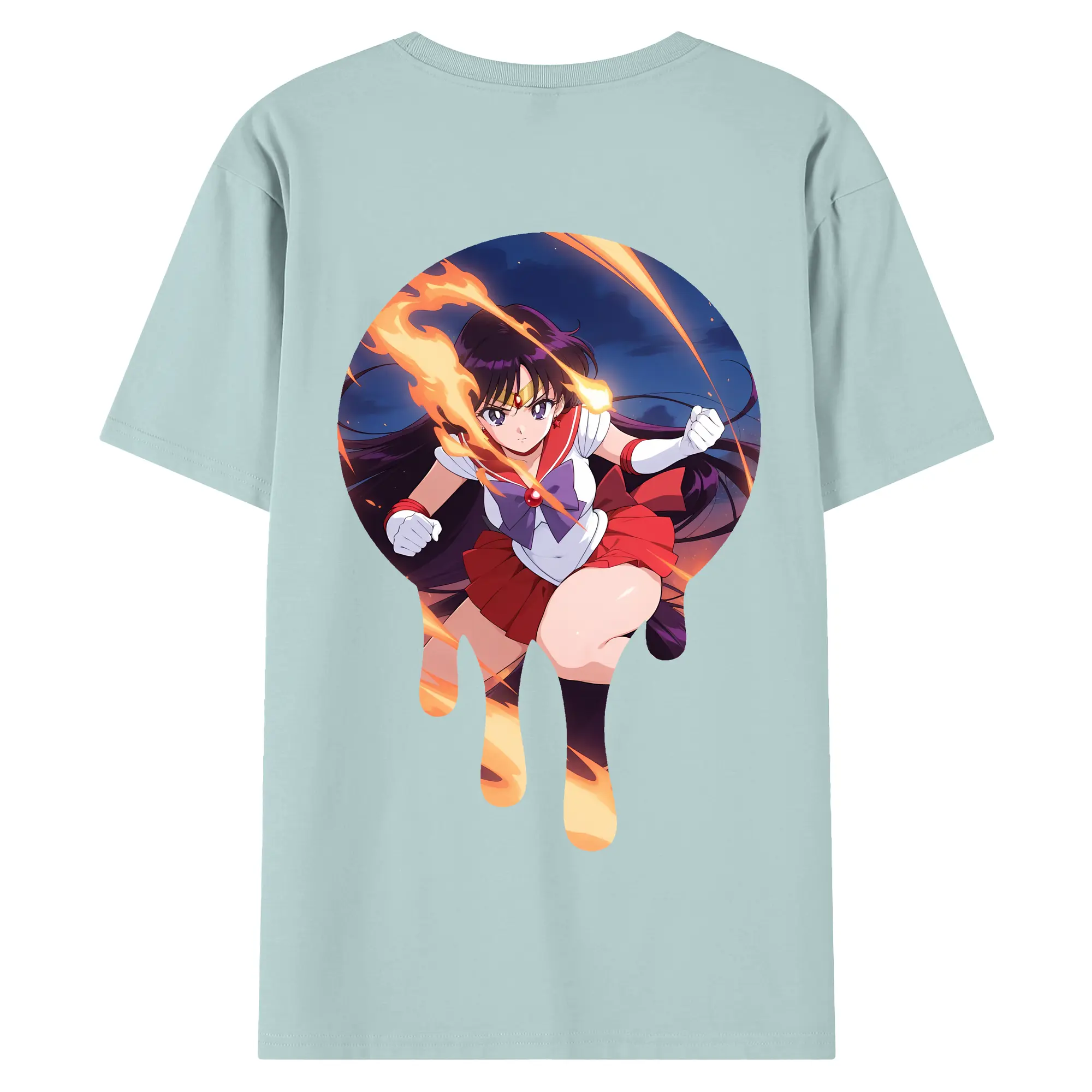美少女戦士セーラームーン グッズ 火野 レイ - 綿100% ヴィンテージ風 半袖Tシャツ ・ 背面プリント ・ 柔らか肌触り ・ 通気性 快適 ・ スポーツ カジュアル 外出用