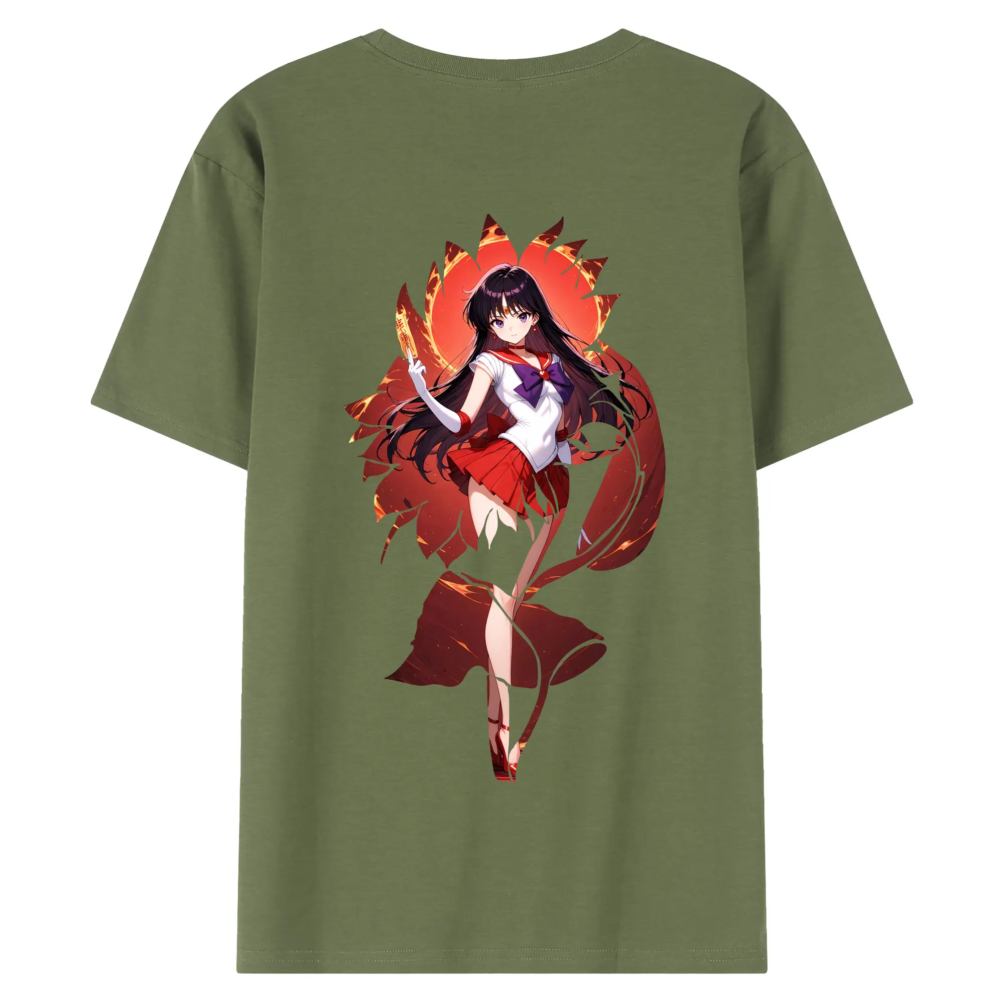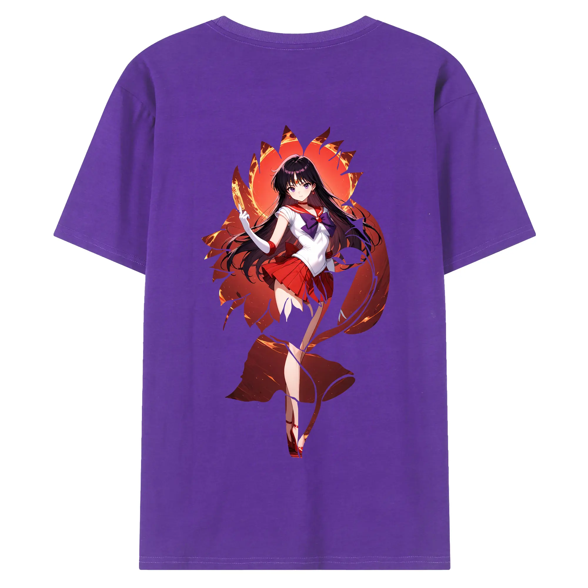 美少女戦士セーラームーン グッズ 火野 レイ - 綿100% 半袖Tシャツ ・ フロントプリント ・ 快適 通気性 ・ 日常使い 散歩 スポーツ用