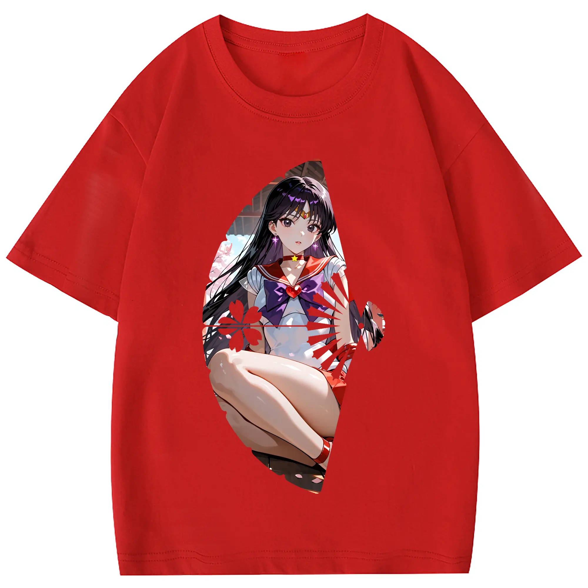 美少女戦士セーラームーン グッズ 火野 レイ - 綿100% 半袖Tシャツ ・ フロントプリント ・ 快適 通気性 ・ 日常使い 散歩 スポーツ用