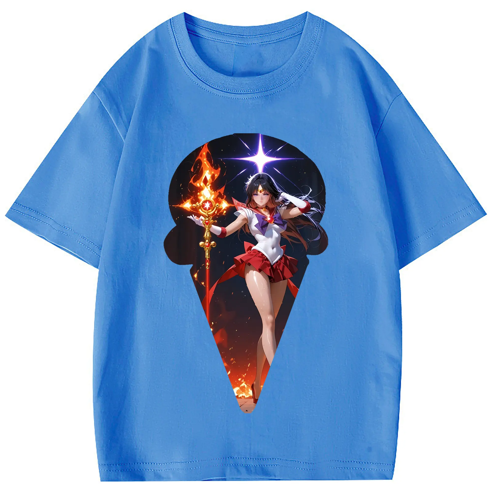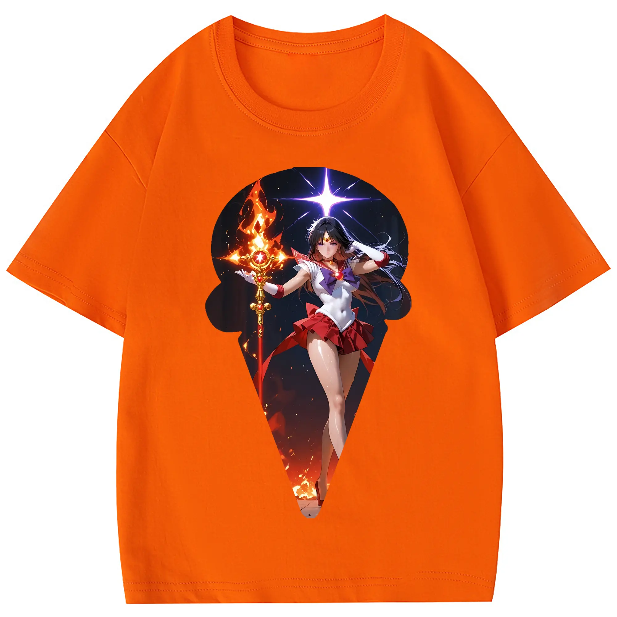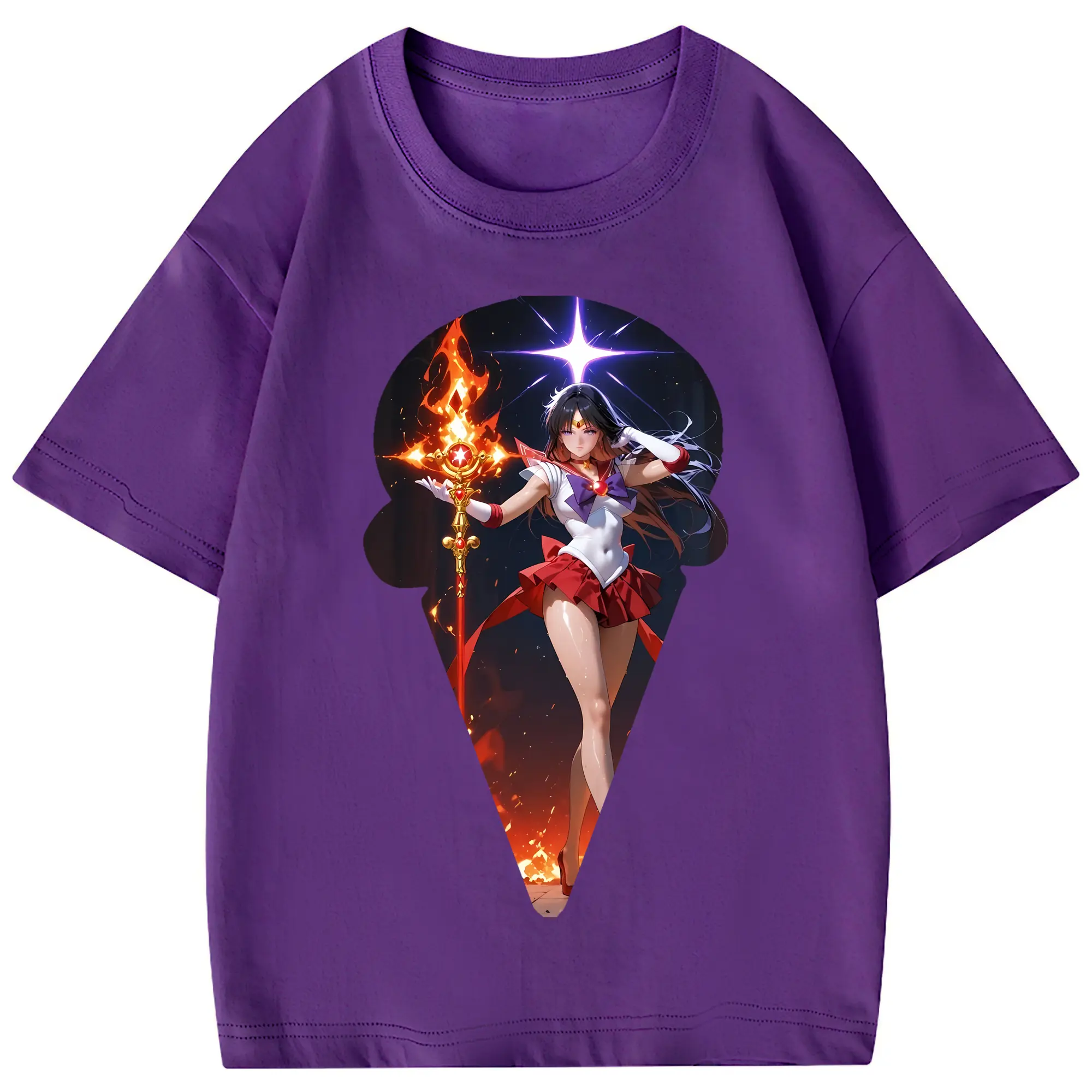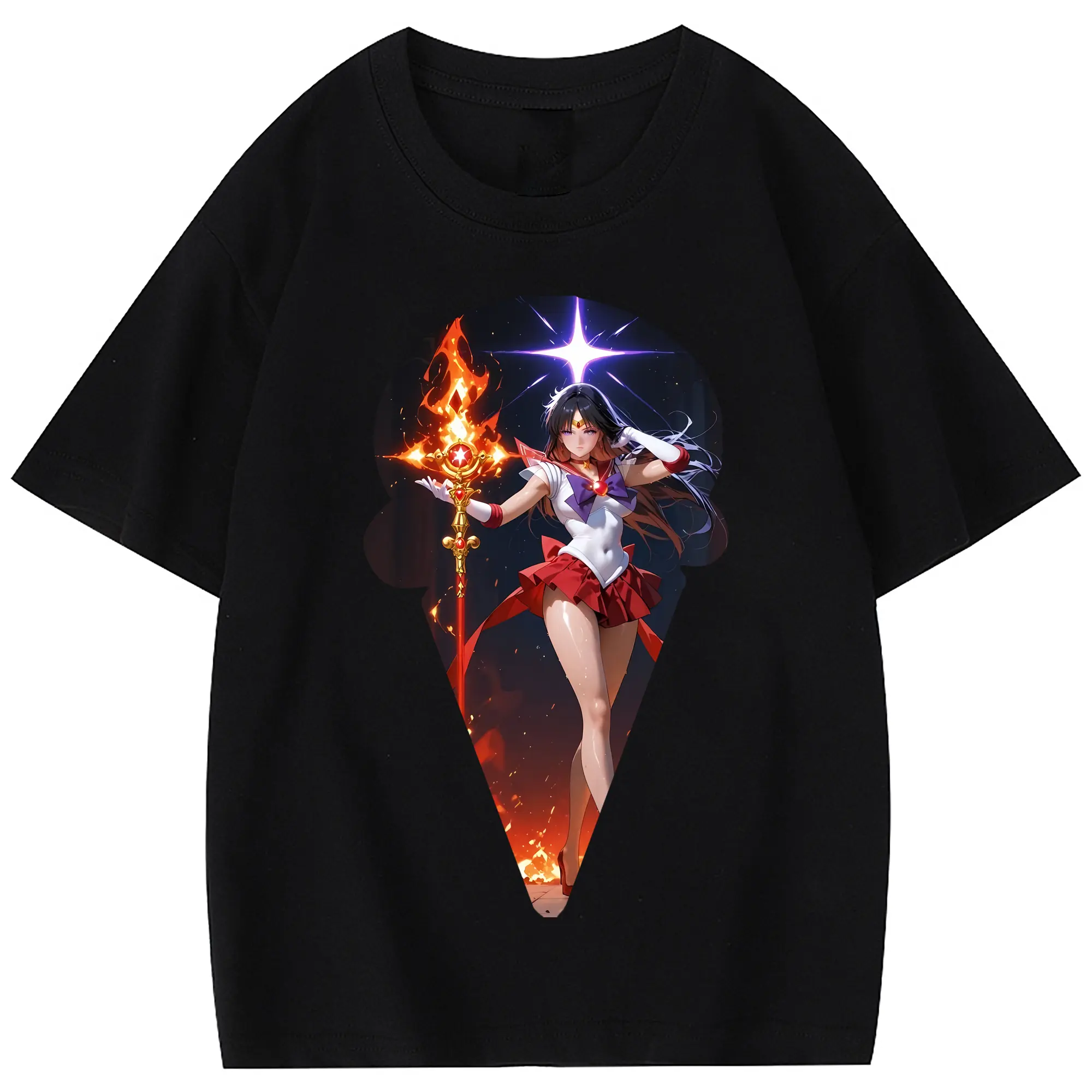 美少女戦士セーラームーン グッズ 火野 レイ - 綿100% 半袖Tシャツ ・ フロントプリント ・ 快適 通気性 ・ 日常使い 散歩 スポーツ用