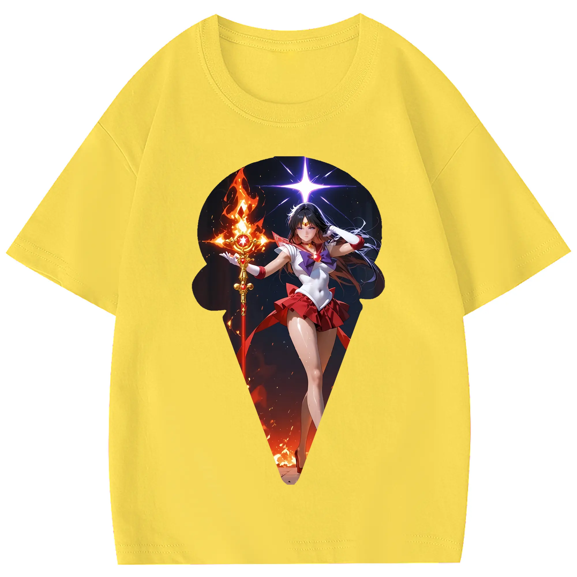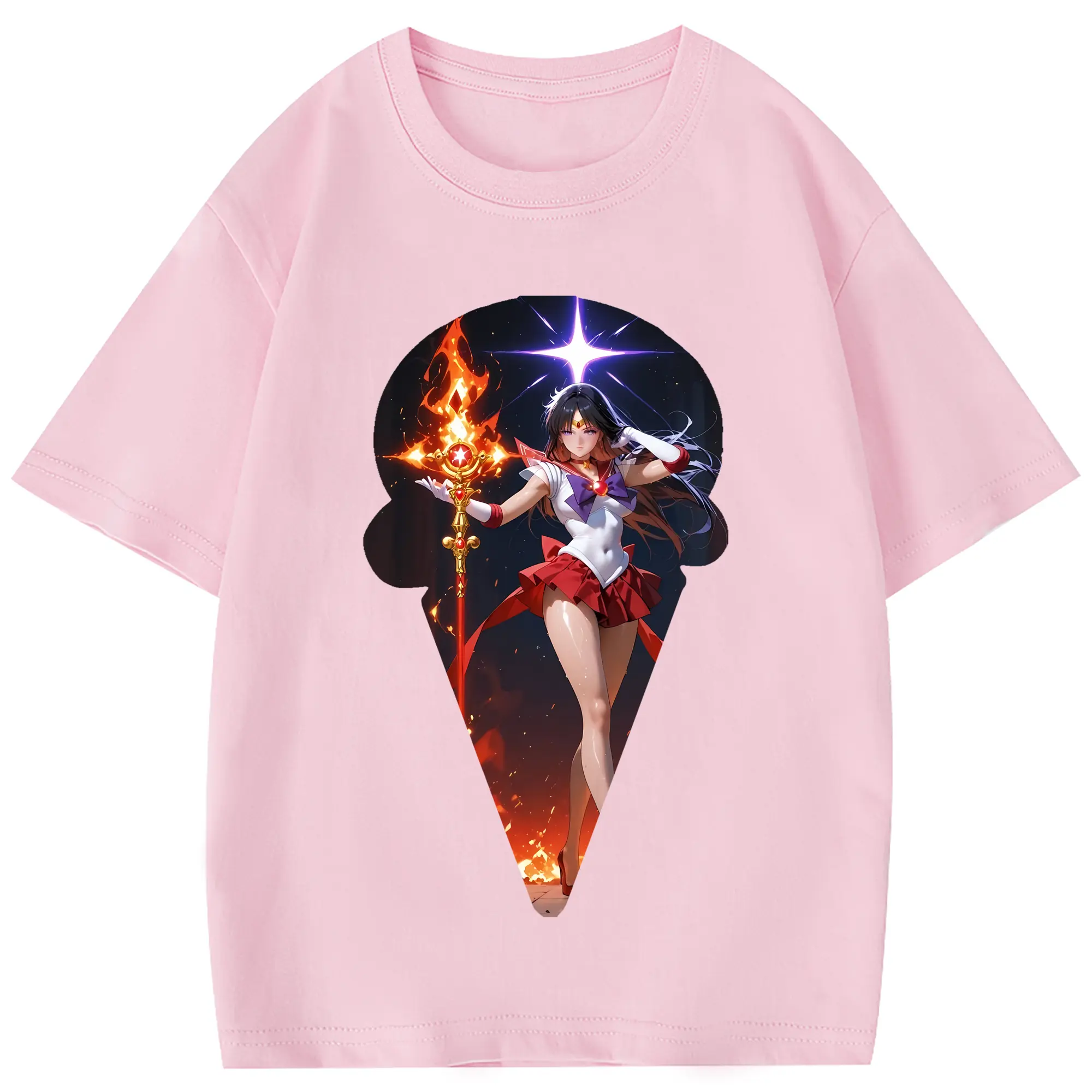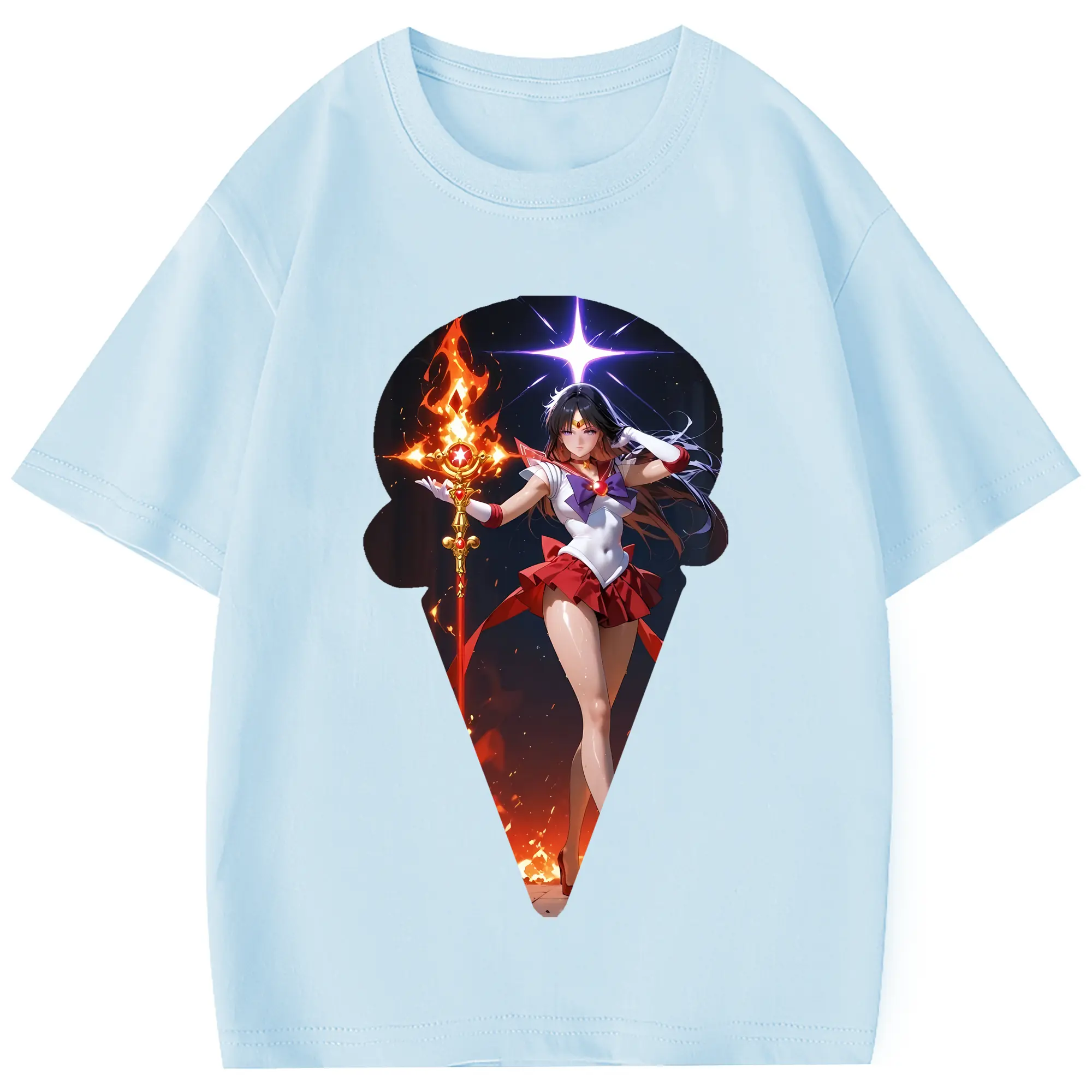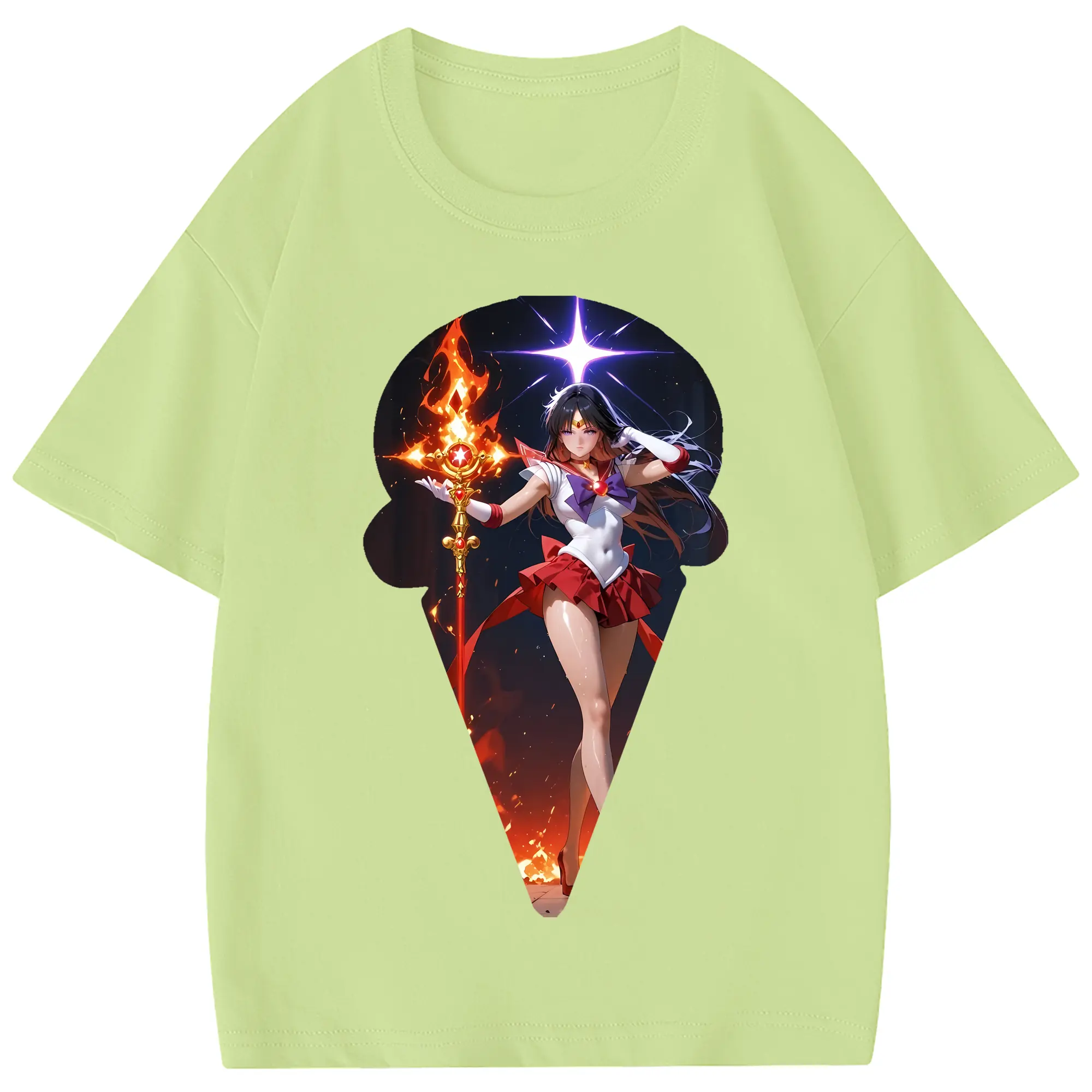 美少女戦士セーラームーン グッズ 火野 レイ - 綿100% 半袖Tシャツ ・ フロントプリント ・ 快適 通気性 ・ 日常使い 散歩 スポーツ用