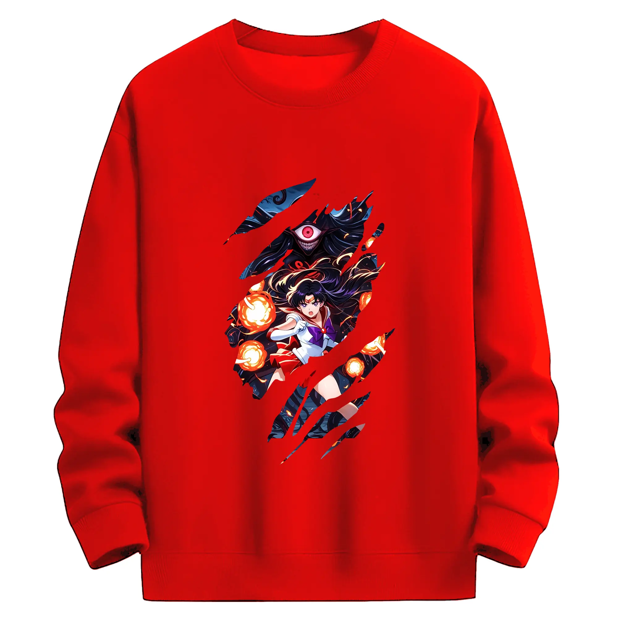 美少女戦士セーラームーン グッズ 火野 レイ - 薄手 クルーネック スウェット 裏毛260g · ポリエステル 春秋向け カジュアル 男女兼用 · トレーナー デイリー スポーツ 散歩に最適