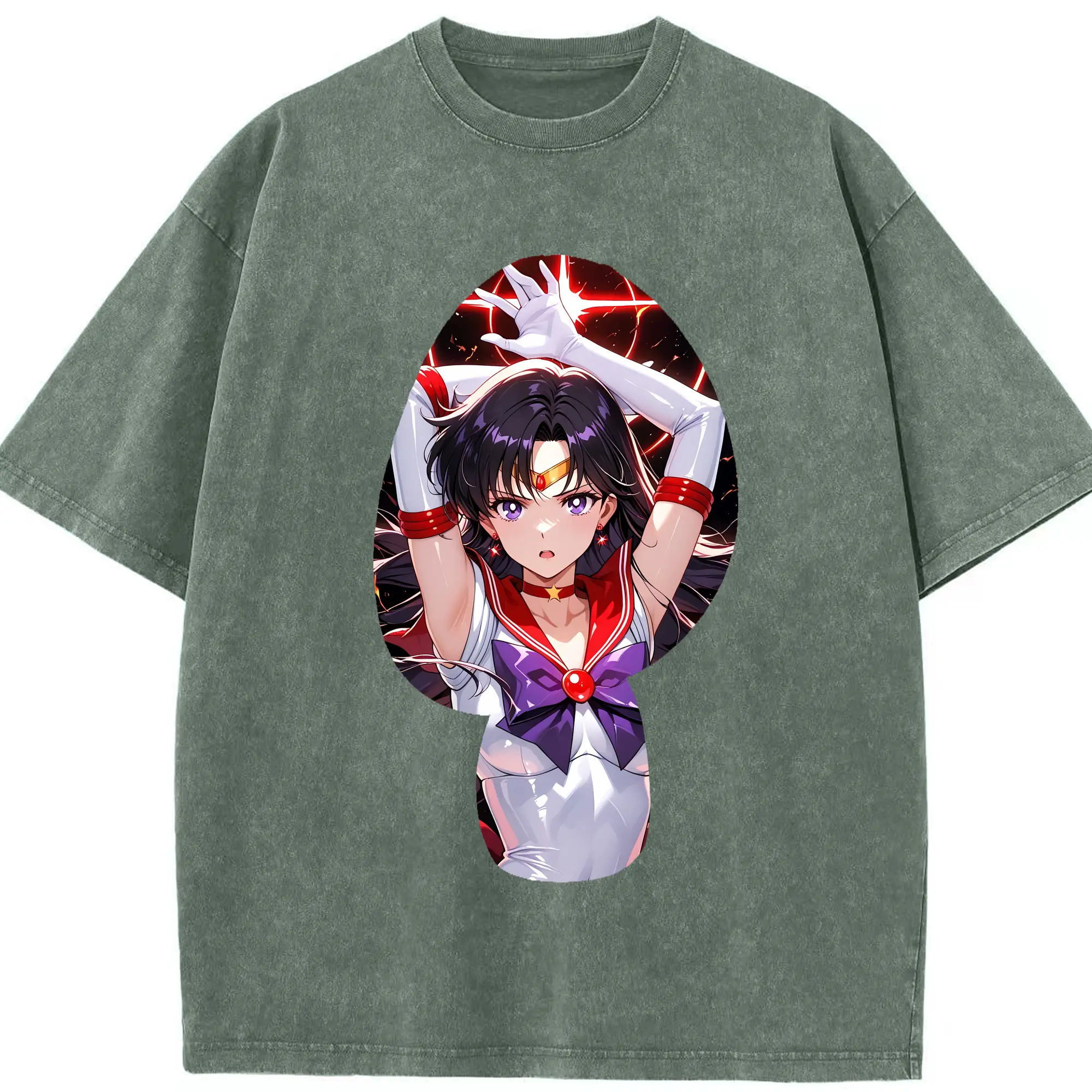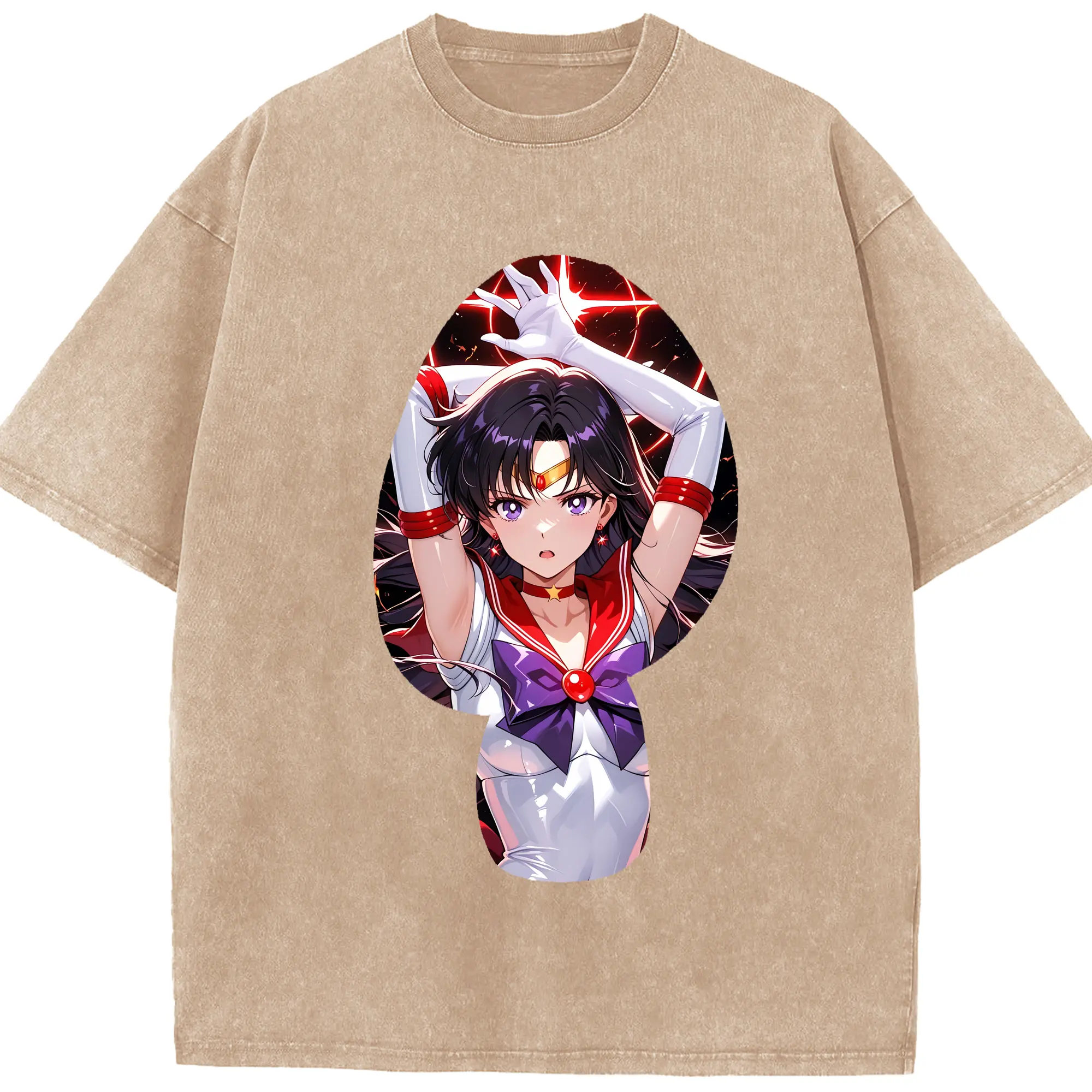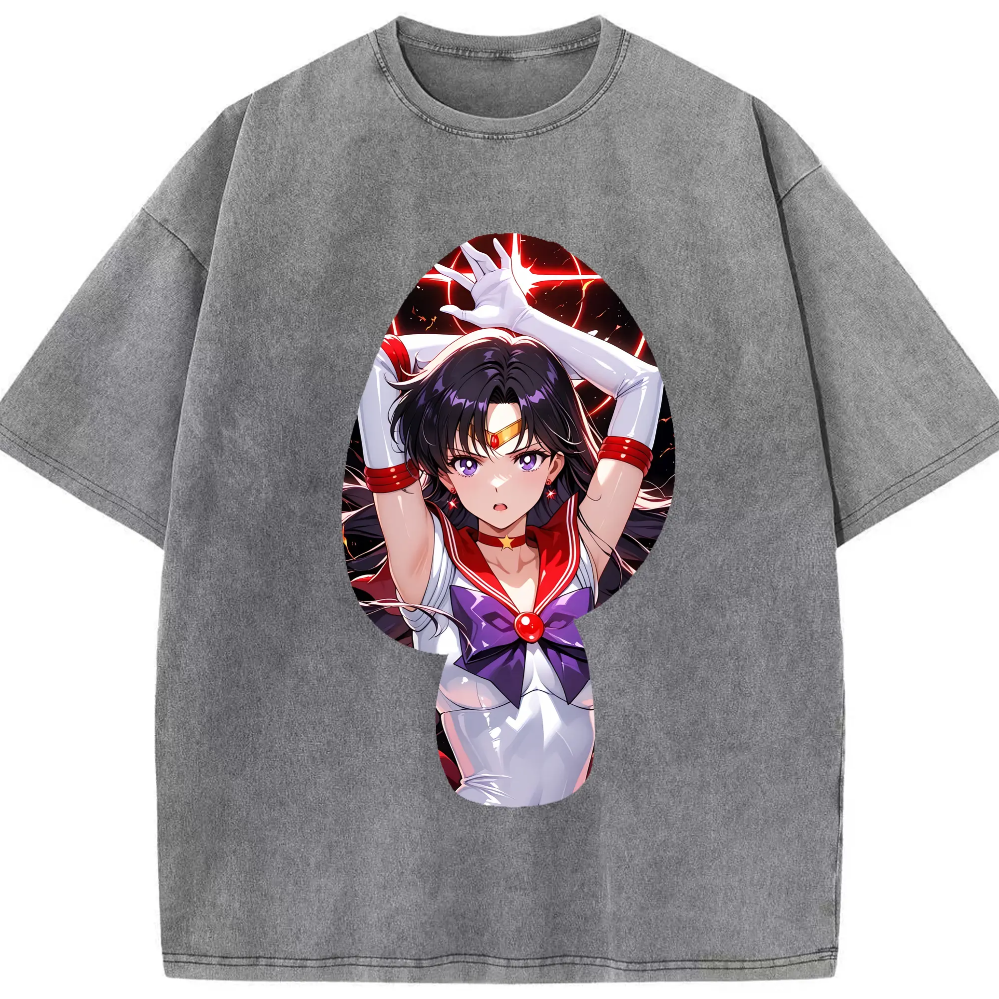 美少女戦士セーラームーン グッズ 火野 レイ - 綿100% ヴィンテージ風 半袖Tシャツ ・ 背面プリント ・ 柔らか肌触り ・ 通気性 快適 ・ スポーツ カジュアル 外出用