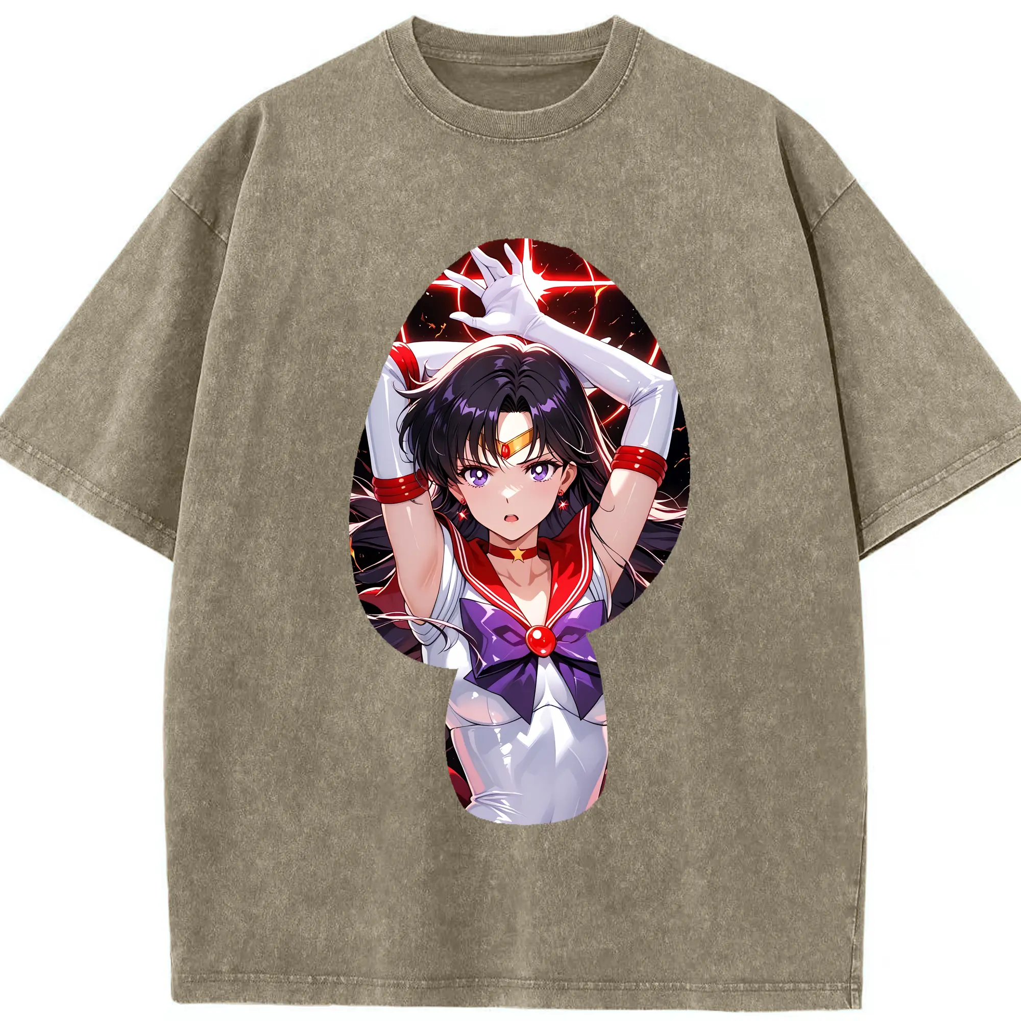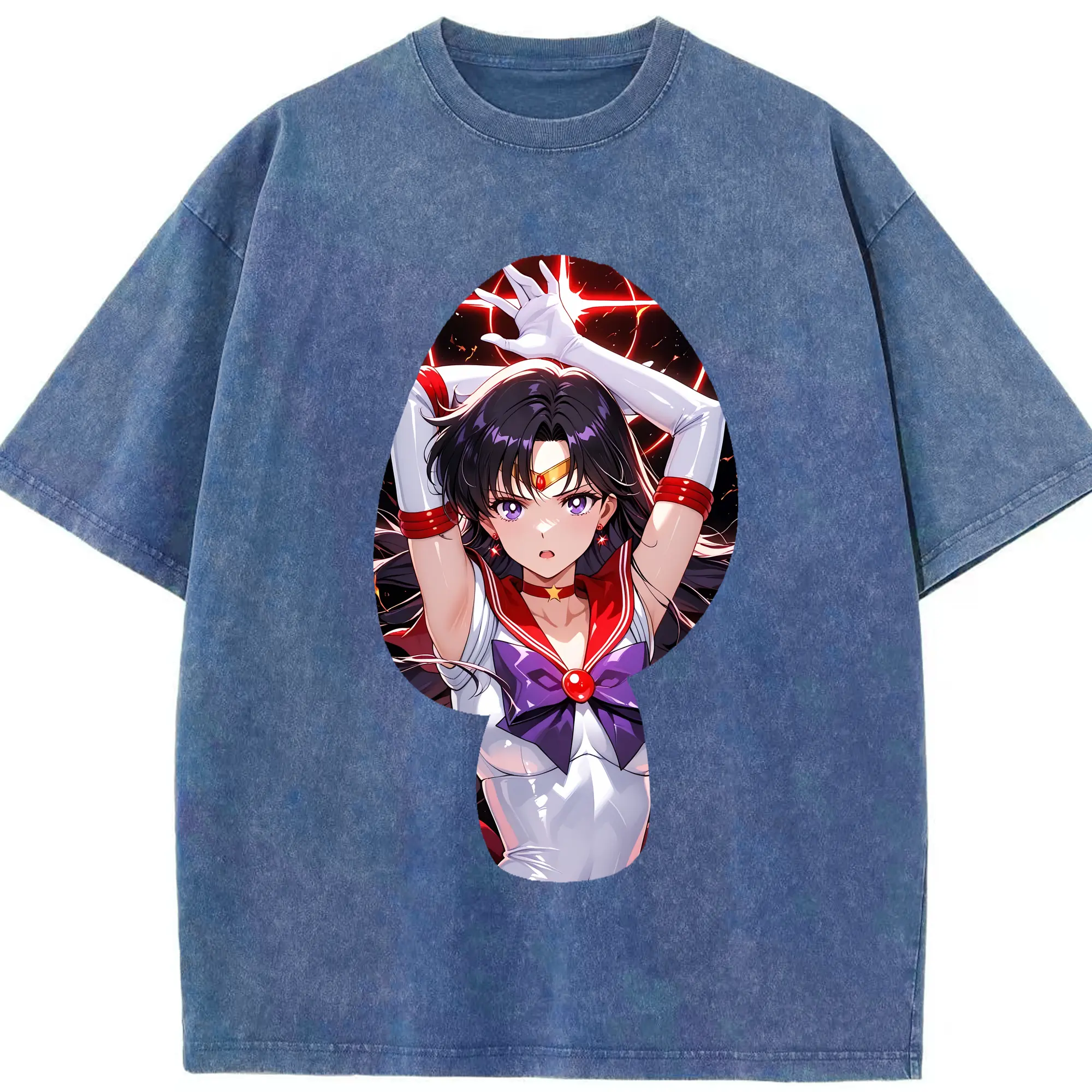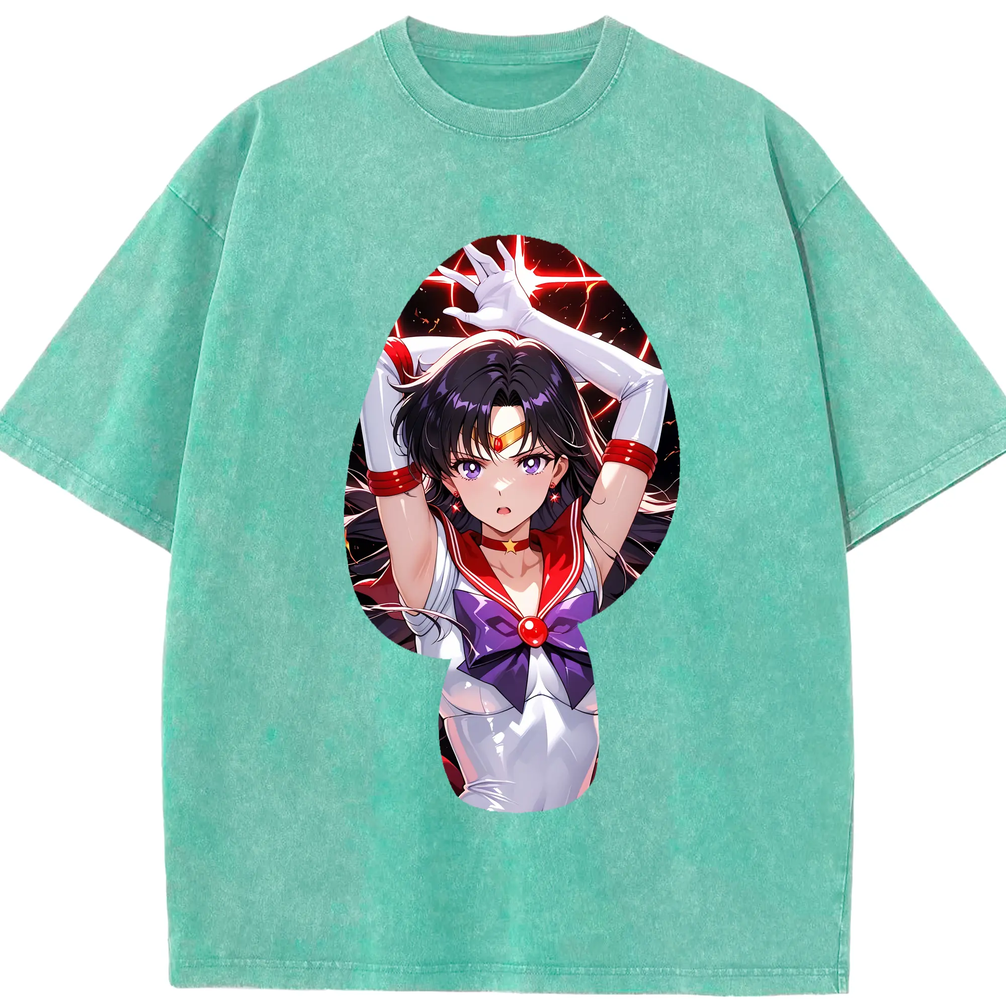 美少女戦士セーラームーン グッズ 火野 レイ - 綿100% ヴィンテージ風 半袖Tシャツ ・ 背面プリント ・ 柔らか肌触り ・ 通気性 快適 ・ スポーツ カジュアル 外出用