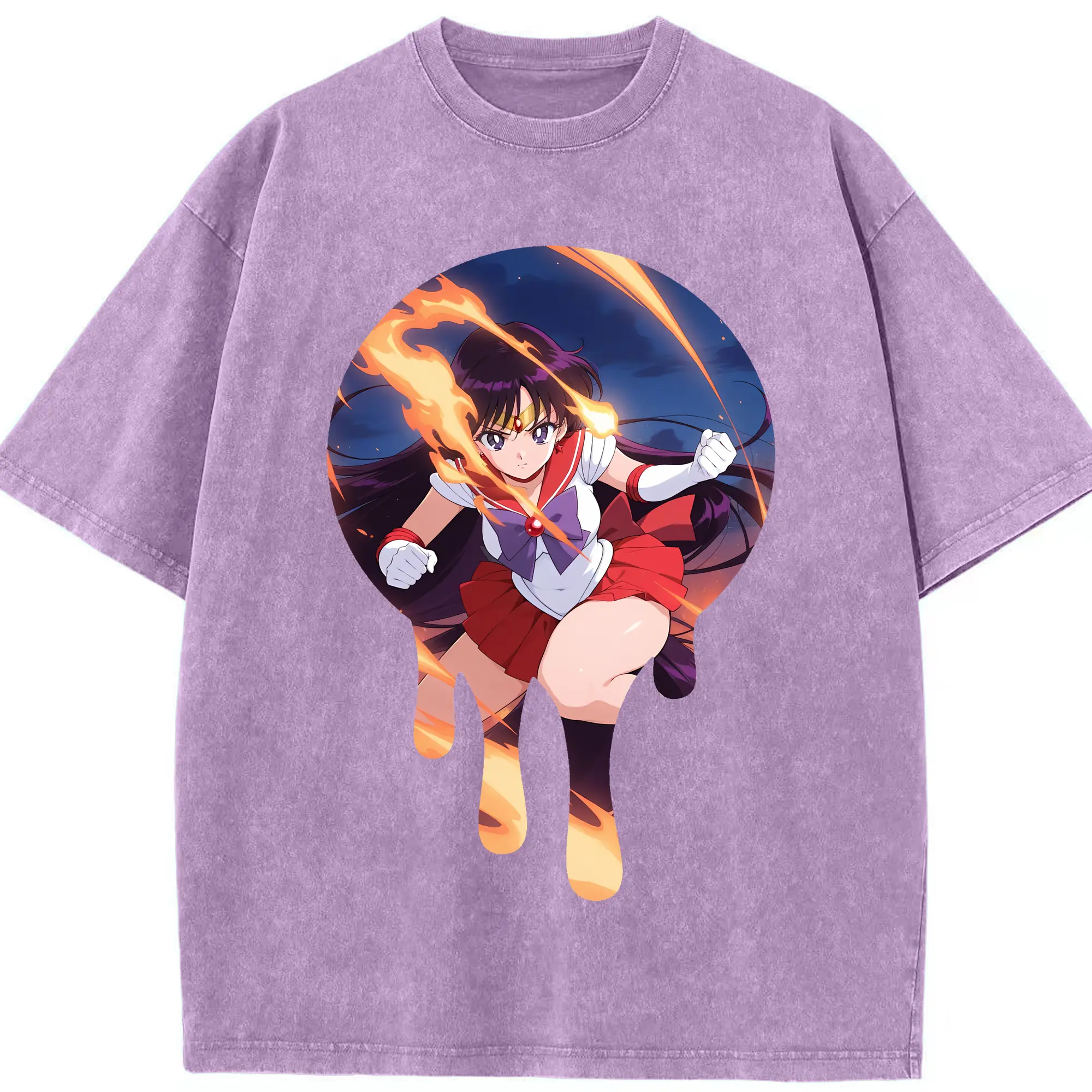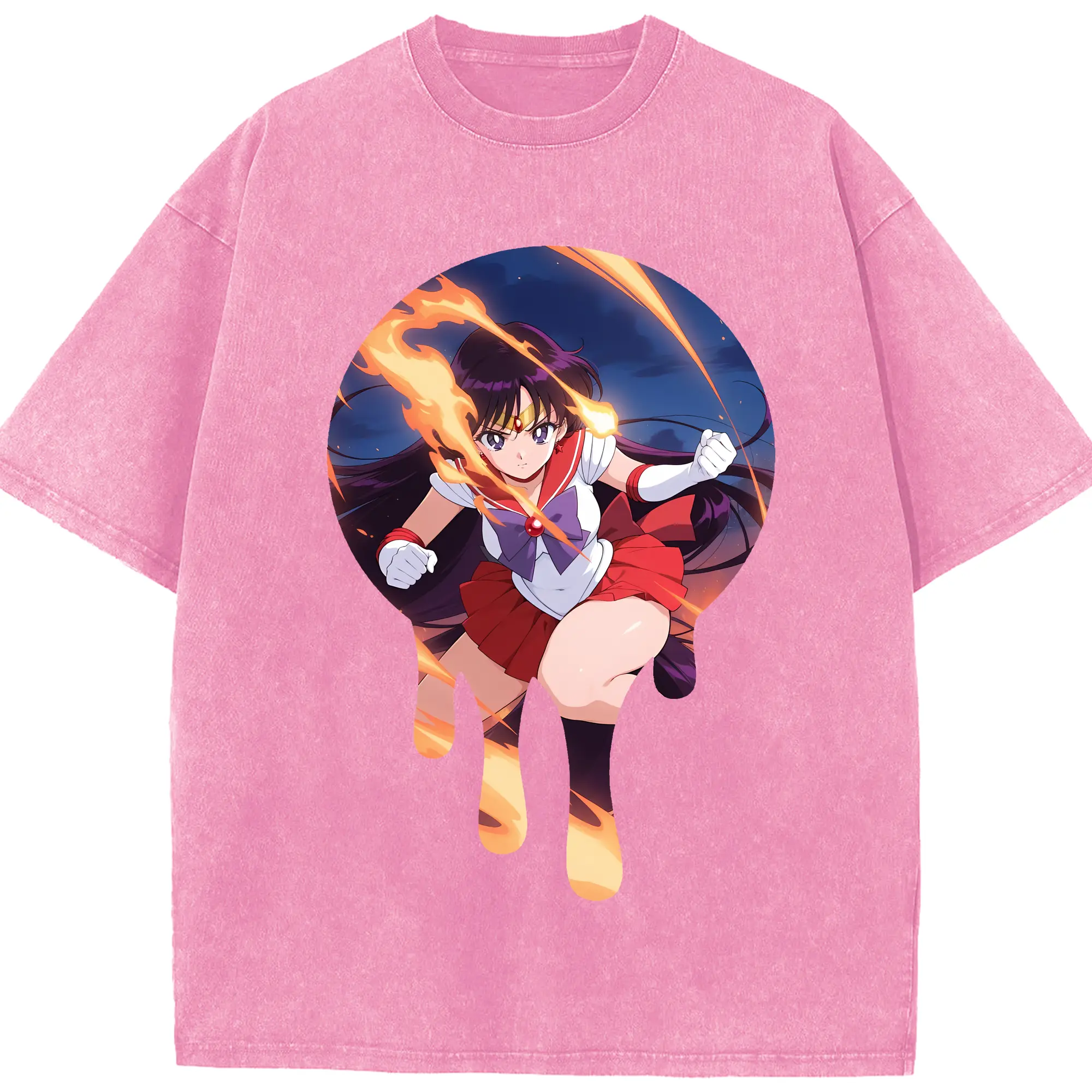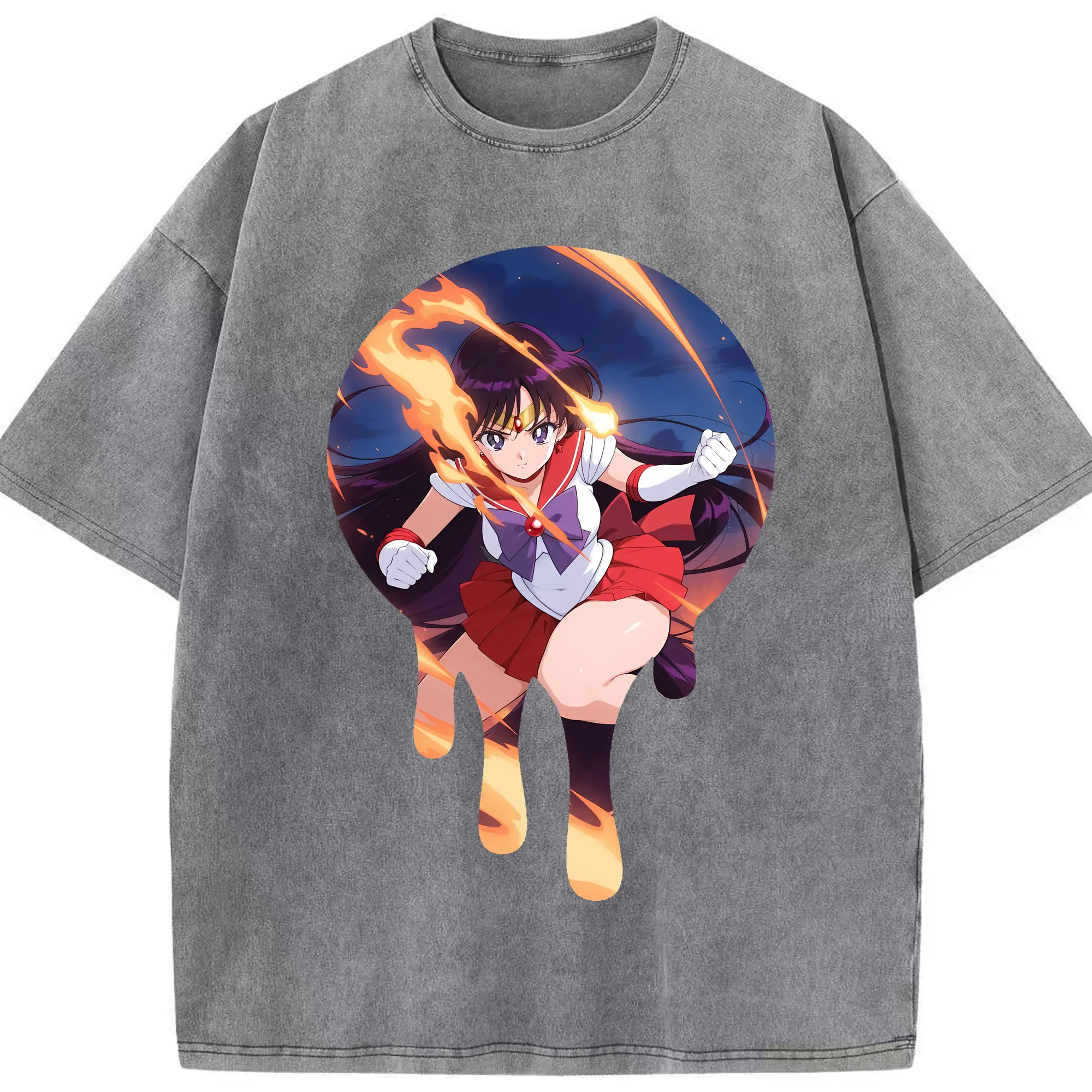 美少女戦士セーラームーン グッズ 火野 レイ - 綿100% ヴィンテージ風 半袖Tシャツ ・ 背面プリント ・ 柔らか肌触り ・ 通気性 快適 ・ スポーツ カジュアル 外出用
