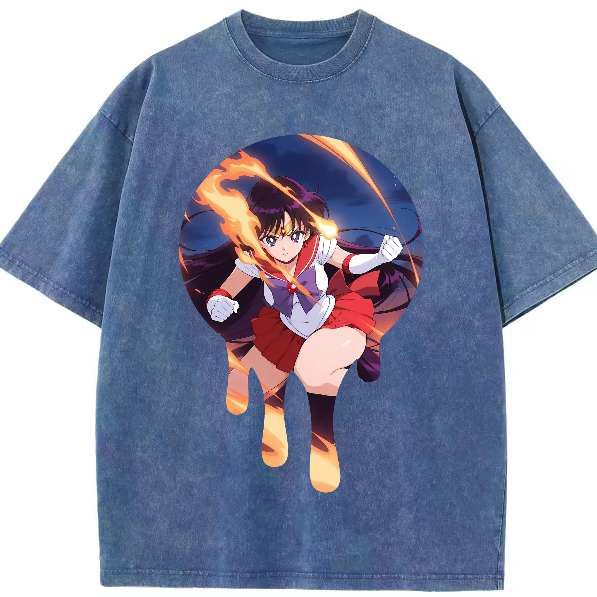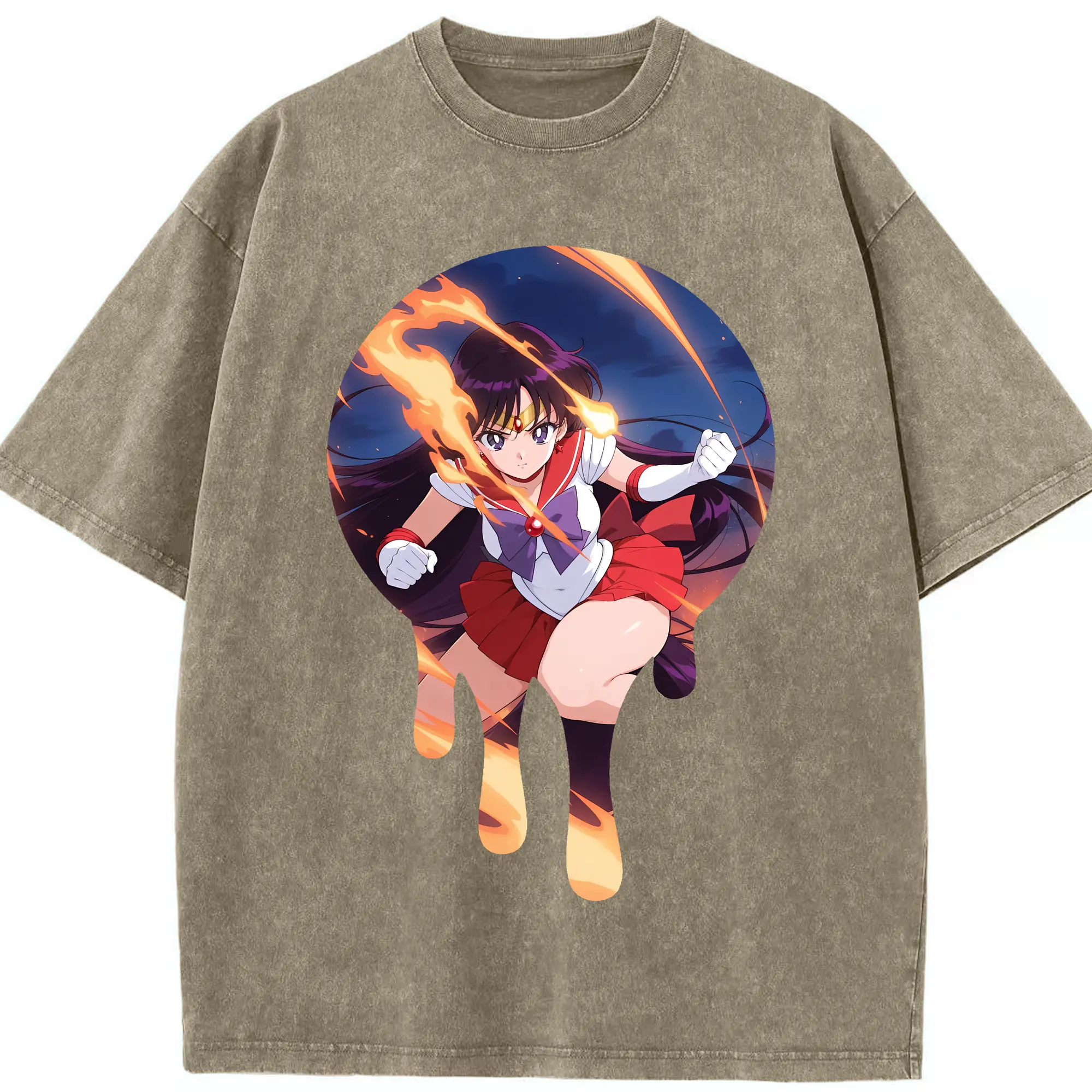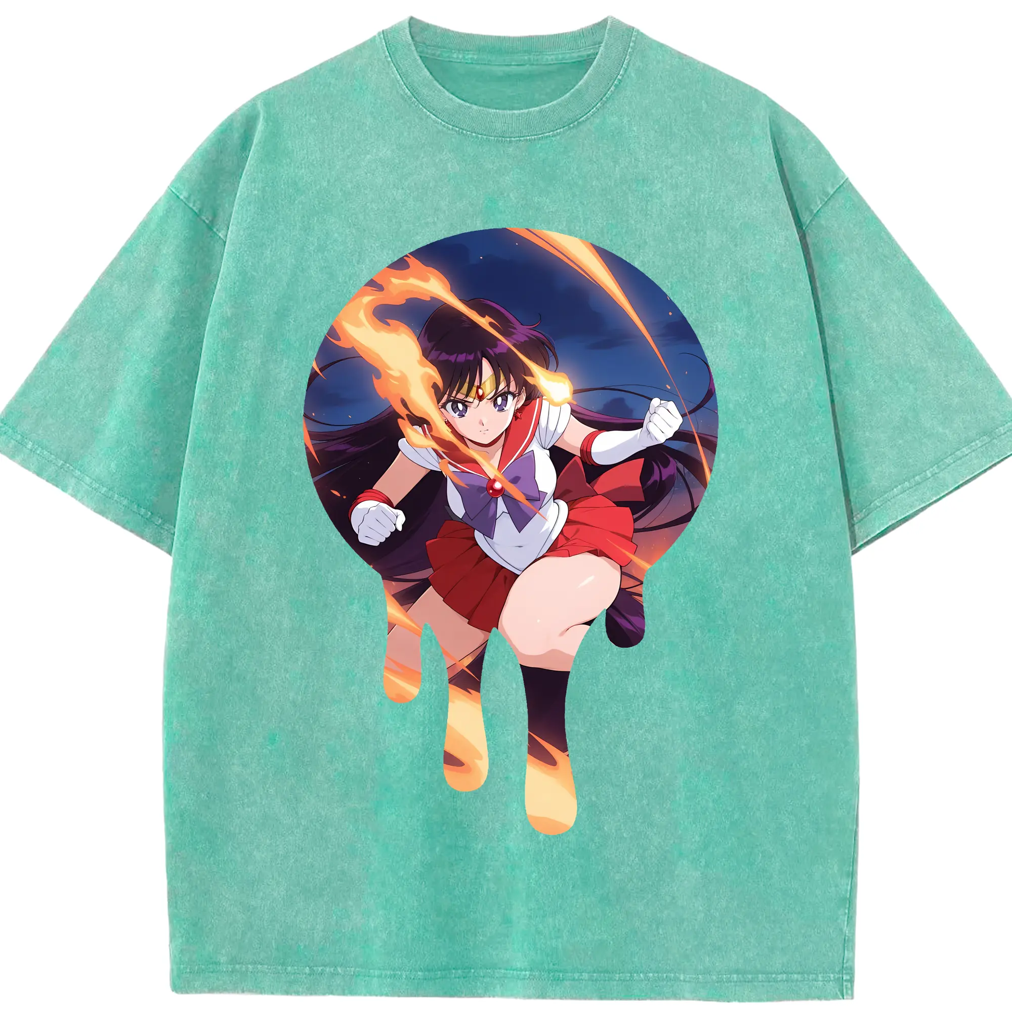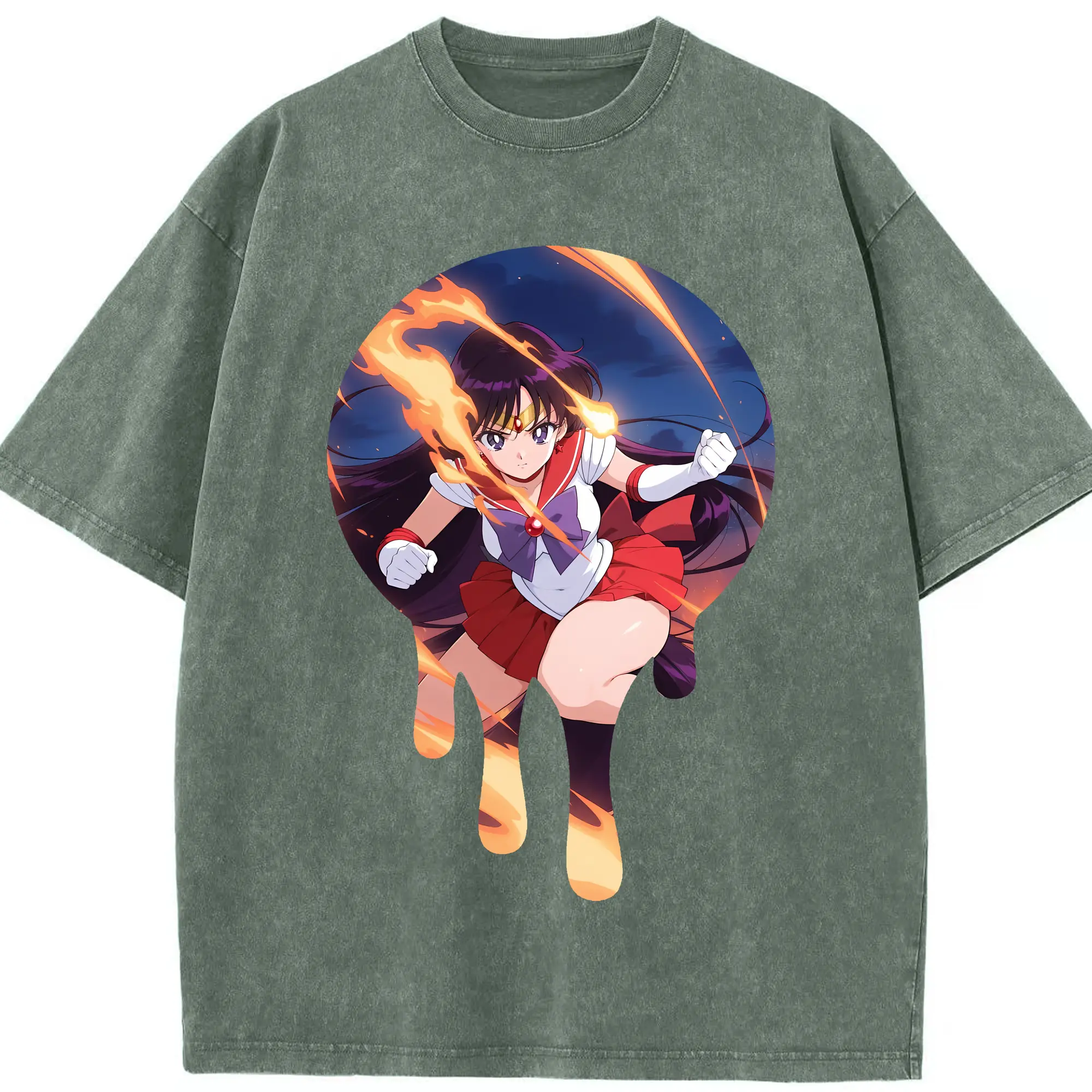 美少女戦士セーラームーン グッズ 火野 レイ - 綿100% ヴィンテージ風 半袖Tシャツ ・ 背面プリント ・ 柔らか肌触り ・ 通気性 快適 ・ スポーツ カジュアル 外出用
