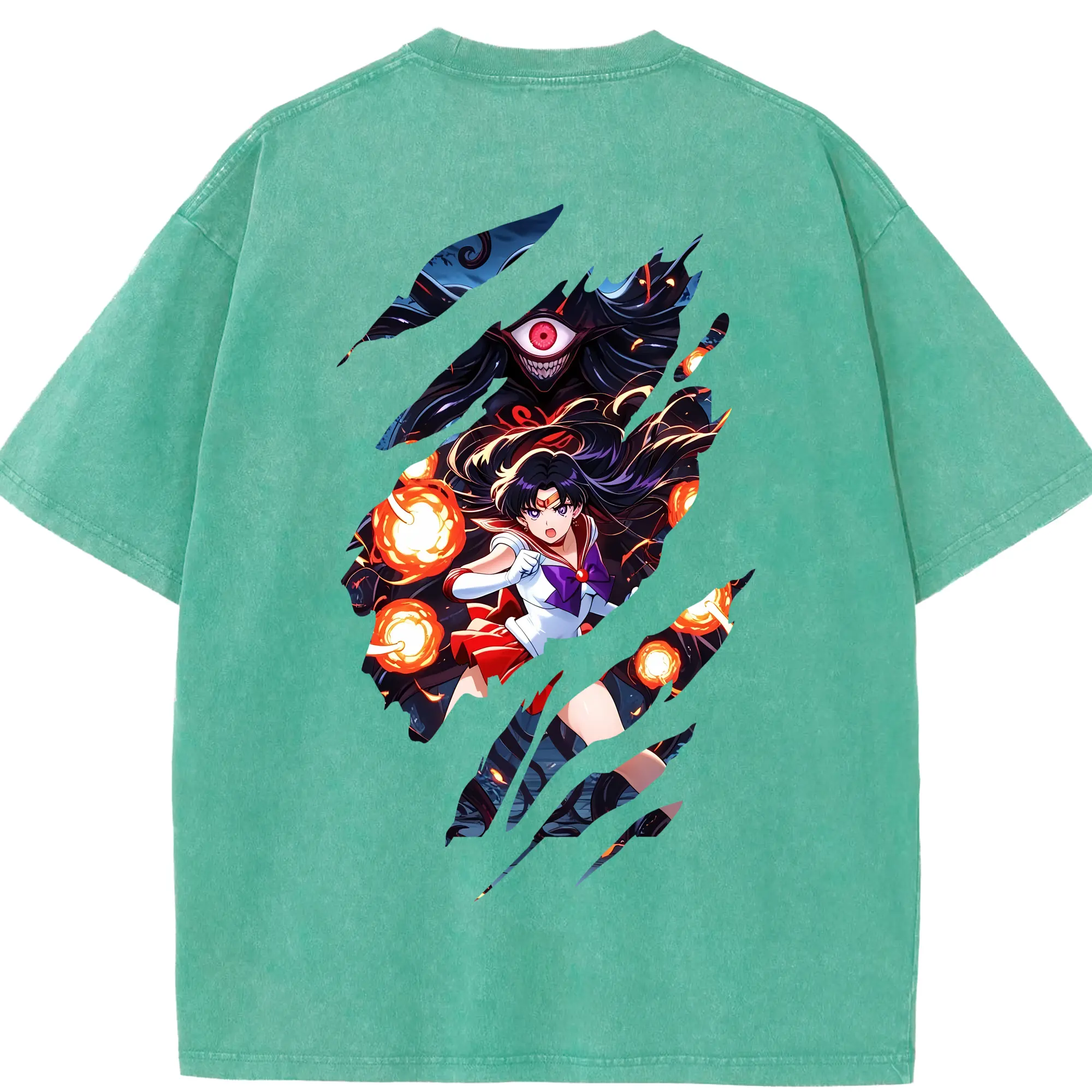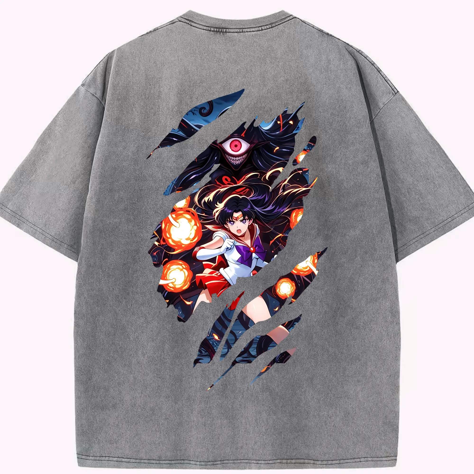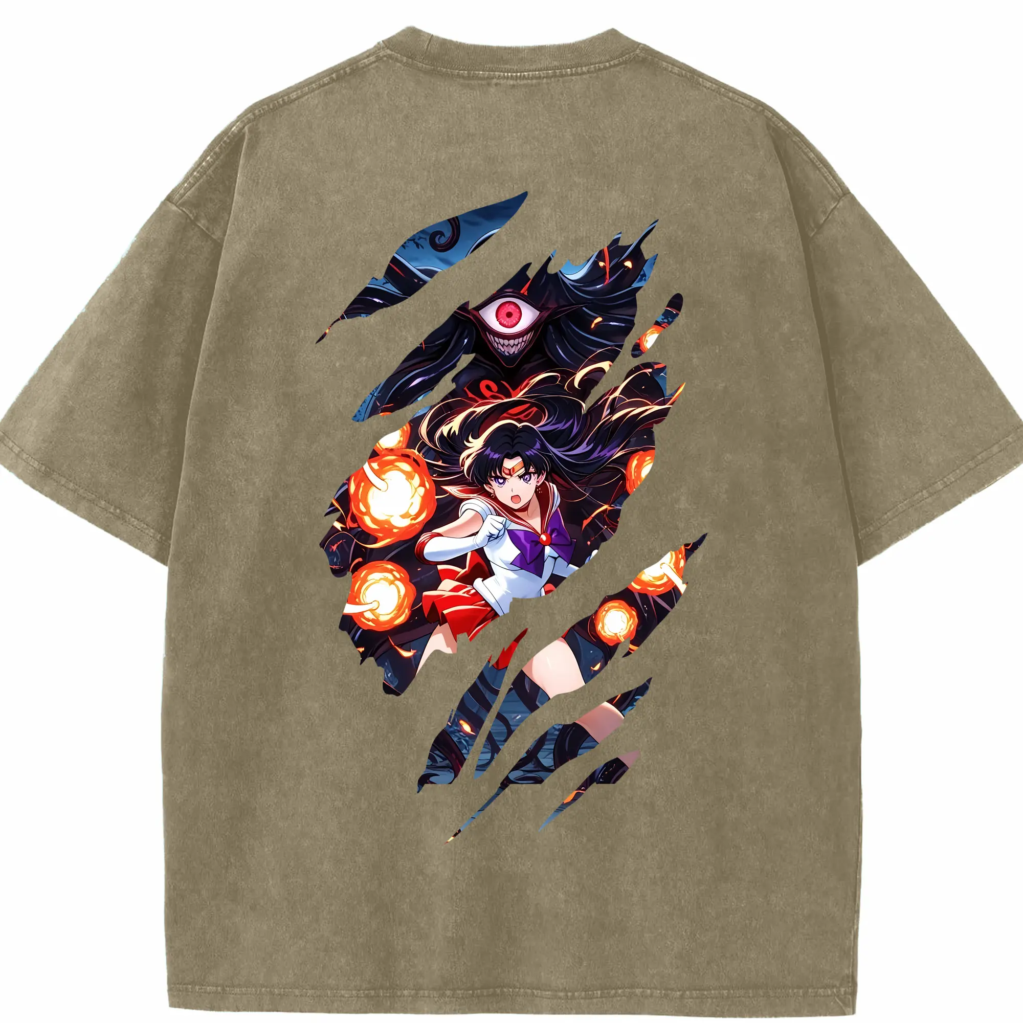 美少女戦士セーラームーン グッズ 火野 レイ - 綿100% ヴィンテージ風 半袖Tシャツ ・ フロントプリント ・ 柔らか肌触り ・ 通気性 快適 ・ スポーツ カジュアル 外出用