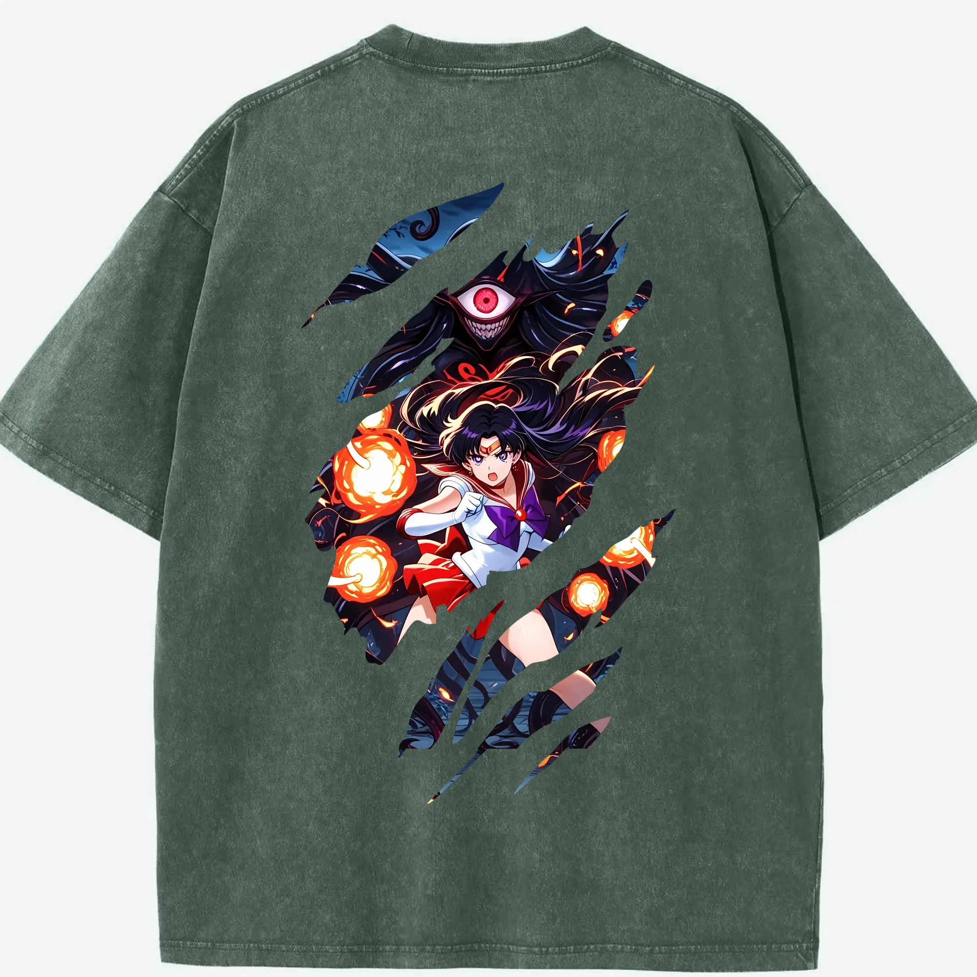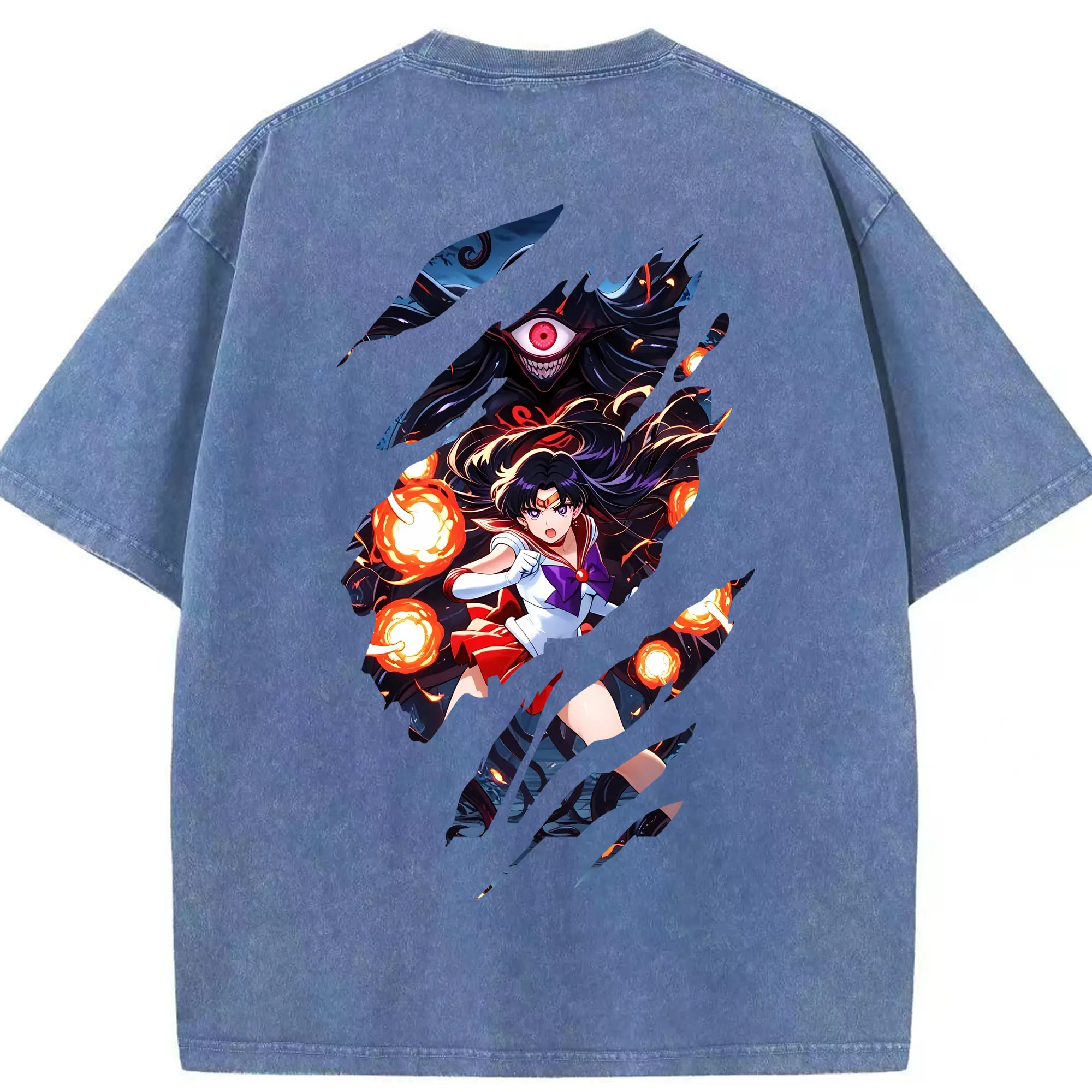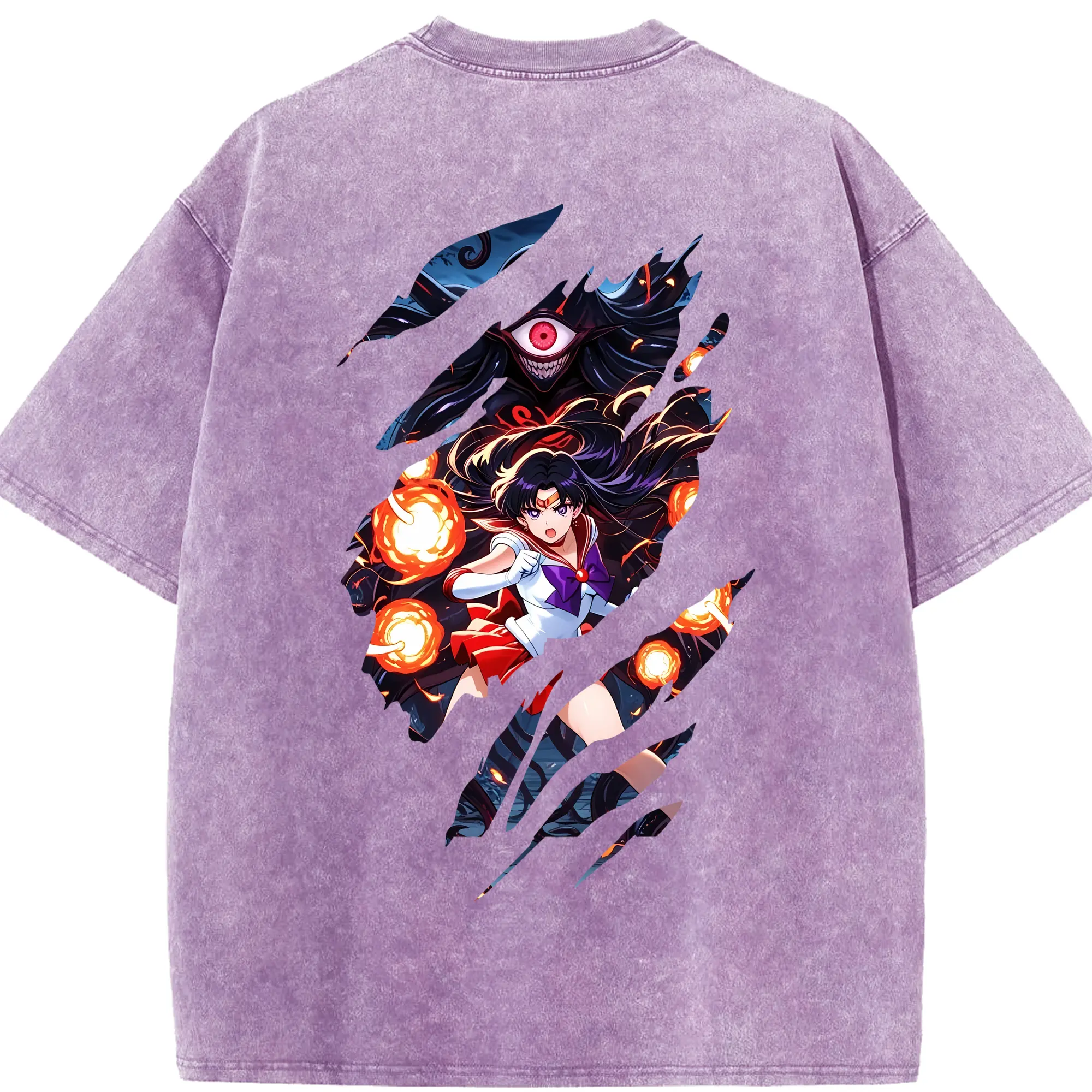 美少女戦士セーラームーン グッズ 火野 レイ - 綿100% ヴィンテージ風 半袖Tシャツ ・ フロントプリント ・ 柔らか肌触り ・ 通気性 快適 ・ スポーツ カジュアル 外出用