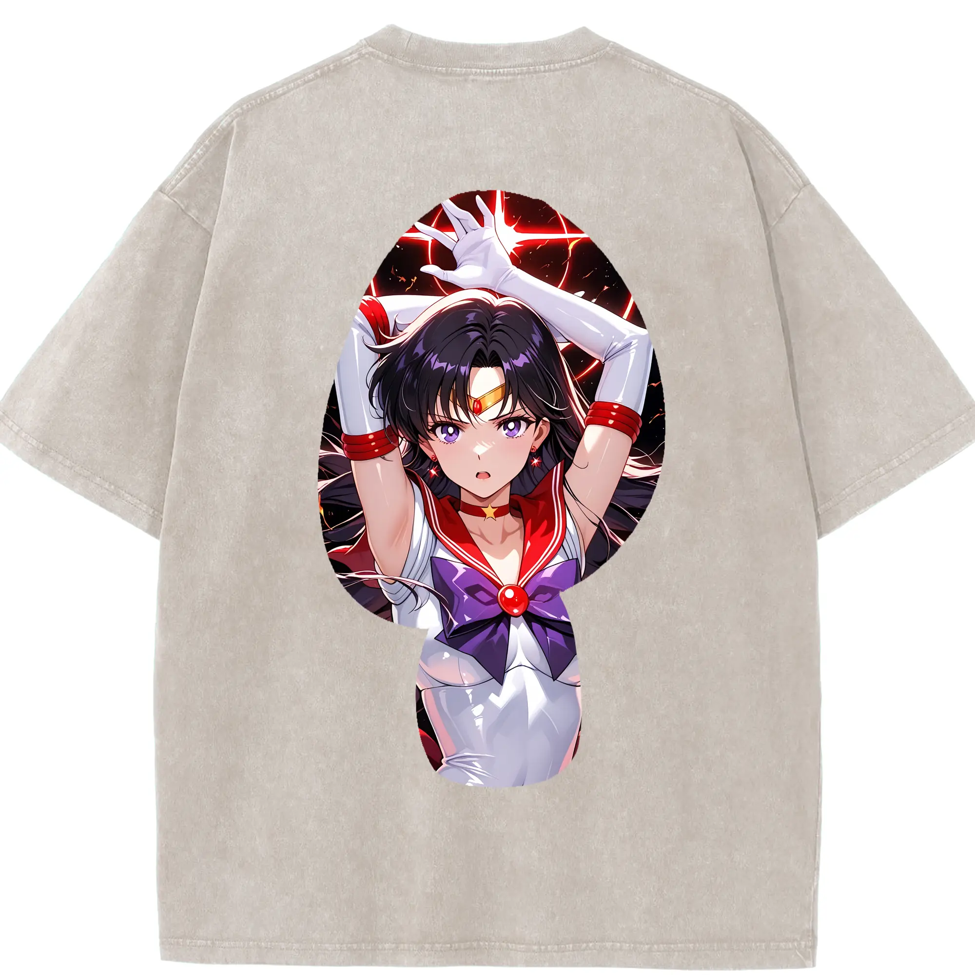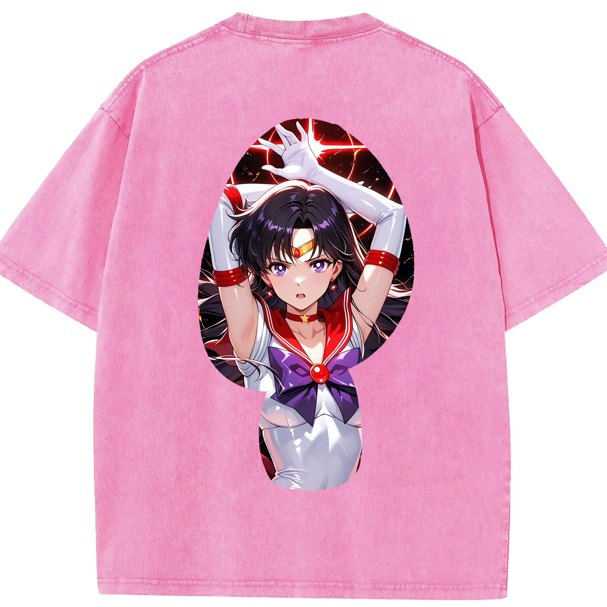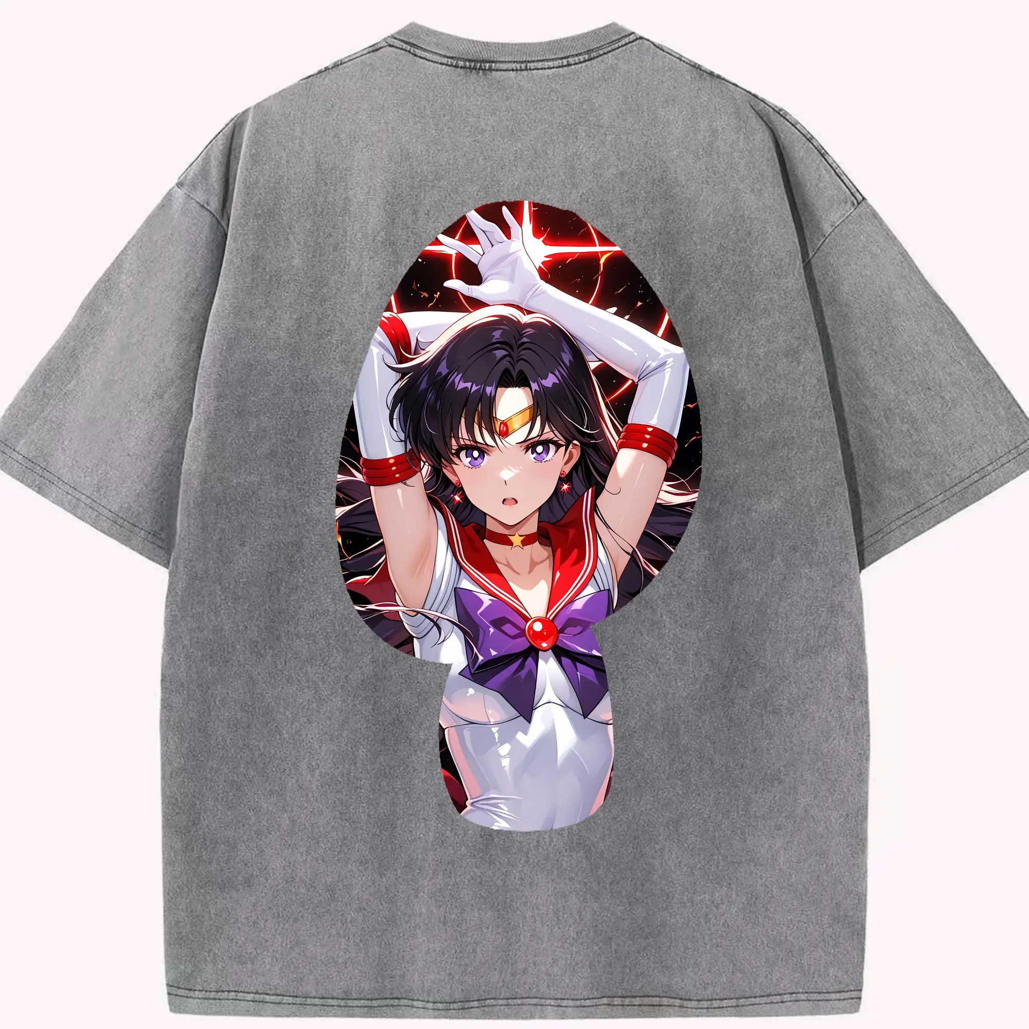 美少女戦士セーラームーン グッズ 火野 レイ - 綿100% 半袖Tシャツ ・ バックプリント ・ 快適 通気性 ・ 日常使い 散歩 スポーツ用