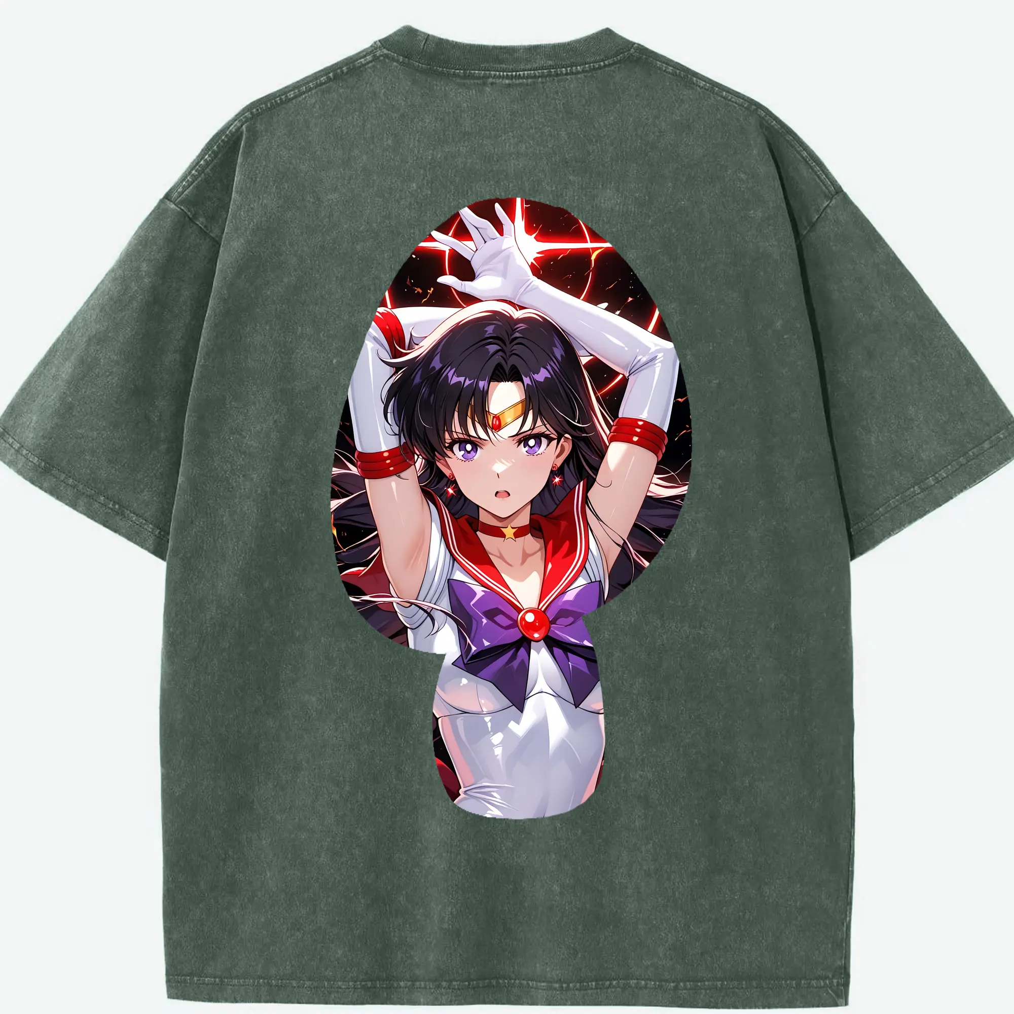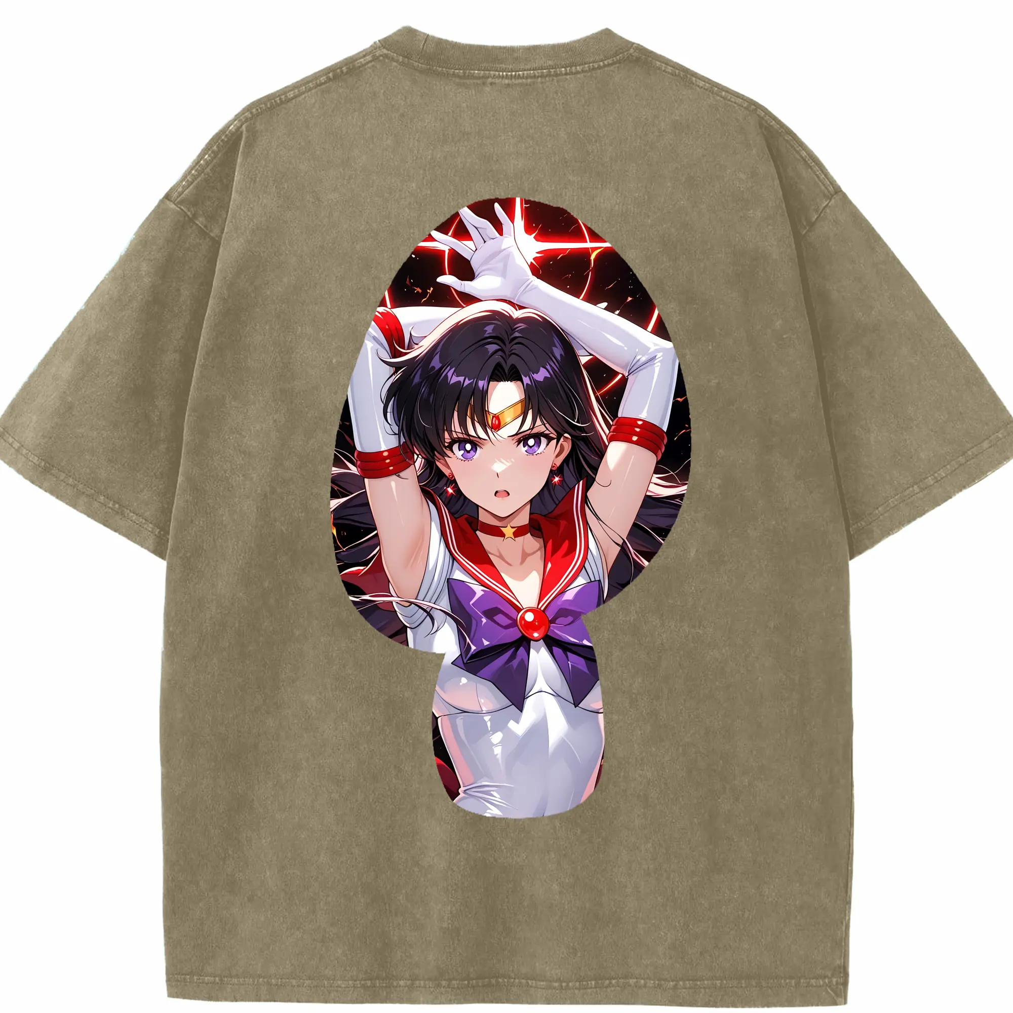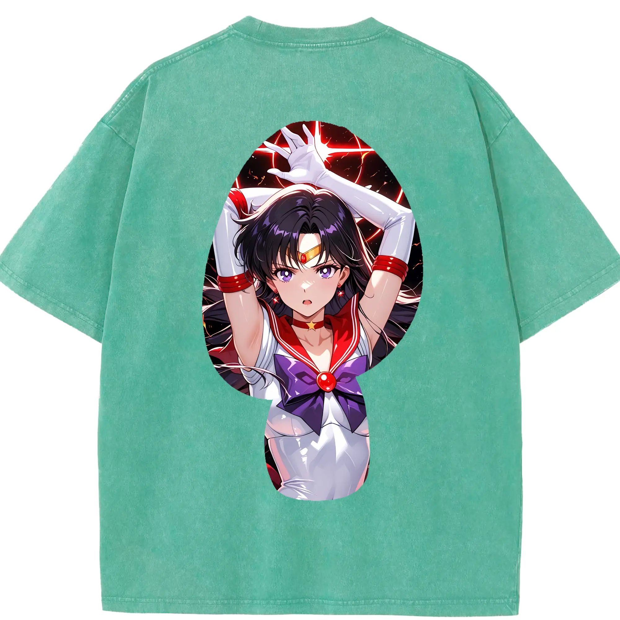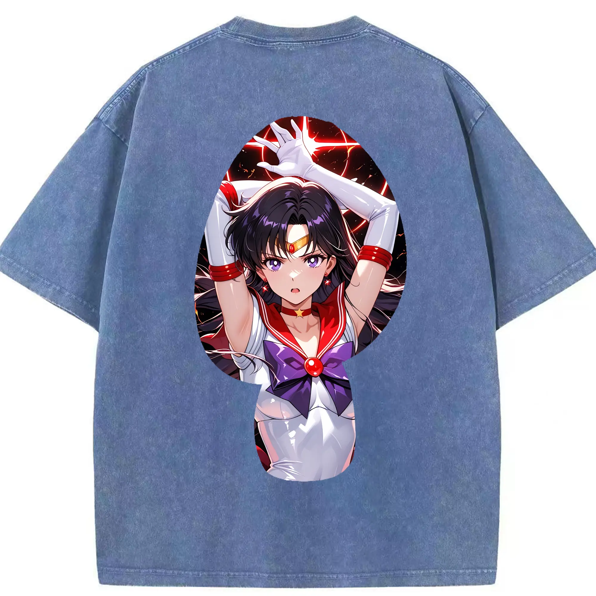 美少女戦士セーラームーン グッズ 火野 レイ - 綿100% 半袖Tシャツ ・ バックプリント ・ 快適 通気性 ・ 日常使い 散歩 スポーツ用