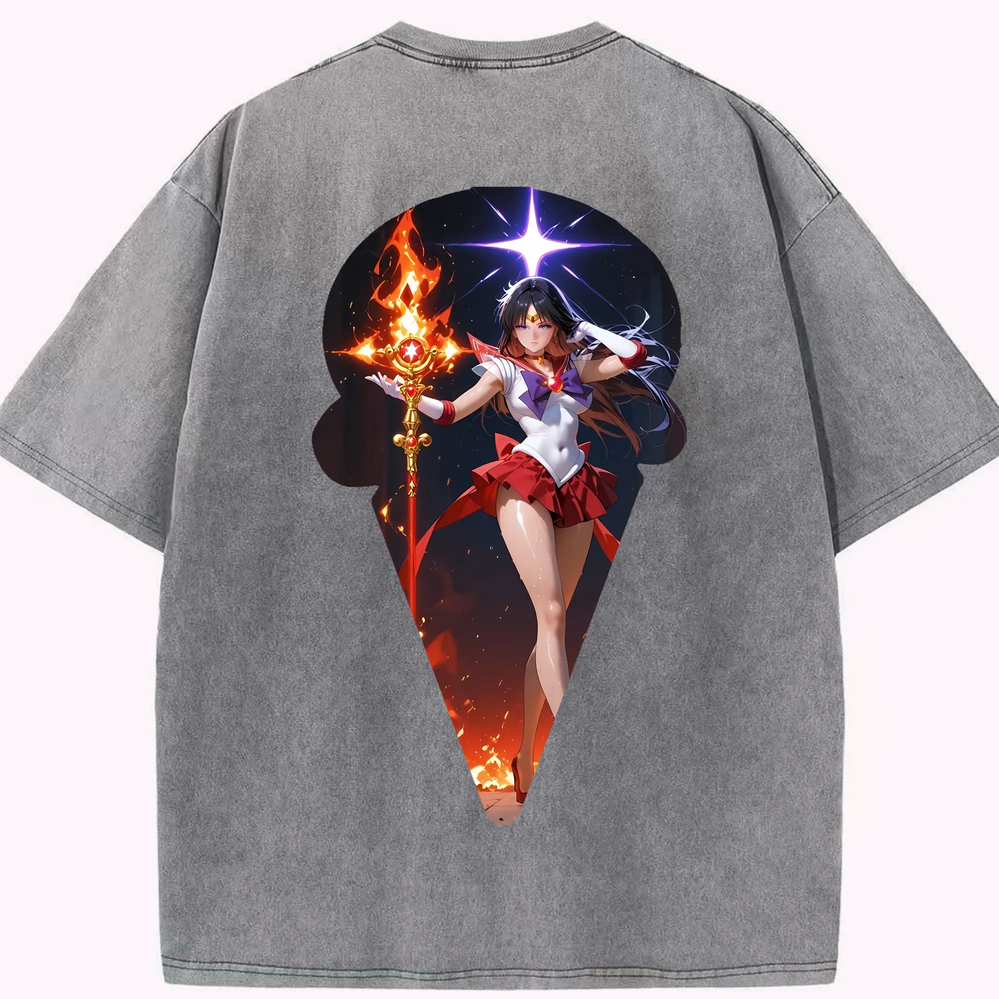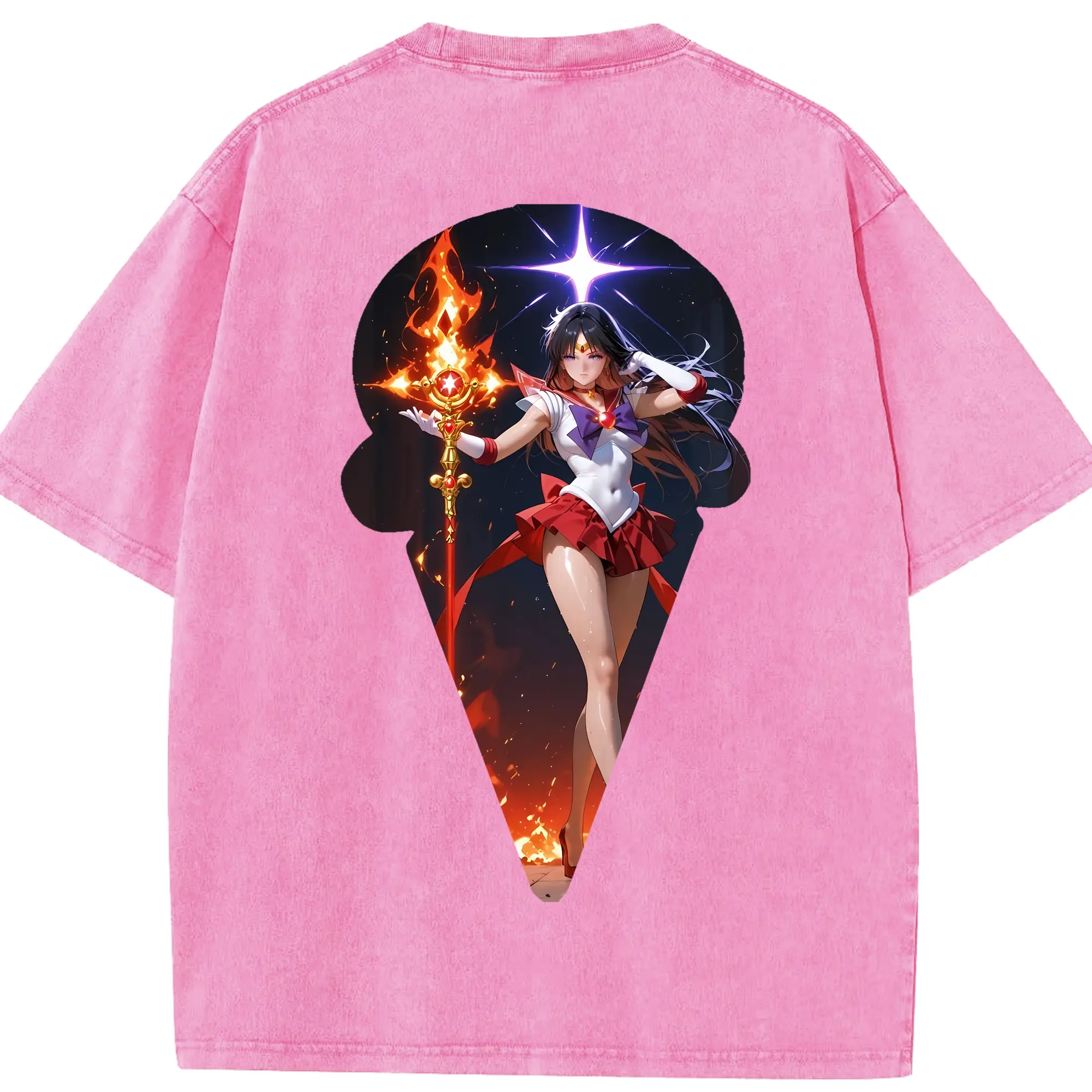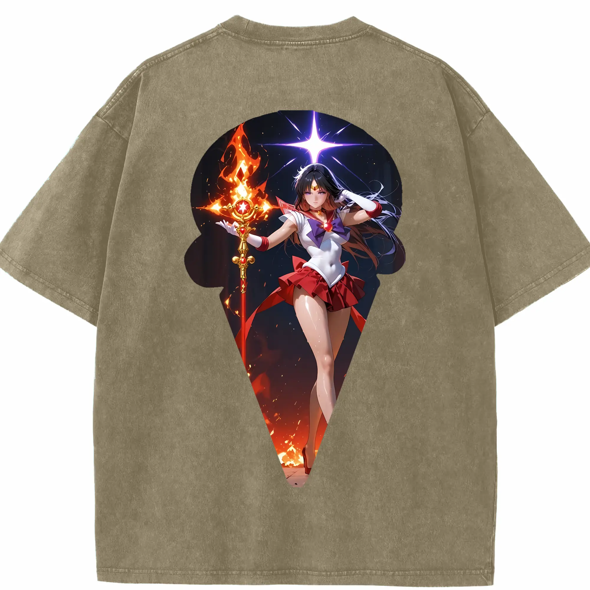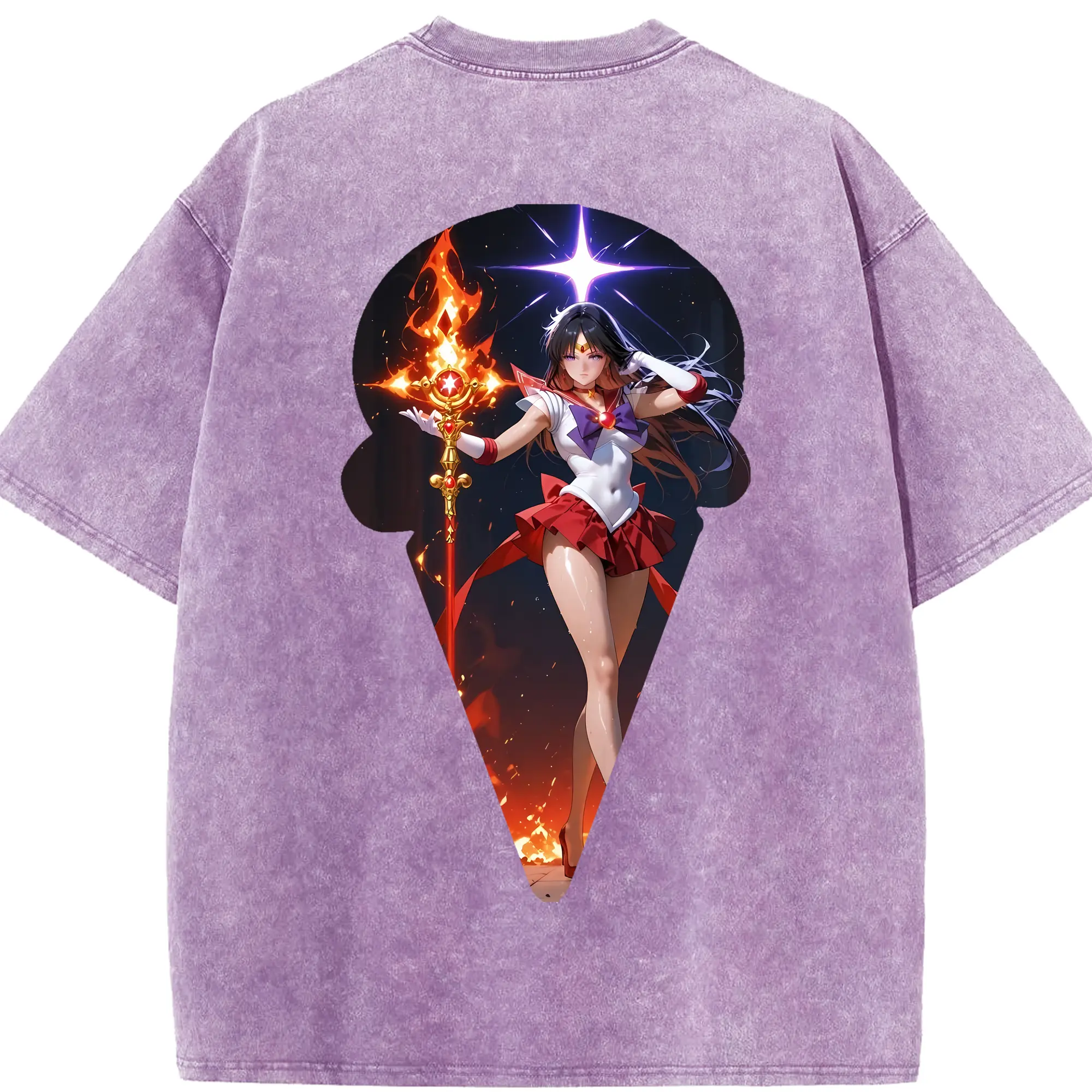 美少女戦士セーラームーン グッズ 火野 レイ - 綿100% ヴィンテージ風 半袖Tシャツ ・ フロントプリント ・ 柔らか肌触り ・ 通気性 快適 ・ スポーツ カジュアル 外出用