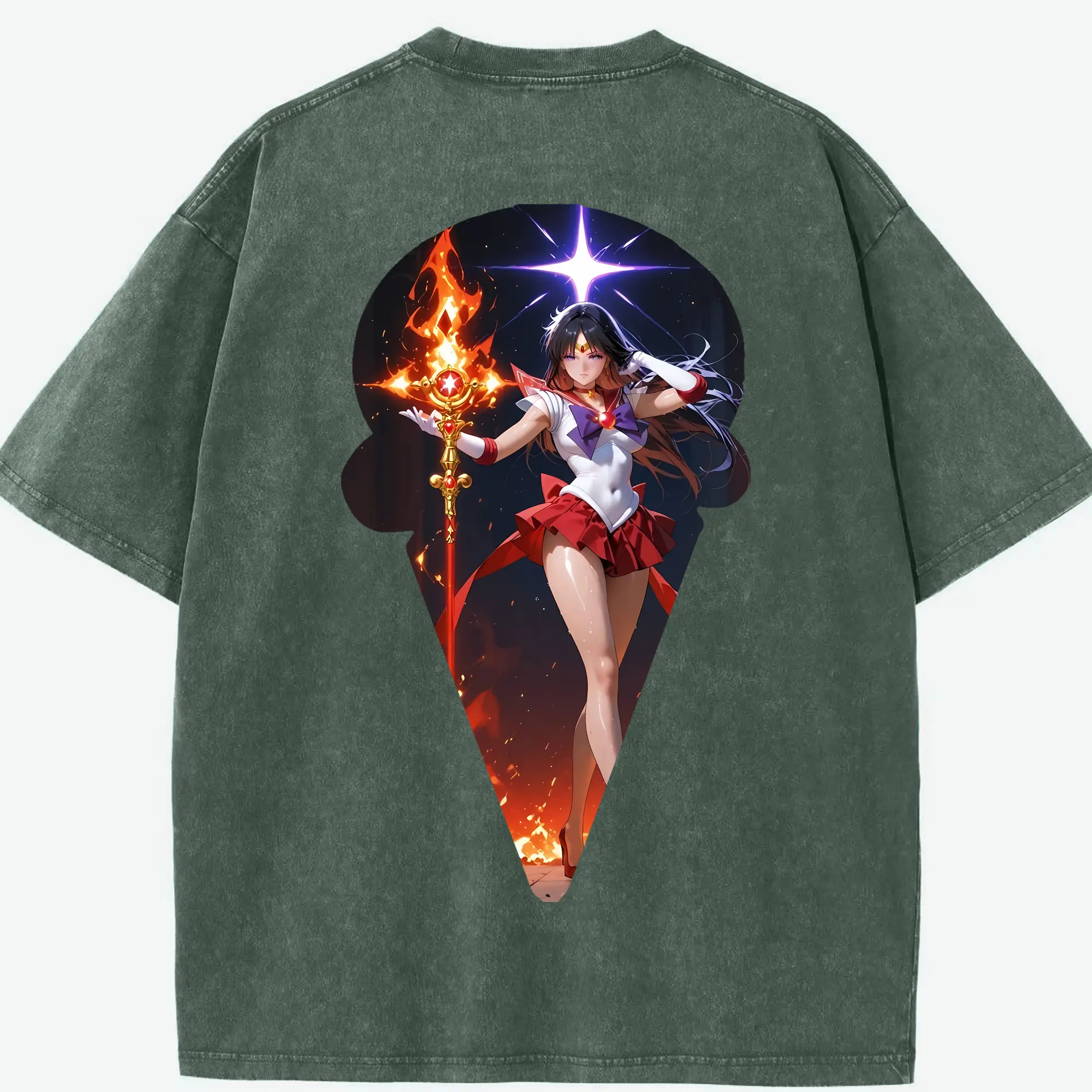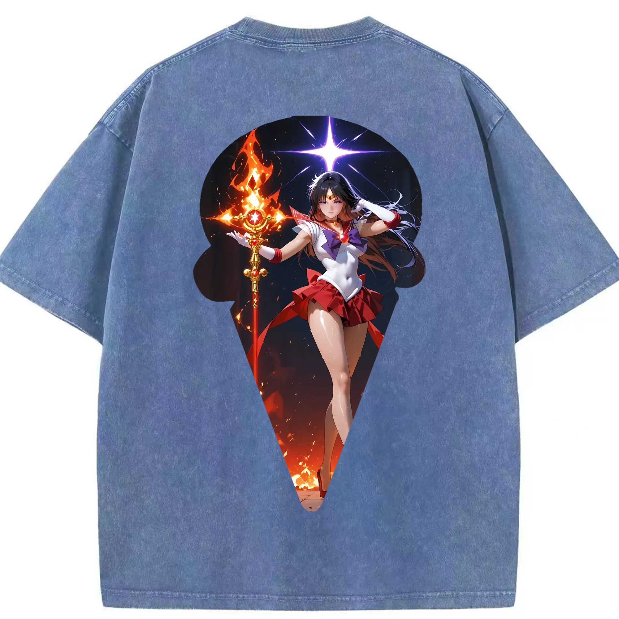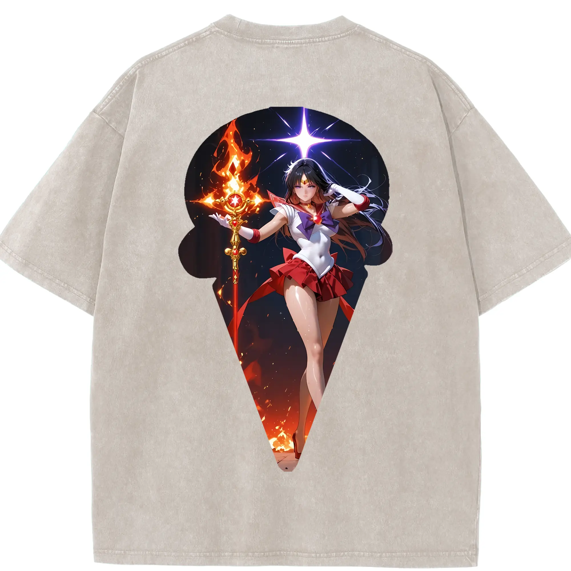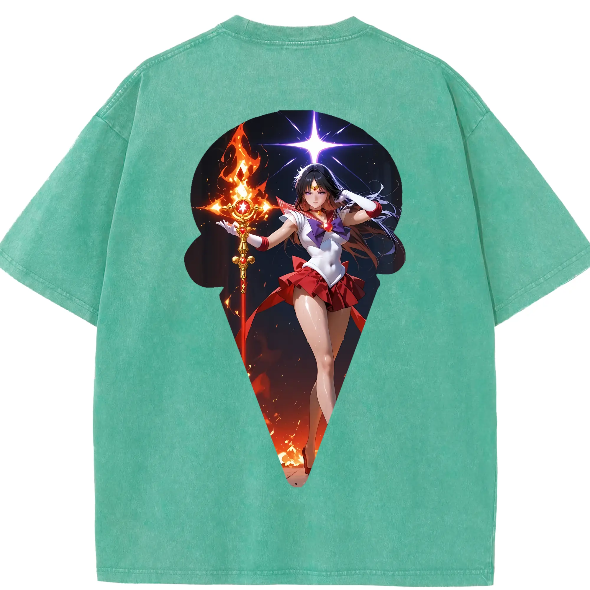 美少女戦士セーラームーン グッズ 火野 レイ - 綿100% ヴィンテージ風 半袖Tシャツ ・ フロントプリント ・ 柔らか肌触り ・ 通気性 快適 ・ スポーツ カジュアル 外出用