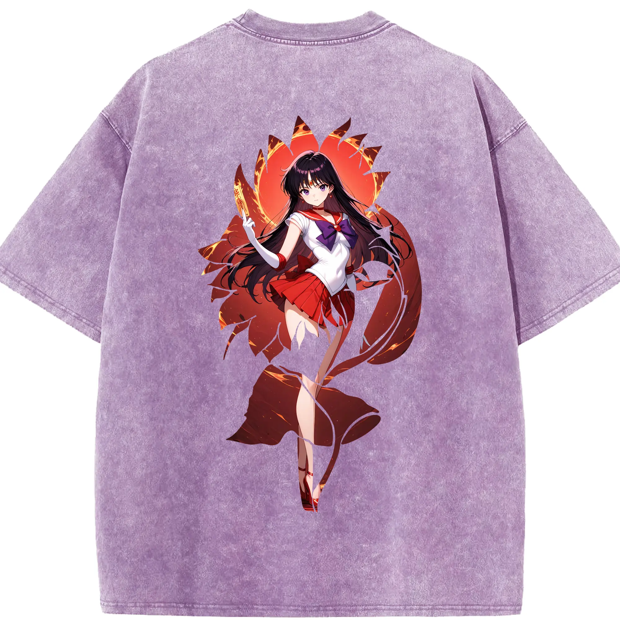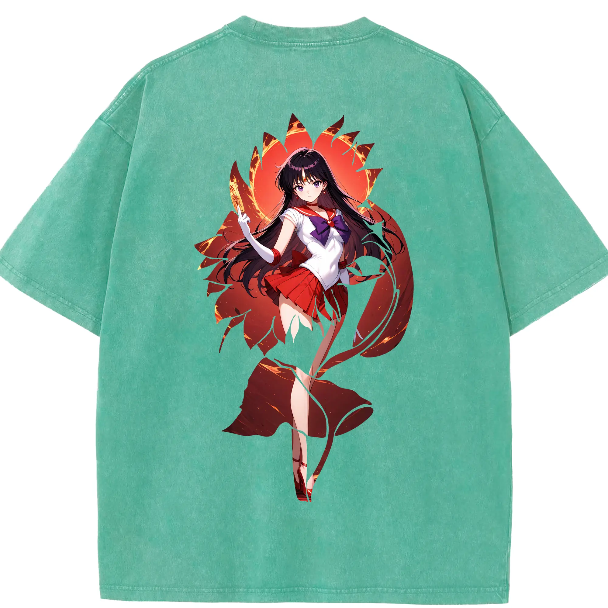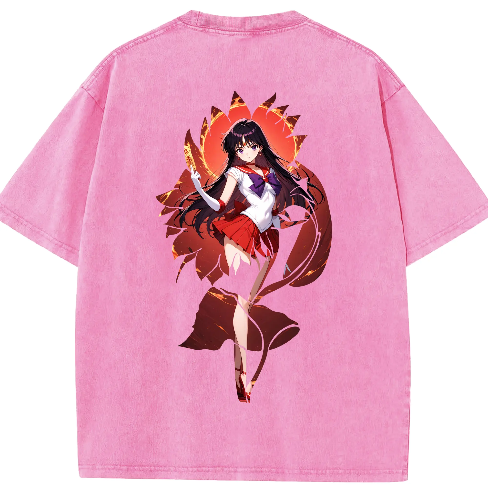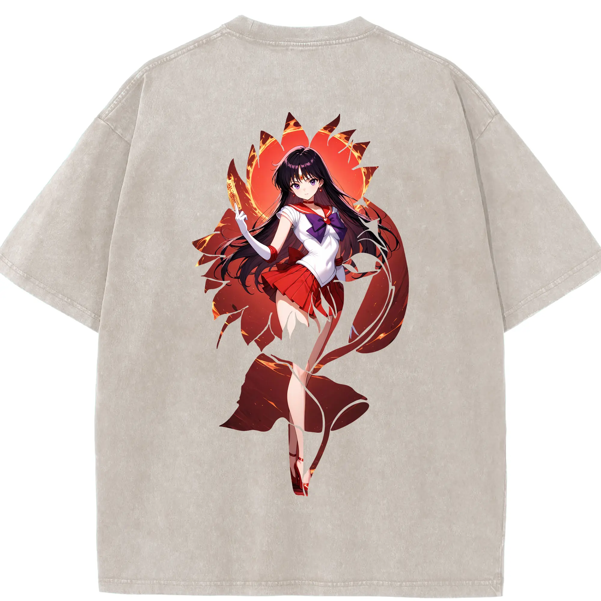 美少女戦士セーラームーン グッズ 火野 レイ - 綿100% ヴィンテージ風 半袖Tシャツ ・ フロントプリント ・ 柔らか肌触り ・ 通気性 快適 ・ スポーツ カジュアル 外出用