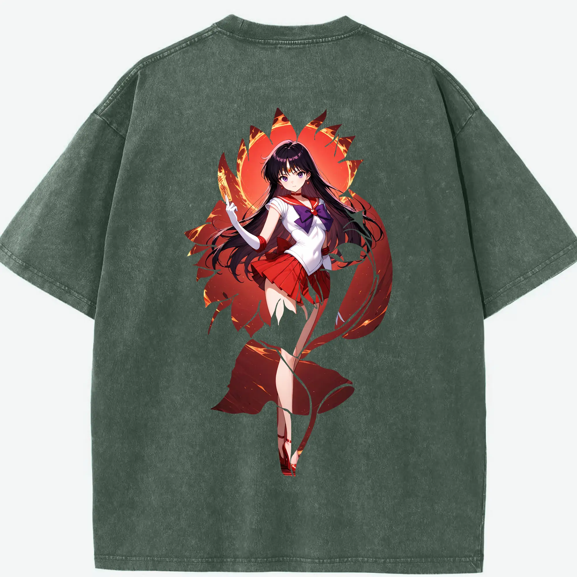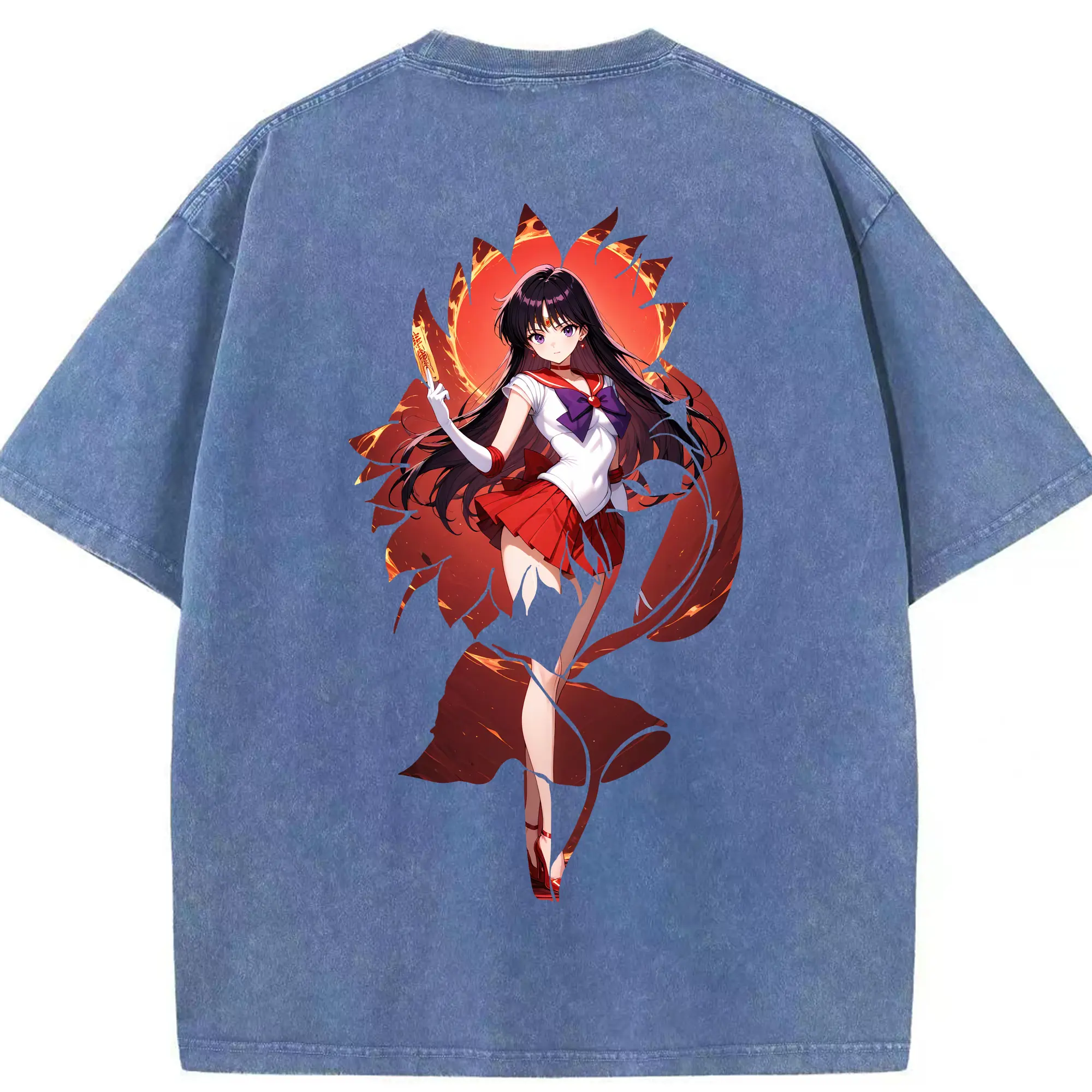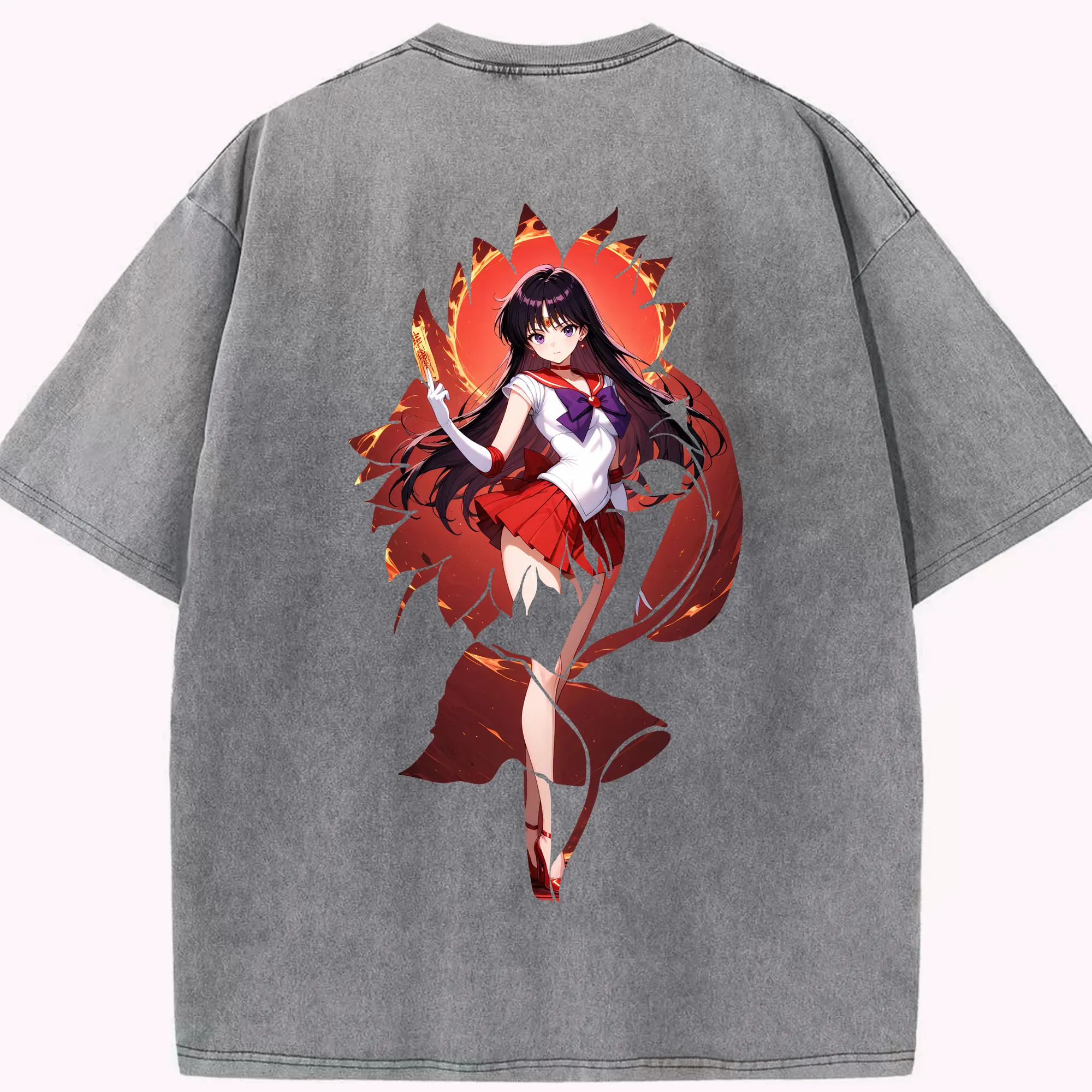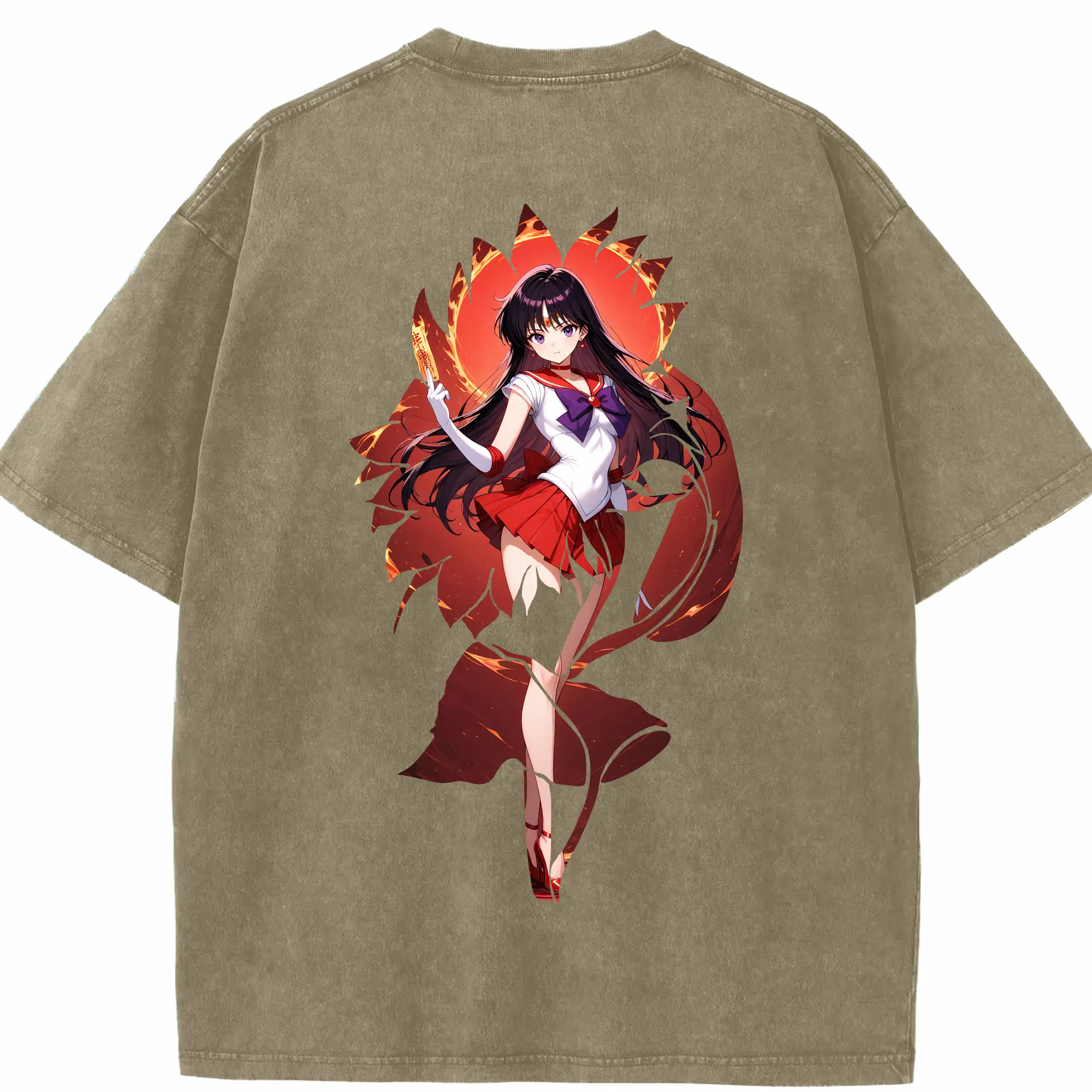 美少女戦士セーラームーン グッズ 火野 レイ - 綿100% ヴィンテージ風 半袖Tシャツ ・ フロントプリント ・ 柔らか肌触り ・ 通気性 快適 ・ スポーツ カジュアル 外出用
