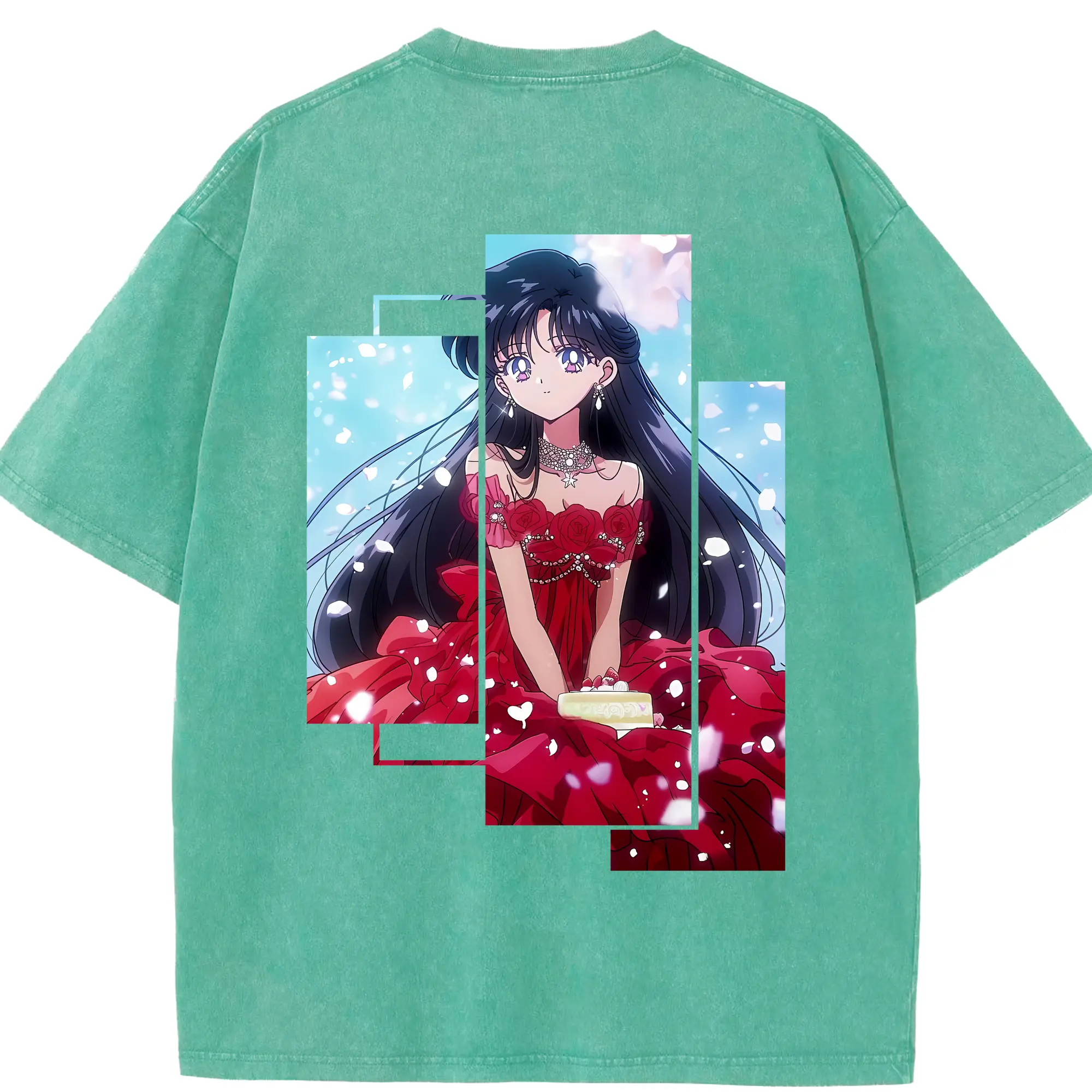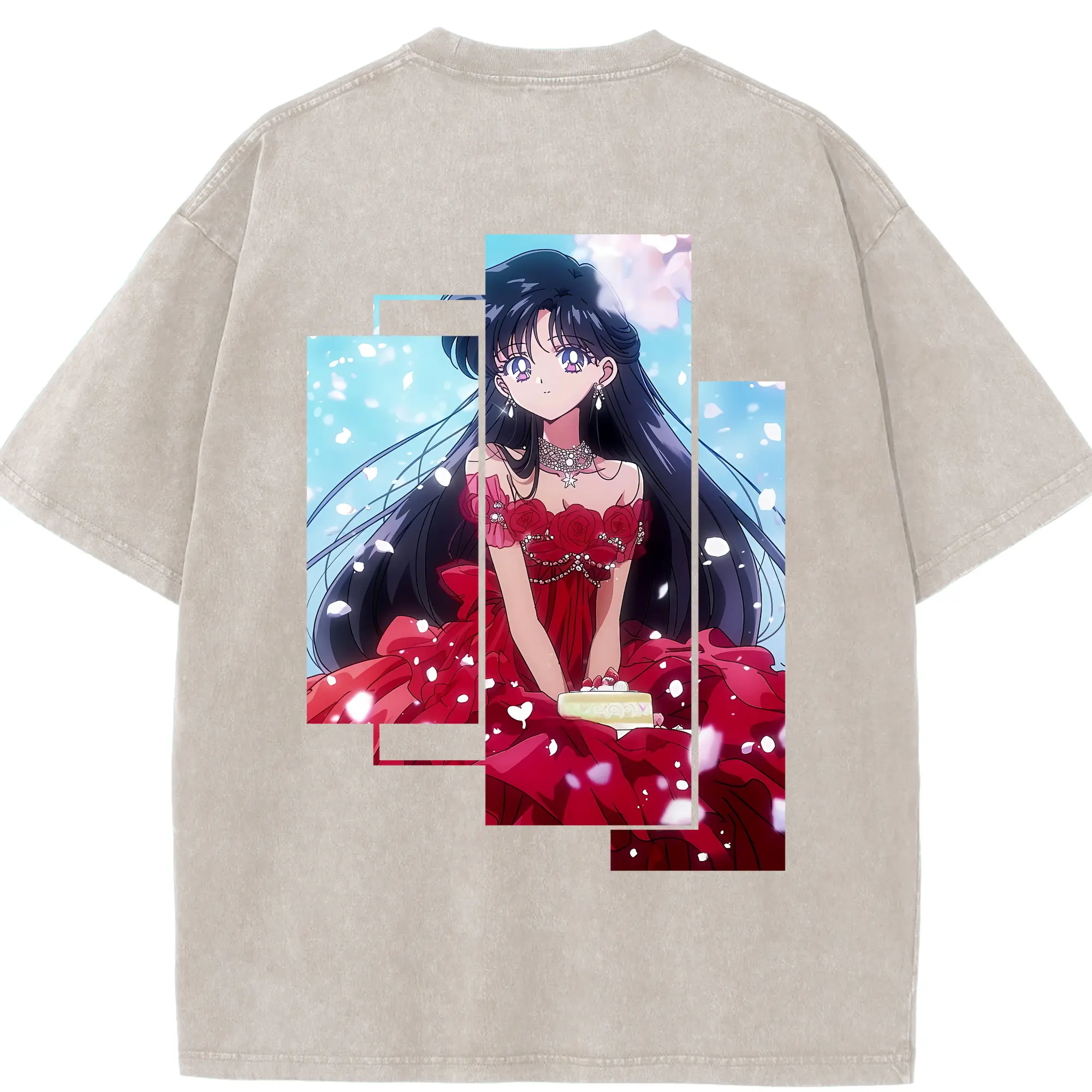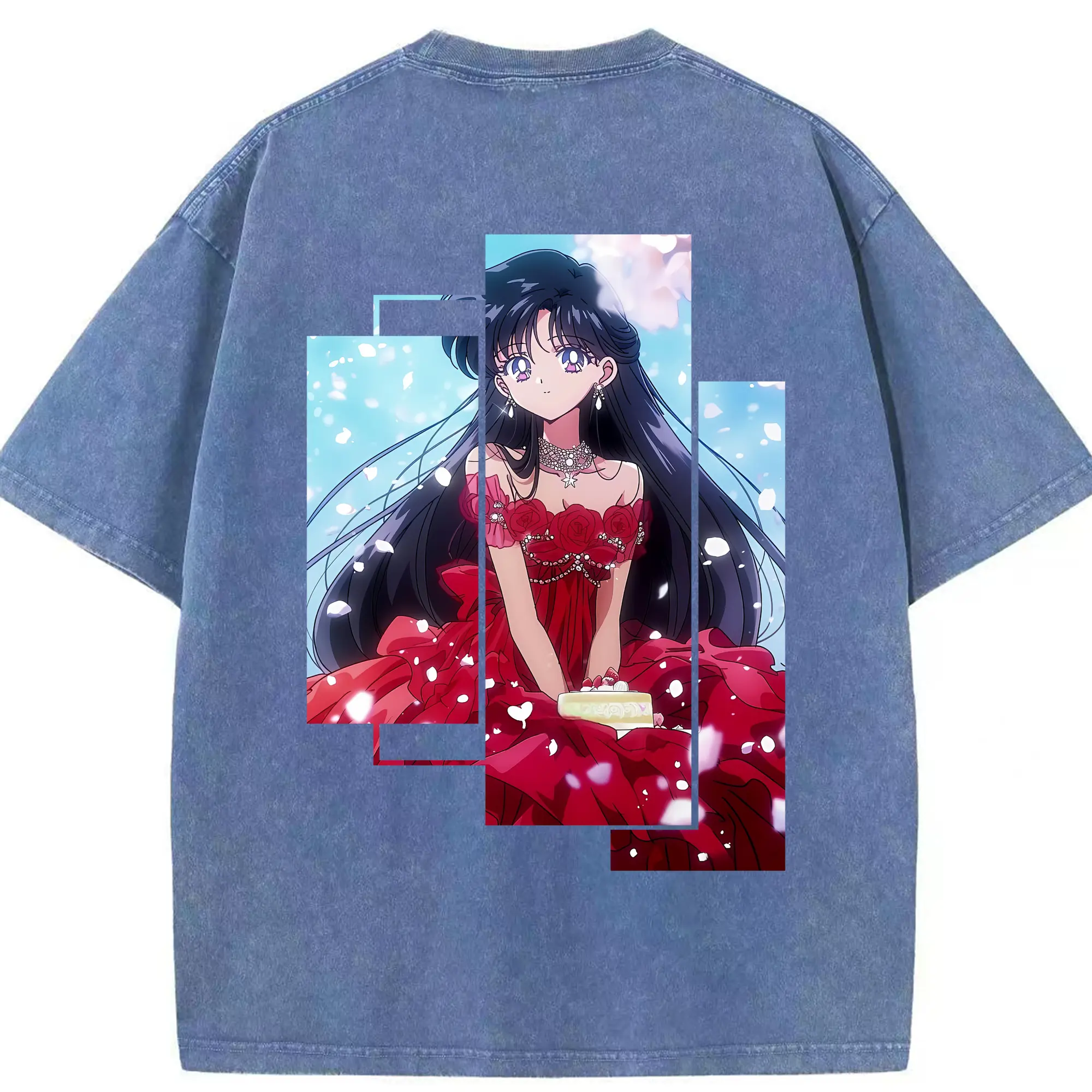 美少女戦士セーラームーン グッズ 火野 レイ - 綿100% ヴィンテージ風 半袖Tシャツ ・ フロントプリント ・ 柔らか肌触り ・ 通気性 快適 ・ スポーツ カジュアル 外出用