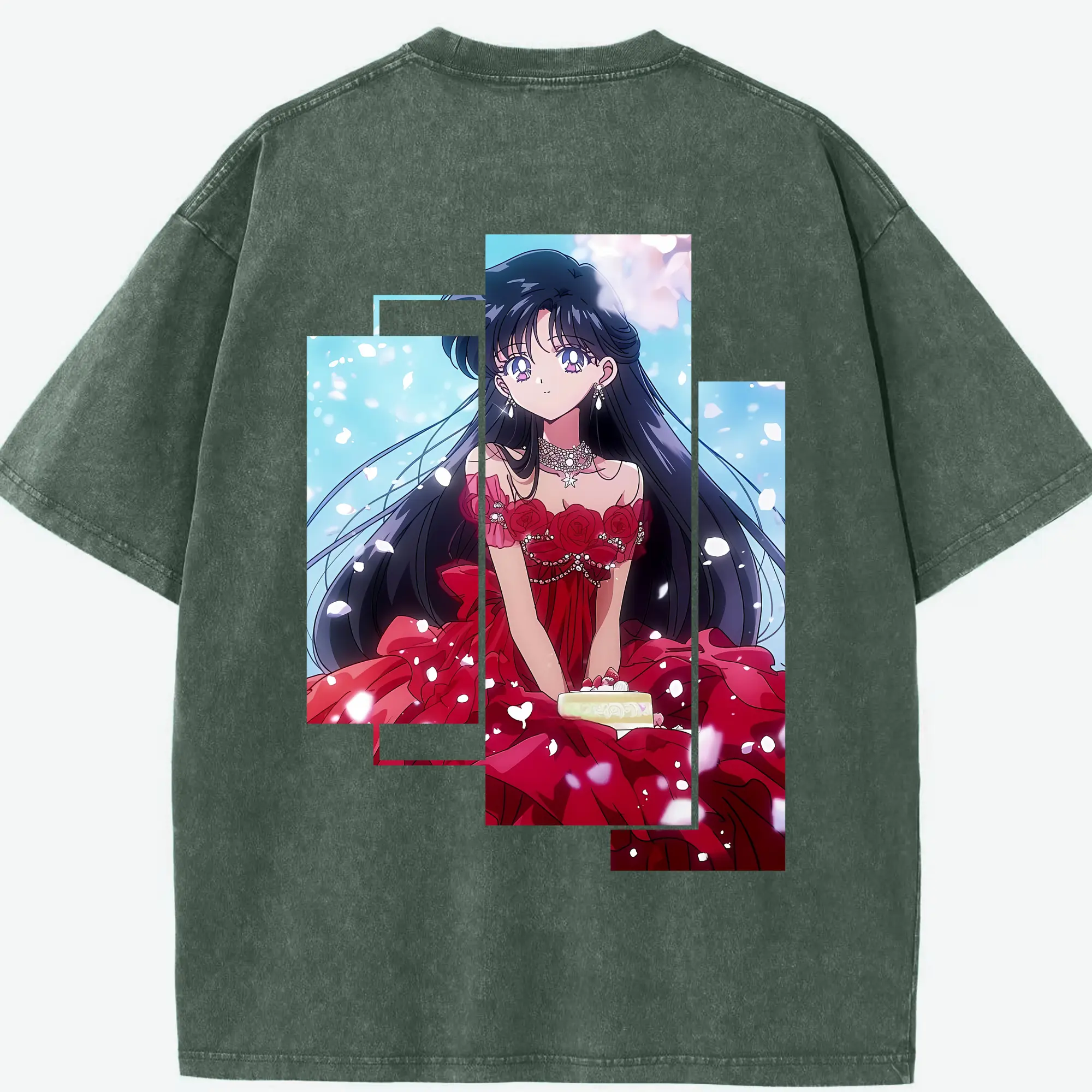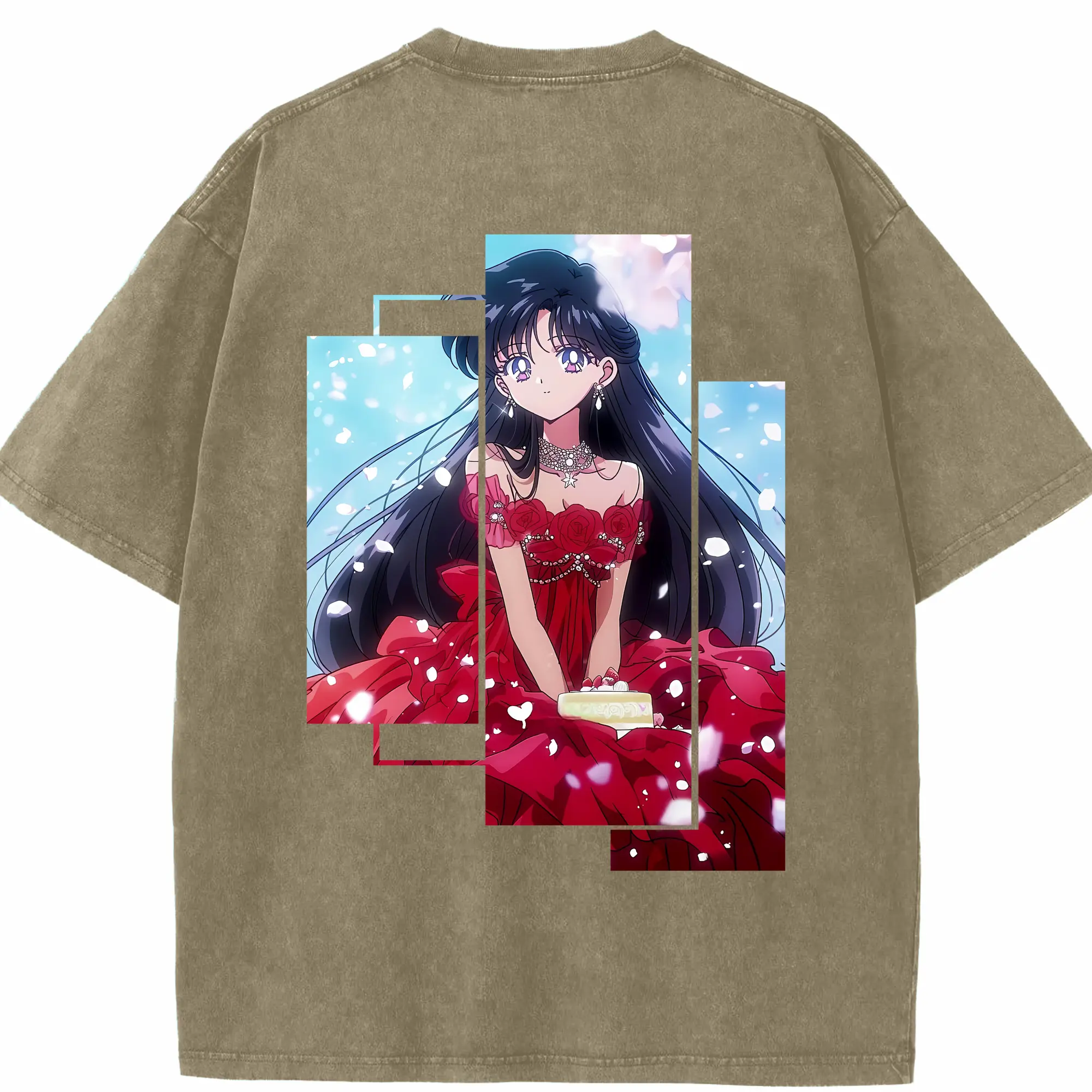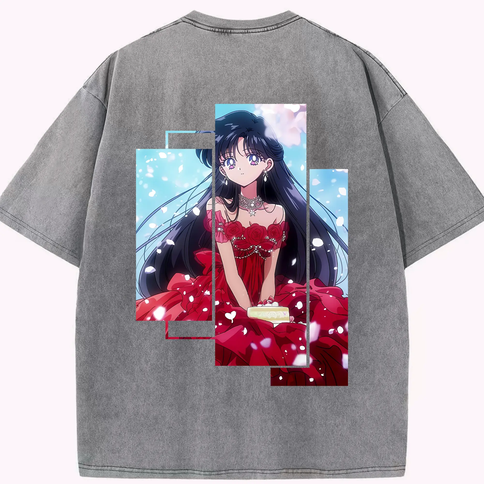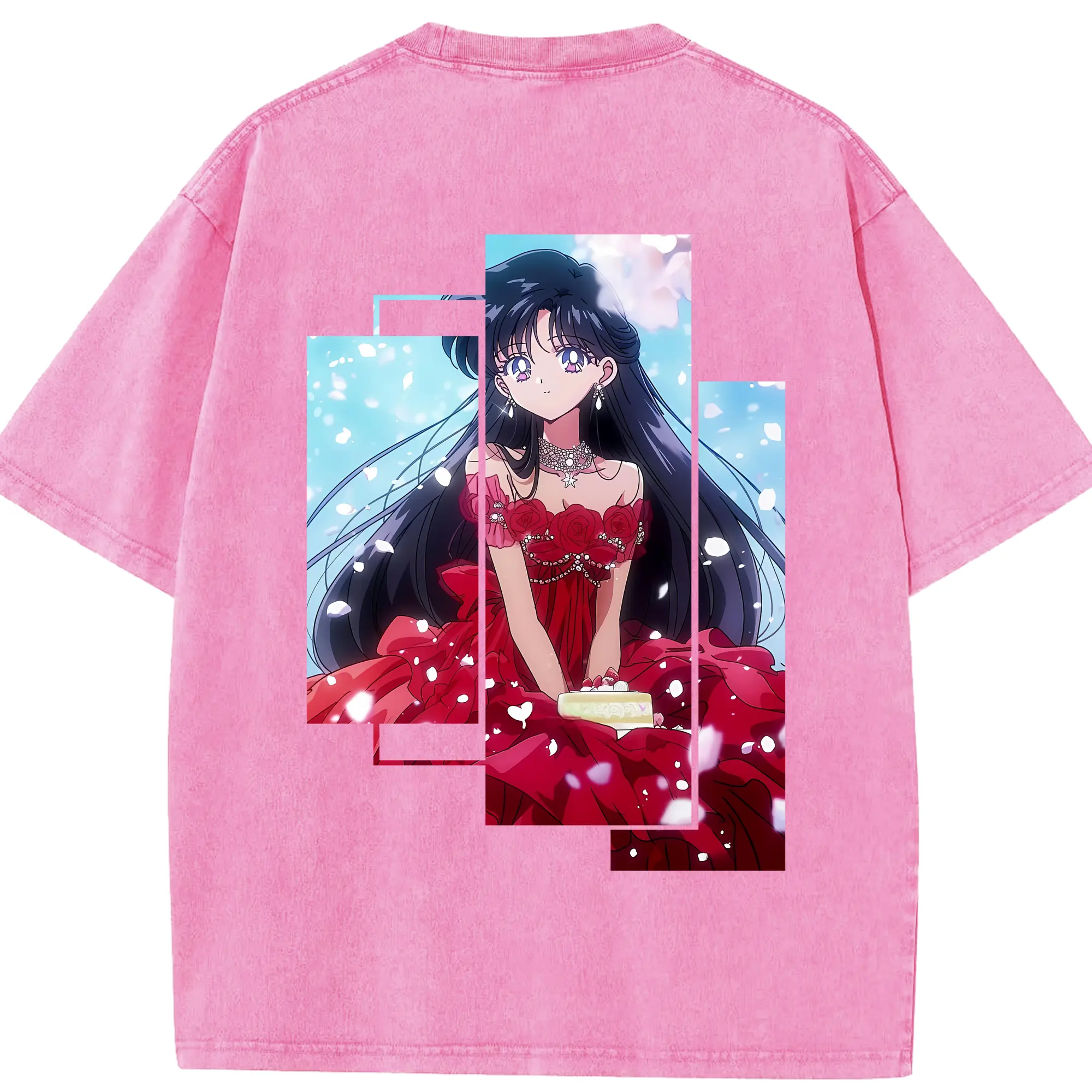 美少女戦士セーラームーン グッズ 火野 レイ - 綿100% ヴィンテージ風 半袖Tシャツ ・ フロントプリント ・ 柔らか肌触り ・ 通気性 快適 ・ スポーツ カジュアル 外出用