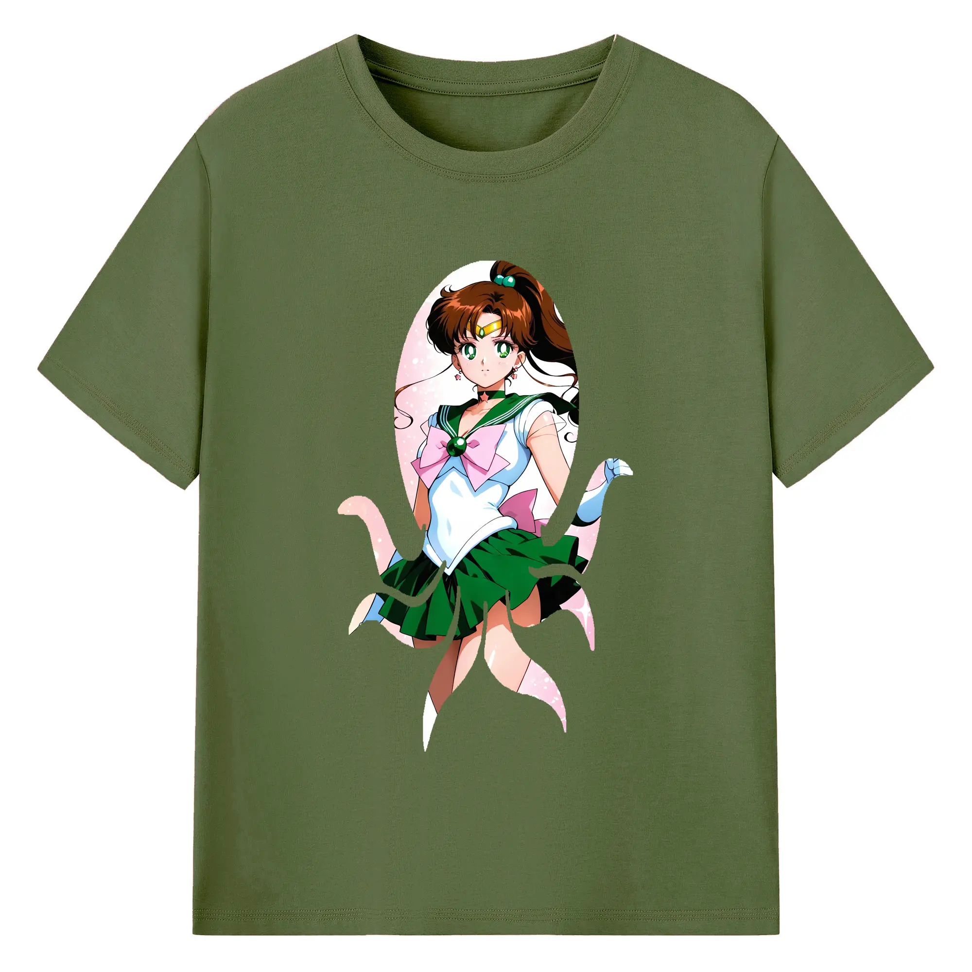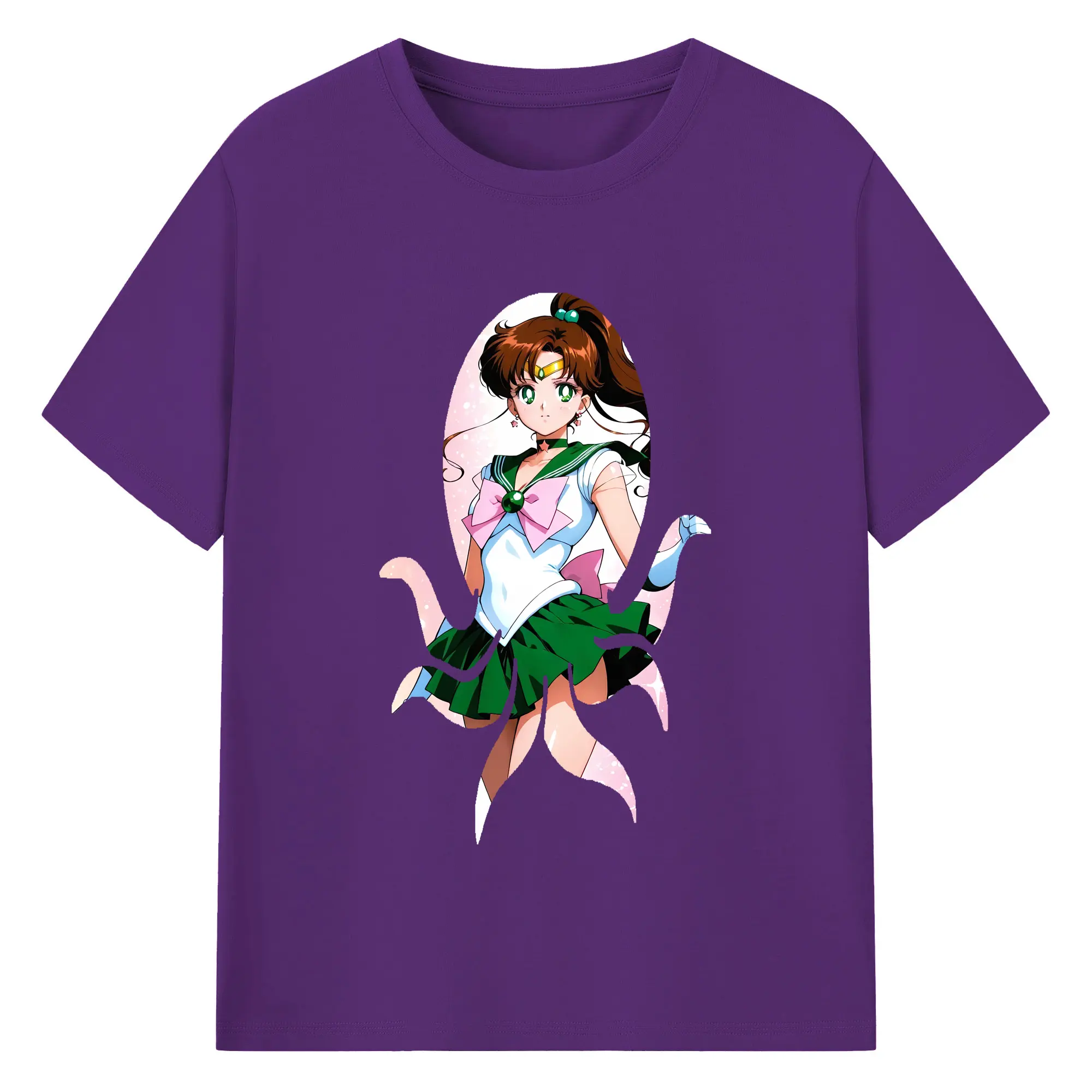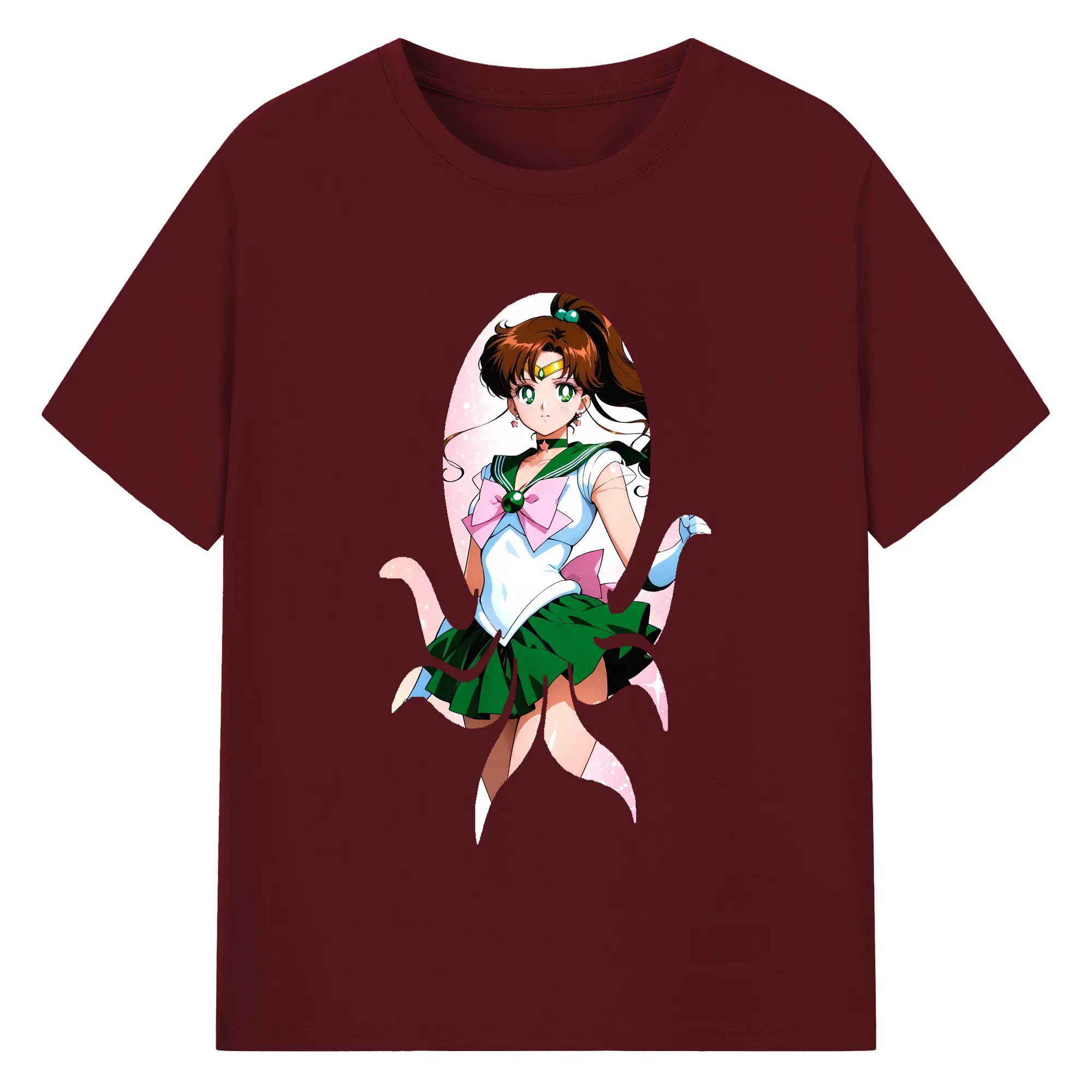 美少女戦士セーラームーン グッズ 木野 まこと - 綿100% 半袖Tシャツ ・ バックプリント ・ 快適 通気性 ・ 日常使い 散歩 スポーツ用