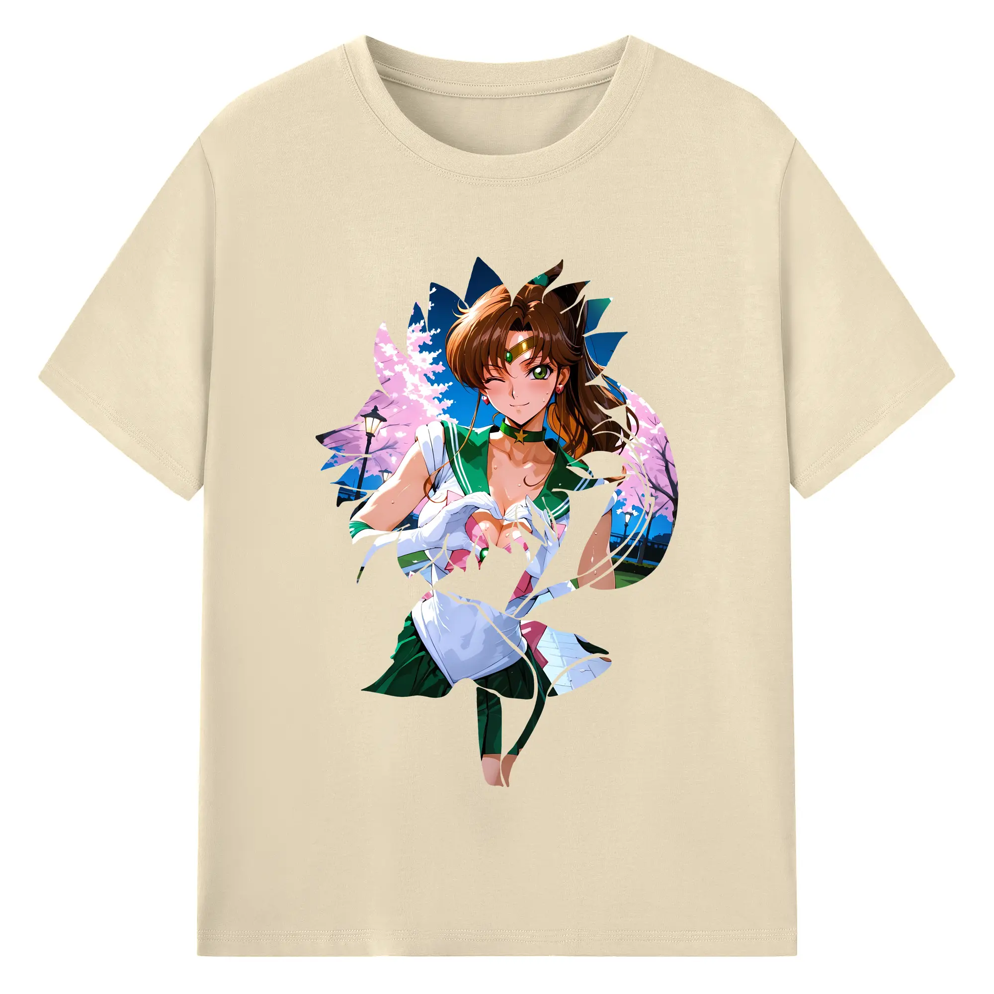 美少女戦士セーラームーン グッズ 木野 まこと - 綿100% 半袖Tシャツ ・ バックプリント ・ 快適 通気性 ・ 日常使い 散歩 スポーツ用