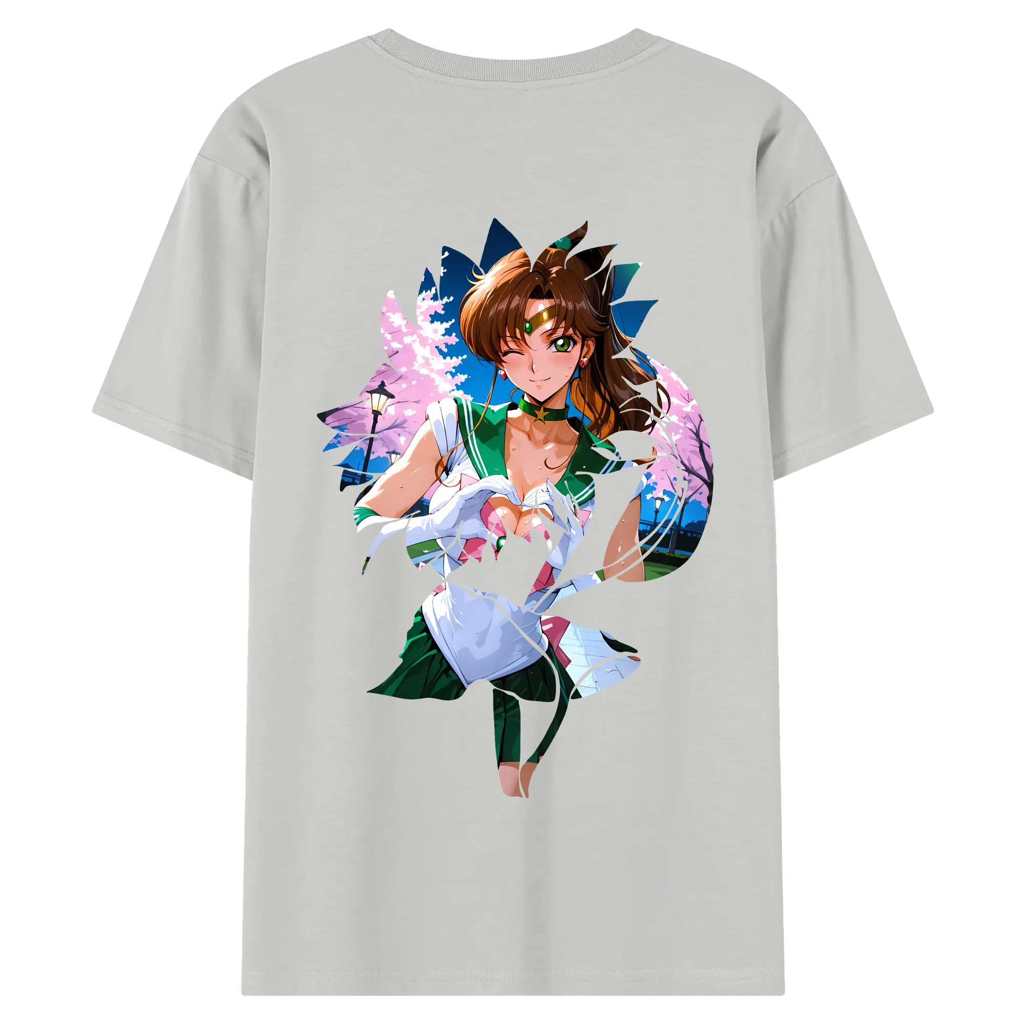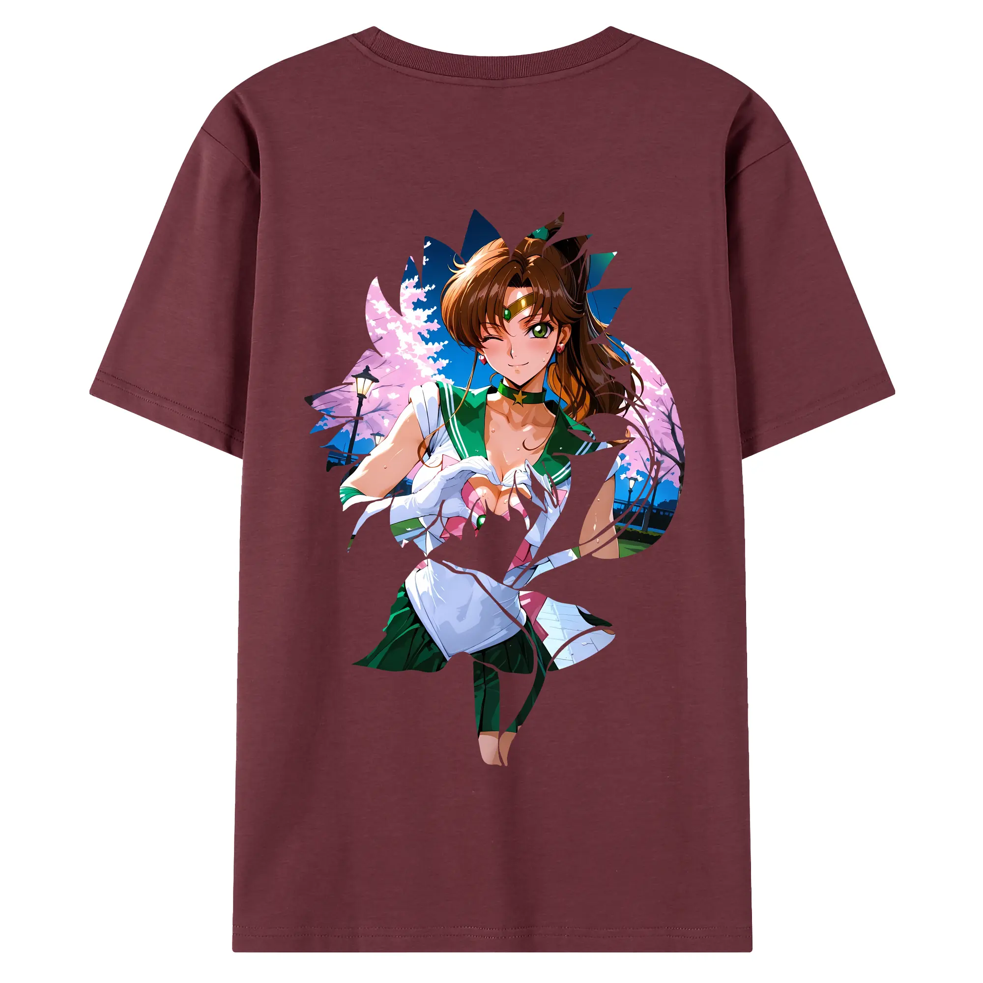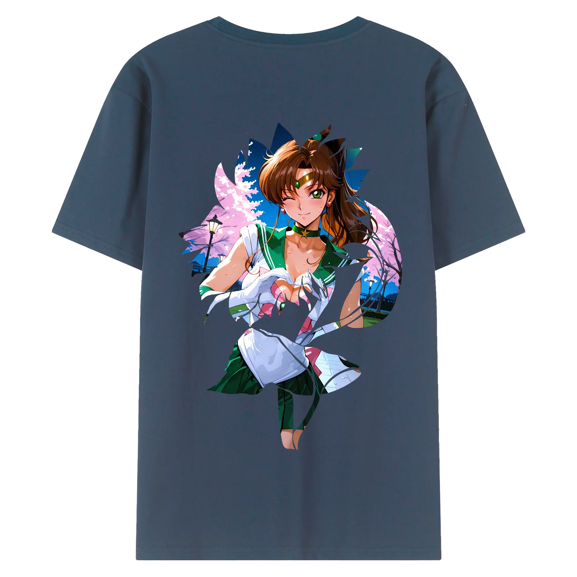 美少女戦士セーラームーン グッズ 木野 まこと - 綿100% ヴィンテージ風 半袖Tシャツ ・ 背面プリント ・ 柔らか肌触り ・ 通気性 快適 ・ スポーツ カジュアル 外出用