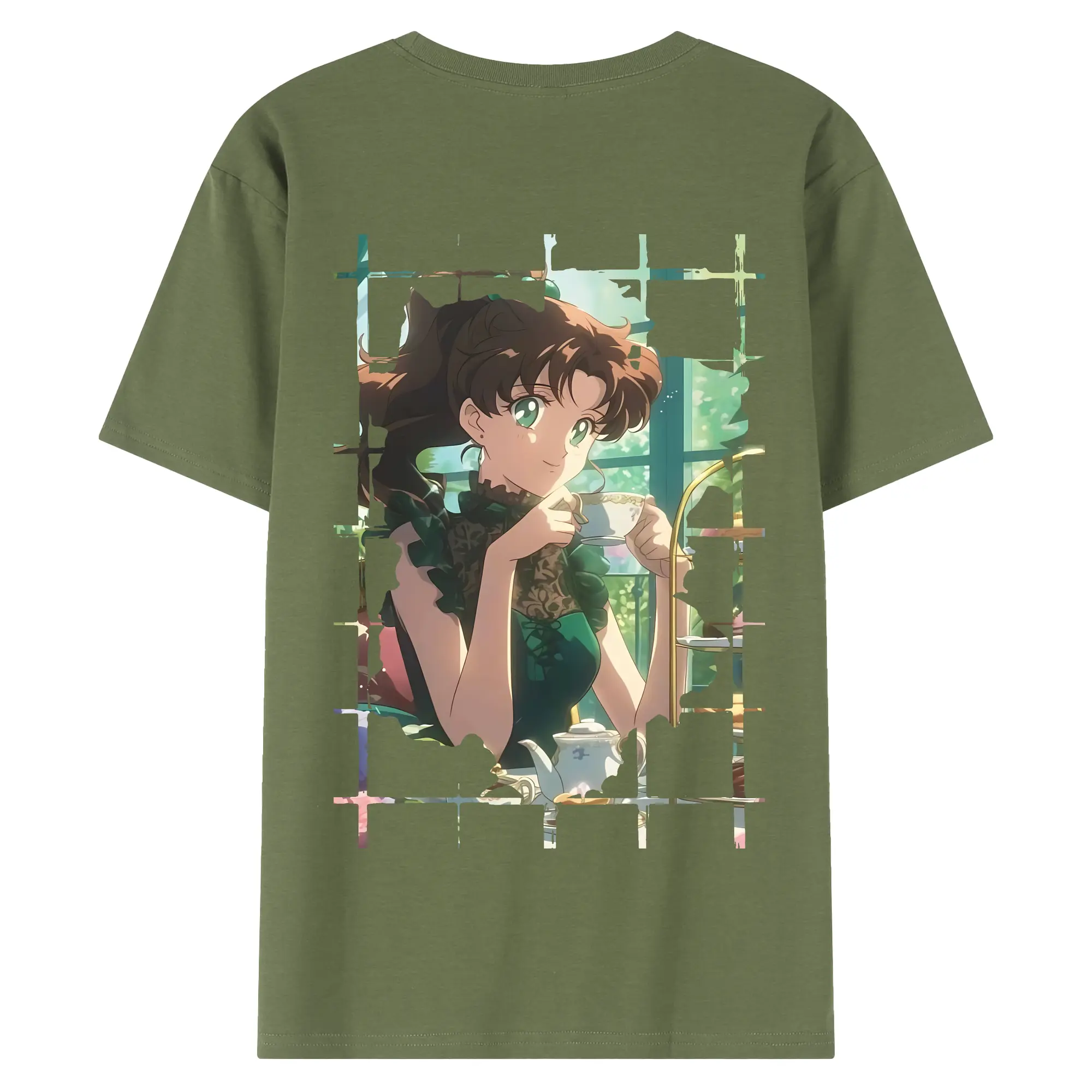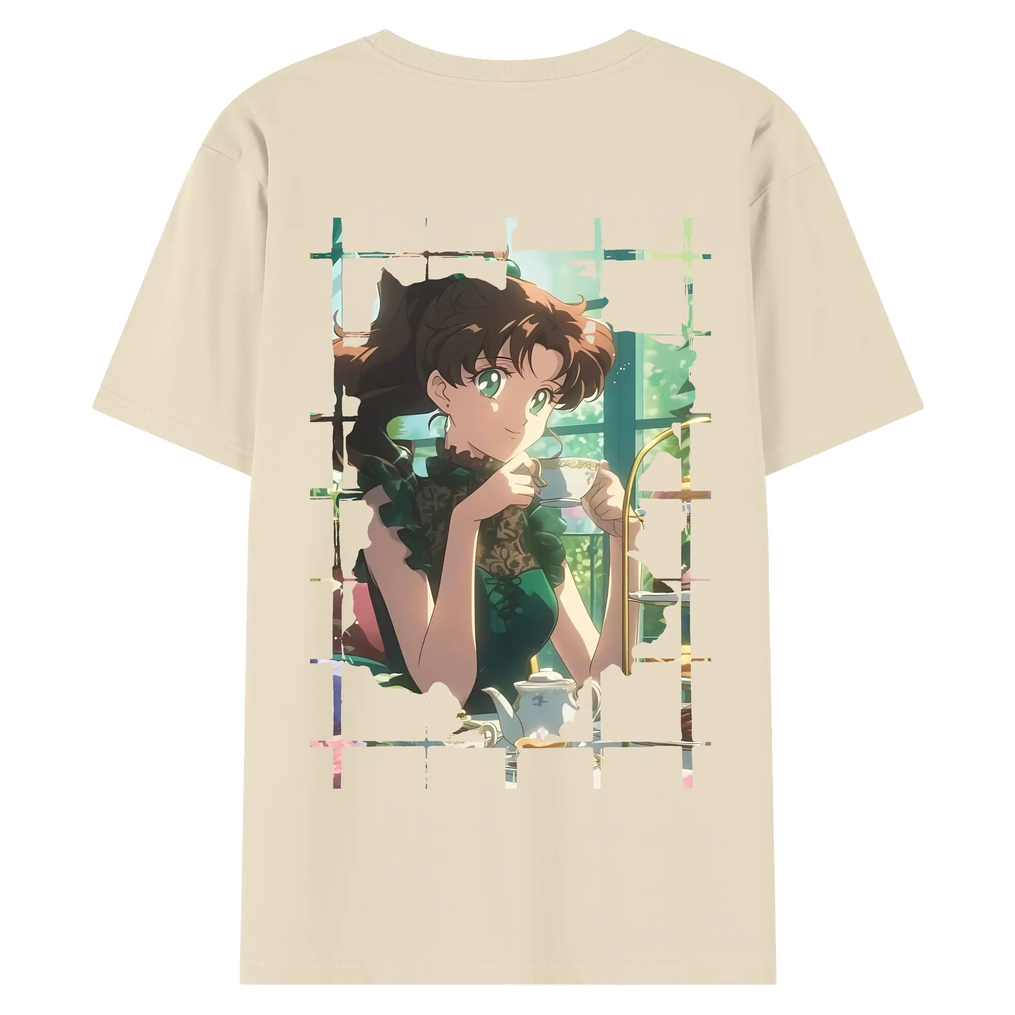 美少女戦士セーラームーン グッズ 木野 まこと - 綿100% ヴィンテージ風 半袖Tシャツ ・ 背面プリント ・ 柔らか肌触り ・ 通気性 快適 ・ スポーツ カジュアル 外出用