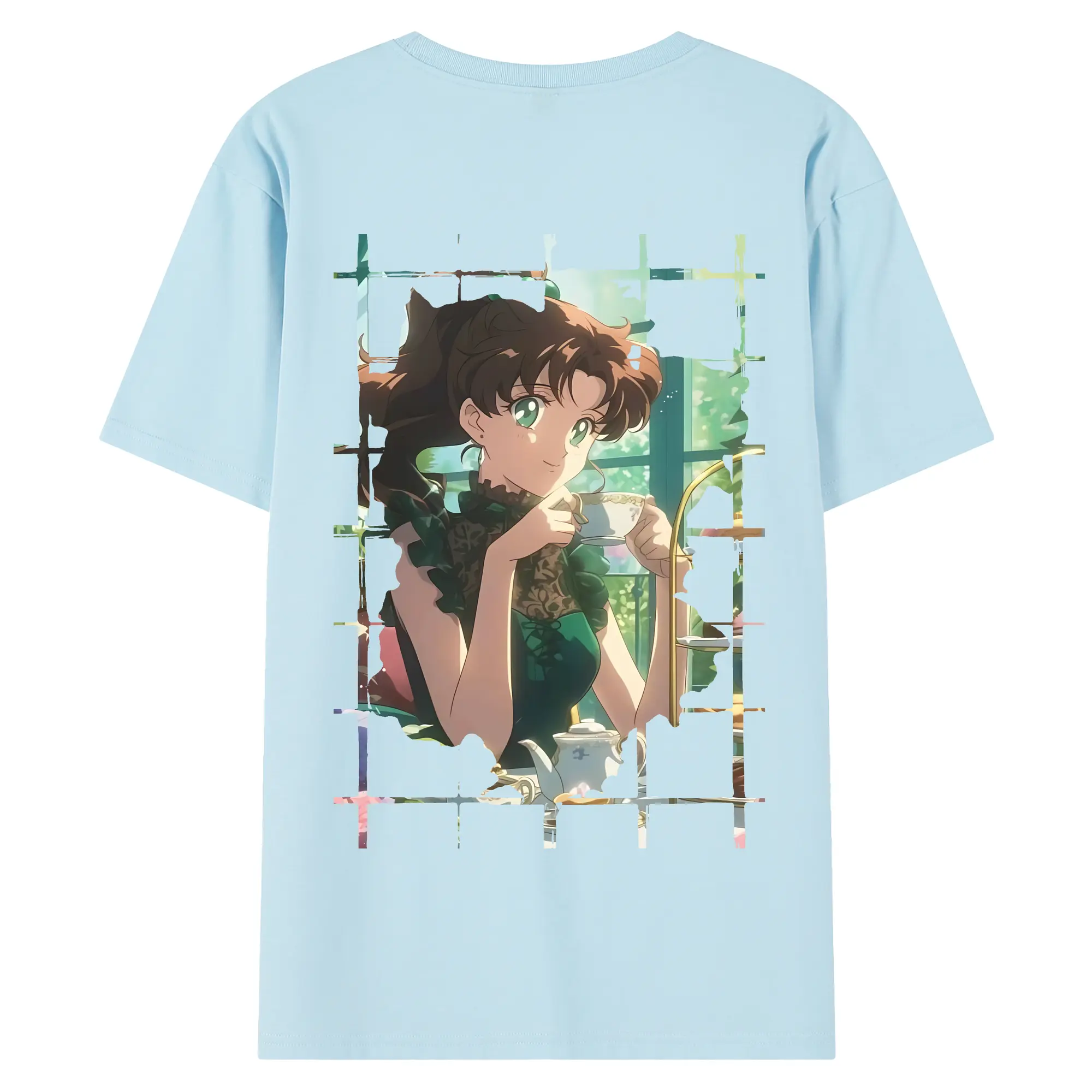 美少女戦士セーラームーン グッズ 水野 亜美 - 綿100% 半袖Tシャツ ・ バックプリント ・ 快適 通気性 ・ 日常使い 散歩 スポーツ用