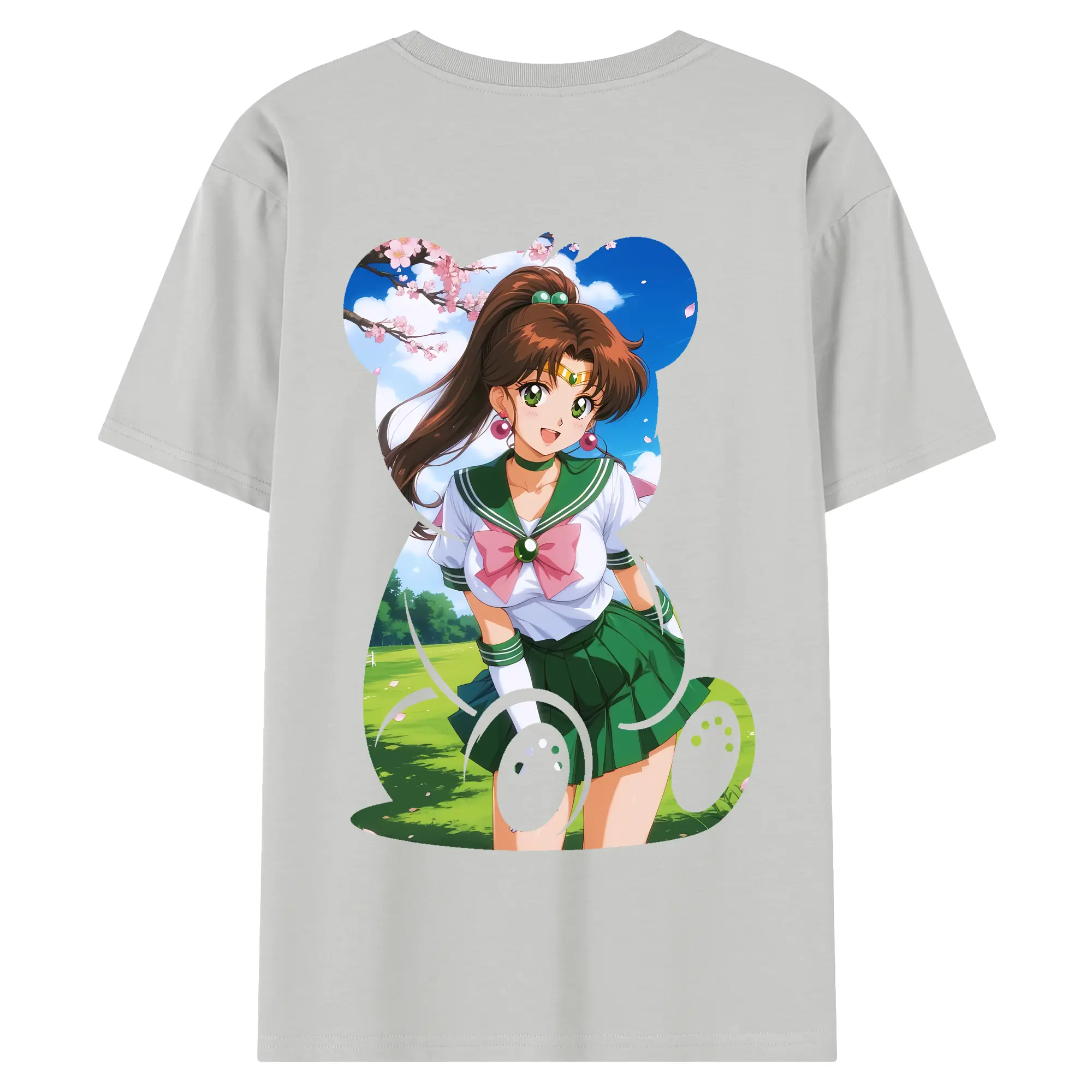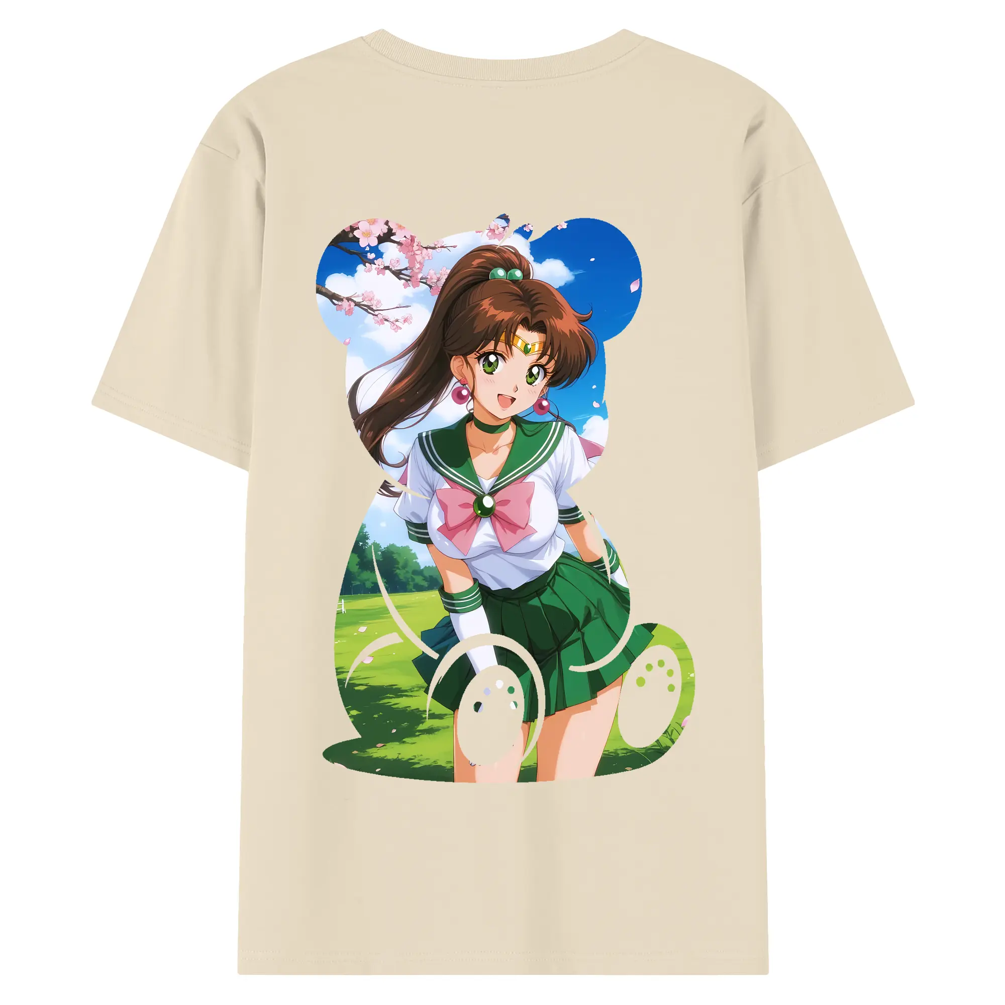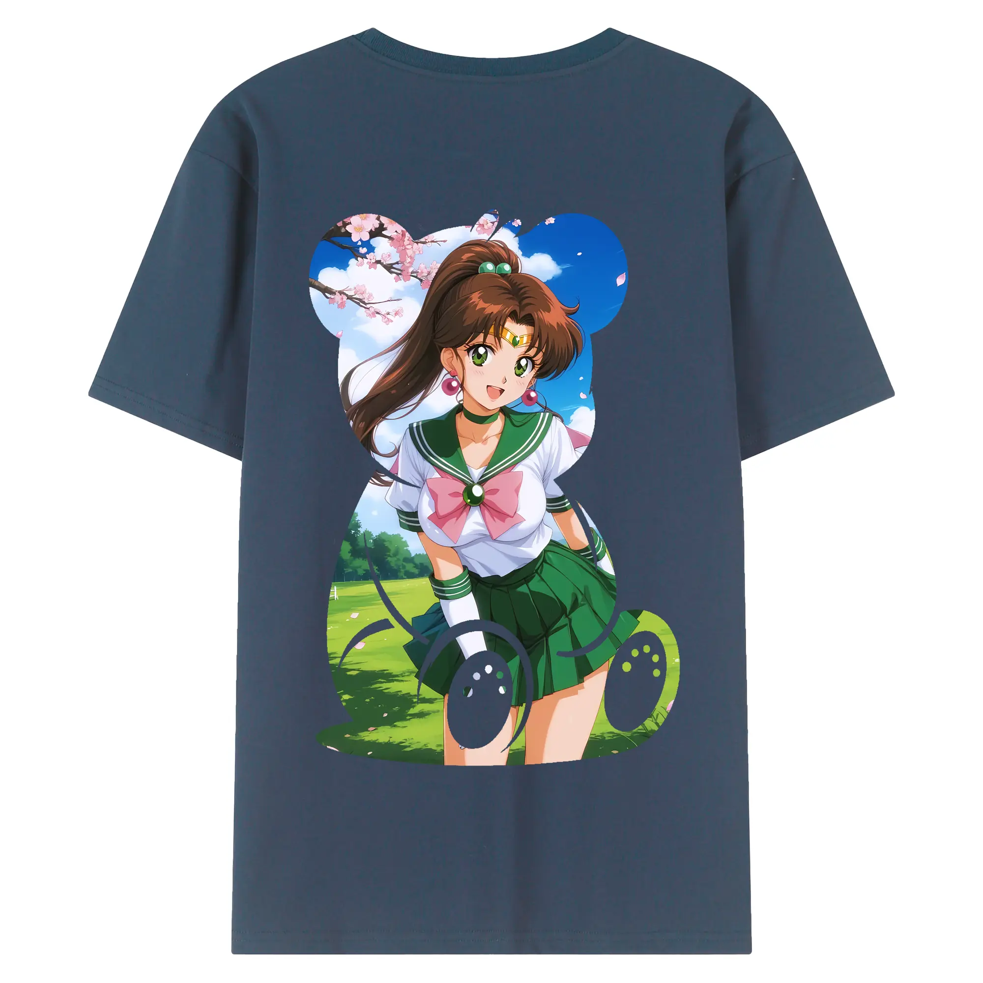 美少女戦士セーラームーン グッズ 木野 まこと - 綿100% ヴィンテージ風 半袖Tシャツ ・ 背面プリント ・ 柔らか肌触り ・ 通気性 快適 ・ スポーツ カジュアル 外出用