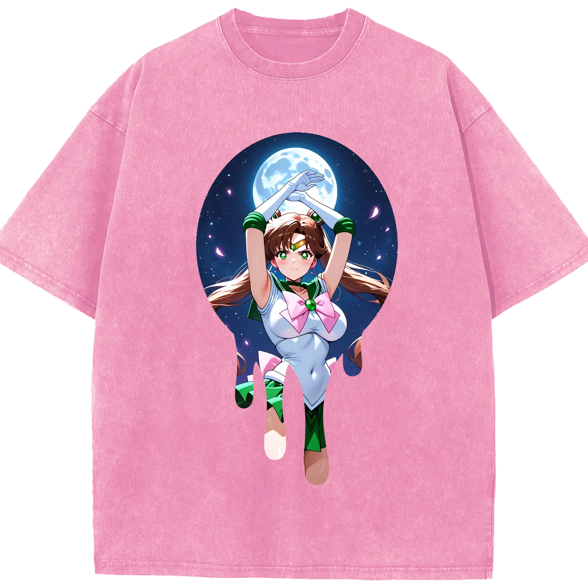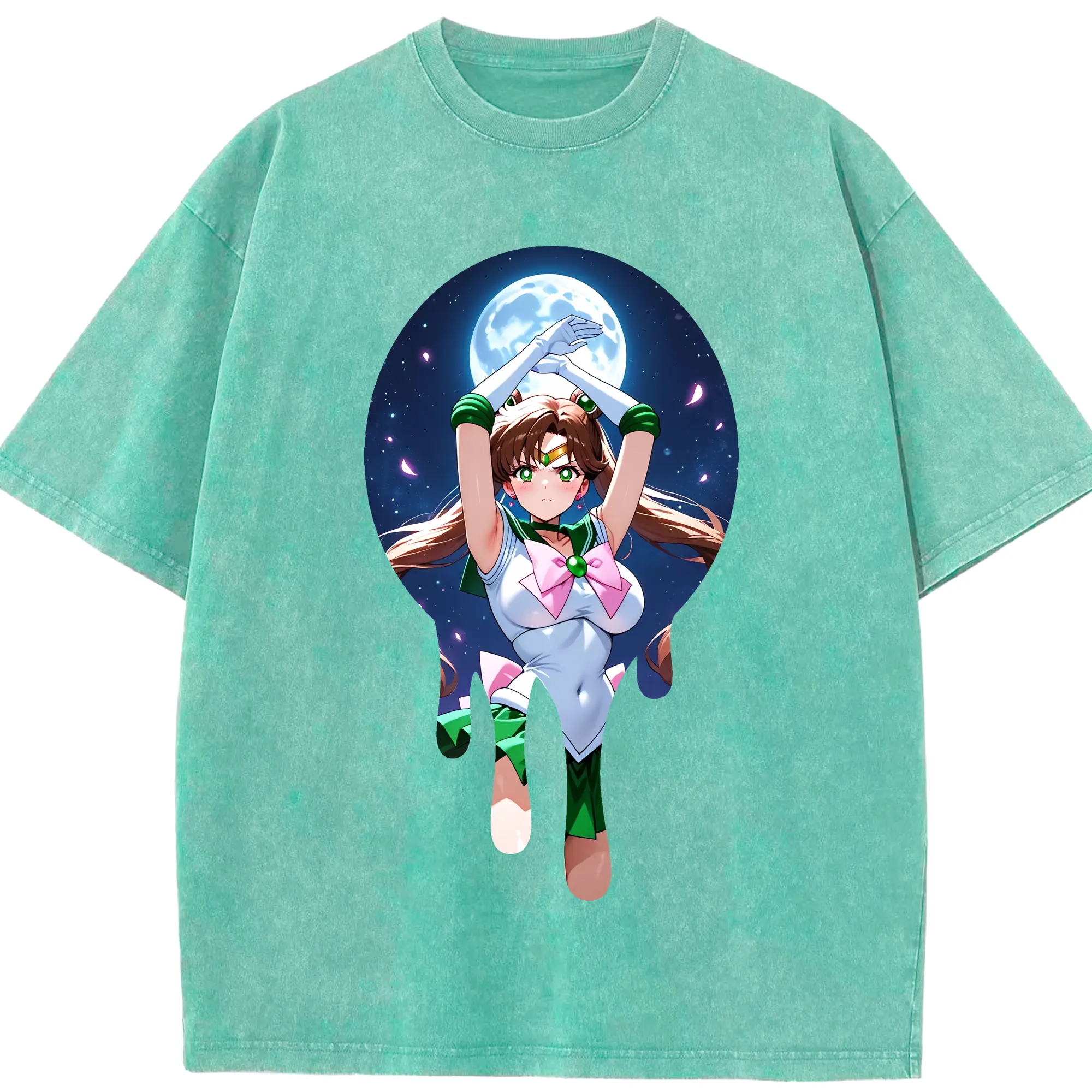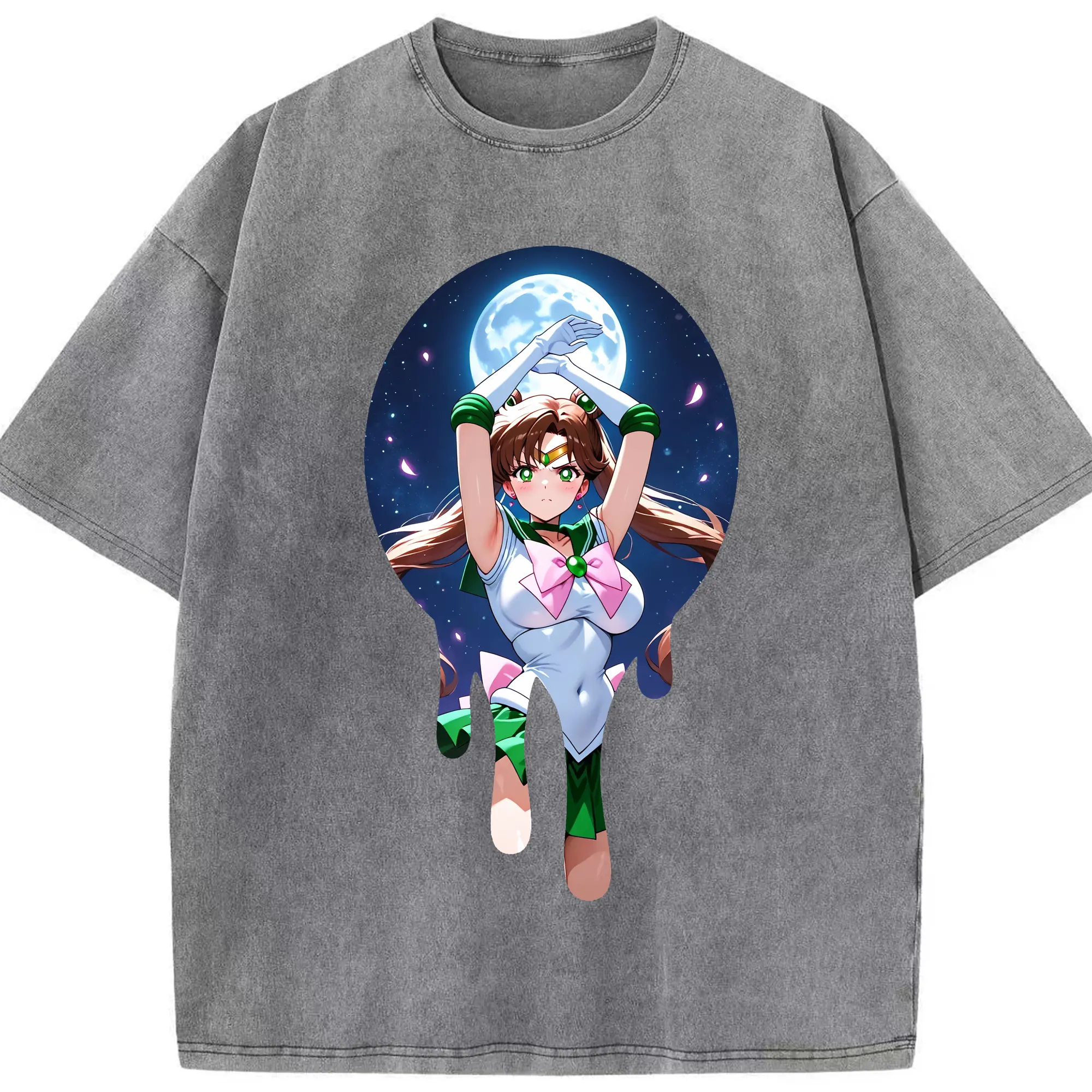 美少女戦士セーラームーン グッズ 木野 まこと - 綿100% ヴィンテージ風 半袖Tシャツ ・ 背面プリント ・ 柔らか肌触り ・ 通気性 快適 ・ スポーツ カジュアル 外出用