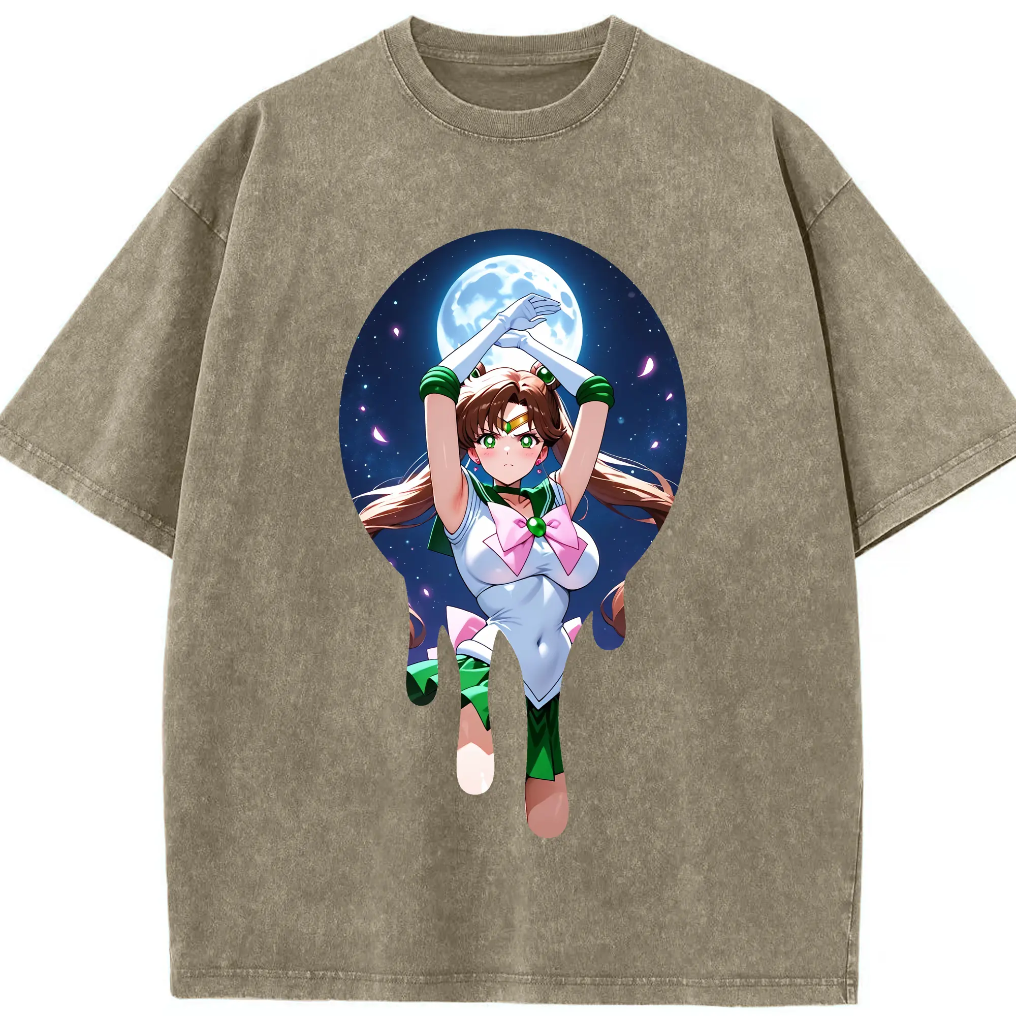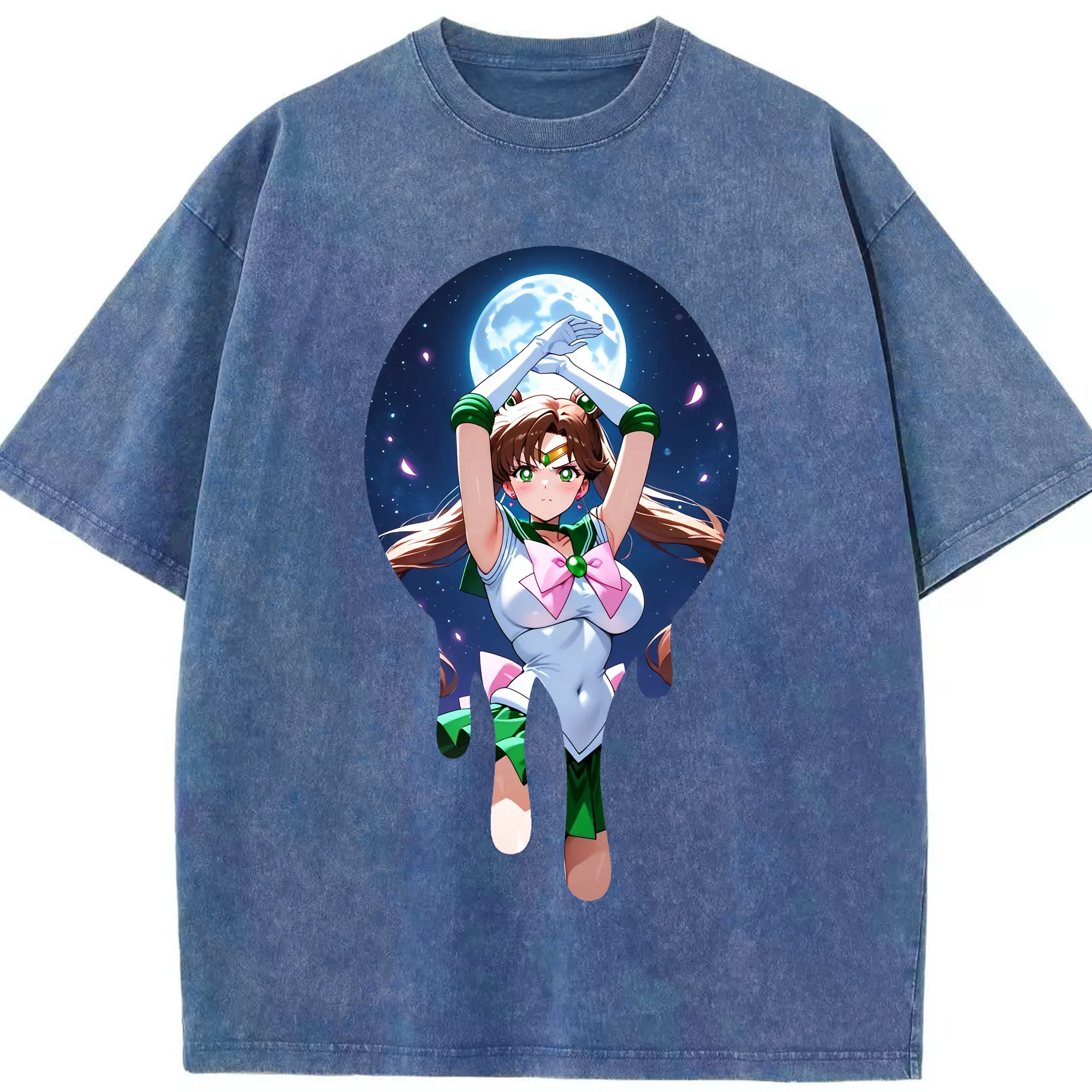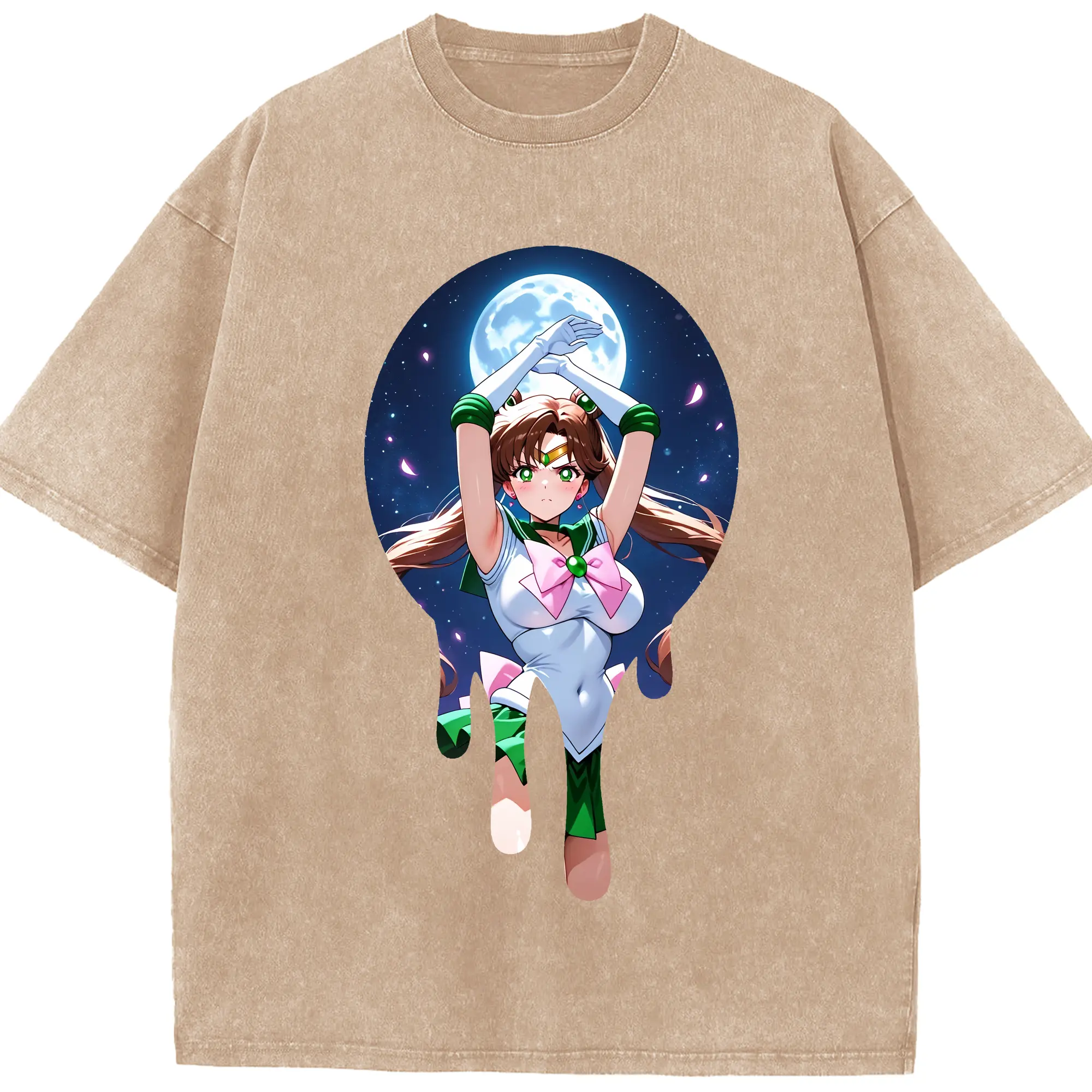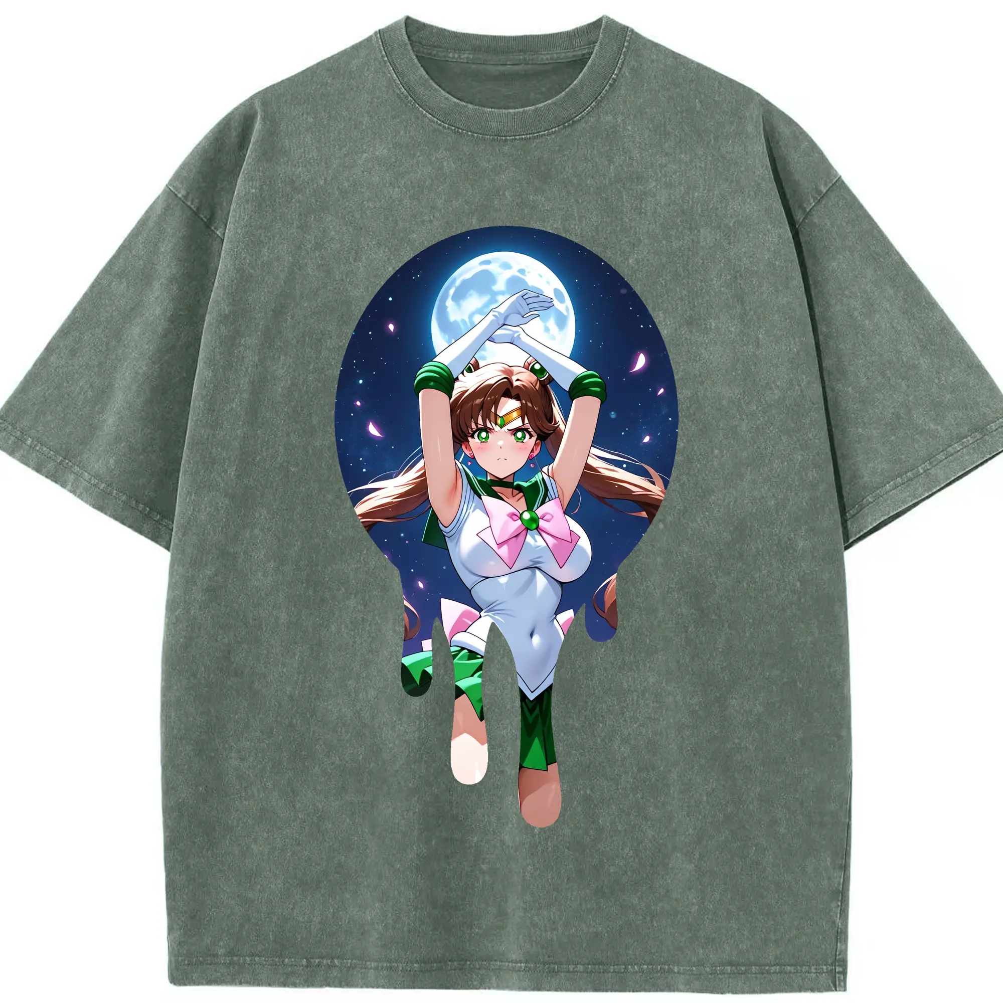 美少女戦士セーラームーン グッズ 木野 まこと - 綿100% ヴィンテージ風 半袖Tシャツ ・ 背面プリント ・ 柔らか肌触り ・ 通気性 快適 ・ スポーツ カジュアル 外出用
