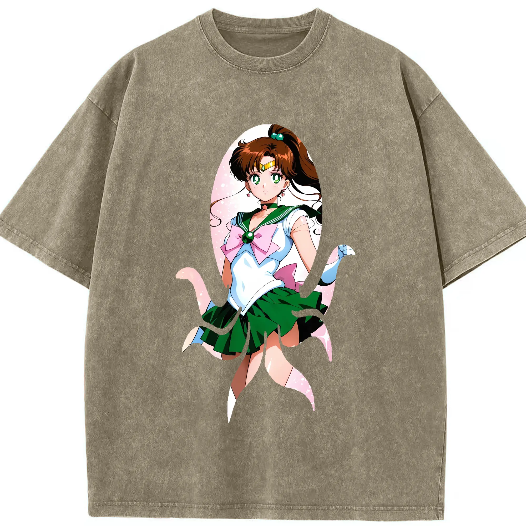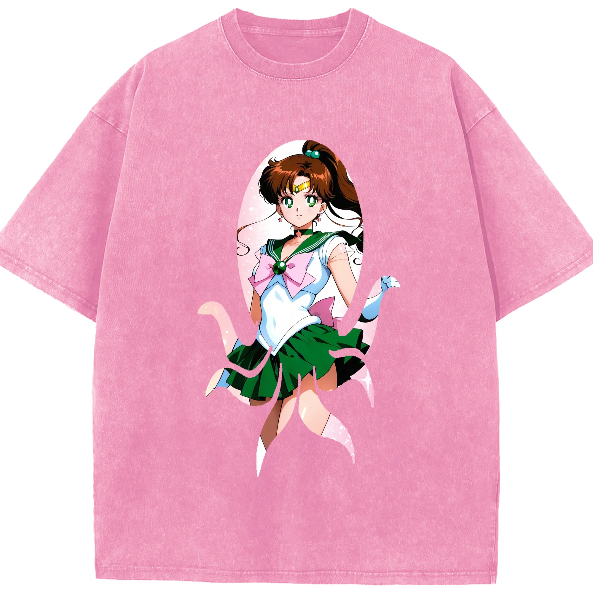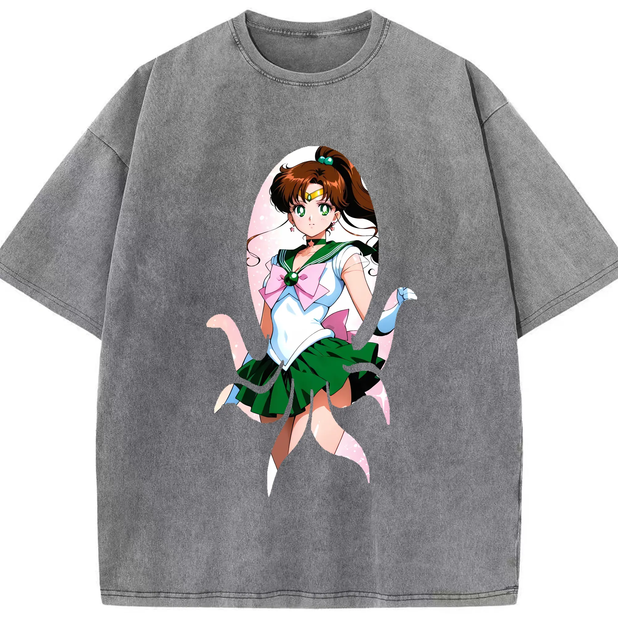 美少女戦士セーラームーン グッズ 木野 まこと - 綿100% ヴィンテージ風 半袖Tシャツ ・ 背面プリント ・ 柔らか肌触り ・ 通気性 快適 ・ スポーツ カジュアル 外出用