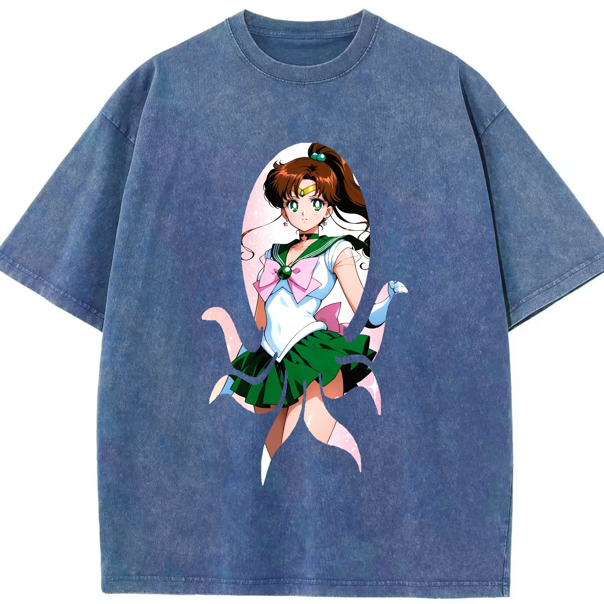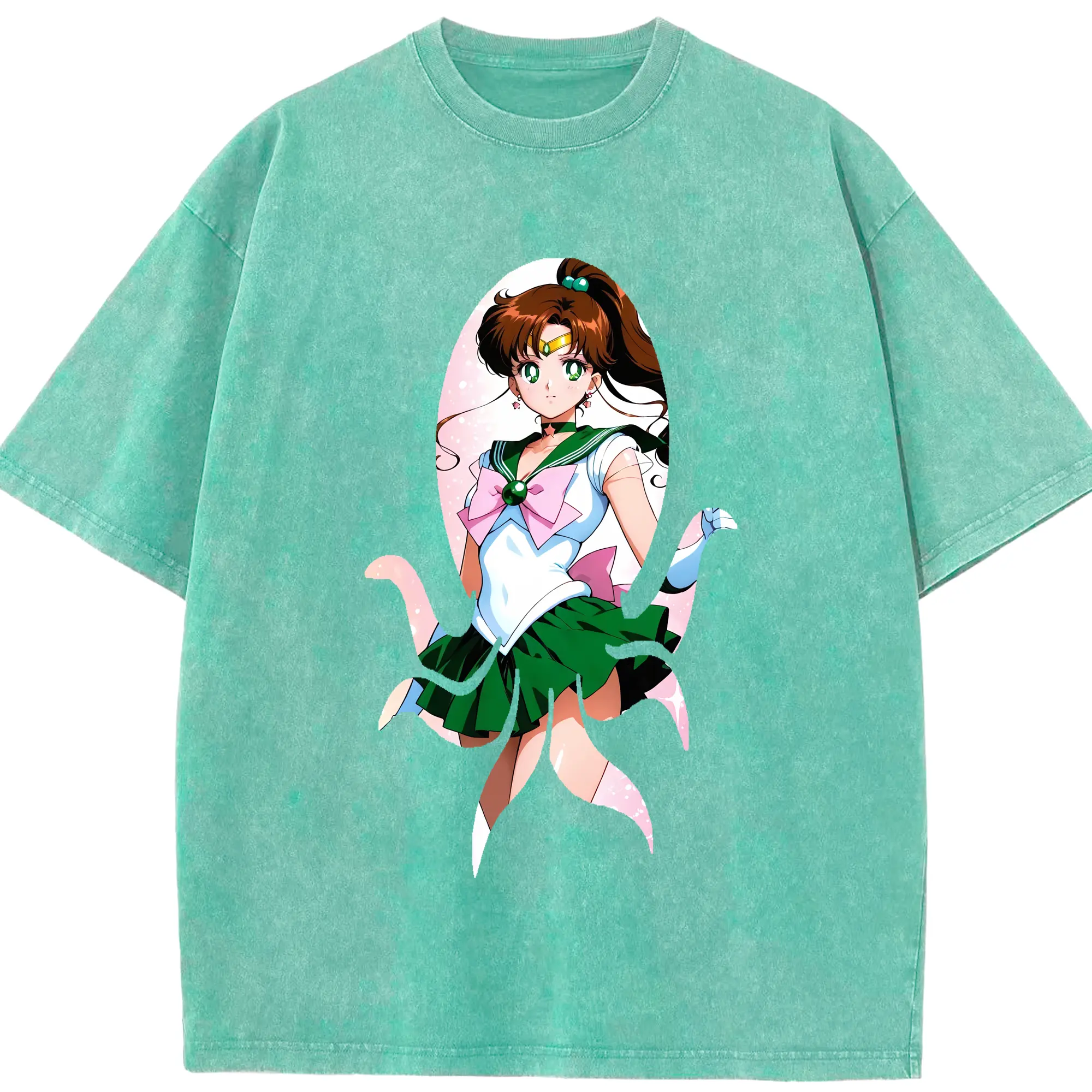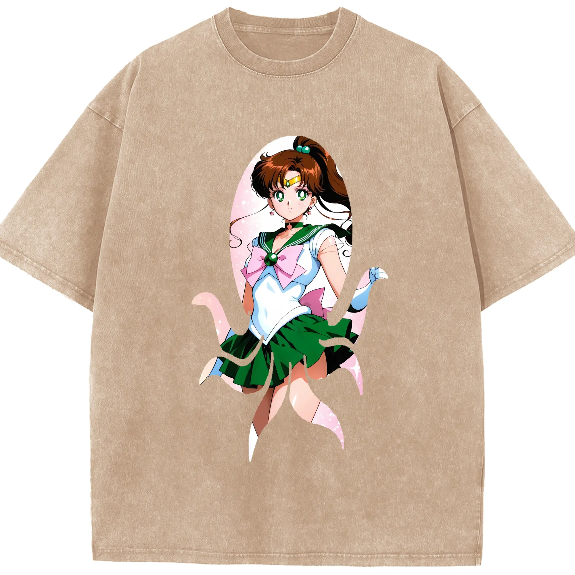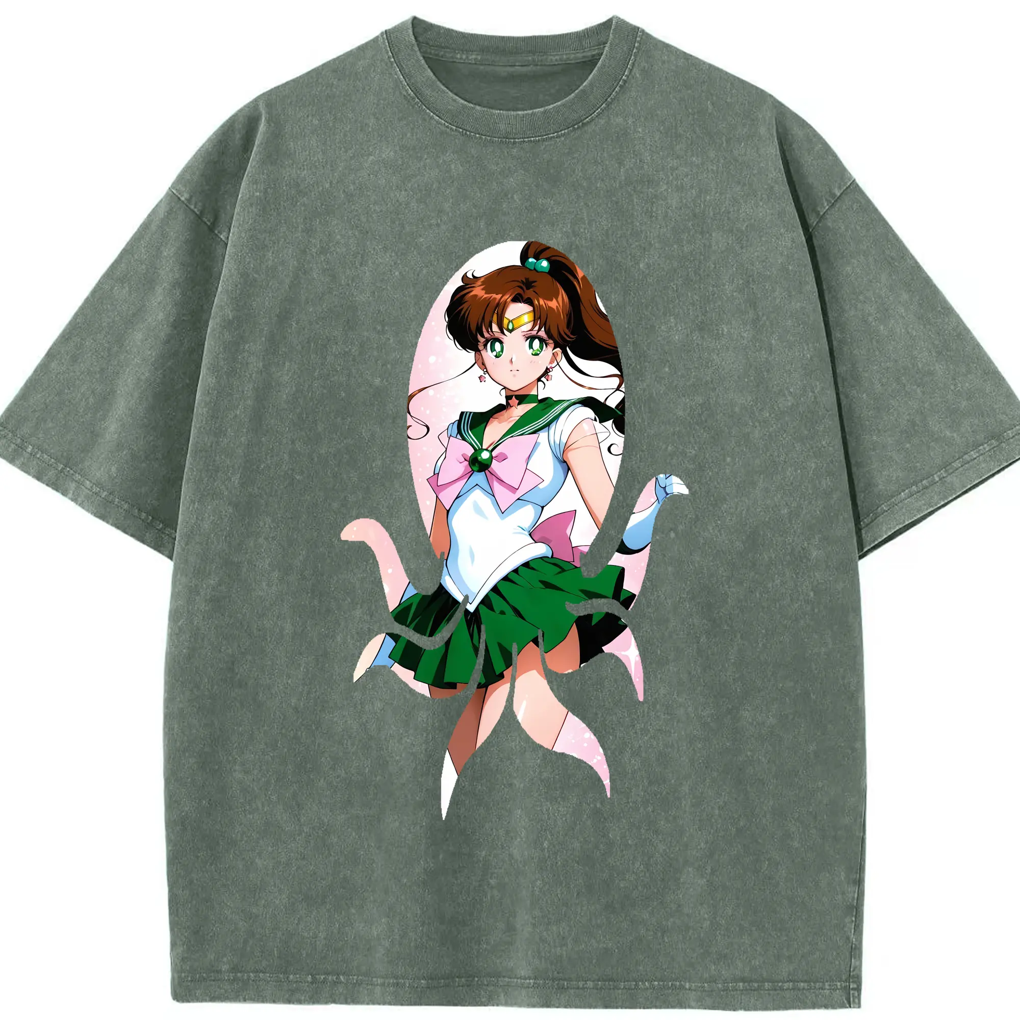 美少女戦士セーラームーン グッズ 木野 まこと - 綿100% ヴィンテージ風 半袖Tシャツ ・ 背面プリント ・ 柔らか肌触り ・ 通気性 快適 ・ スポーツ カジュアル 外出用