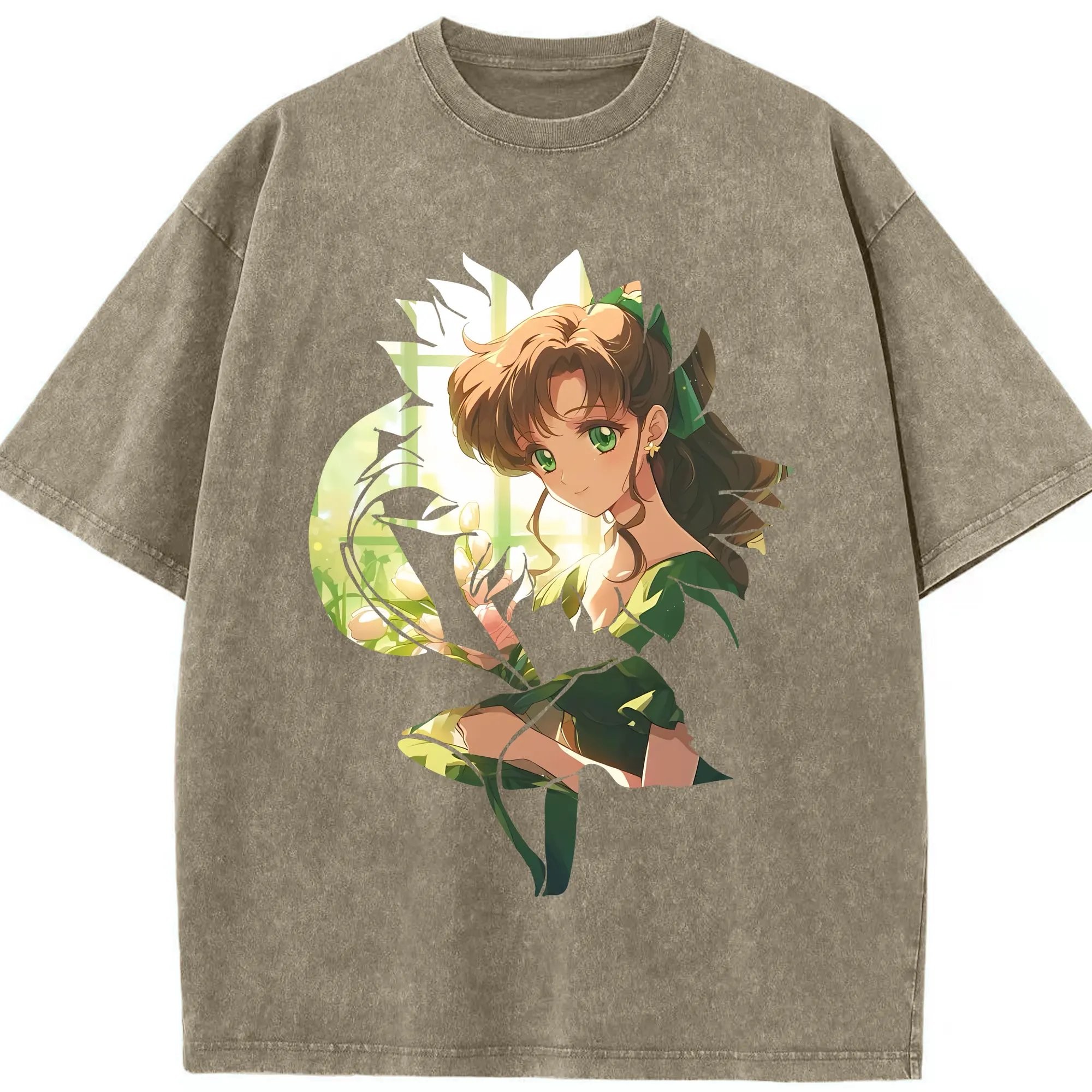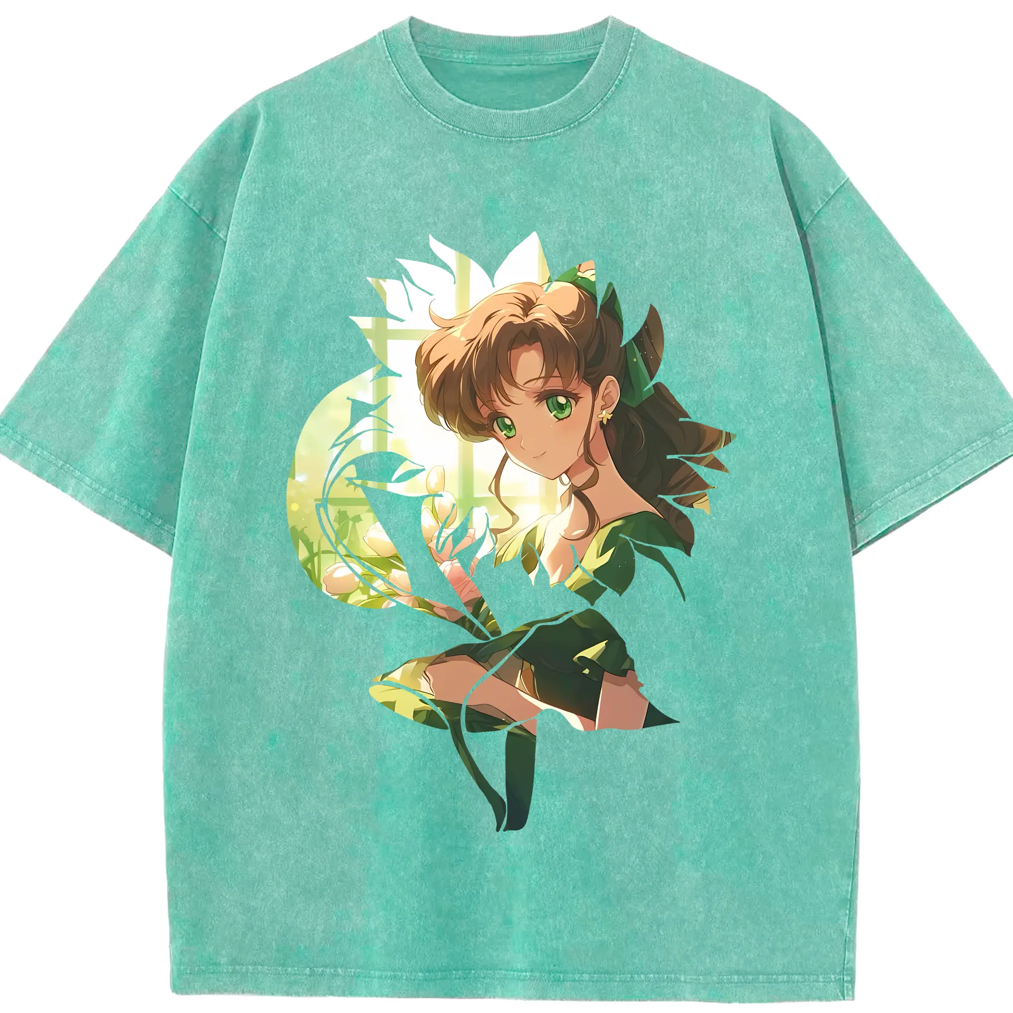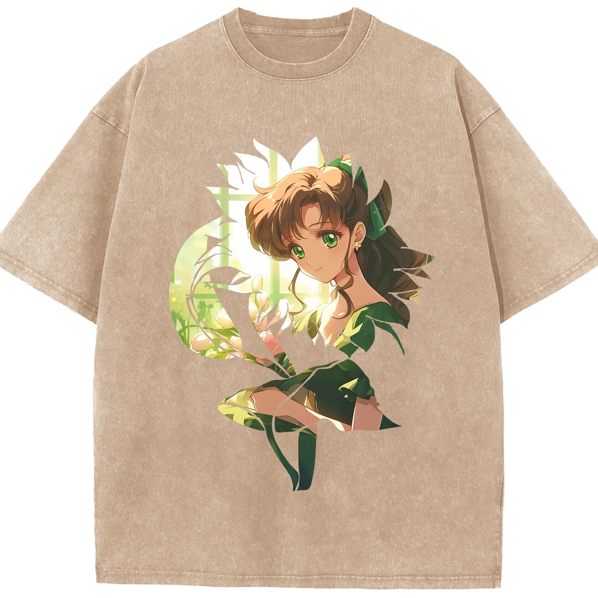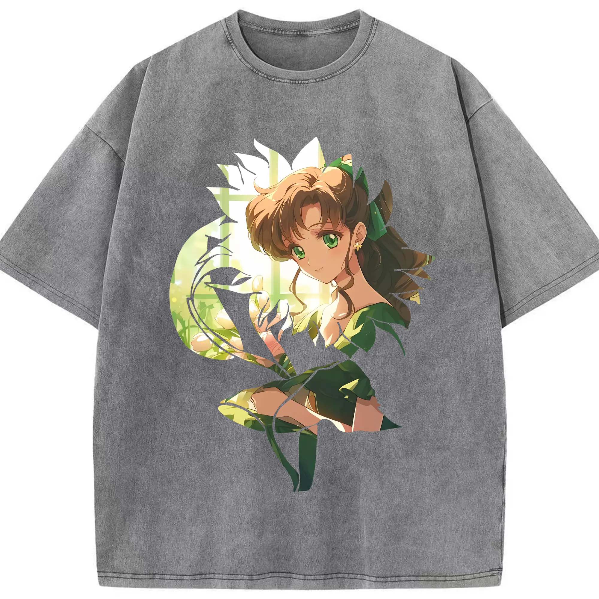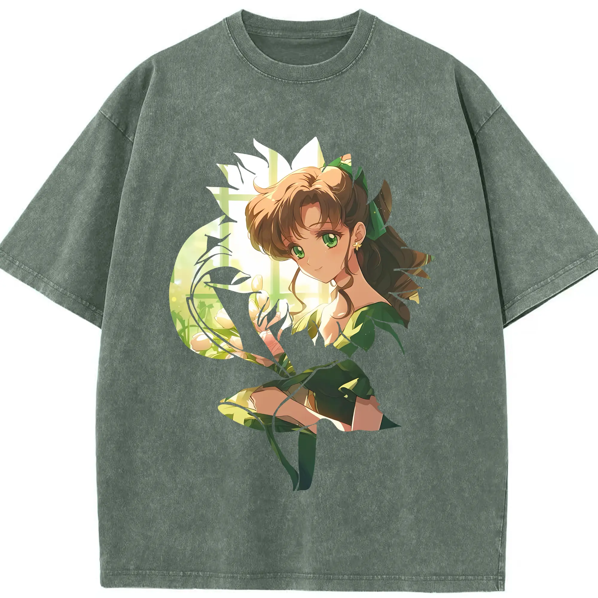 美少女戦士セーラームーン グッズ 木野 まこと - 綿100% ヴィンテージ風 半袖Tシャツ ・ 背面プリント ・ 柔らか肌触り ・ 通気性 快適 ・ スポーツ カジュアル 外出用