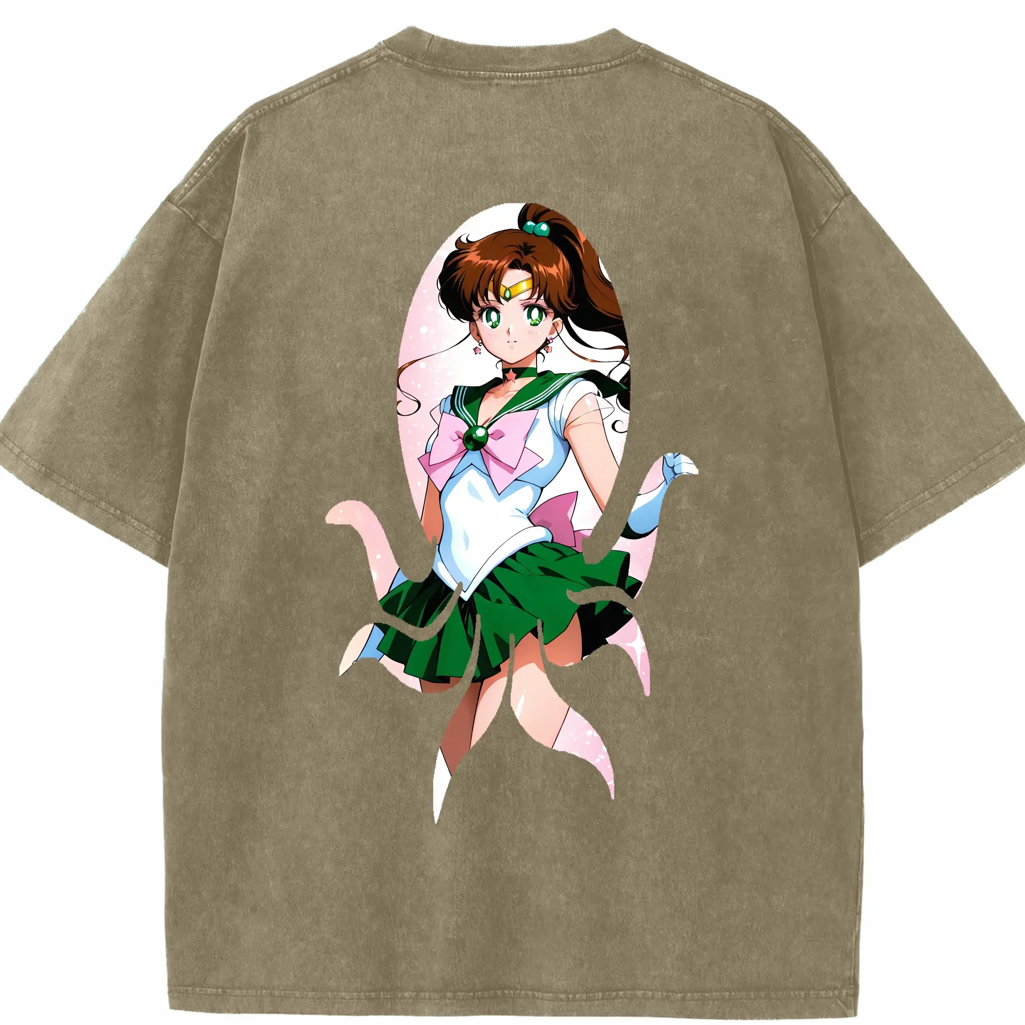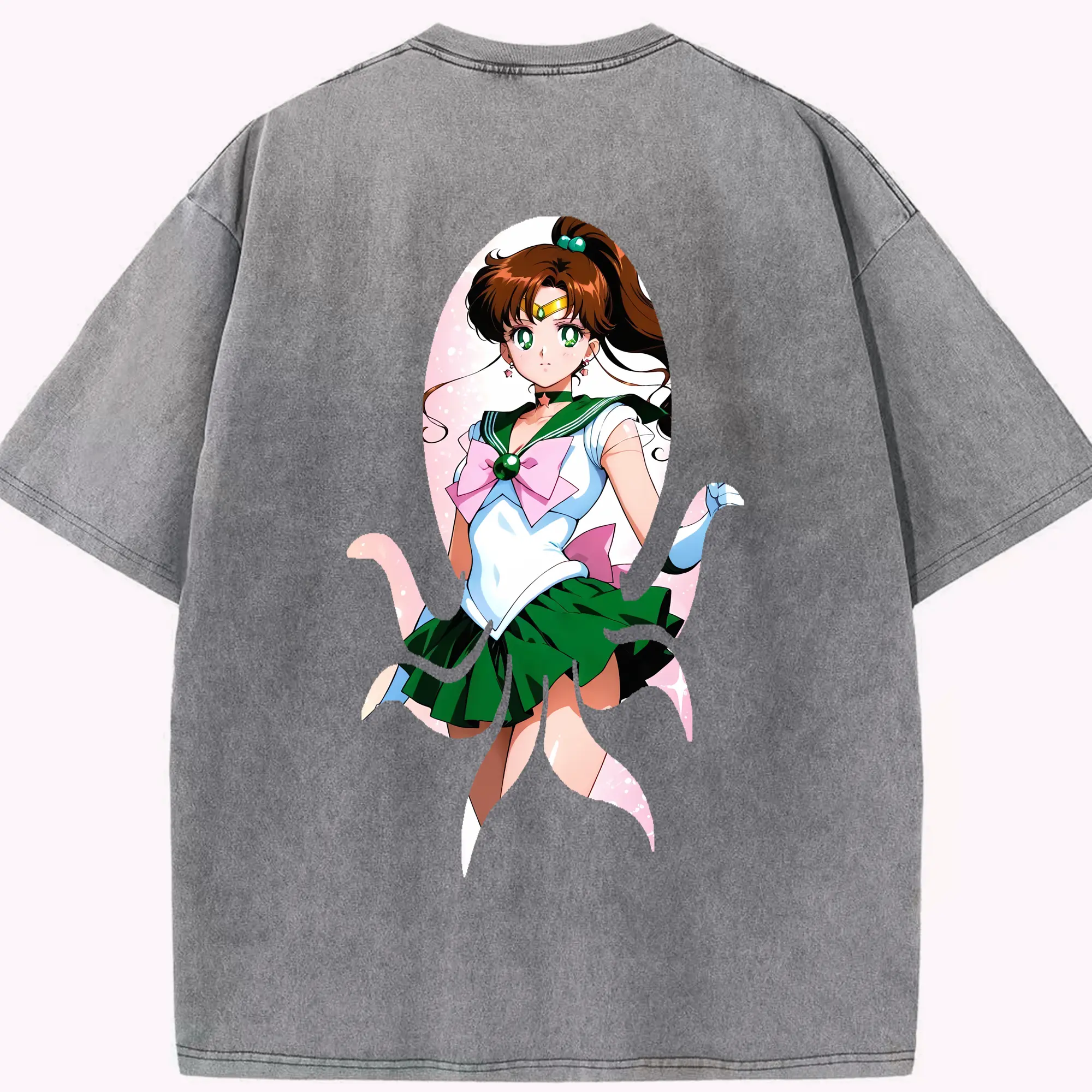 美少女戦士セーラームーン グッズ 木野 まこと - 綿100% ヴィンテージ風 半袖Tシャツ ・ フロントプリント ・ 柔らか肌触り ・ 通気性 快適 ・ スポーツ カジュアル 外出用