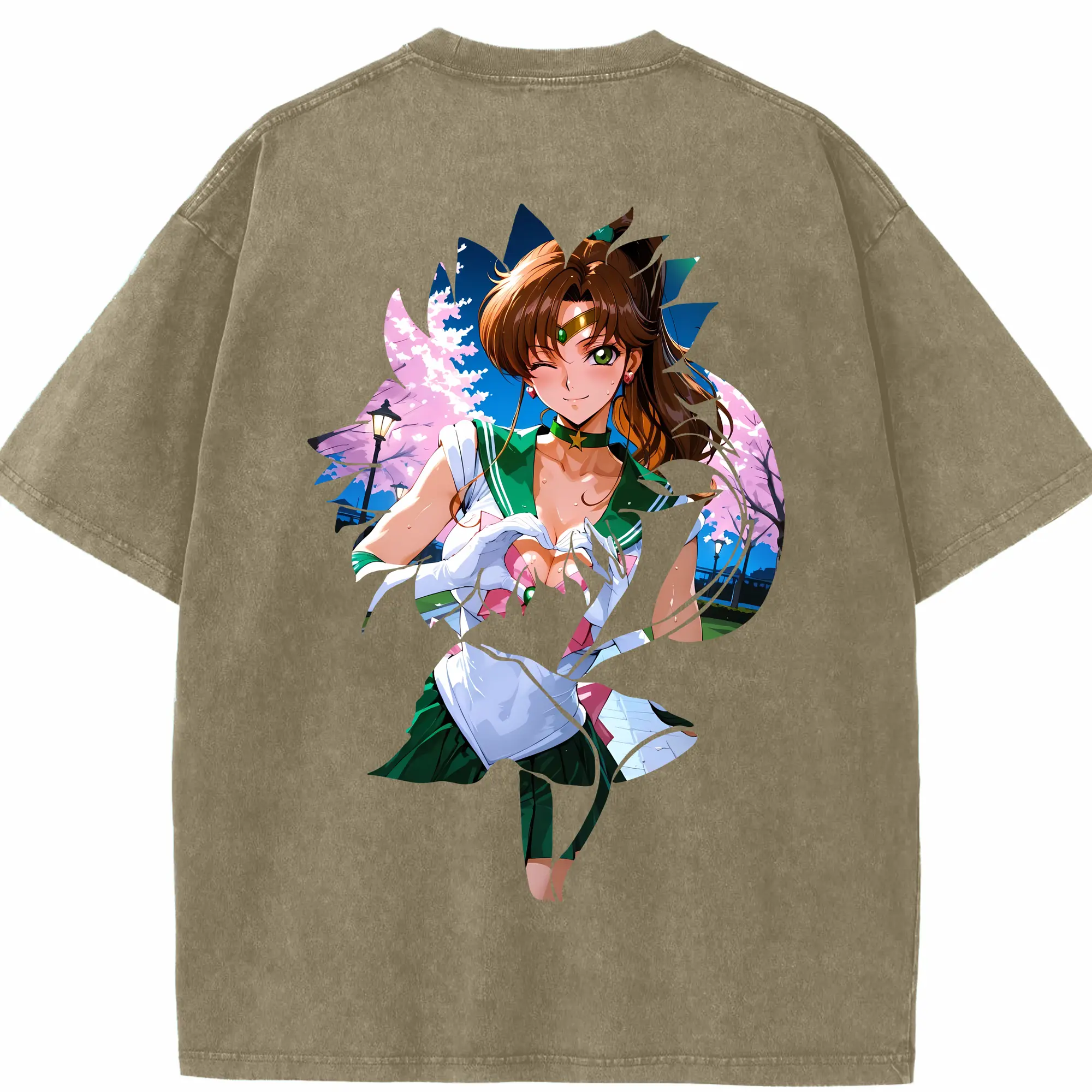 美少女戦士セーラームーン グッズ 木野 まこと - 綿100% ヴィンテージ風 半袖Tシャツ ・ フロントプリント ・ 柔らか肌触り ・ 通気性 快適 ・ スポーツ カジュアル 外出用