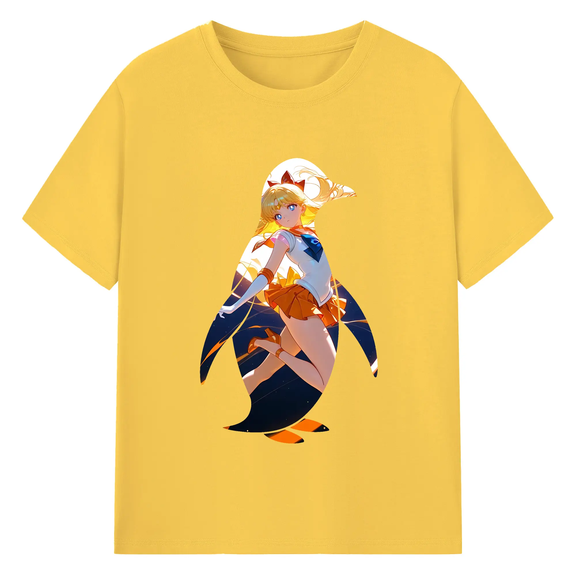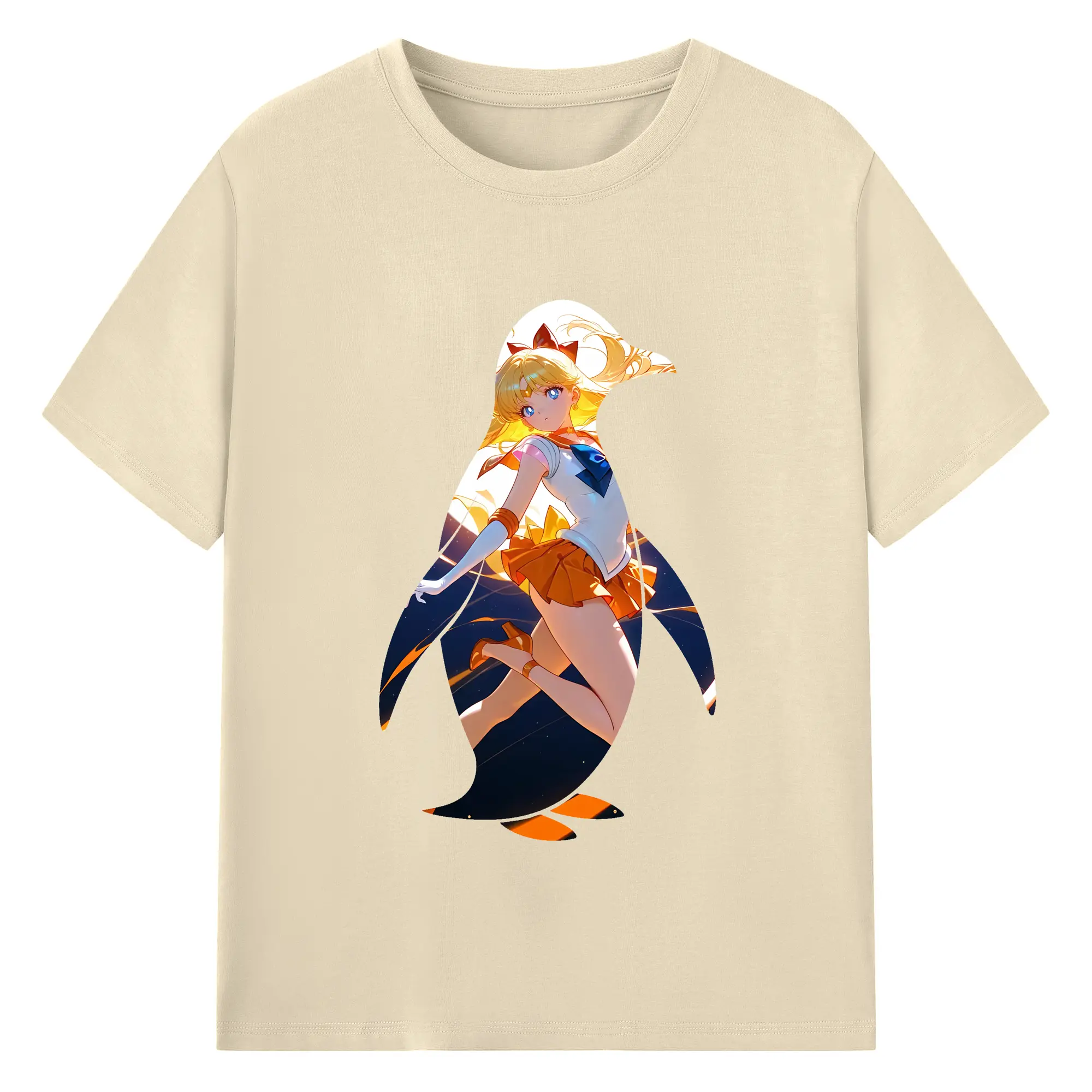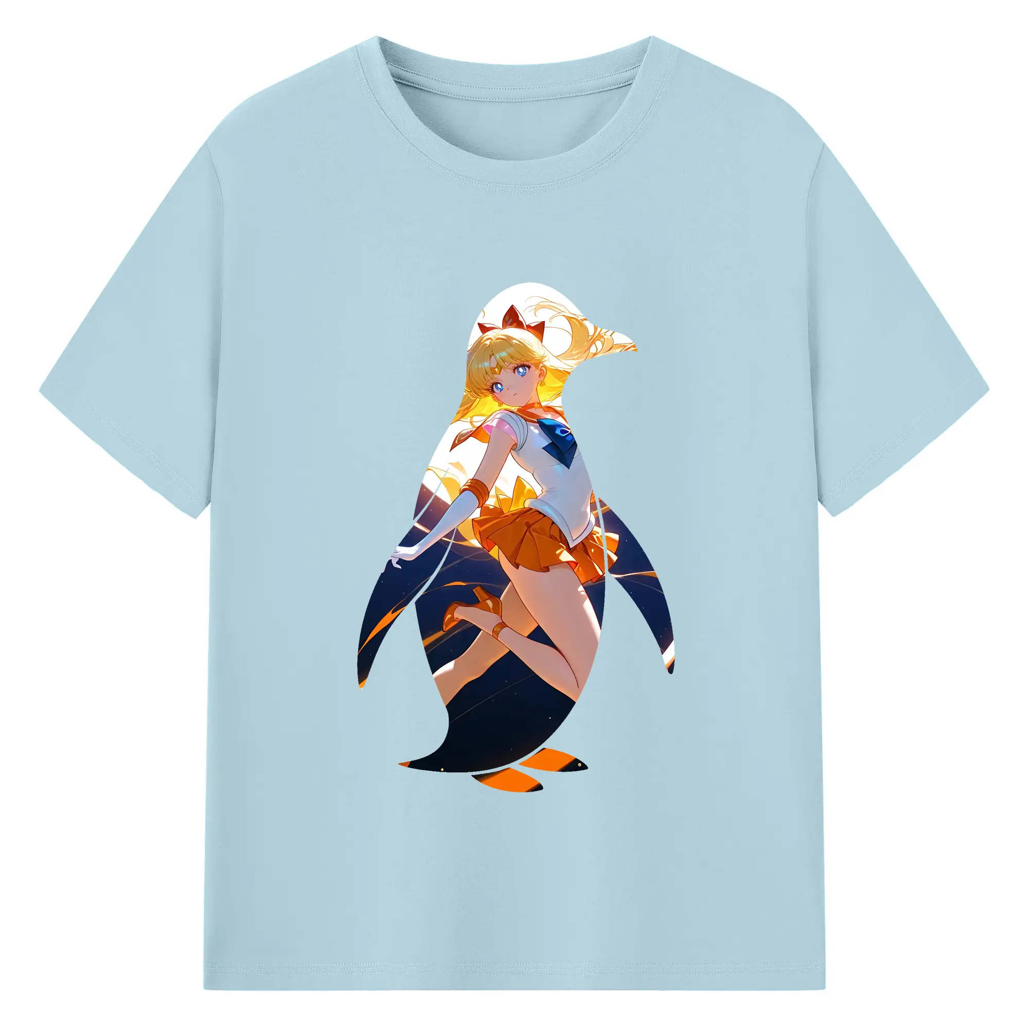 美少女戦士セーラームーン グッズ 愛野 美奈子 - 綿100% 半袖Tシャツ ・ バックプリント ・ 快適 通気性 ・ 日常使い 散歩 スポーツ用
