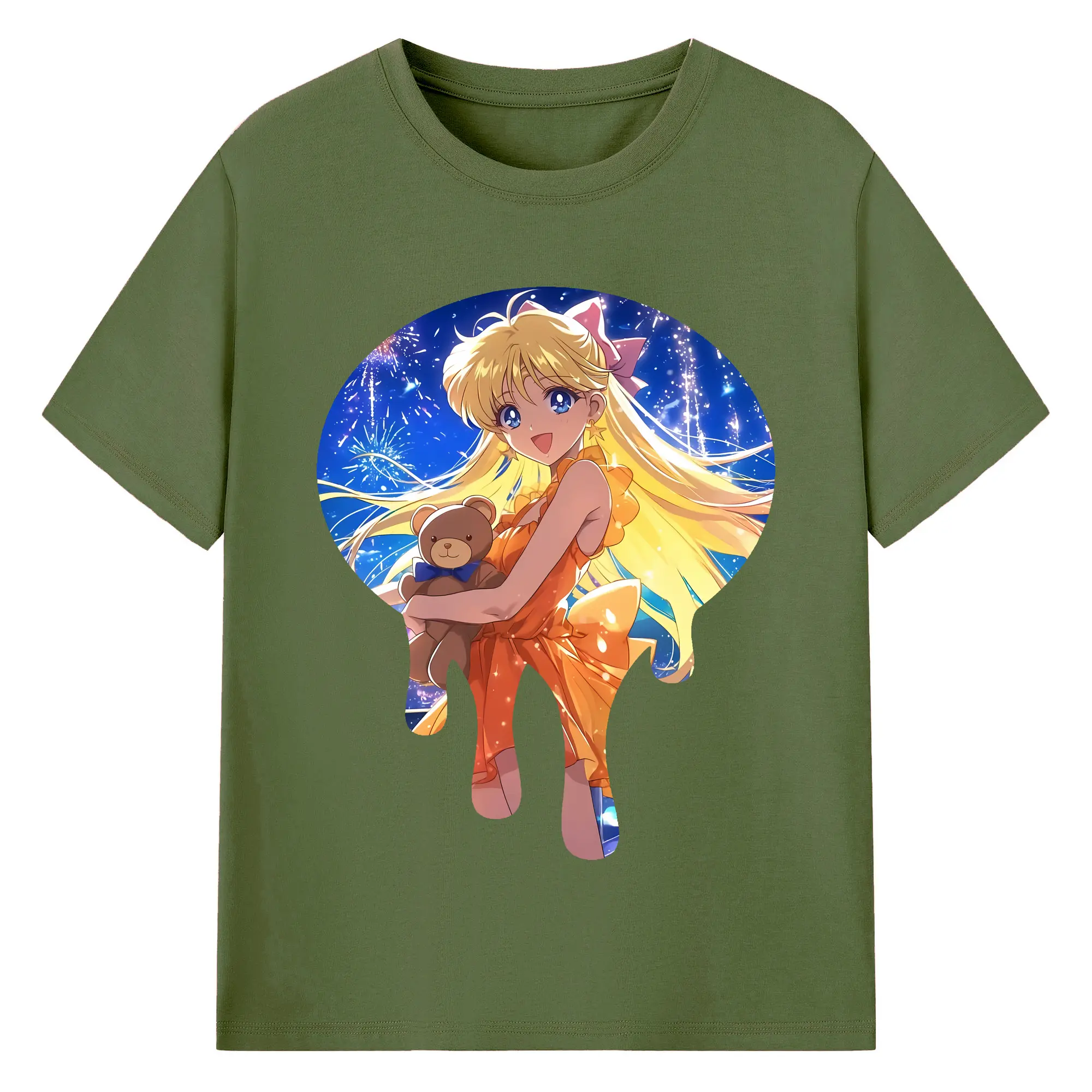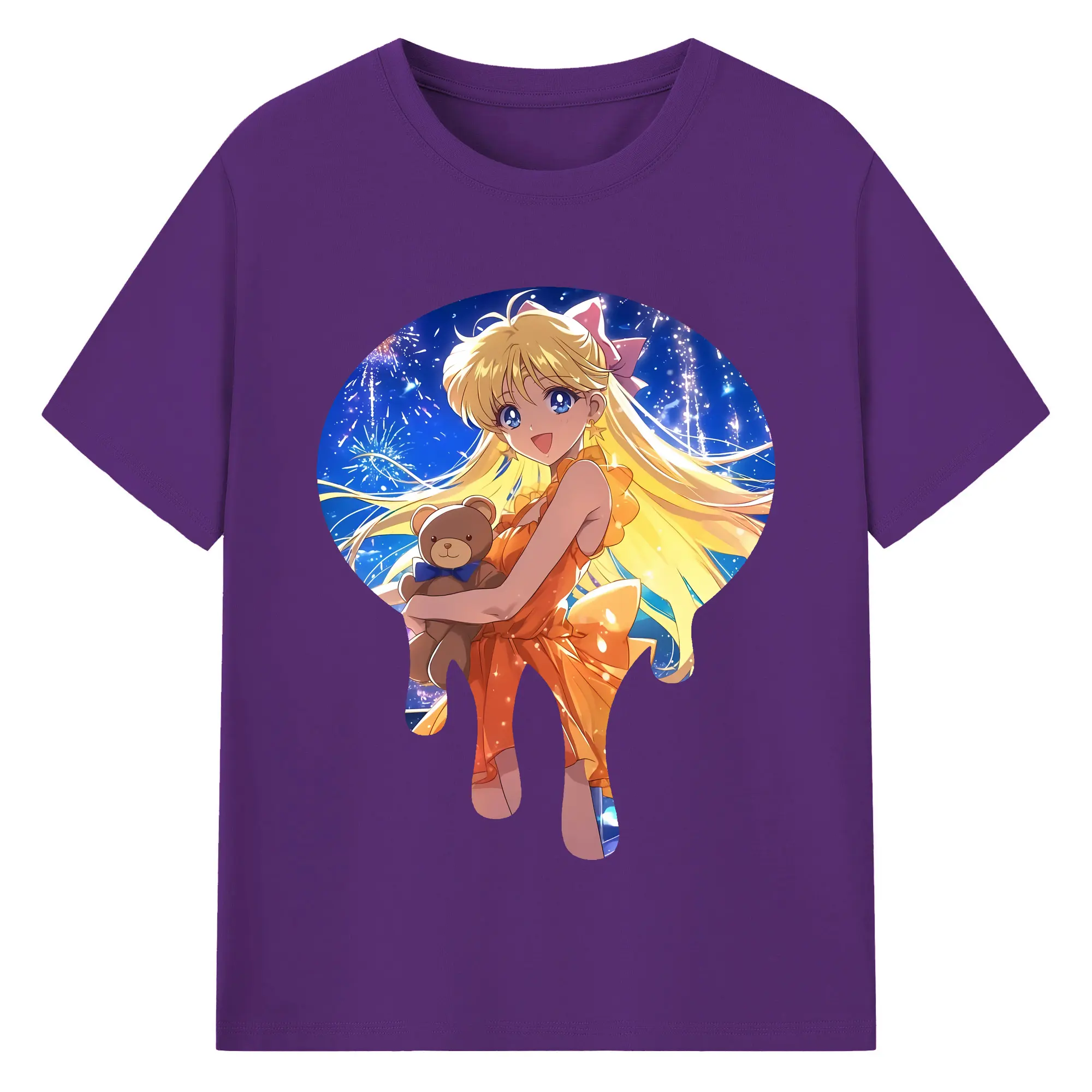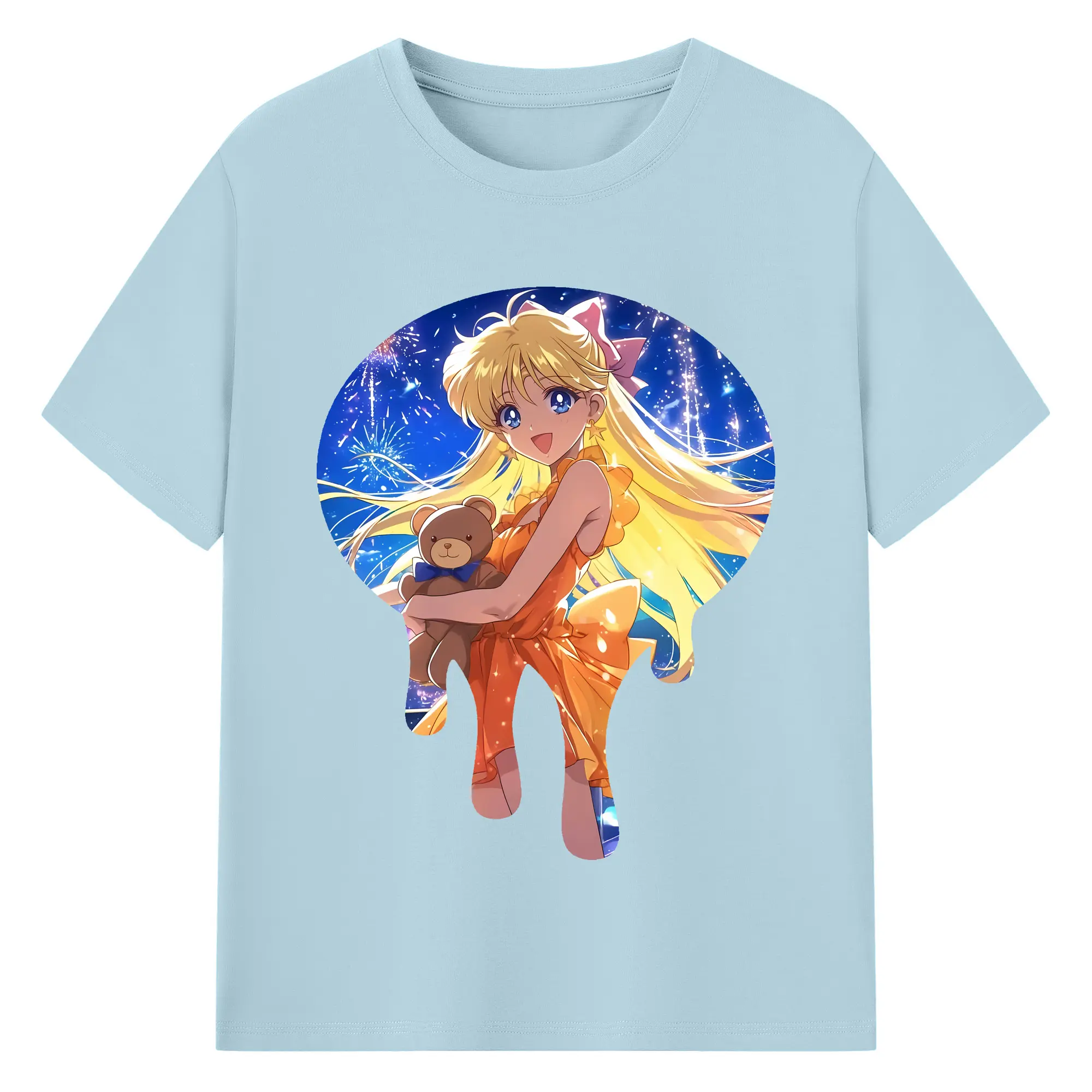 美少女戦士セーラームーン グッズ 愛野 美奈子 - 綿100% 半袖Tシャツ ・ バックプリント ・ 快適 通気性 ・ 日常使い 散歩 スポーツ用