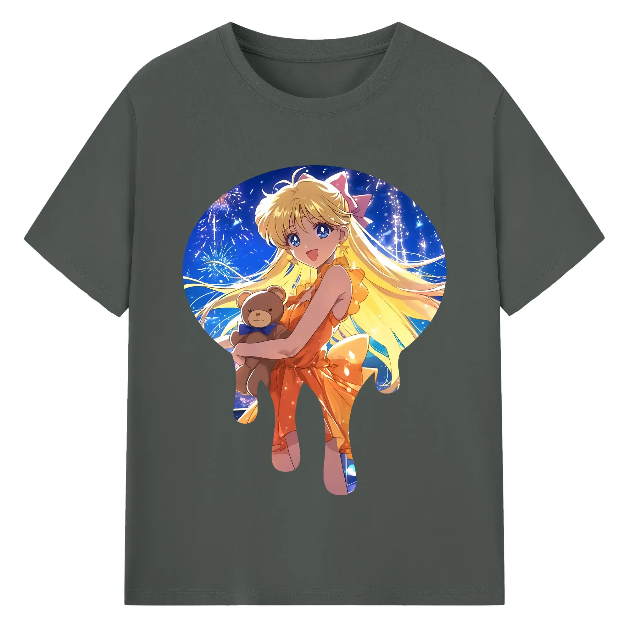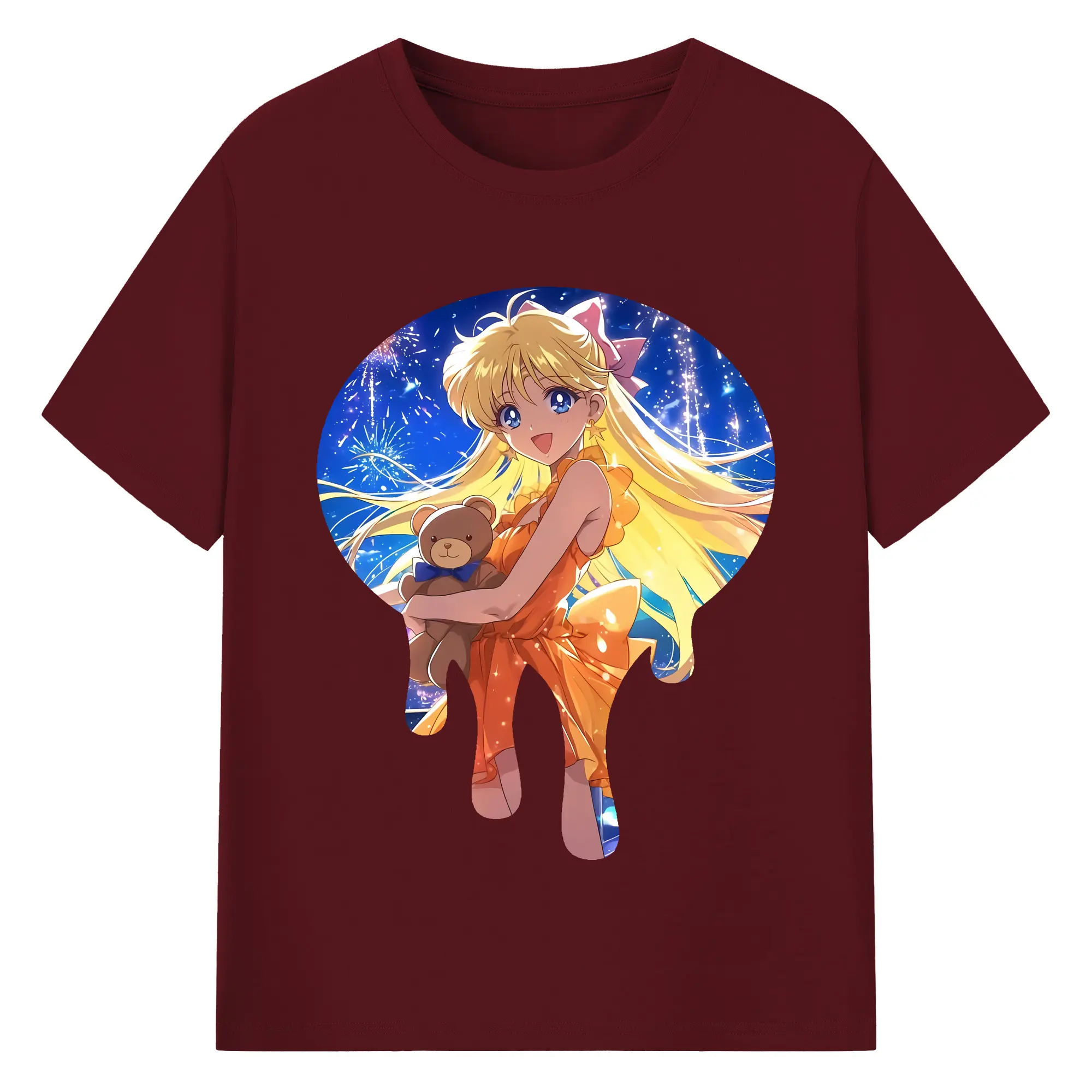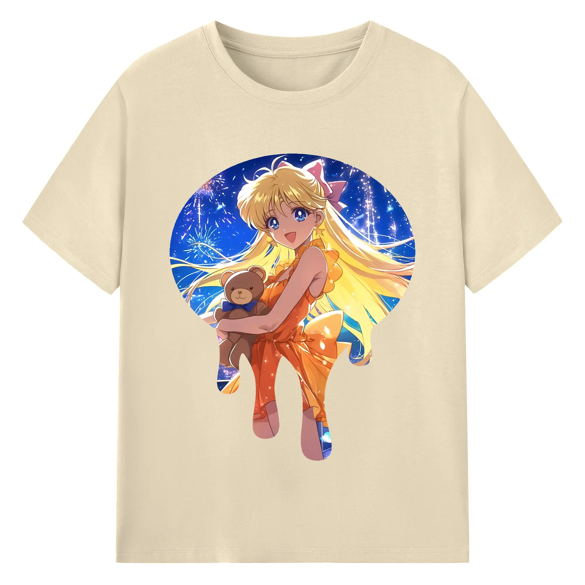 美少女戦士セーラームーン グッズ 愛野 美奈子 - 綿100% 半袖Tシャツ ・ バックプリント ・ 快適 通気性 ・ 日常使い 散歩 スポーツ用