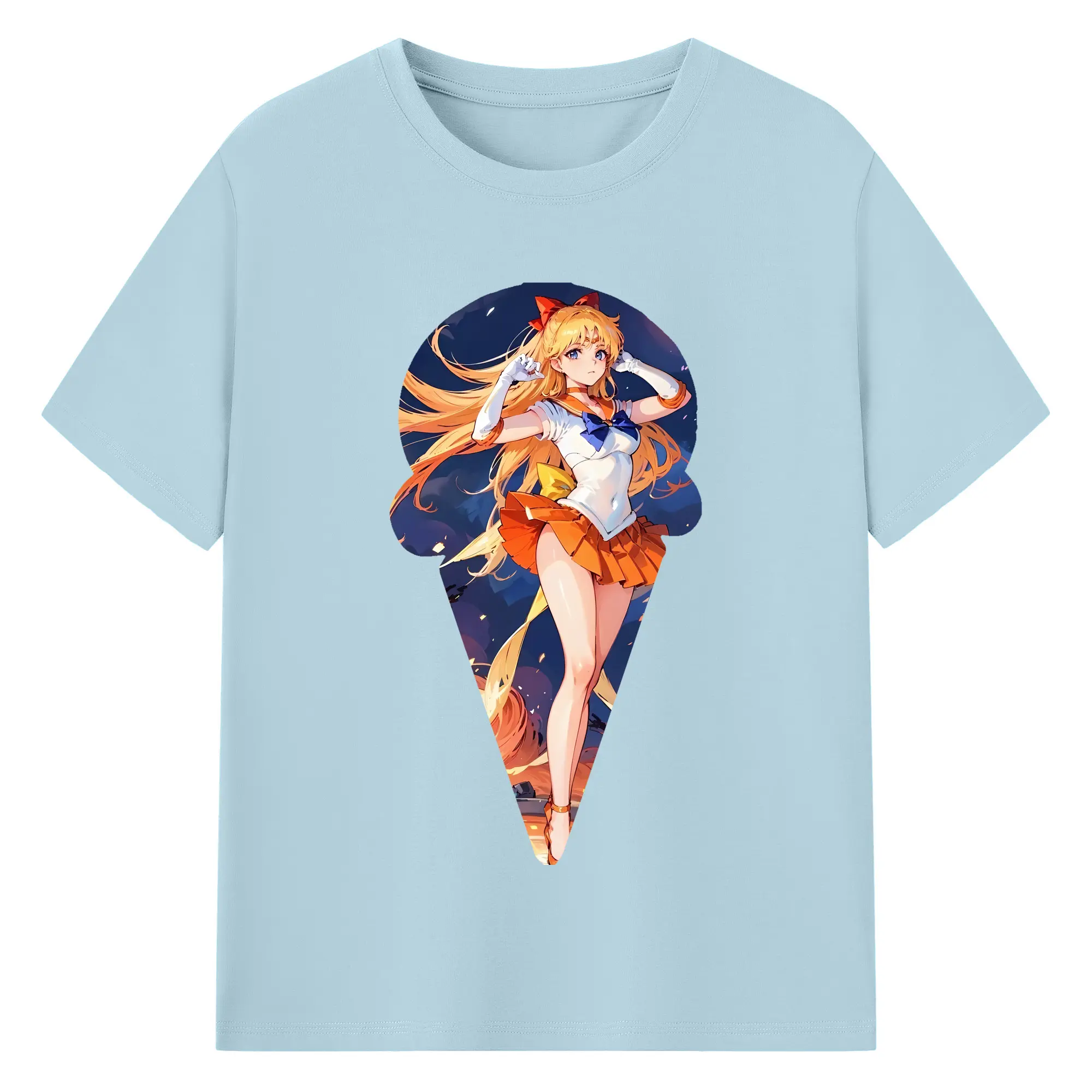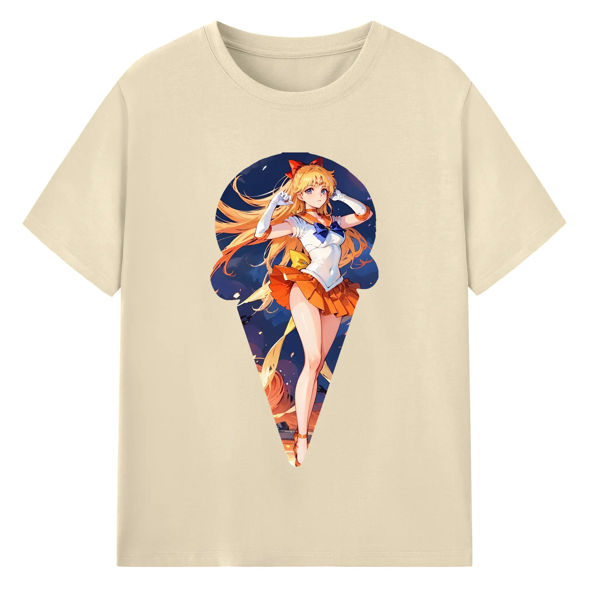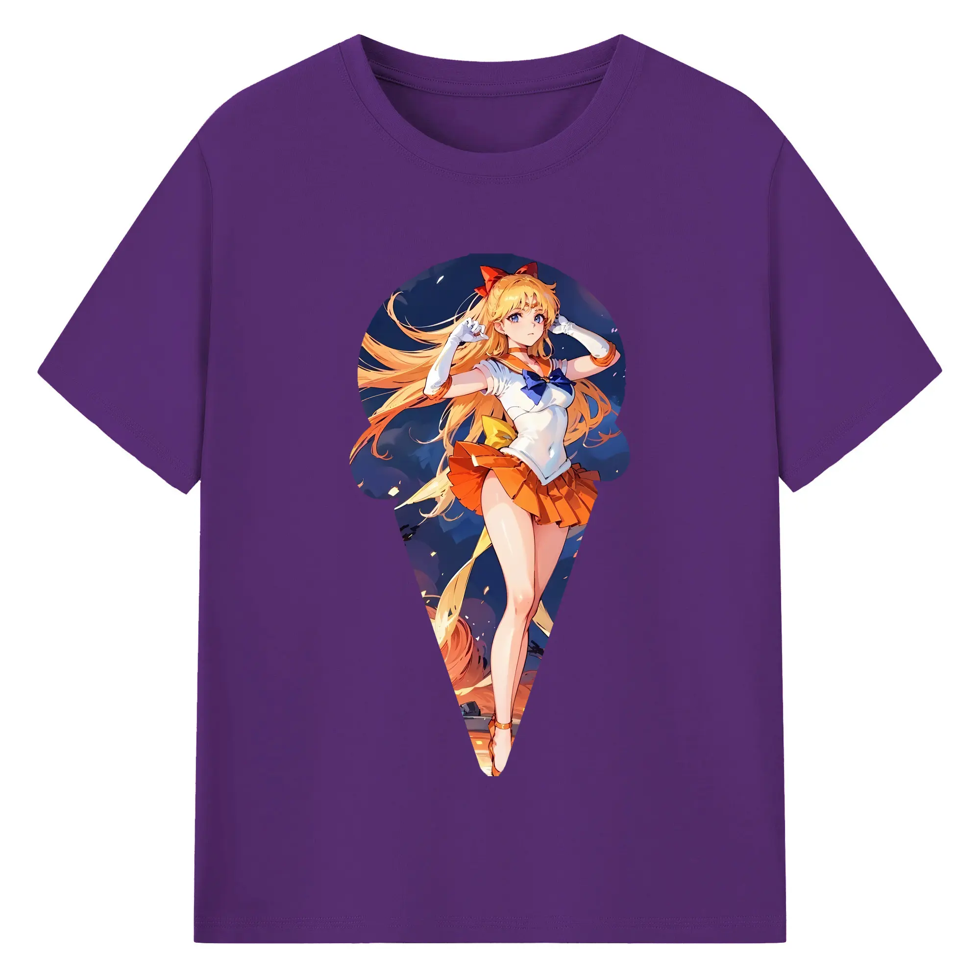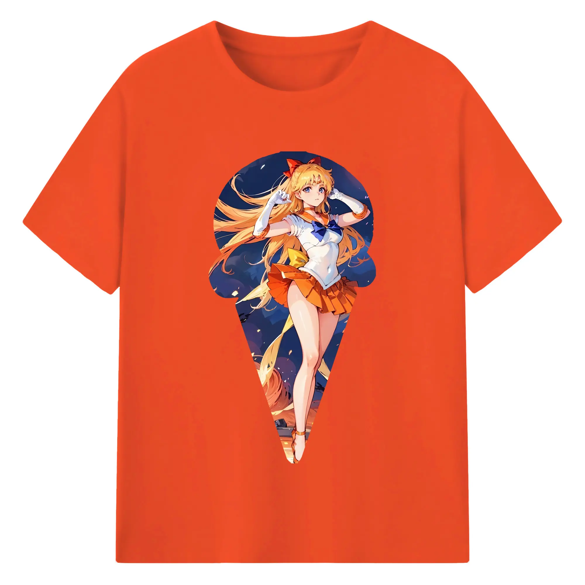 美少女戦士セーラームーン グッズ 愛野 美奈子 - 綿100% 半袖Tシャツ ・ バックプリント ・ 快適 通気性 ・ 日常使い 散歩 スポーツ用