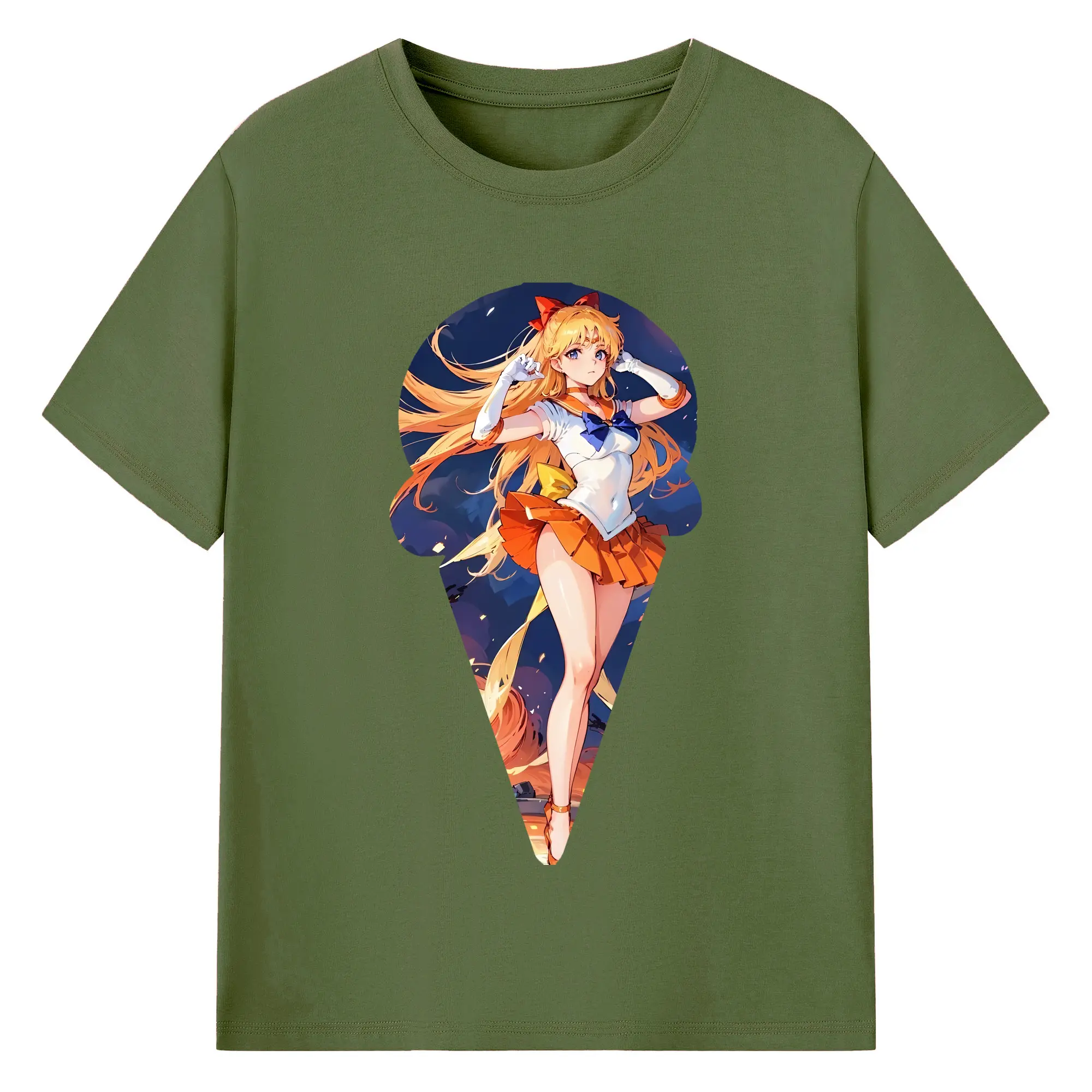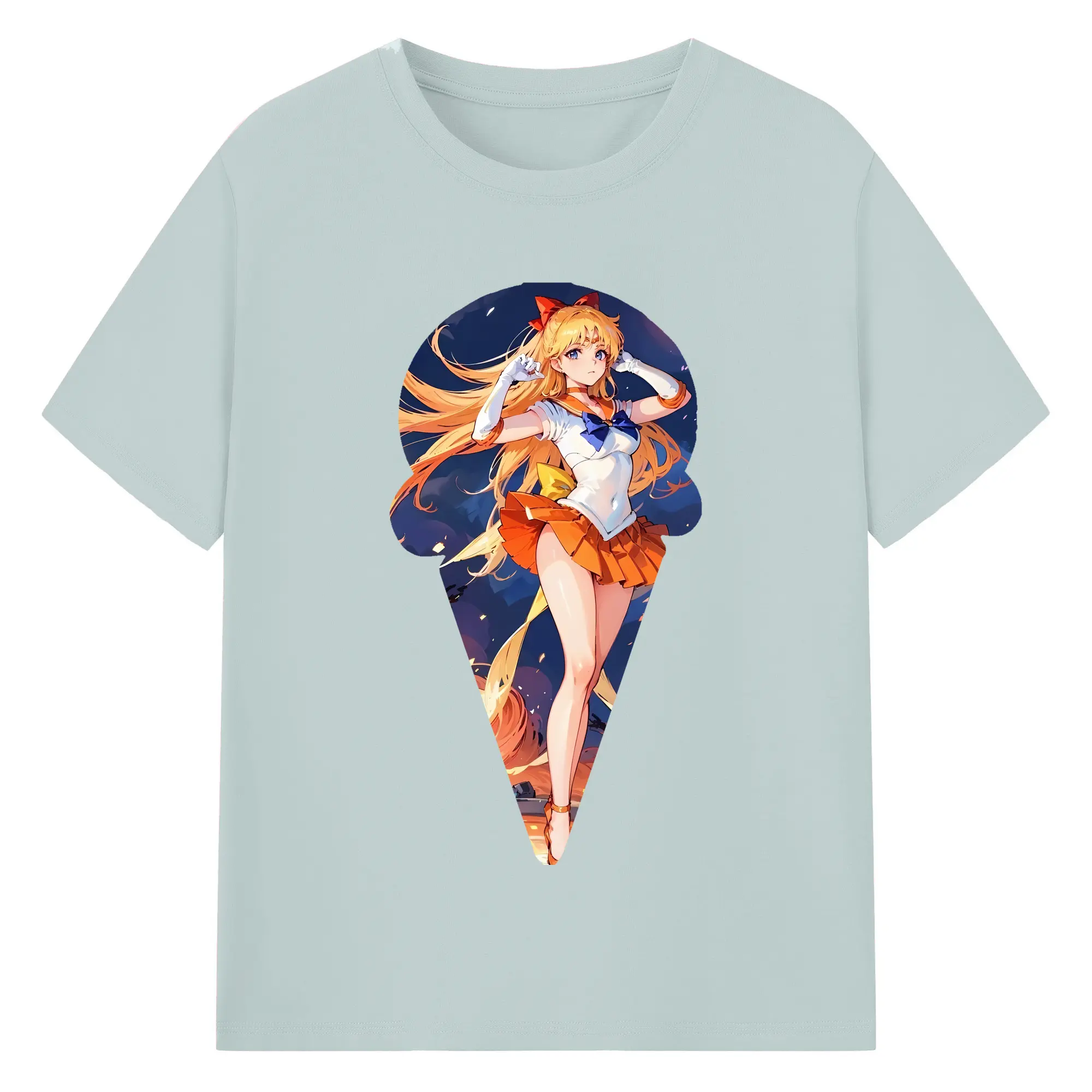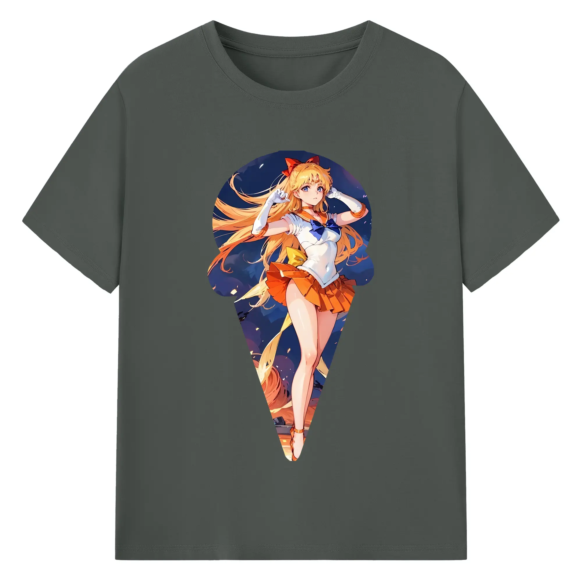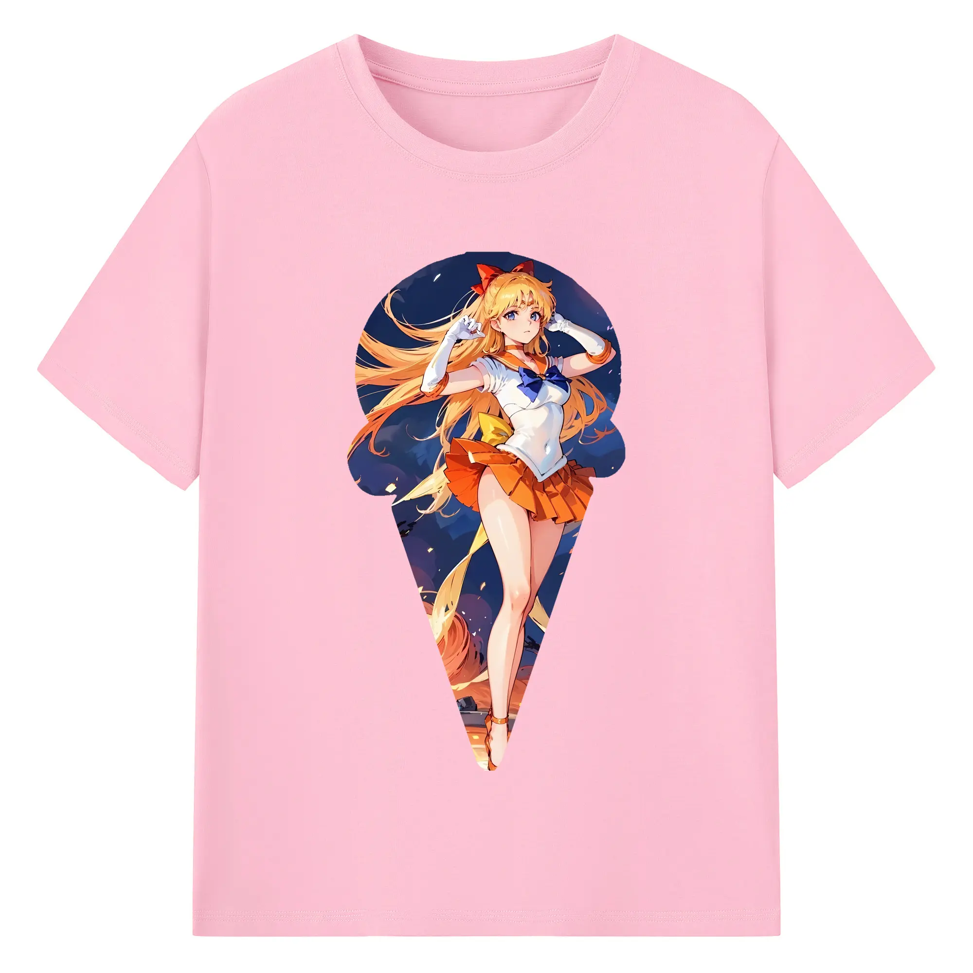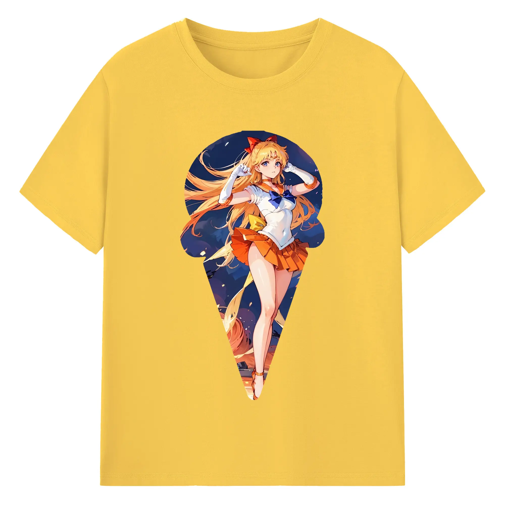 美少女戦士セーラームーン グッズ 愛野 美奈子 - 綿100% 半袖Tシャツ ・ バックプリント ・ 快適 通気性 ・ 日常使い 散歩 スポーツ用