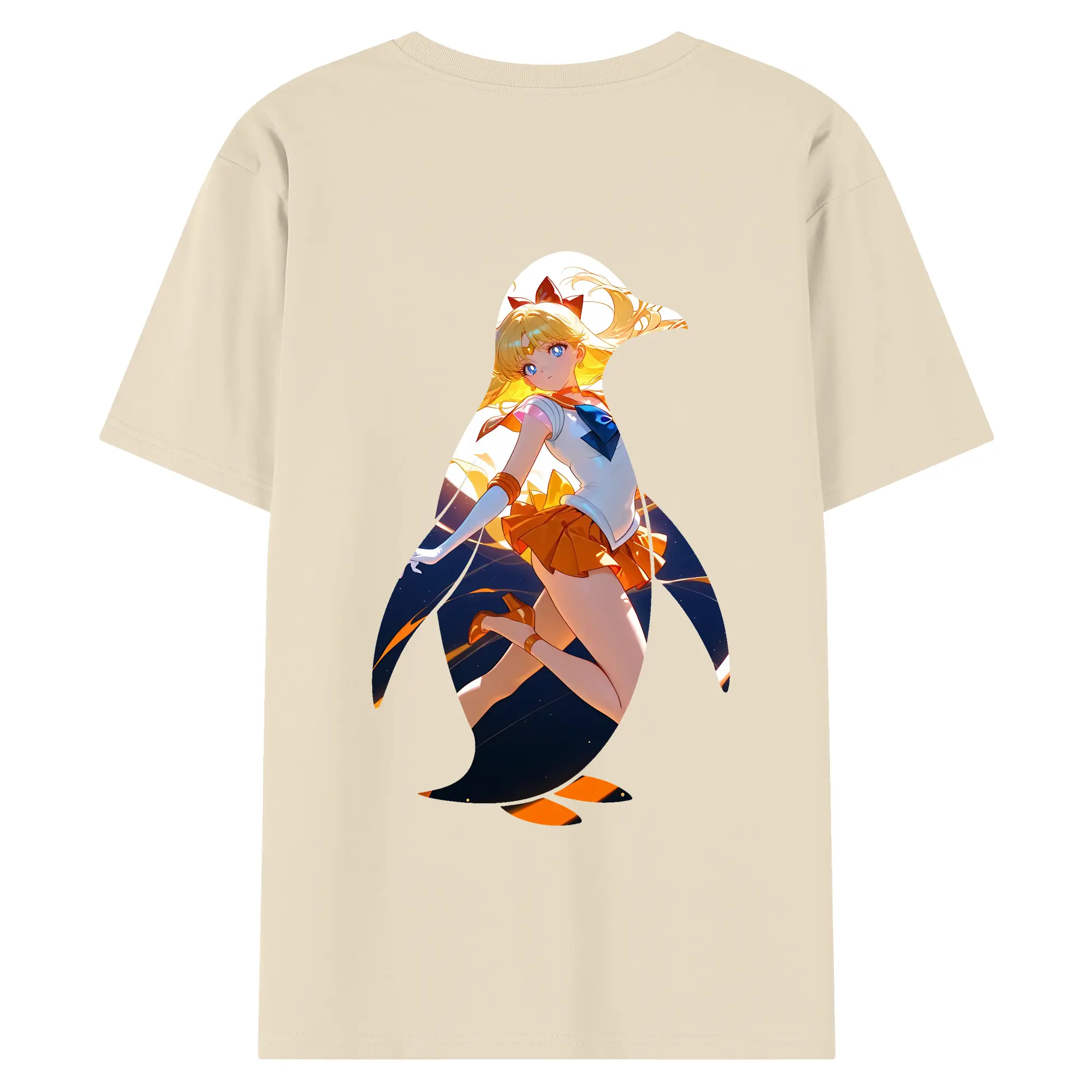 美少女戦士セーラームーン グッズ 愛野 美奈子 - 綿100% ヴィンテージ風 半袖Tシャツ ・ 背面プリント ・ 柔らか肌触り ・ 通気性 快適 ・ スポーツ カジュアル 外出用